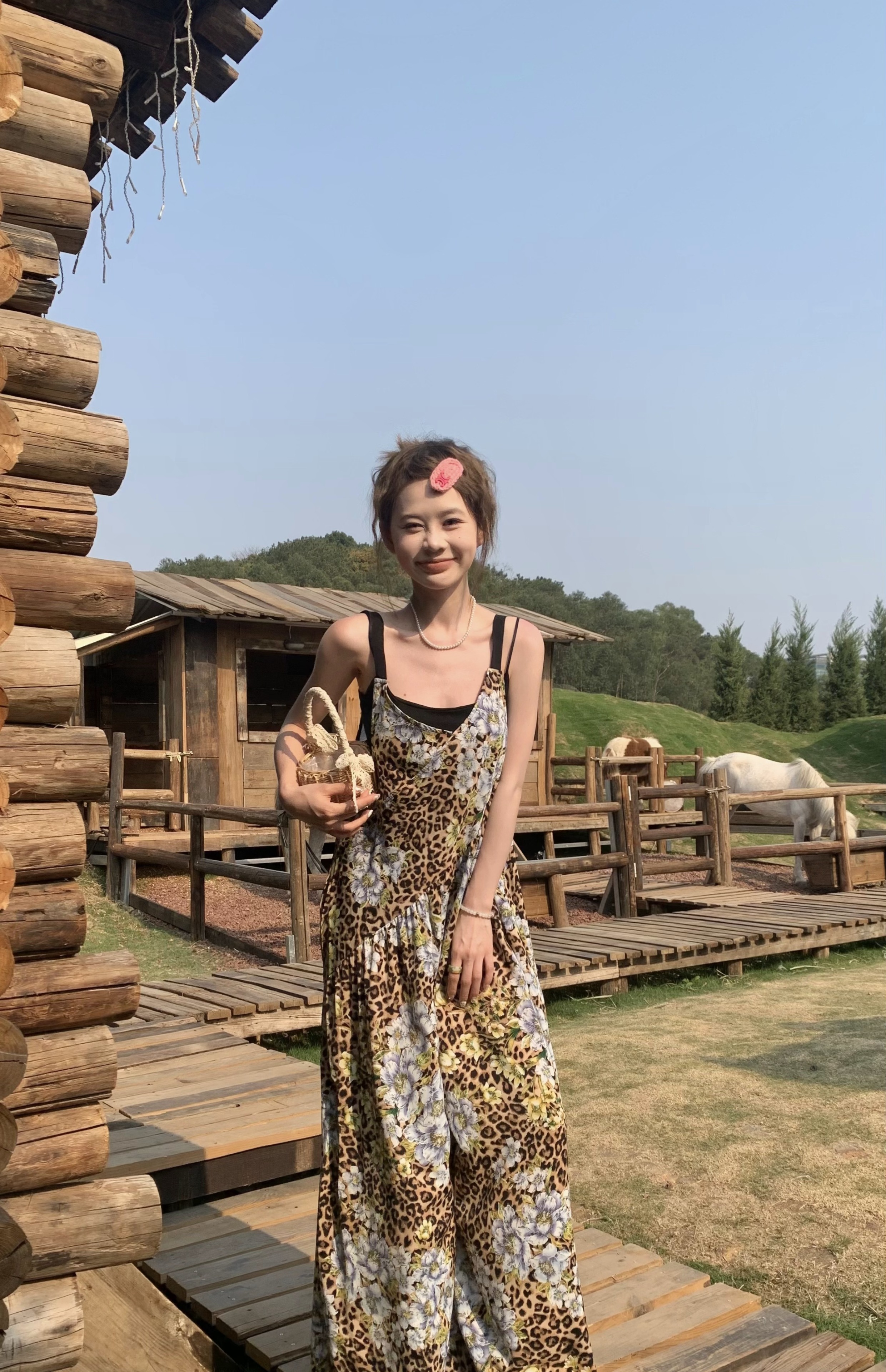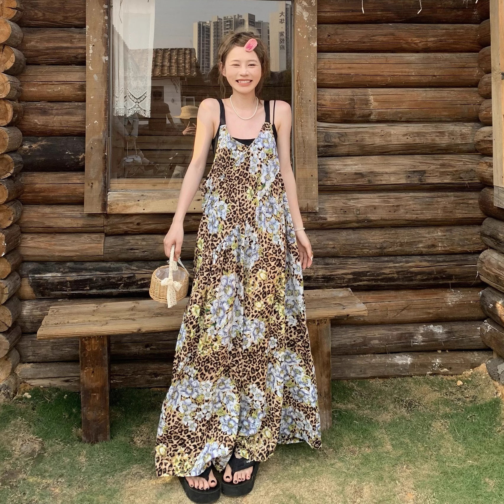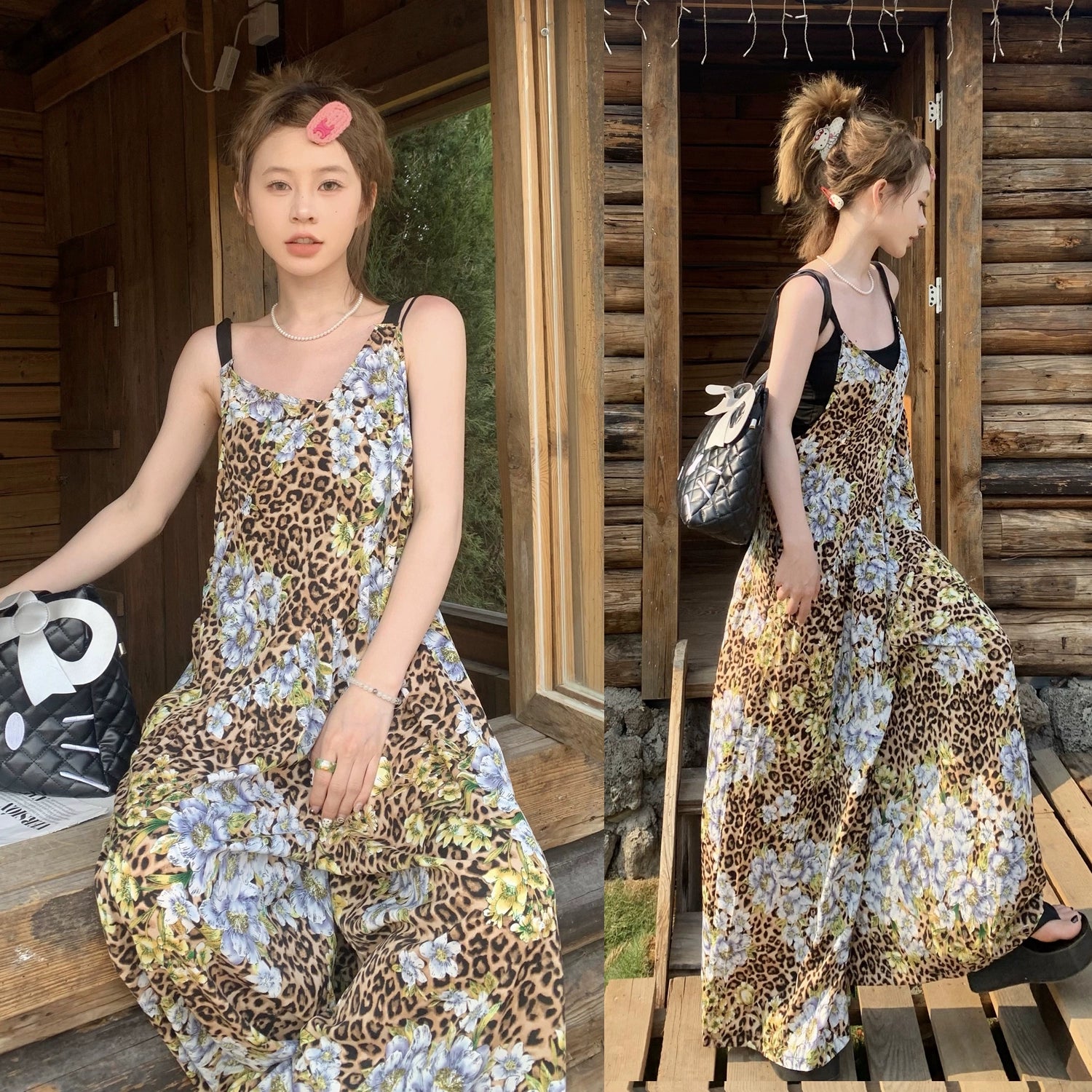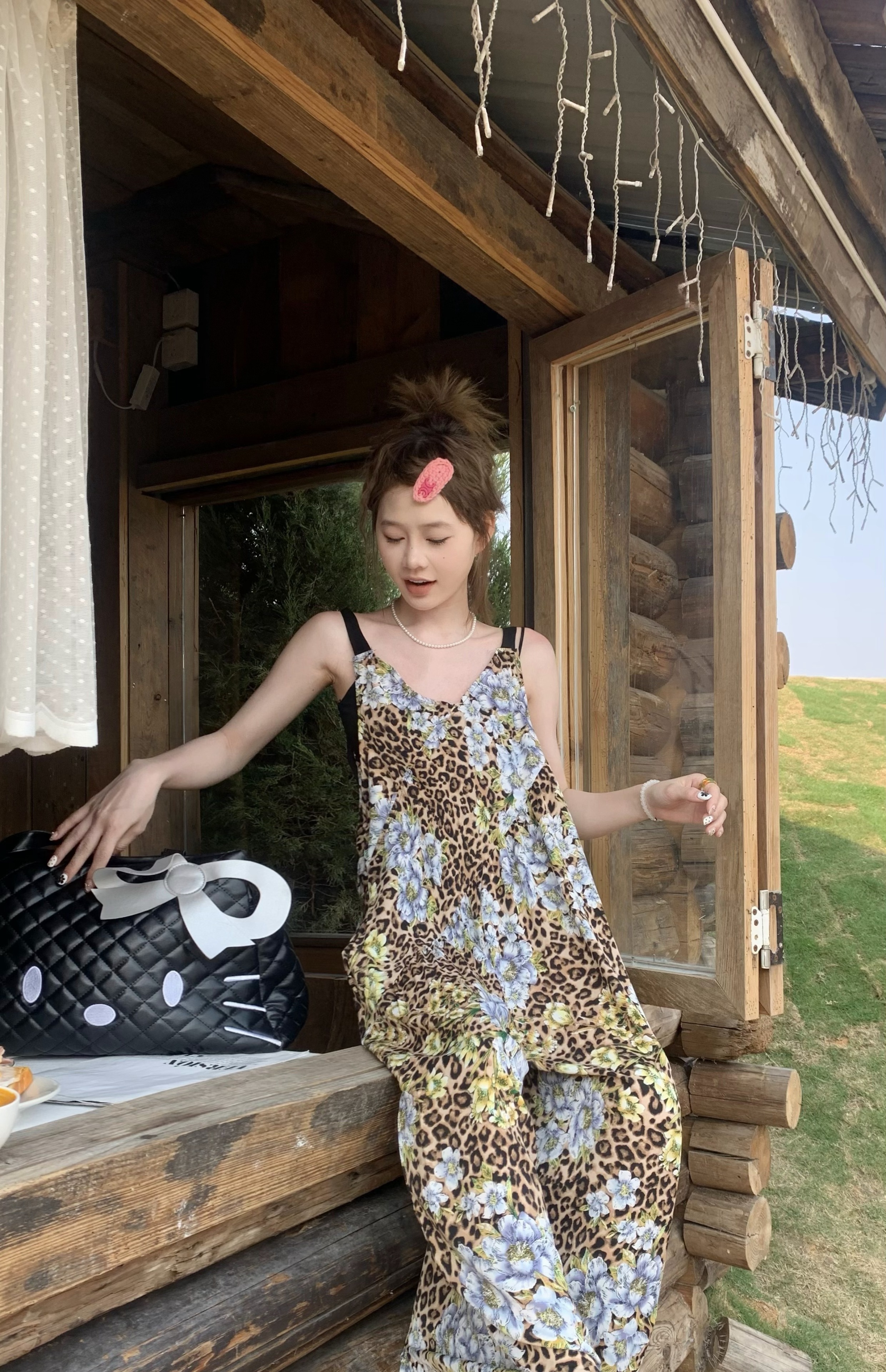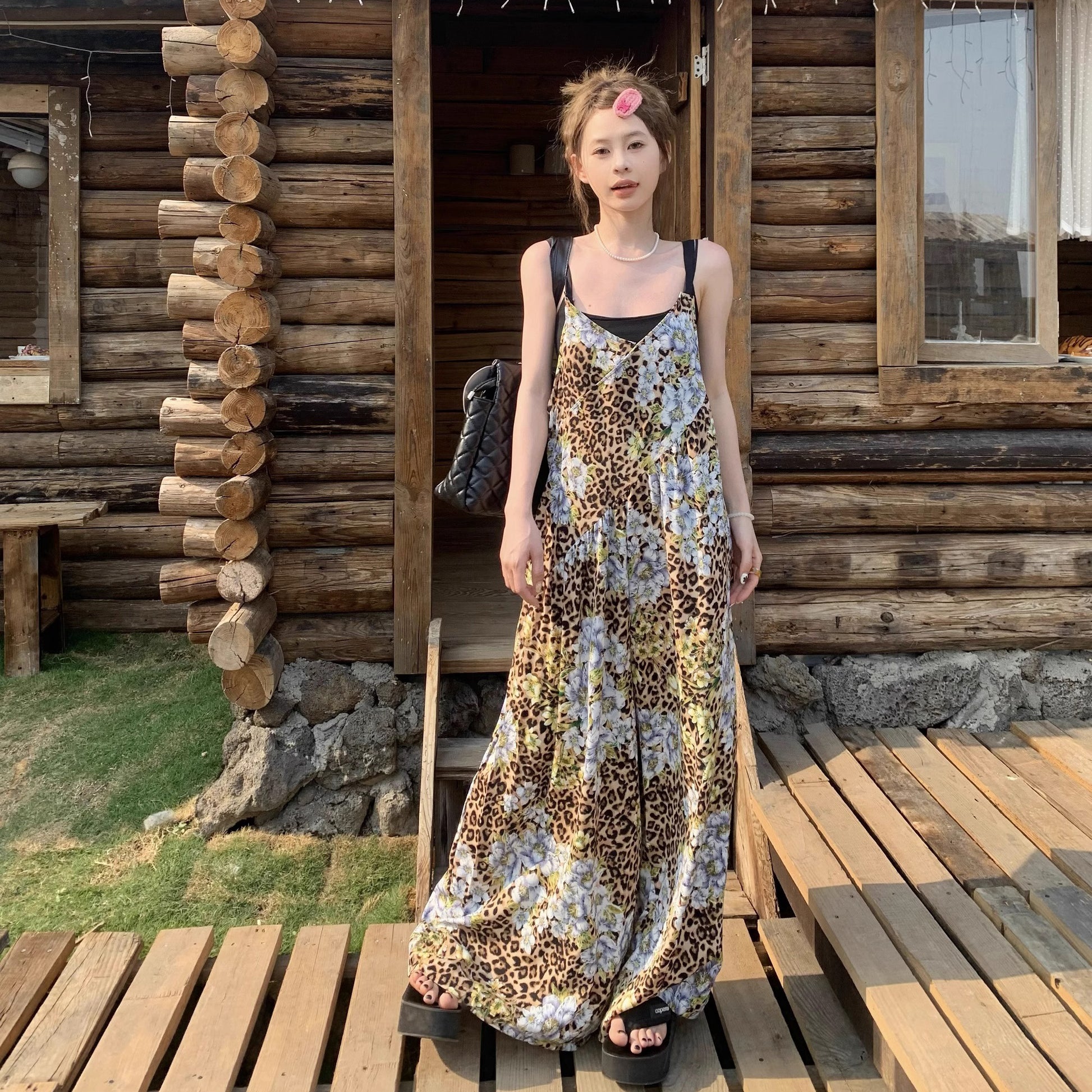 【ボトムス】夏新作 優雅に揺れる 雪青フラワー柄 オーバーサイズサロペット オールインワン【SHシリーズ】