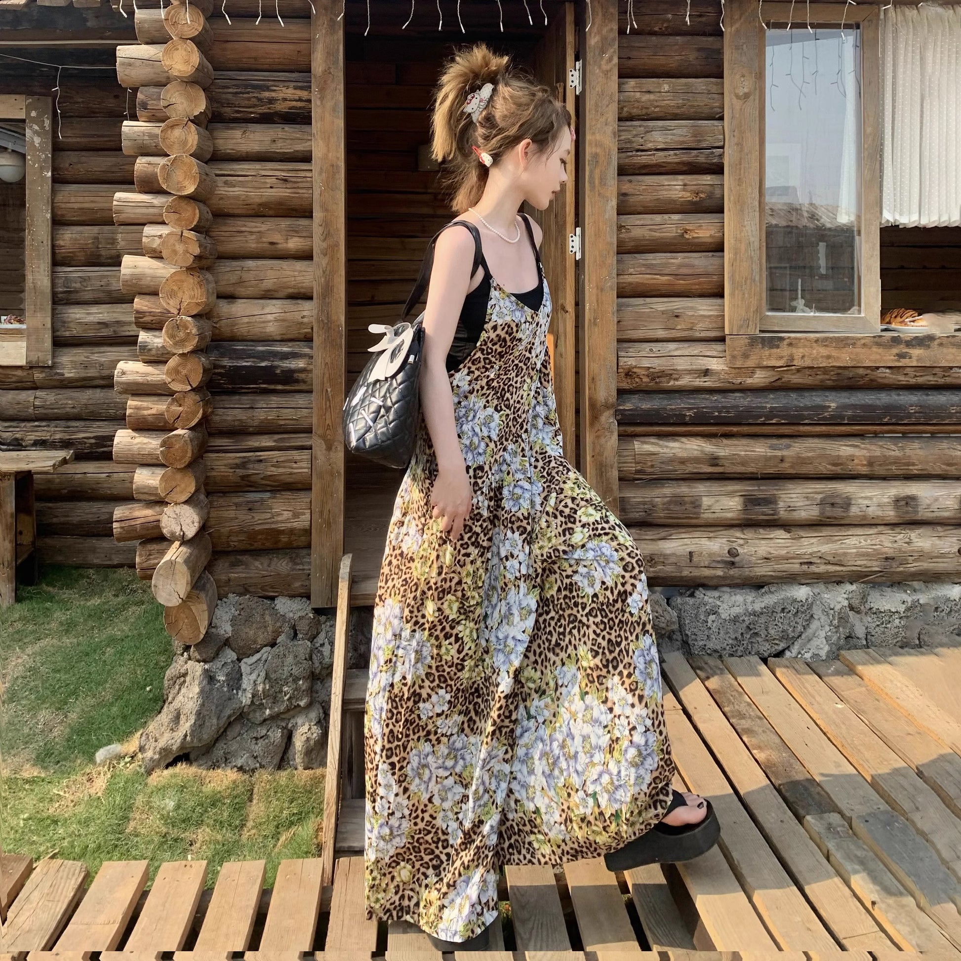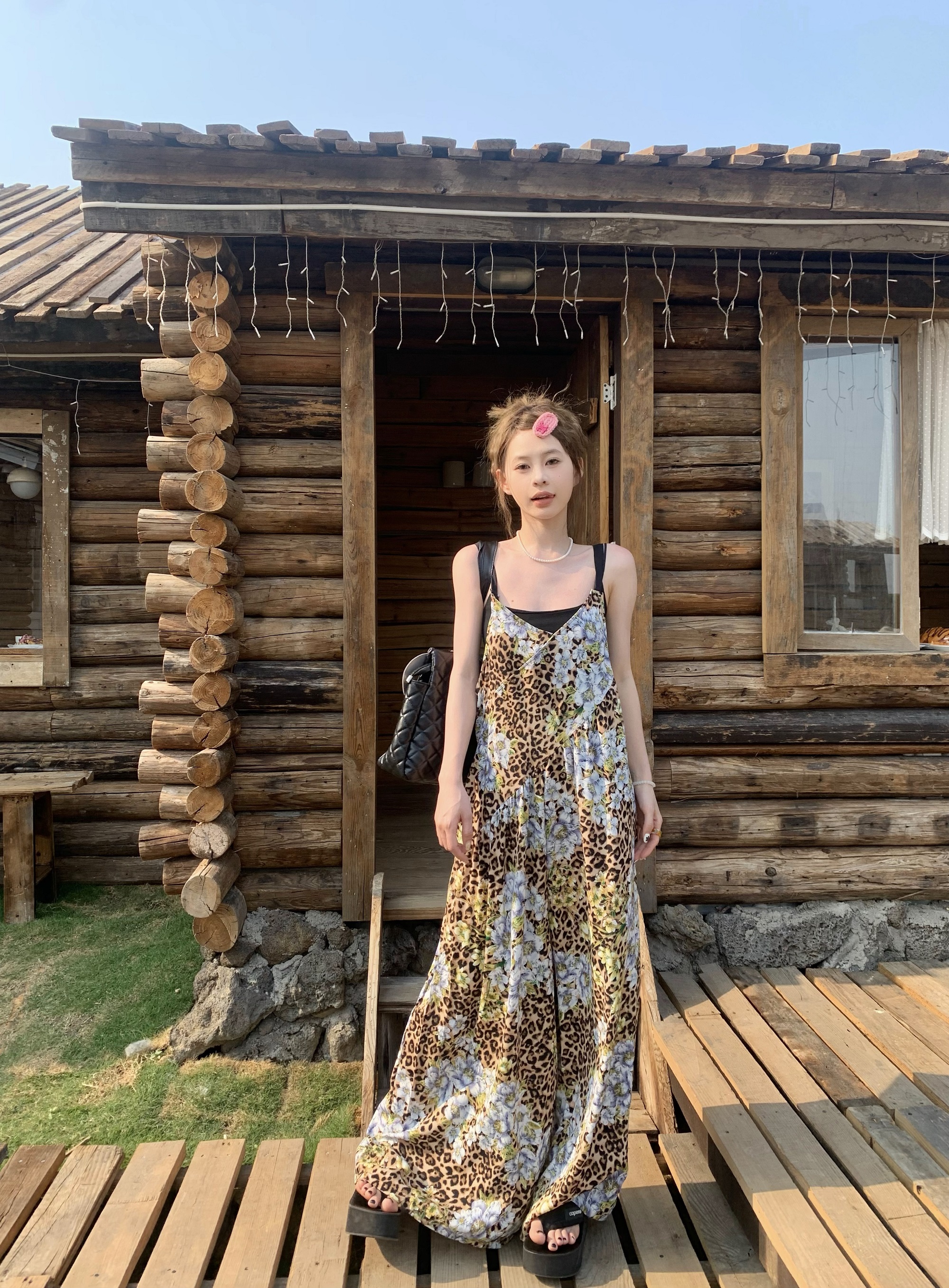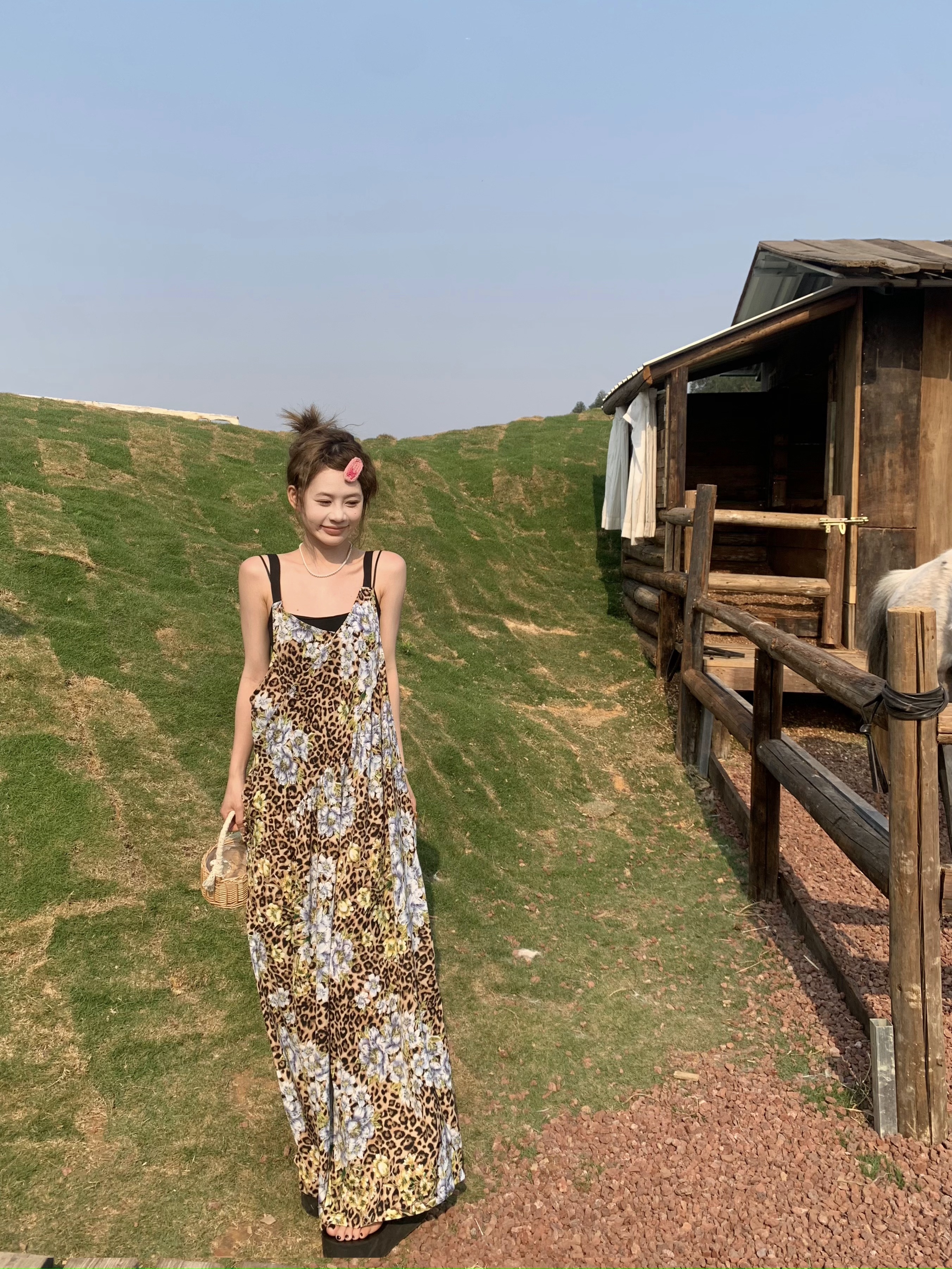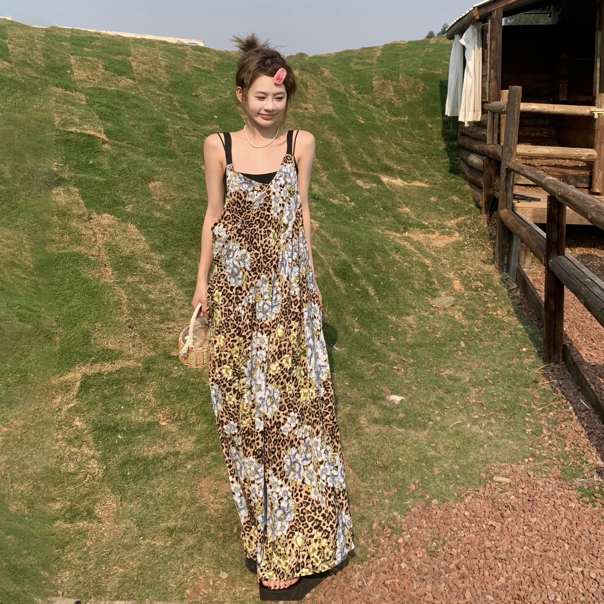【ボトムス】夏新作 優雅に揺れる 雪青フラワー柄 オーバーサイズサロペット オールインワン【SHシリーズ】