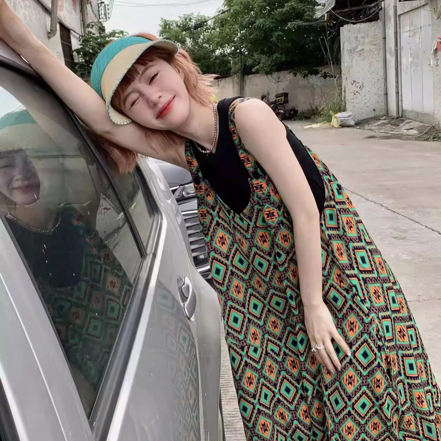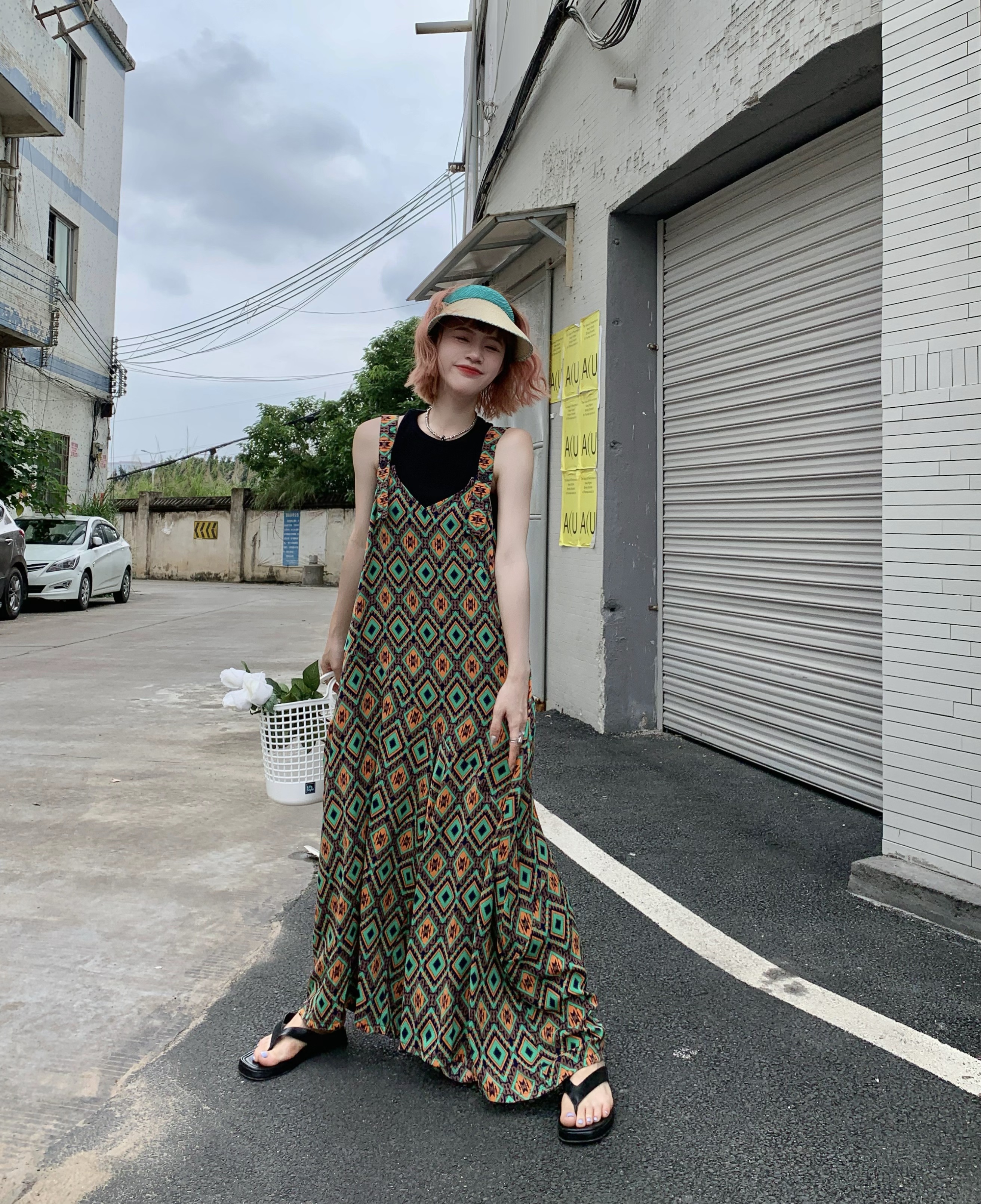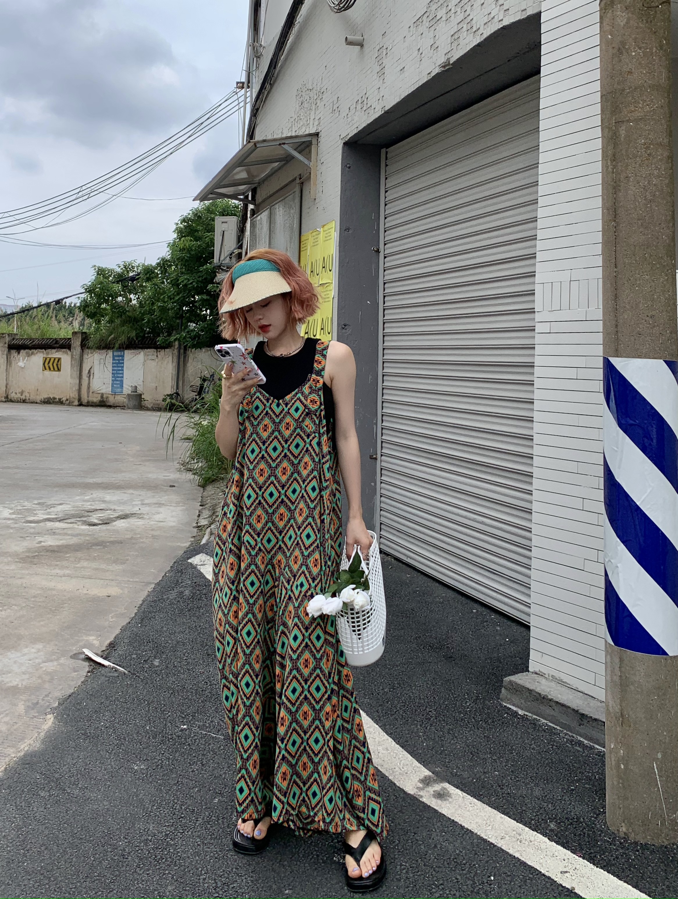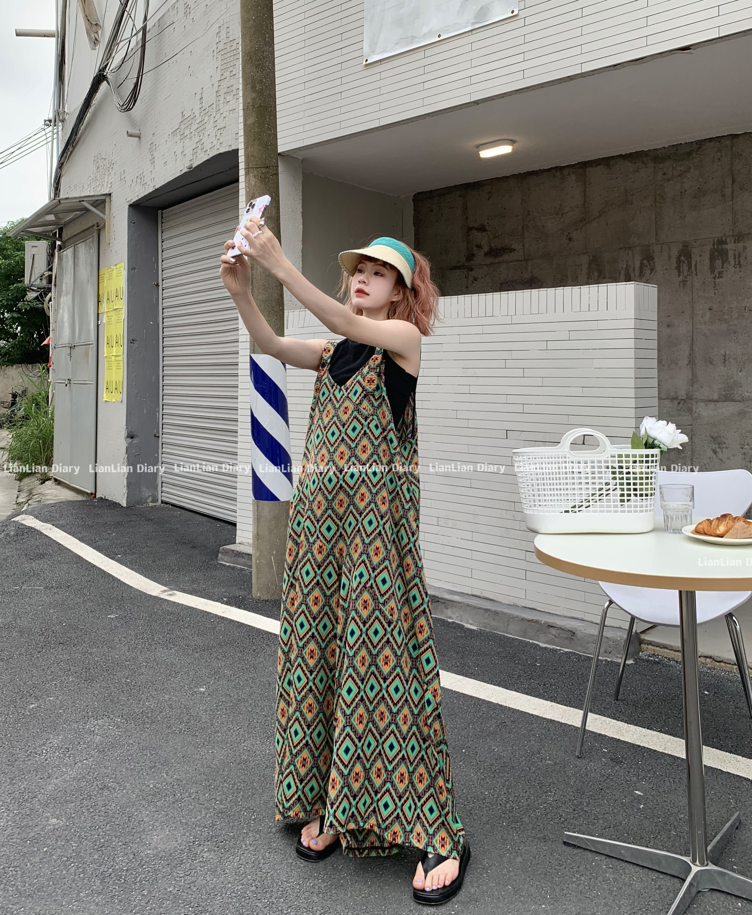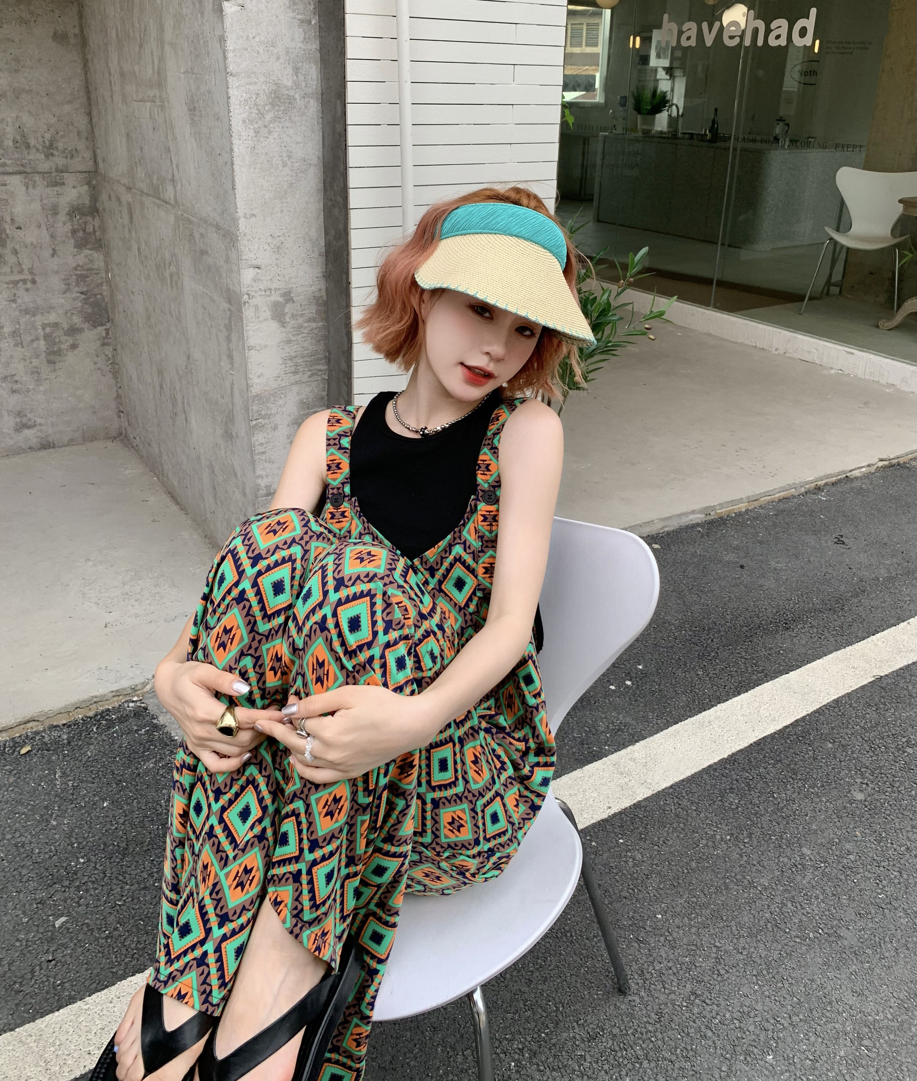 【ボトムス】夏新作 文芸ムードたっぷり 菱形チェック柄 オーバーサイズサロペットスカンツ オールインワン【SHシリーズ】