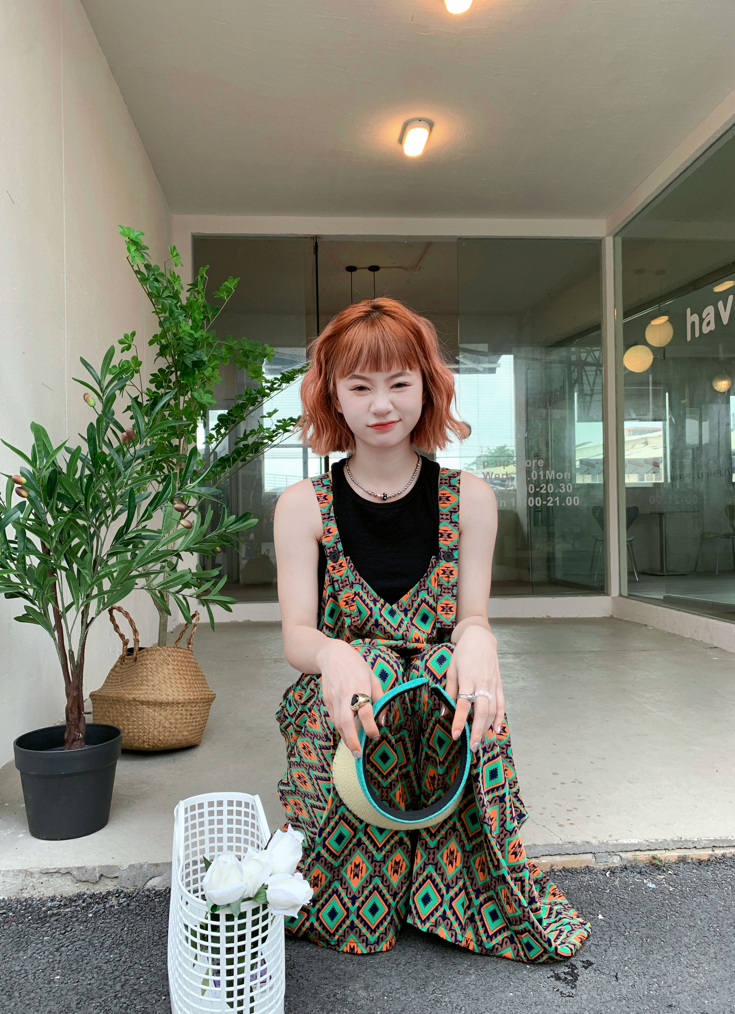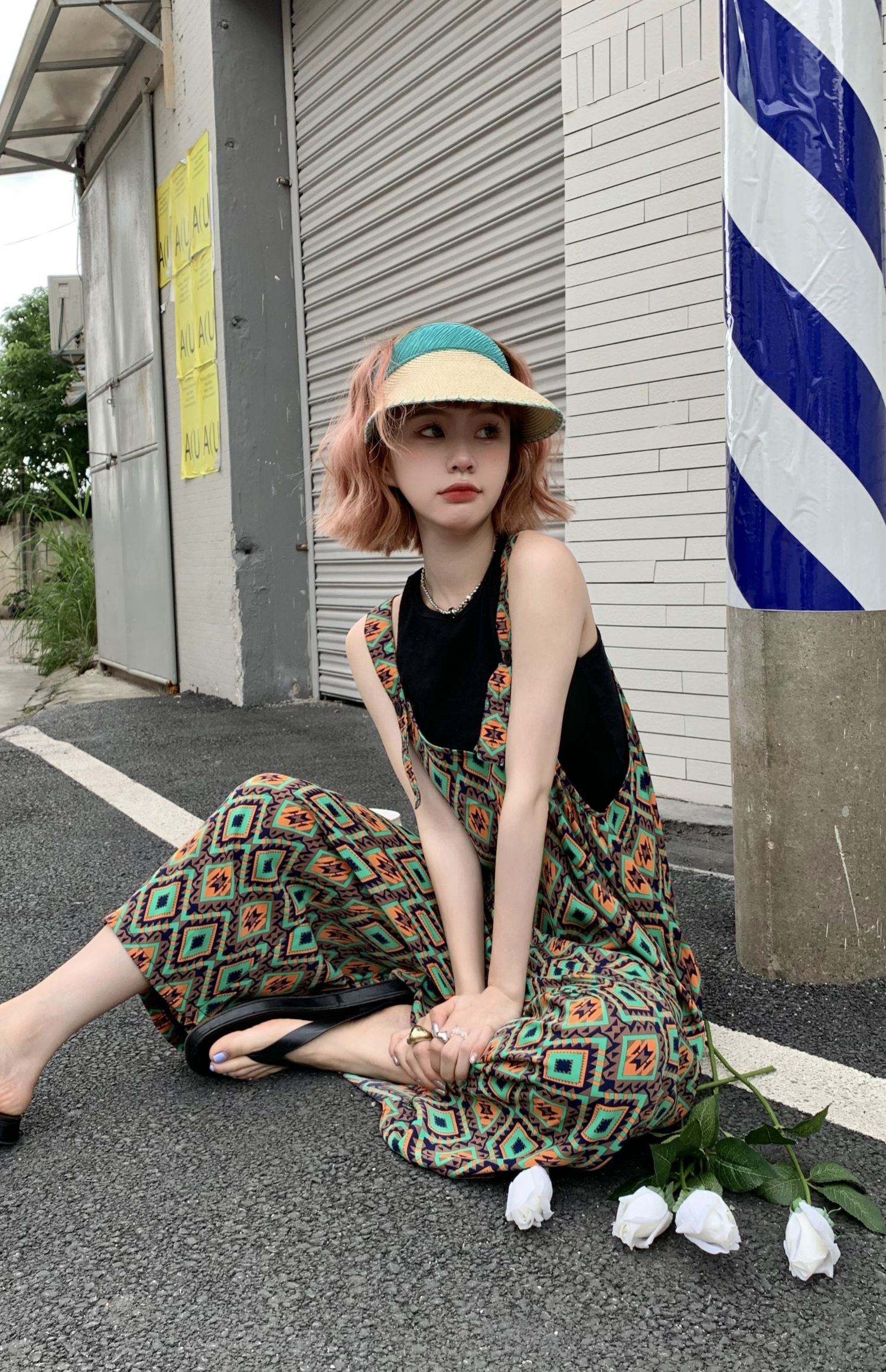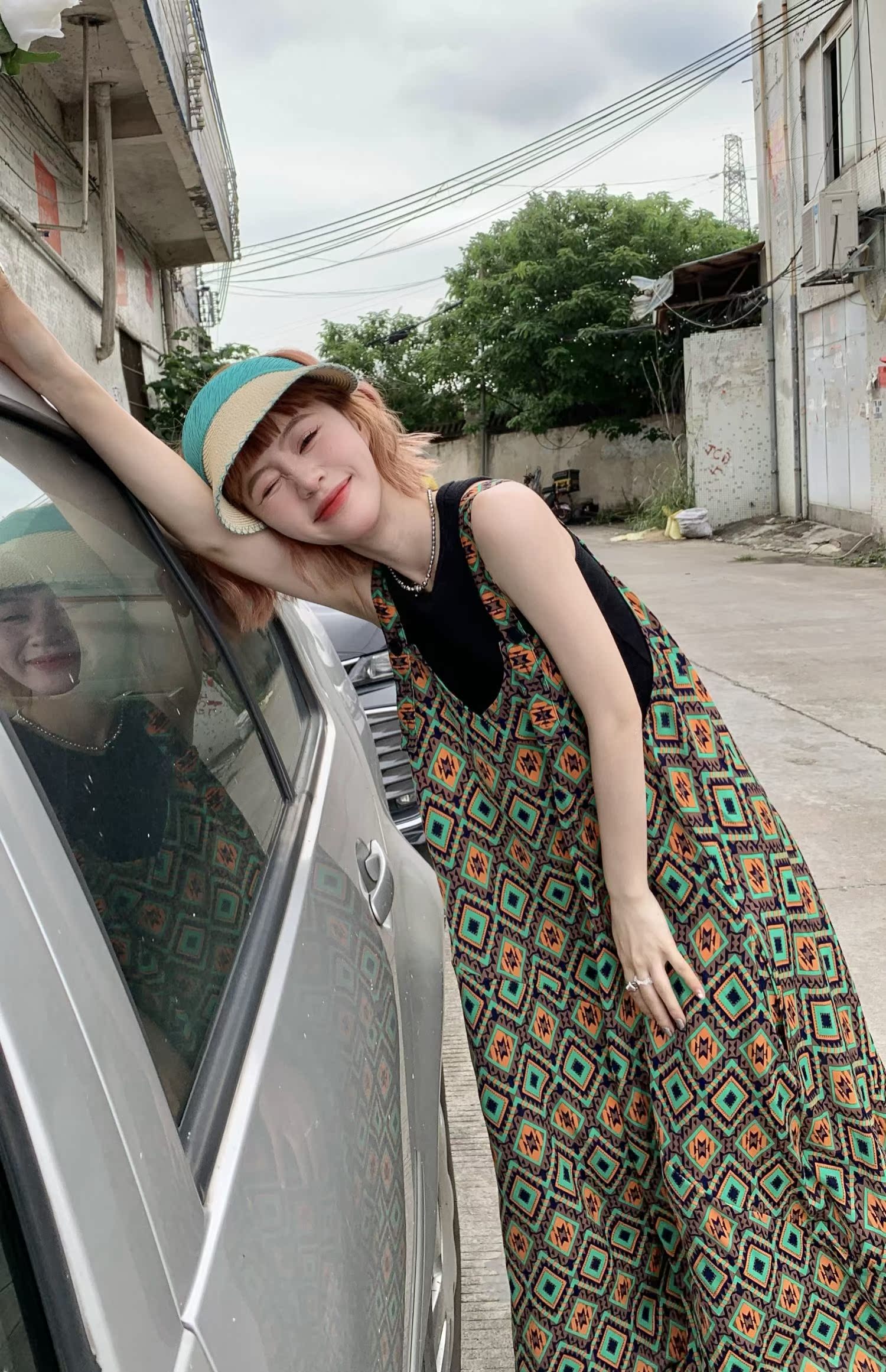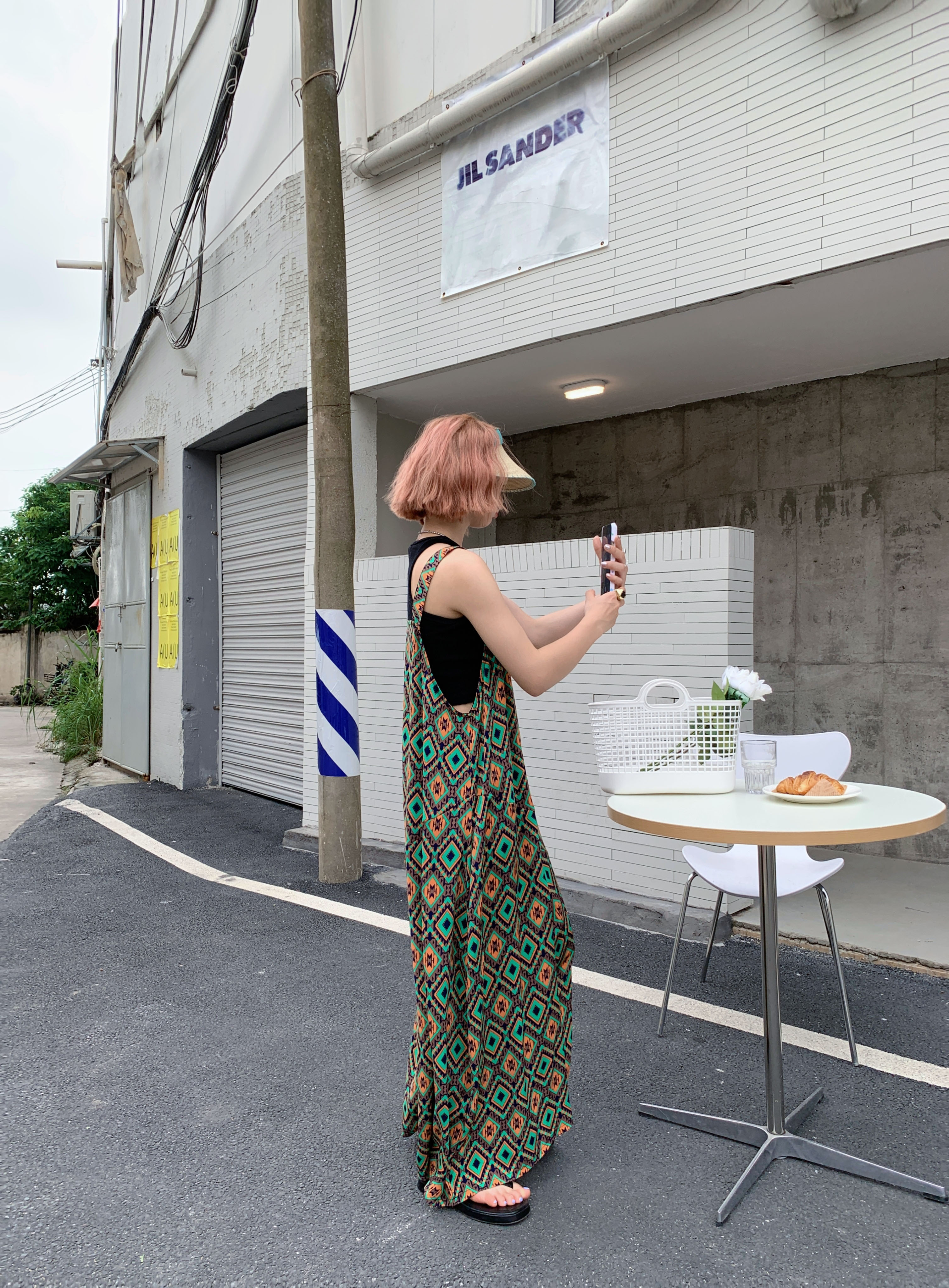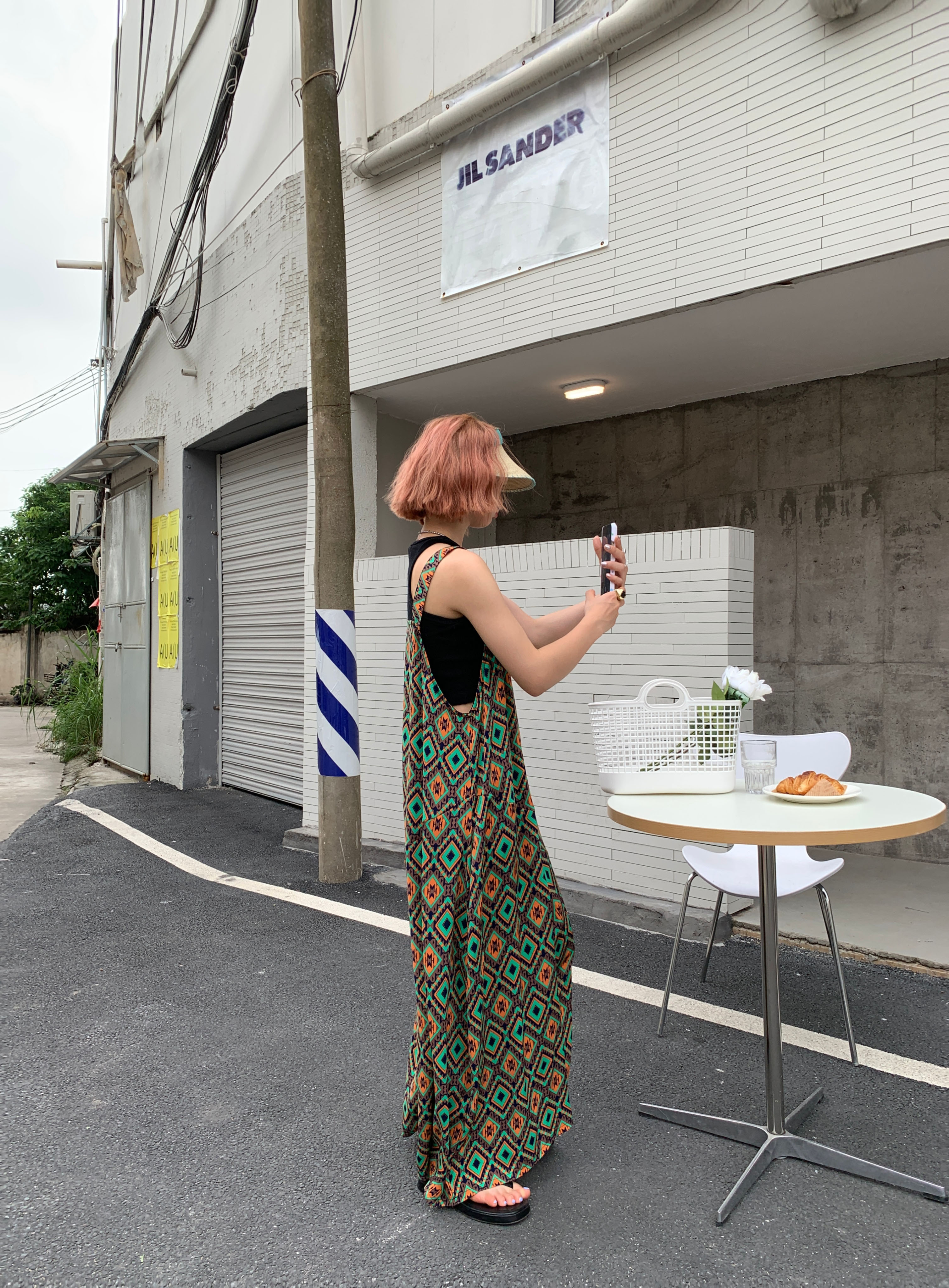 【ボトムス】夏新作 文芸ムードたっぷり 菱形チェック柄 オーバーサイズサロペットスカンツ オールインワン【SHシリーズ】