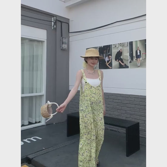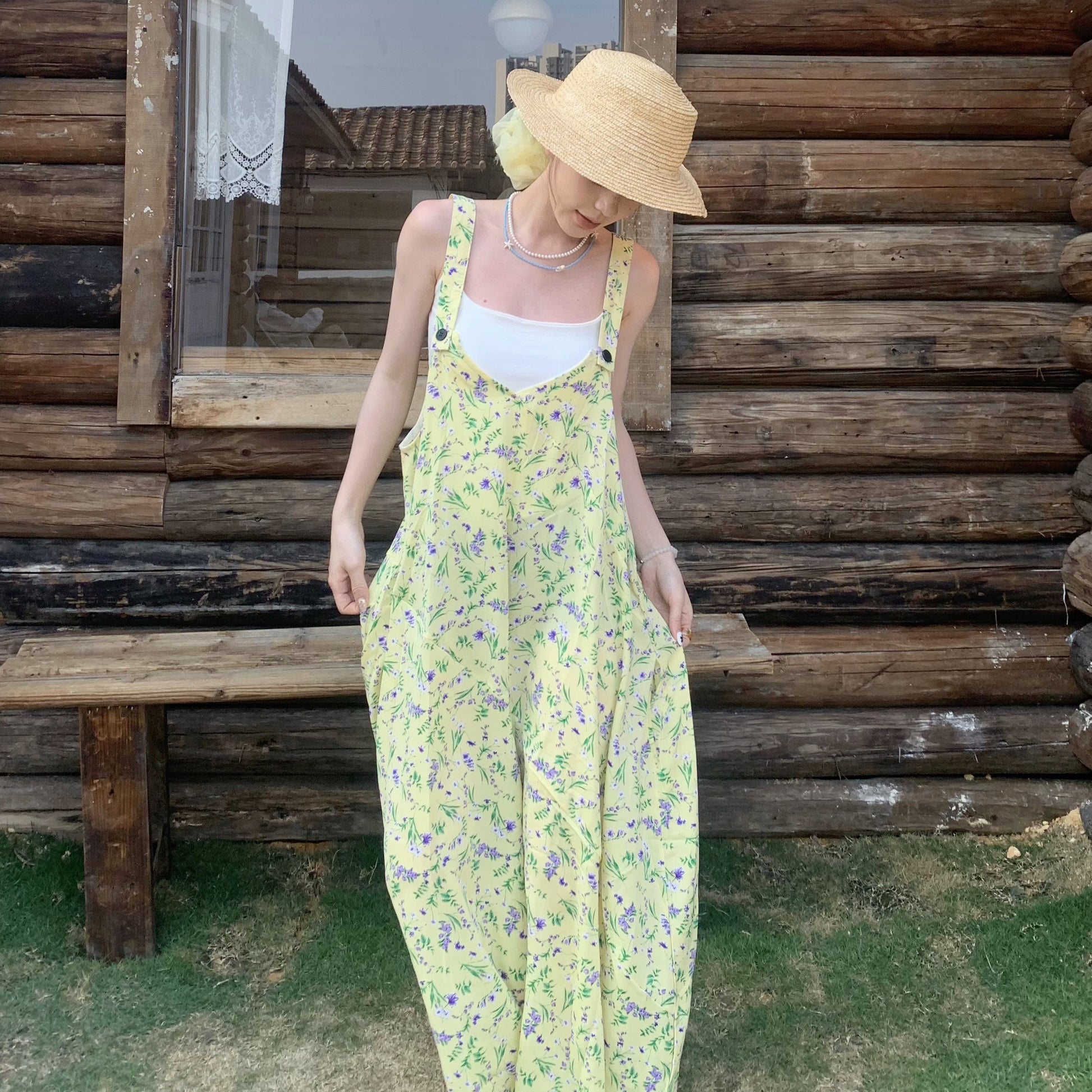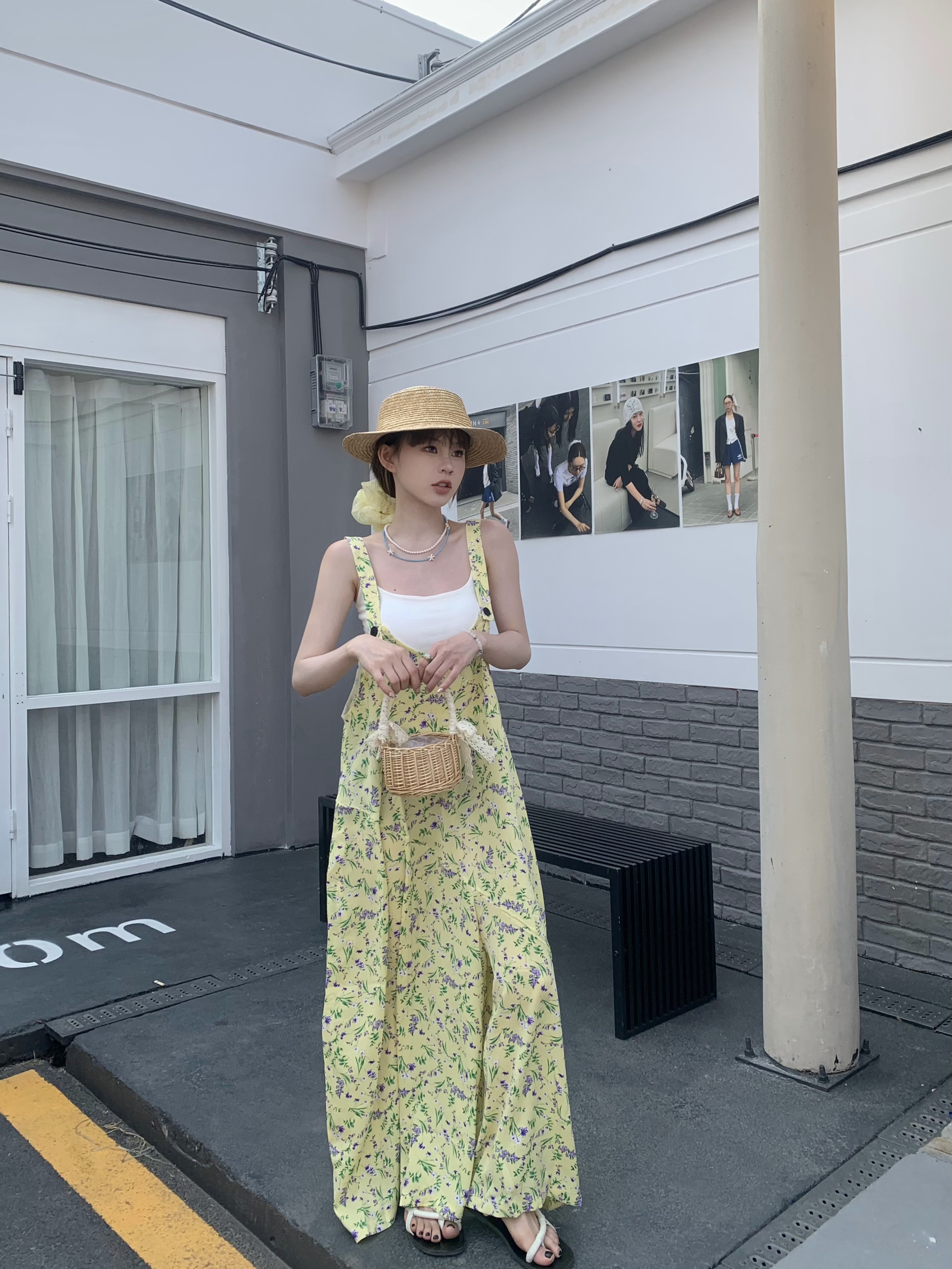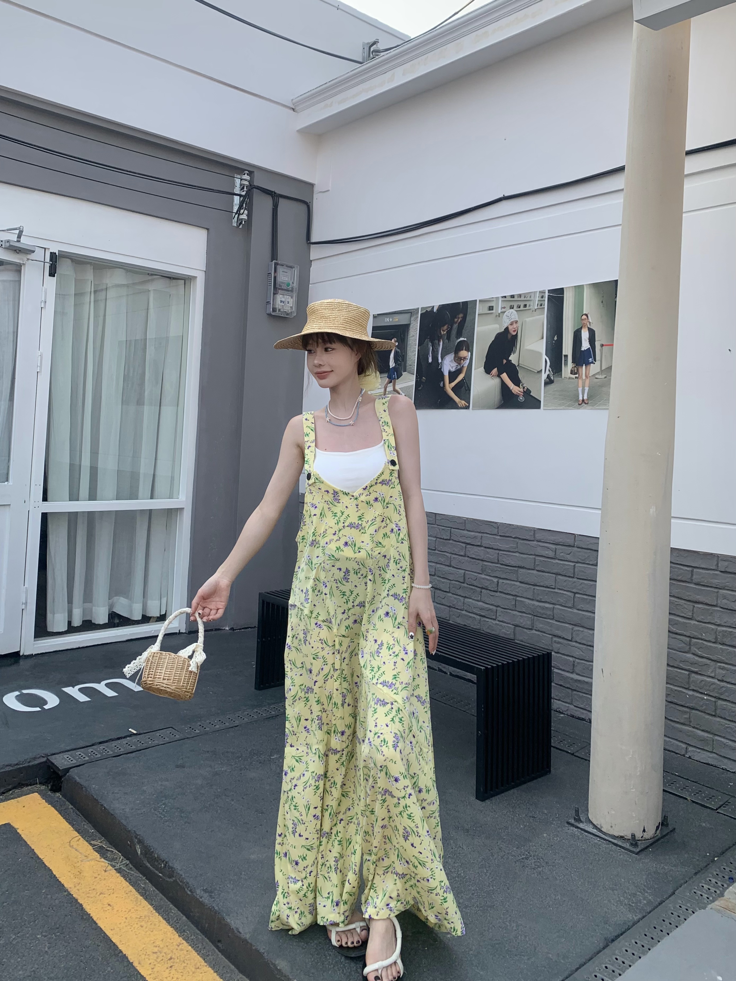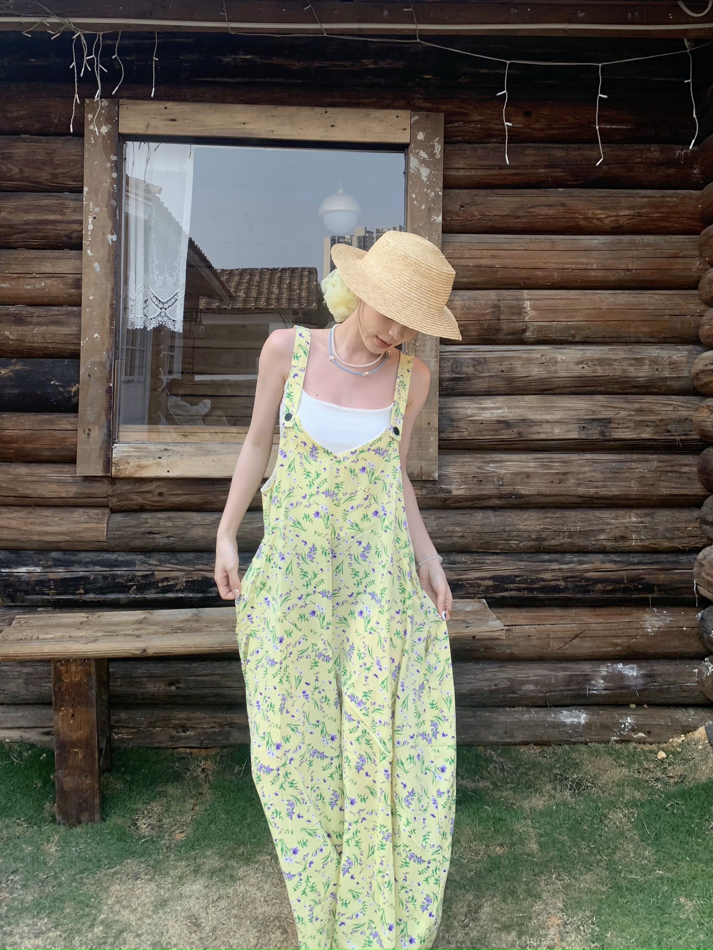 【ボトムス】夏新作 清涼感たっぷり 淡レモンカラー Vネック オーバーサイズサロペット オールインワン【SHシリーズ】