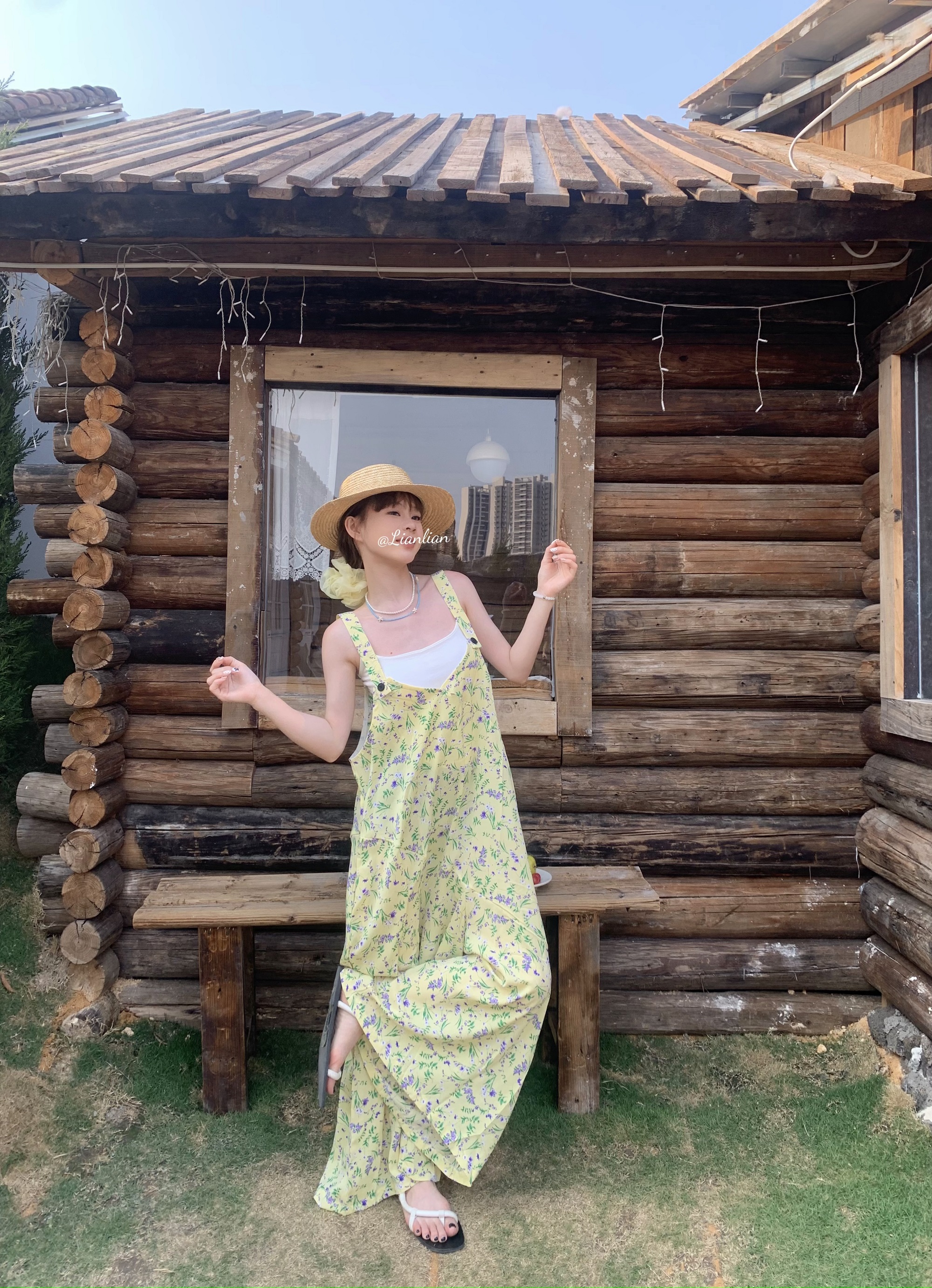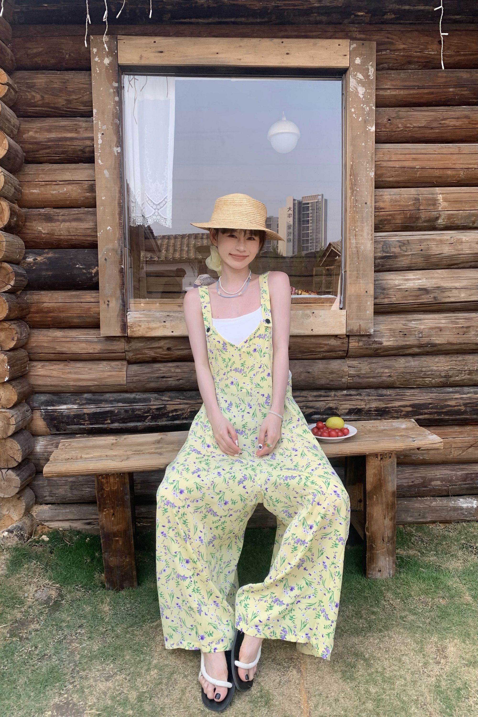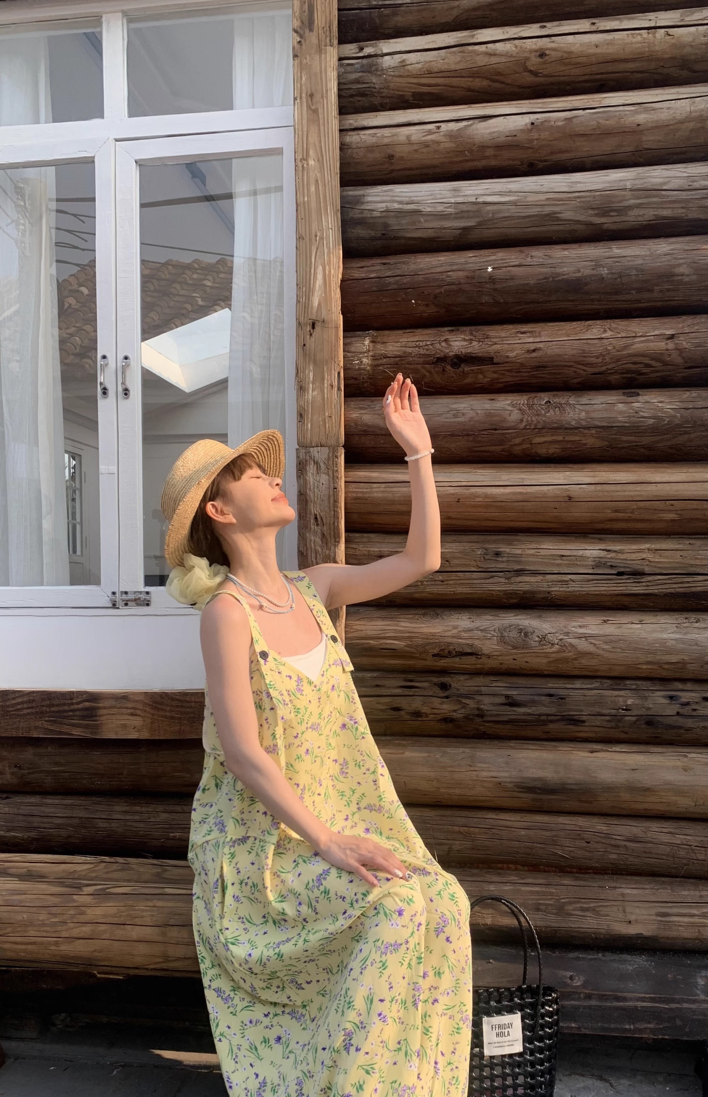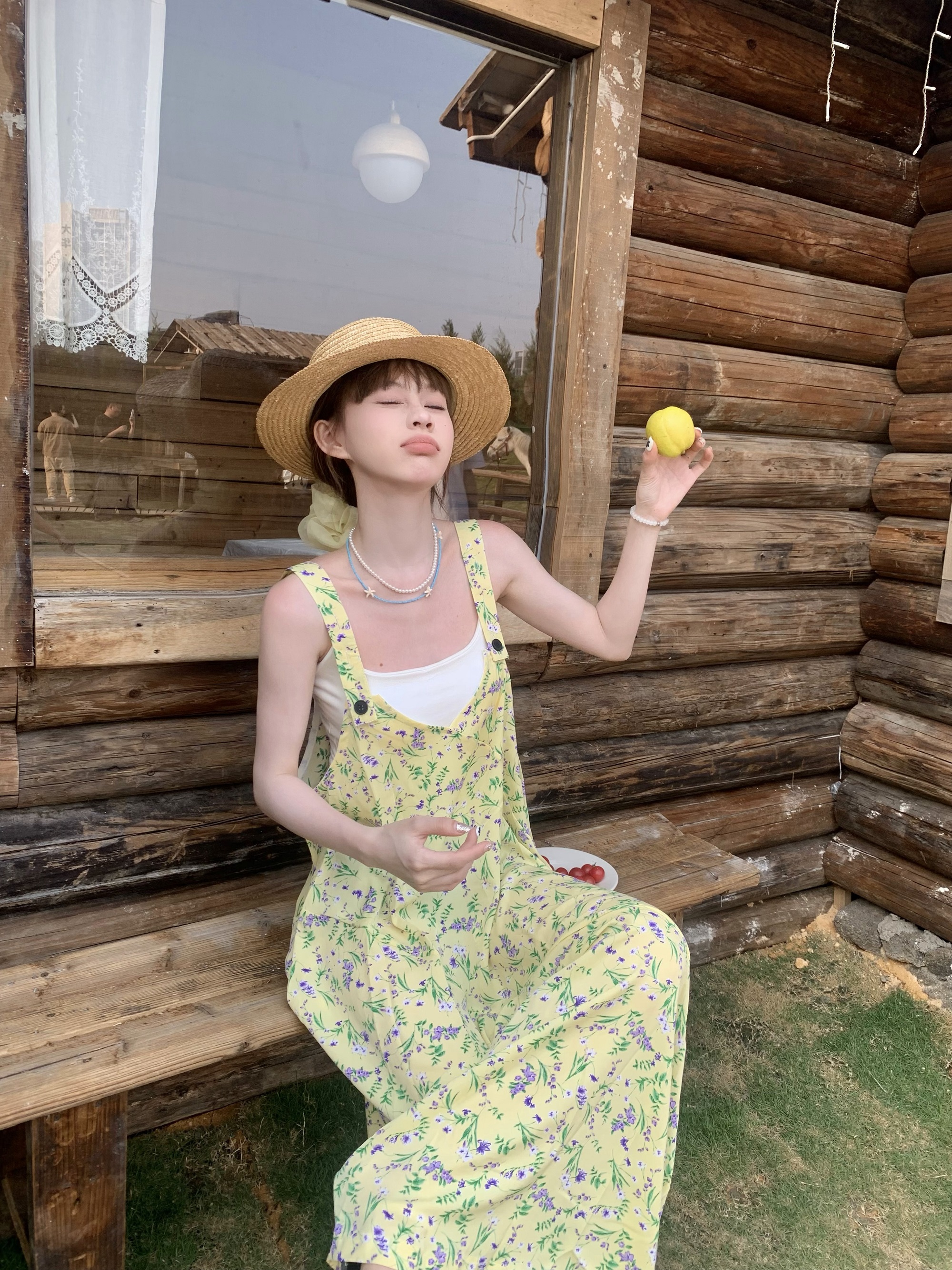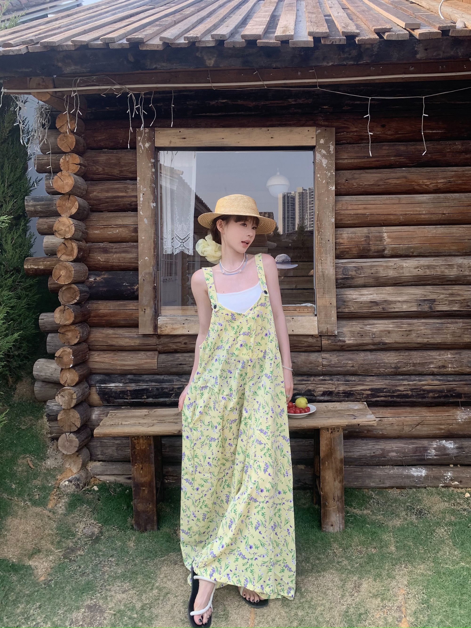 【ボトムス】夏新作 清涼感たっぷり 淡レモンカラー Vネック オーバーサイズサロペット オールインワン【SHシリーズ】