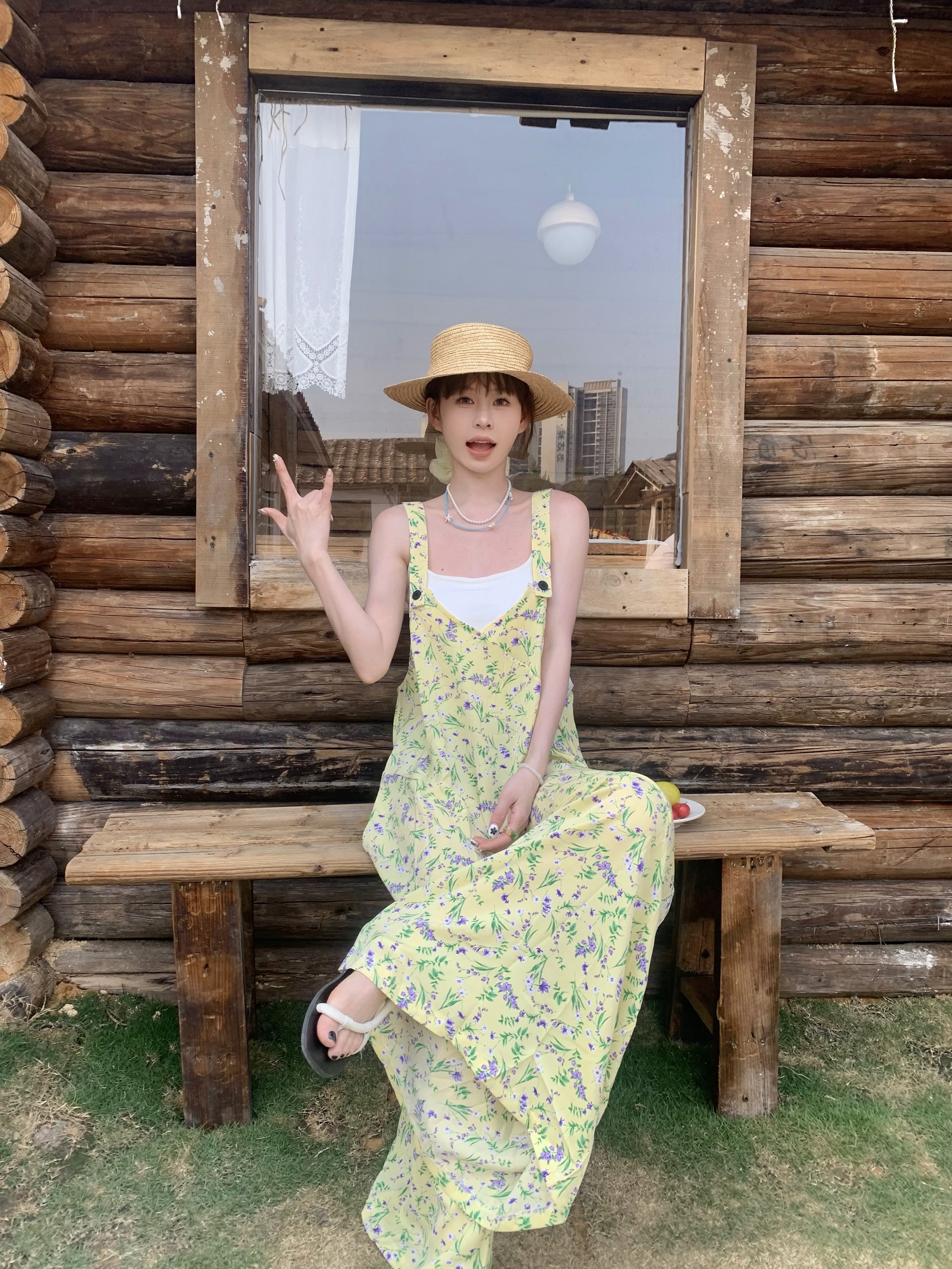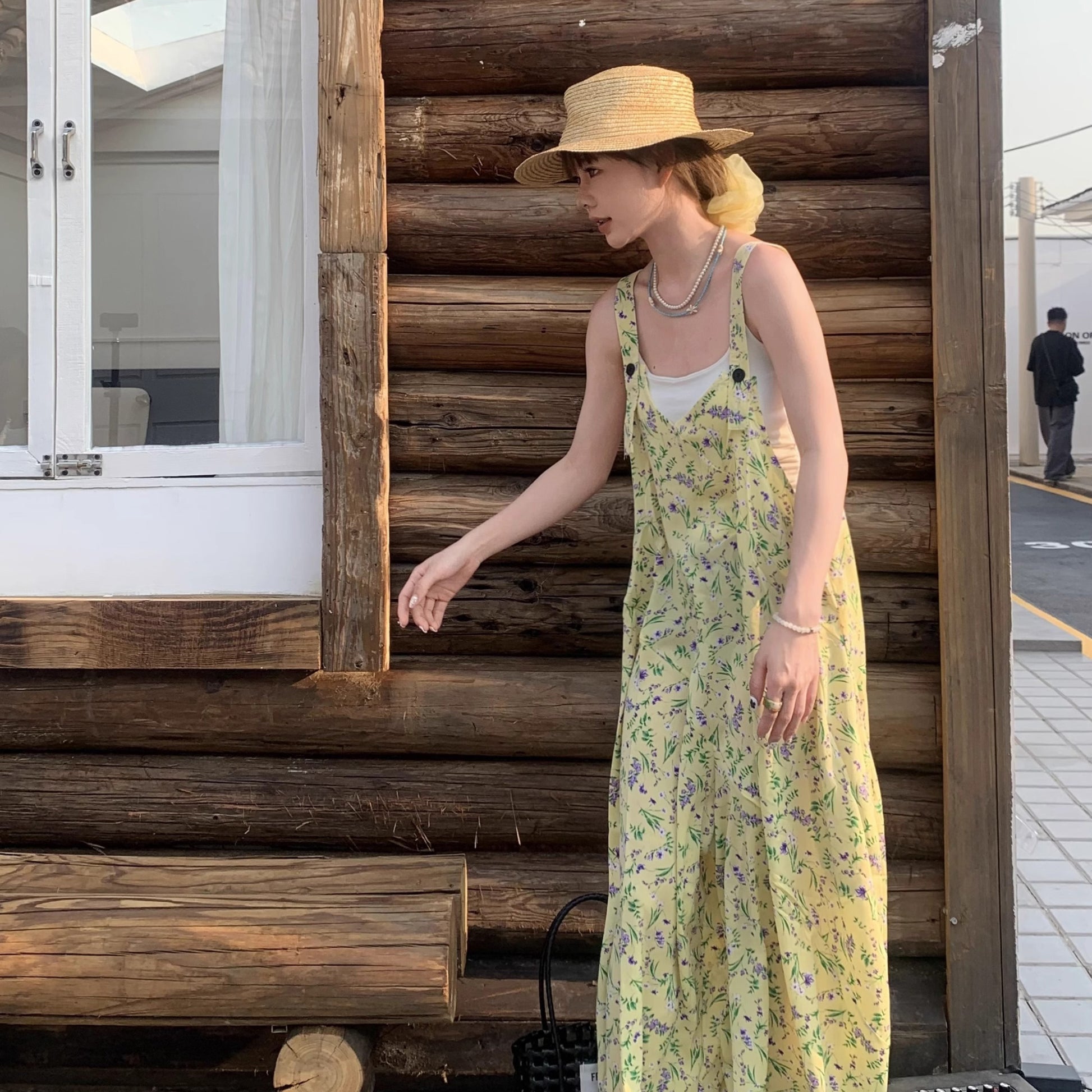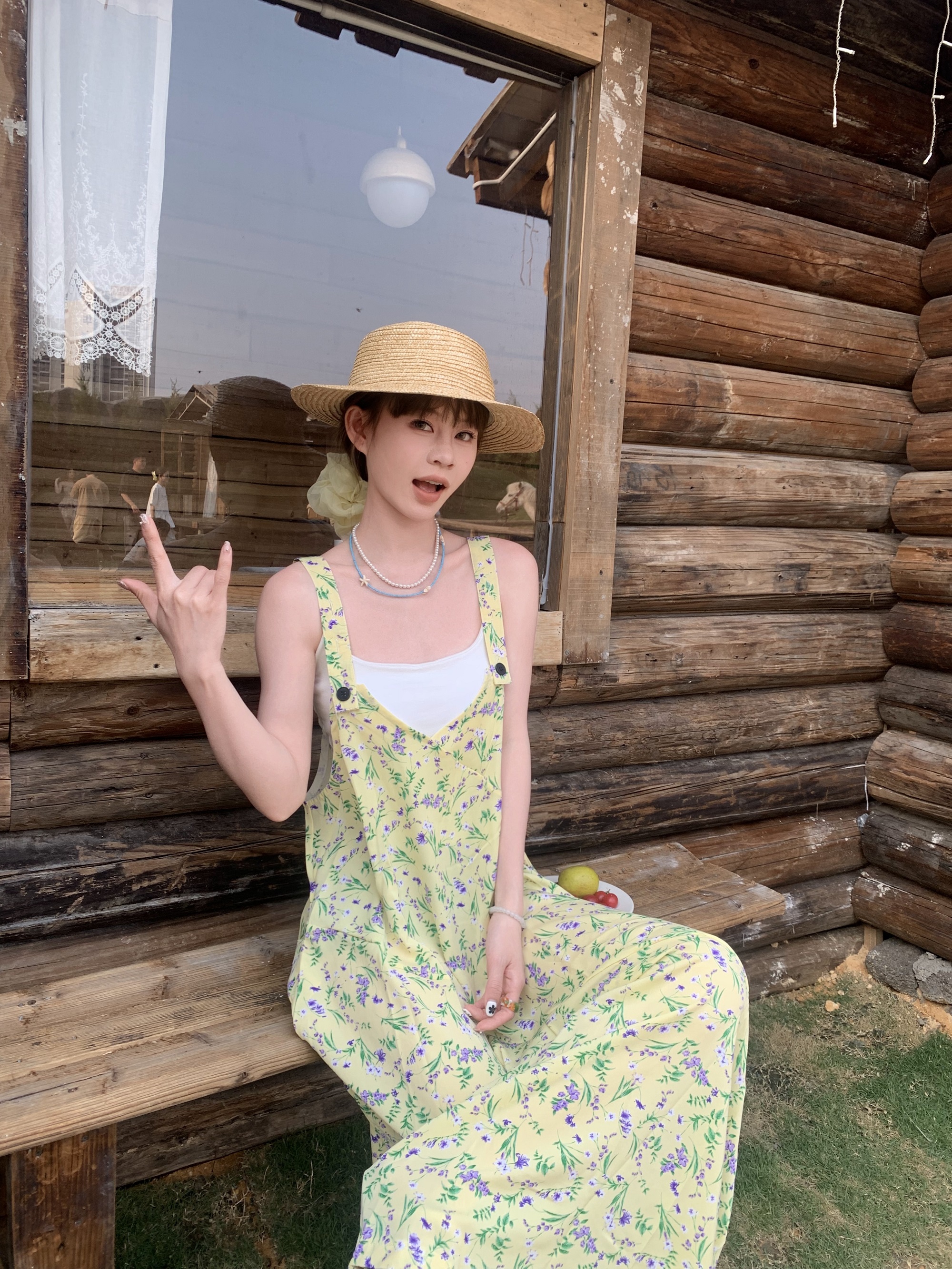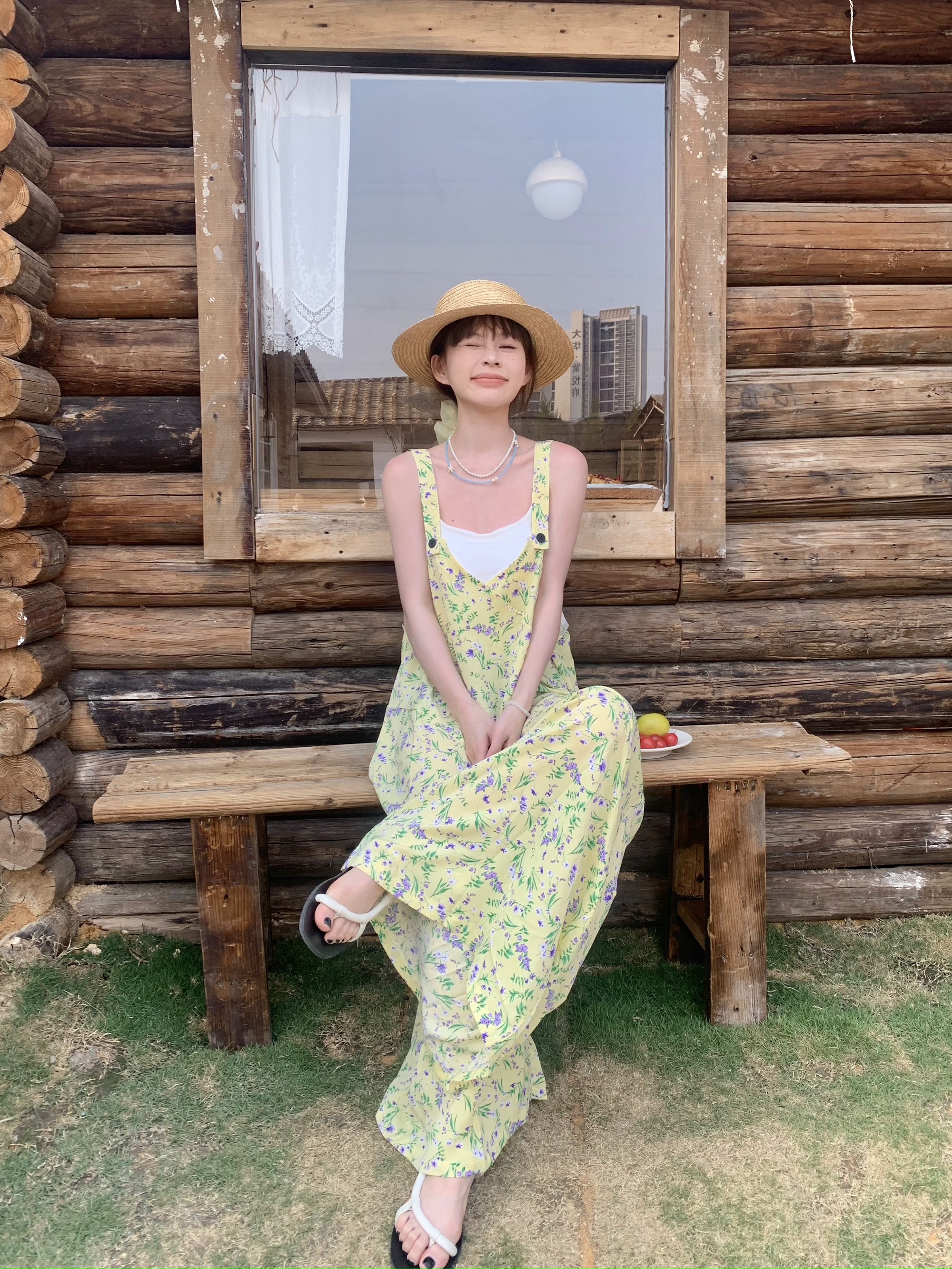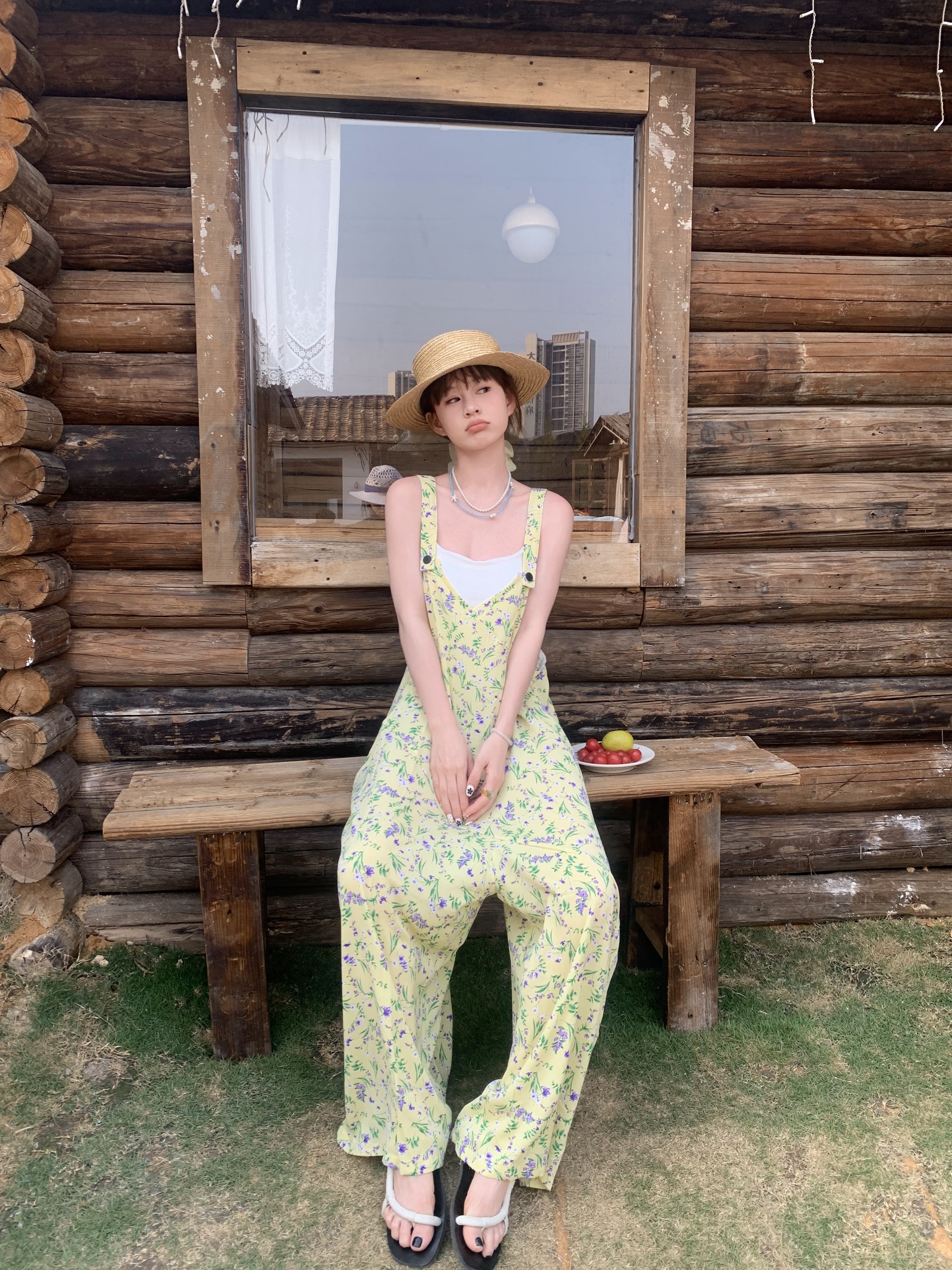 【ボトムス】夏新作 清涼感たっぷり 淡レモンカラー Vネック オーバーサイズサロペット オールインワン【SHシリーズ】