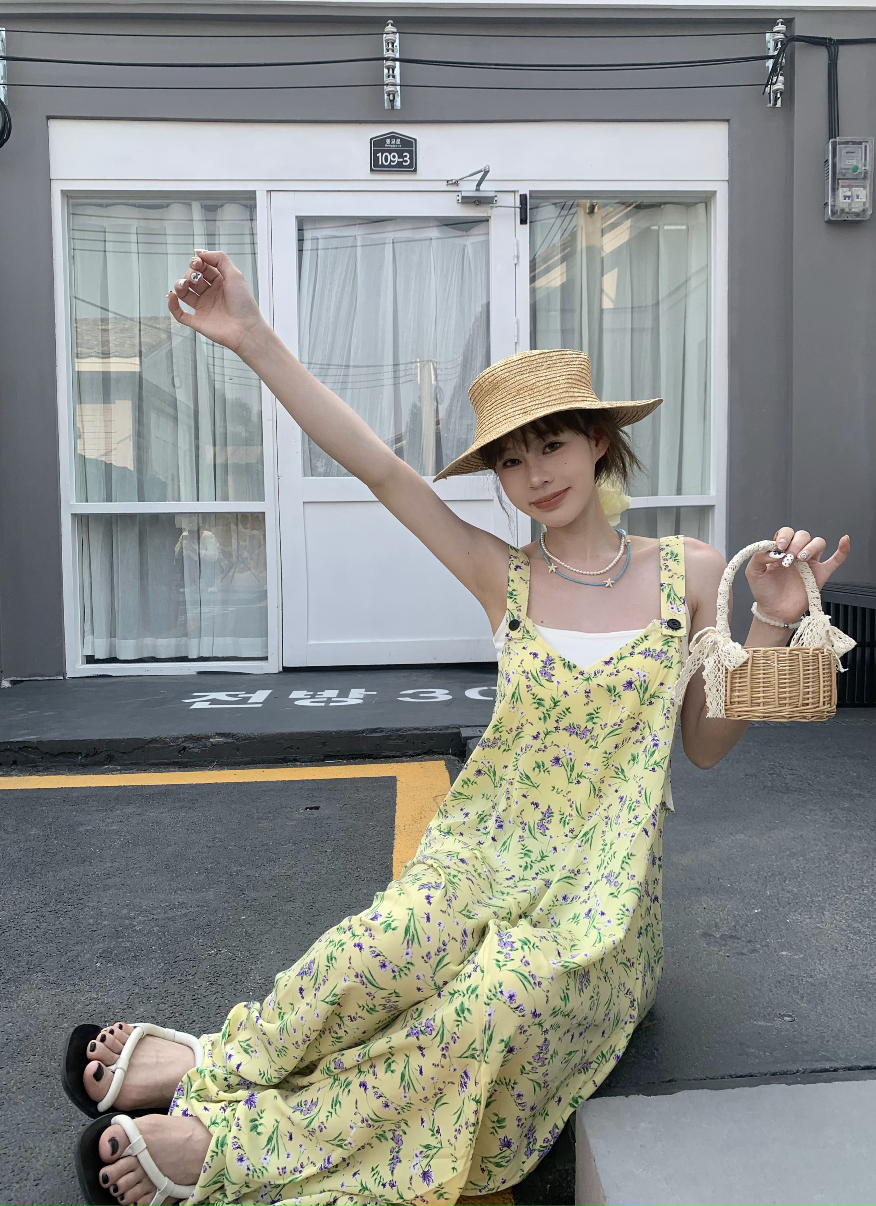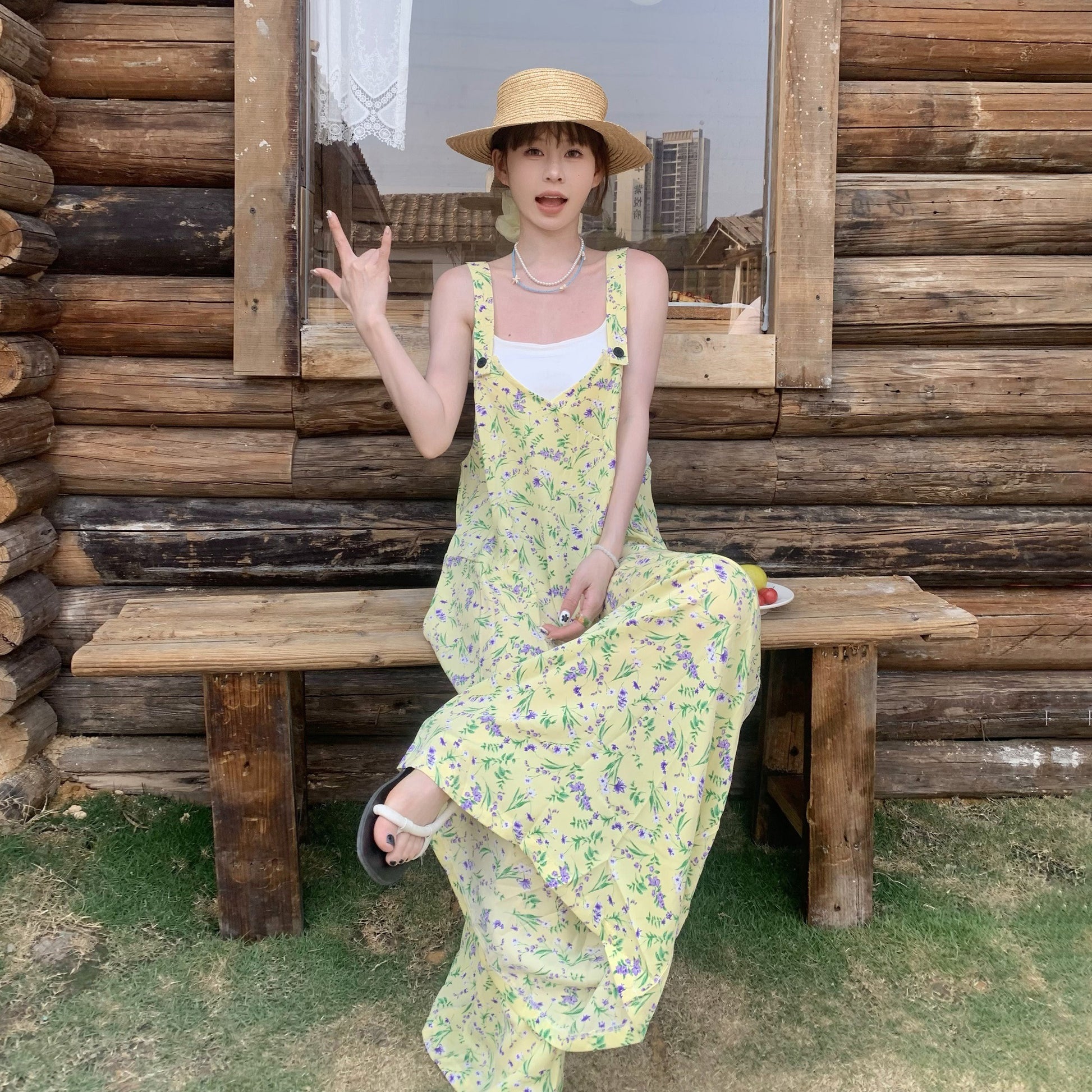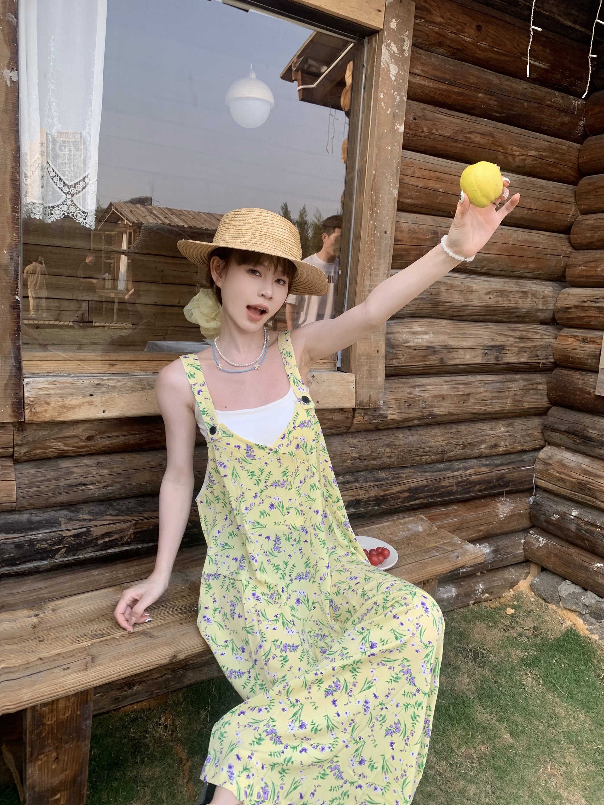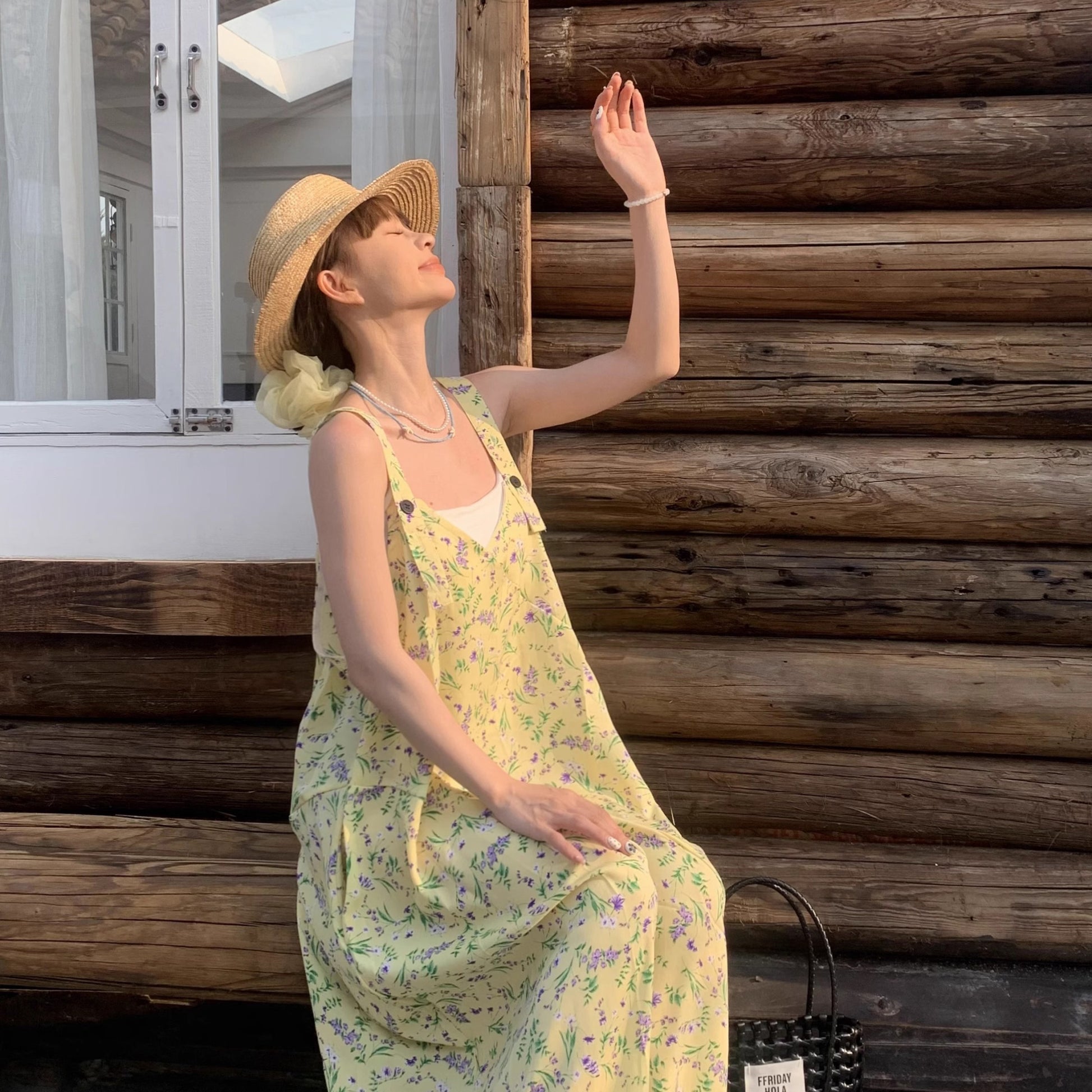 【ボトムス】夏新作 清涼感たっぷり 淡レモンカラー Vネック オーバーサイズサロペット オールインワン【SHシリーズ】