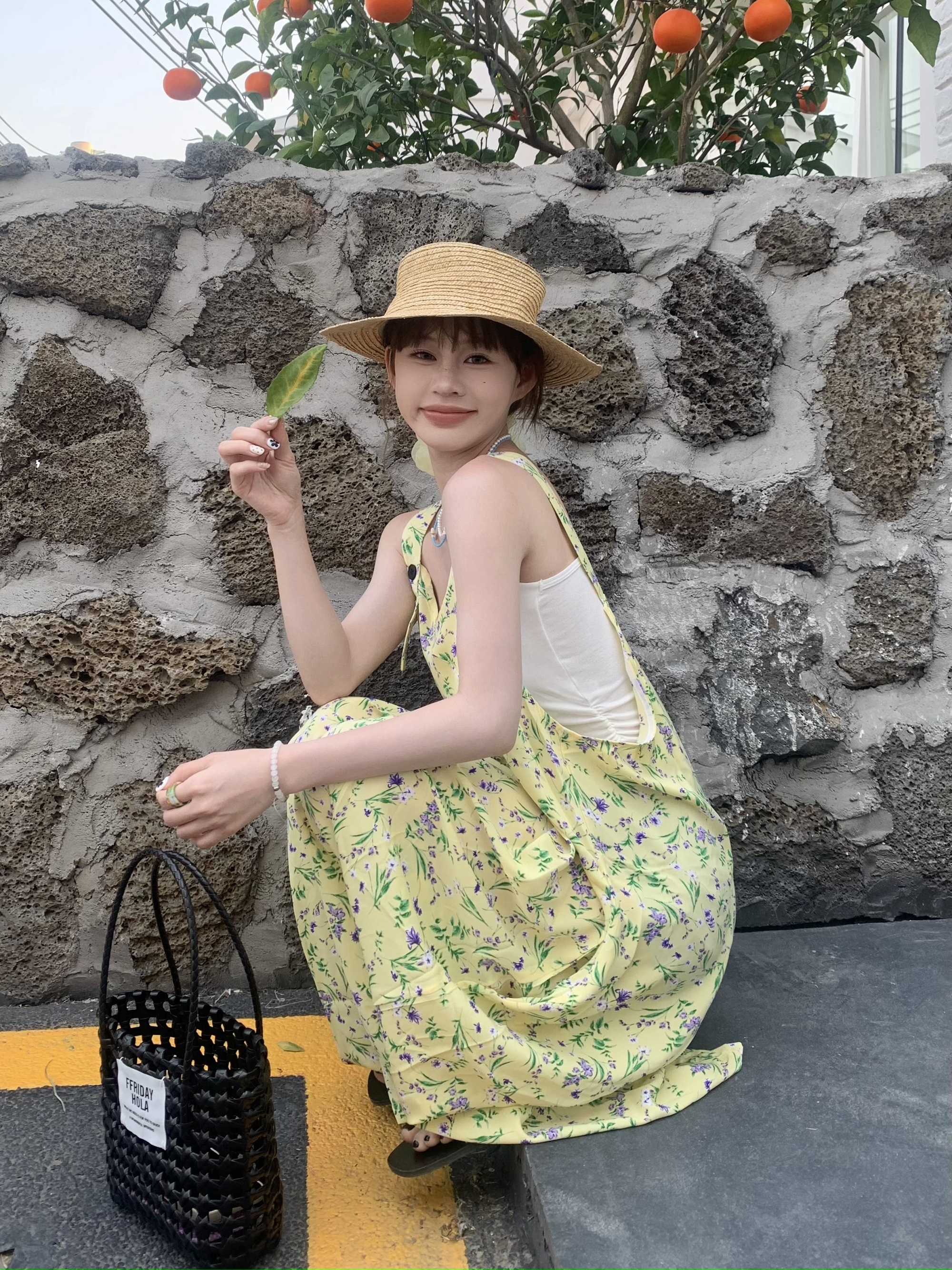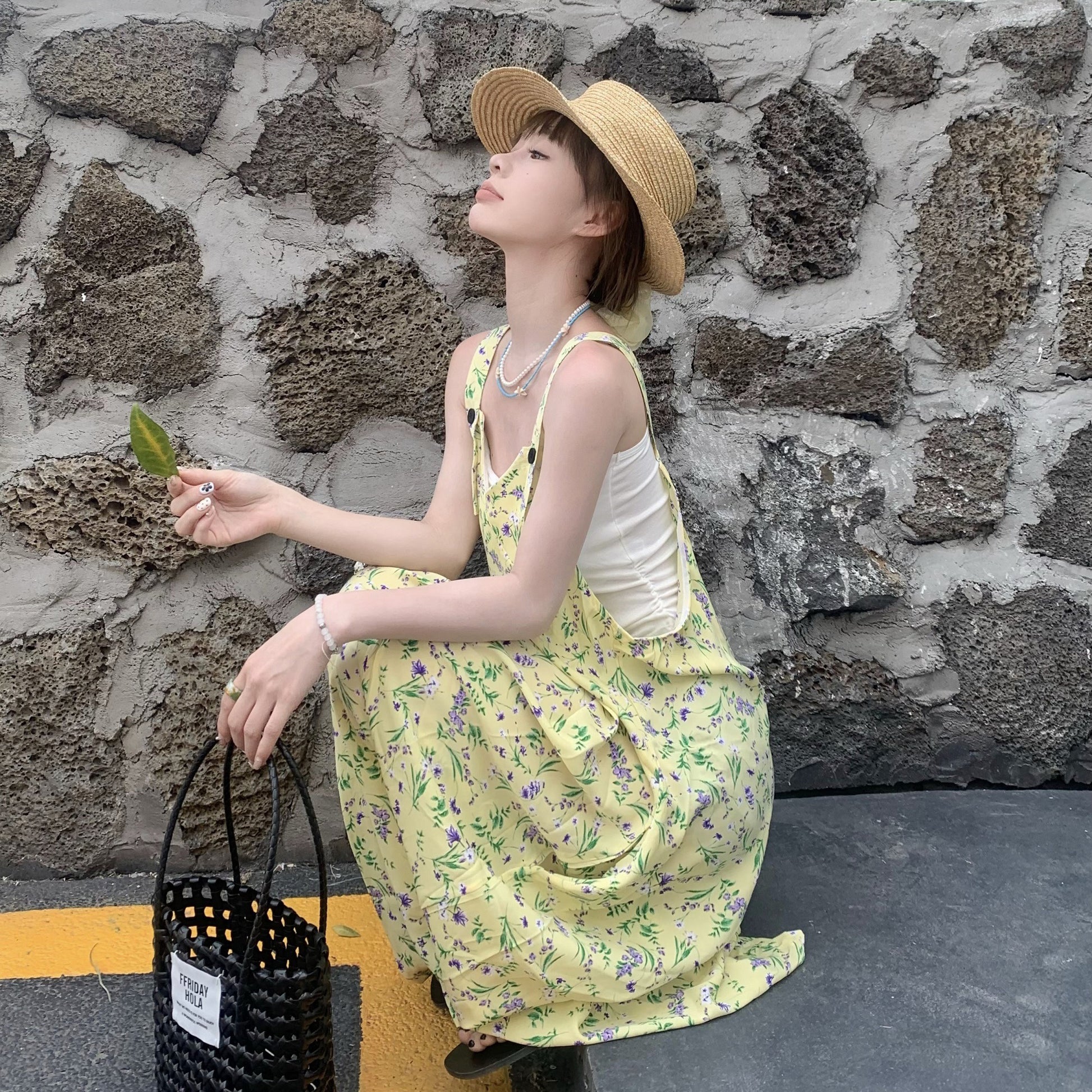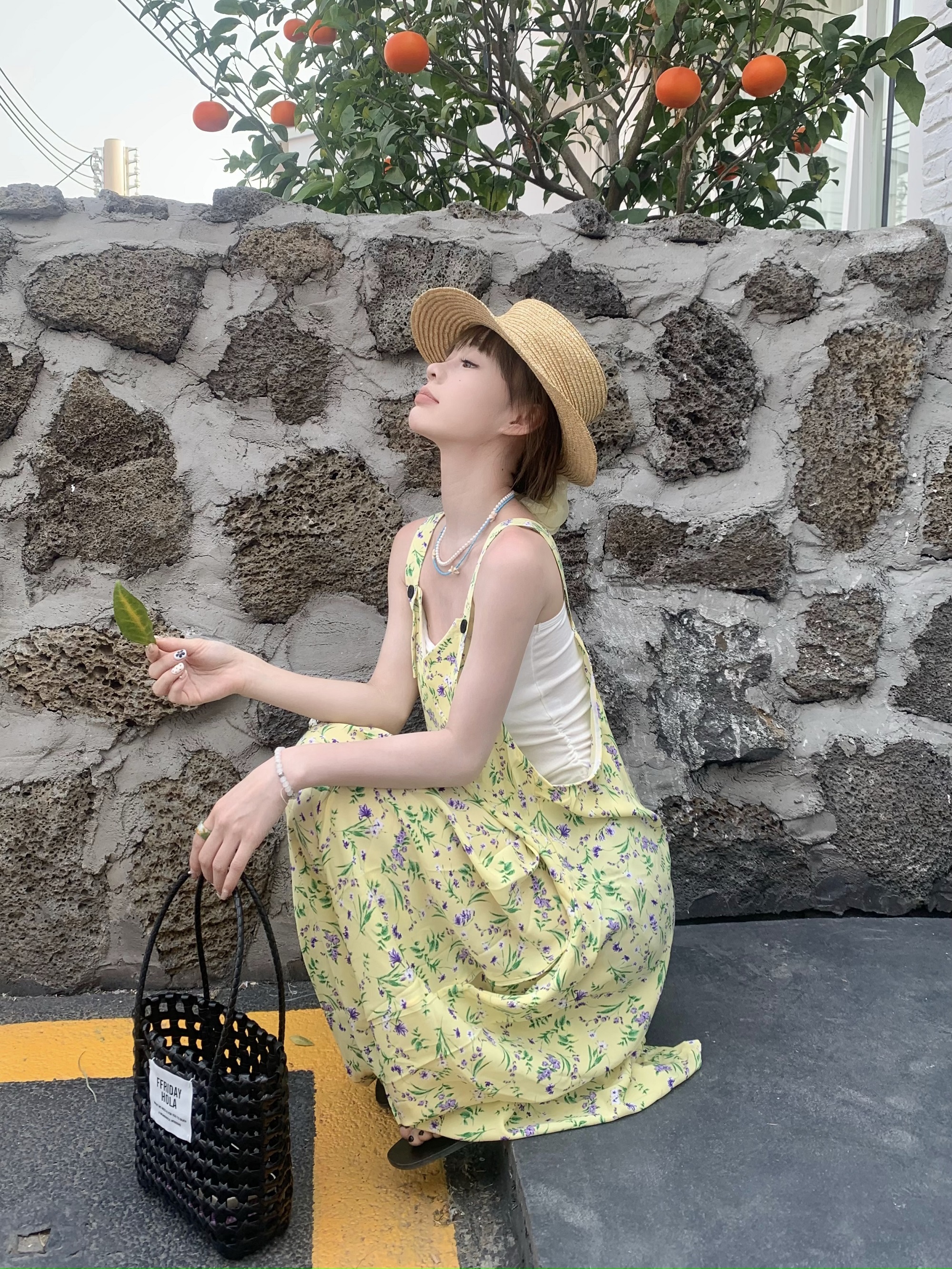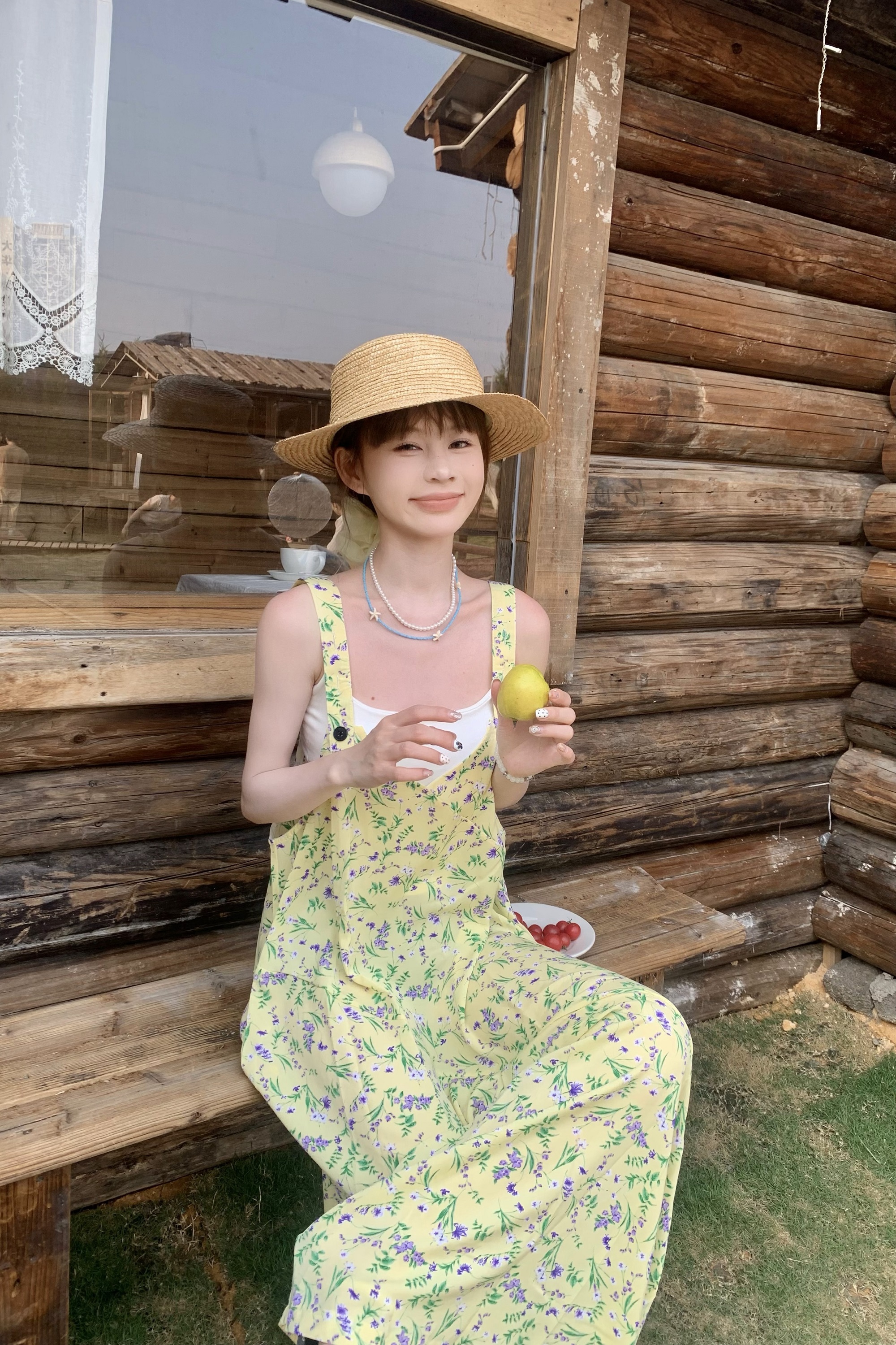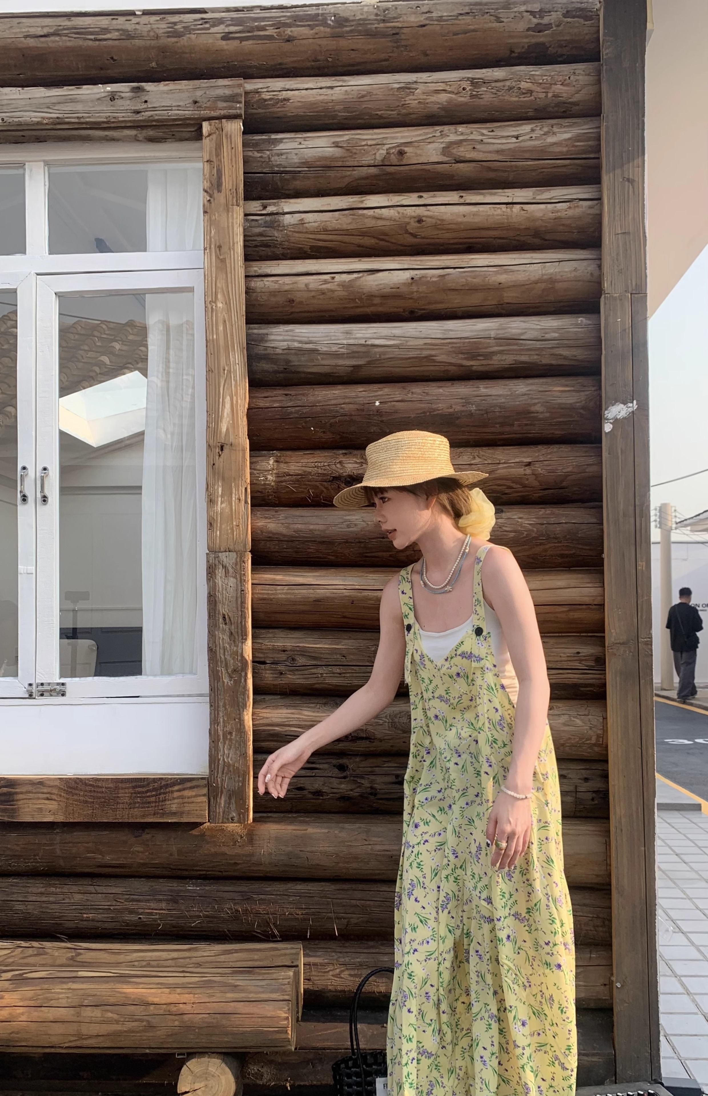 【ボトムス】夏新作 清涼感たっぷり 淡レモンカラー Vネック オーバーサイズサロペット オールインワン【SHシリーズ】