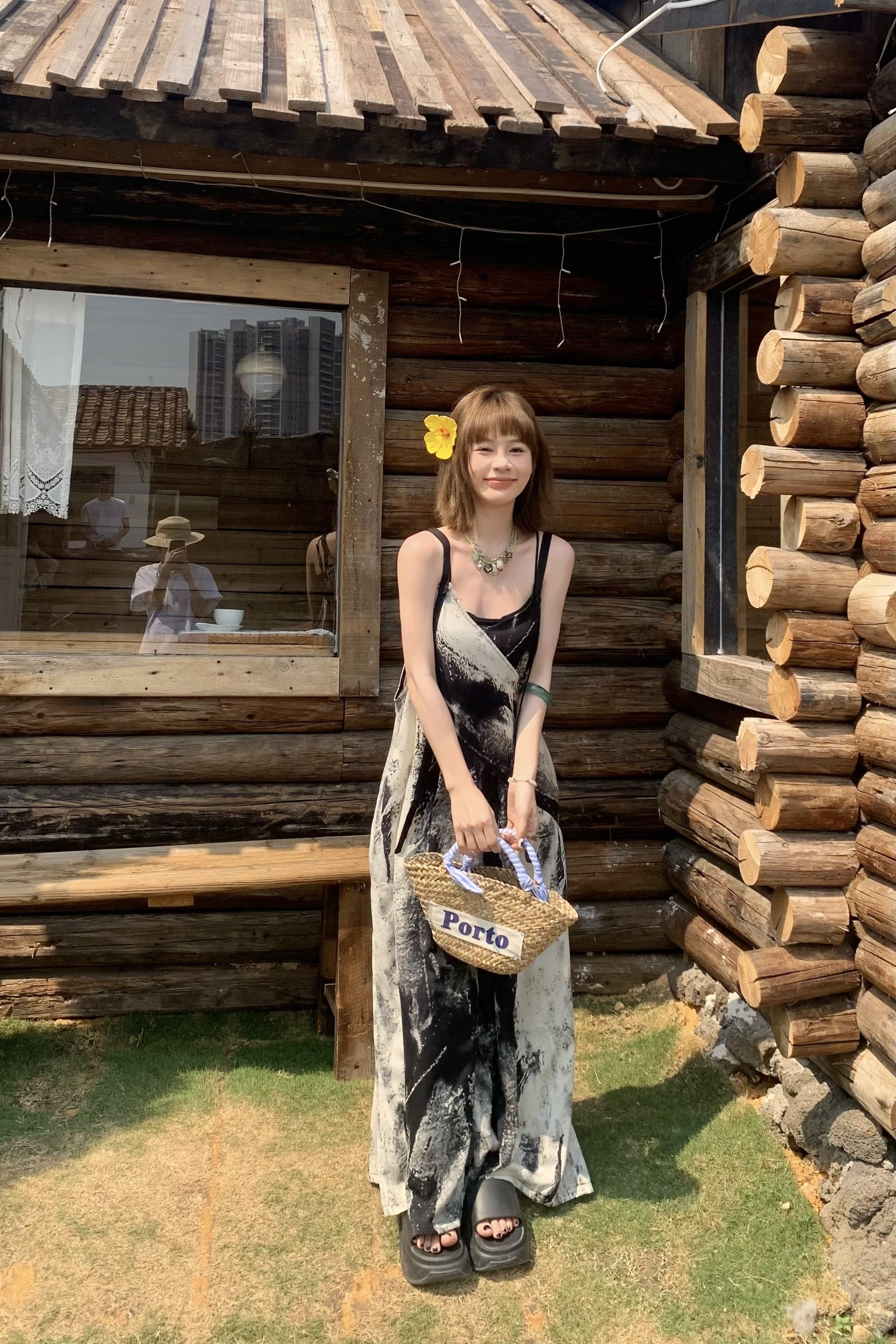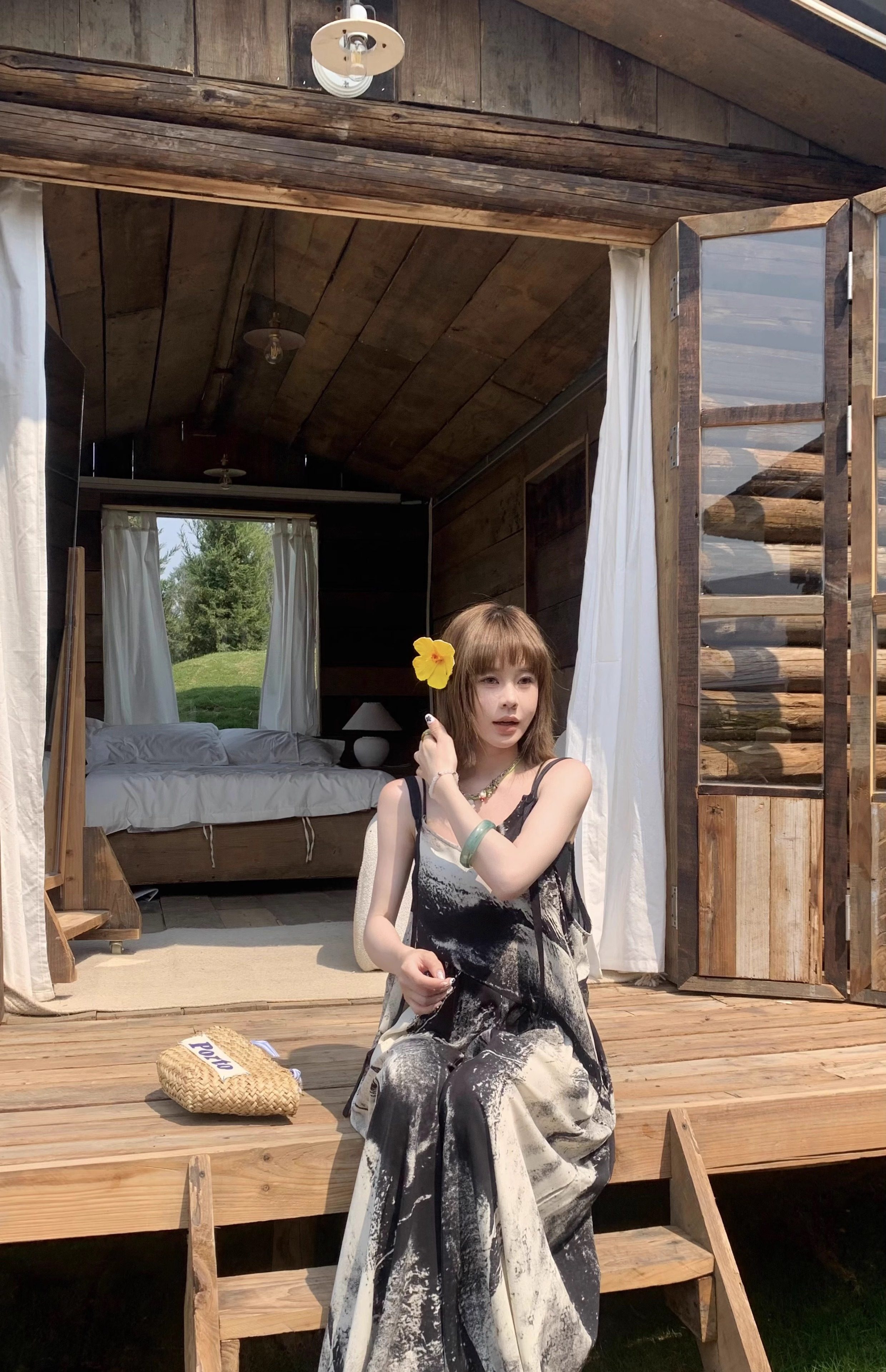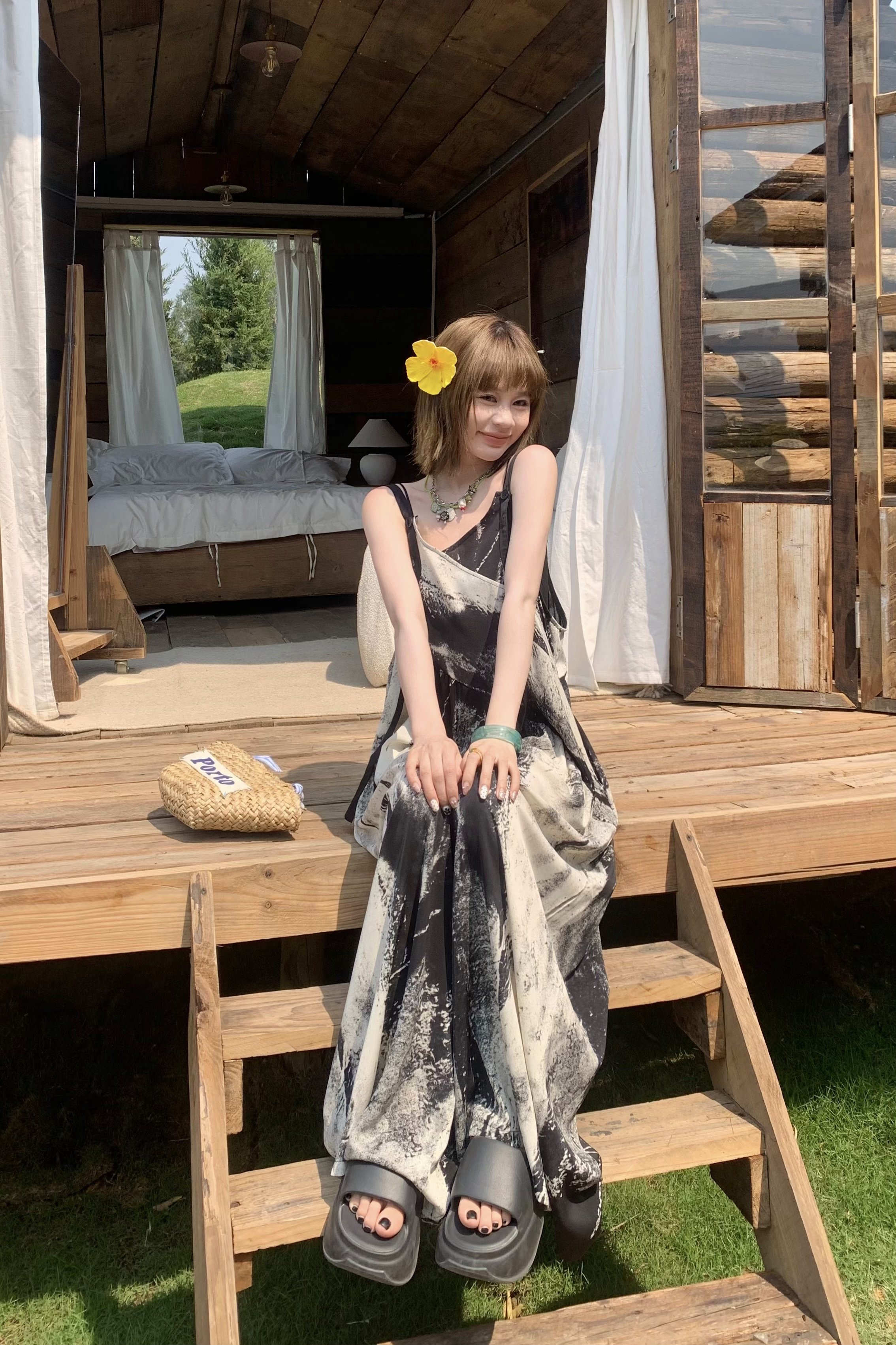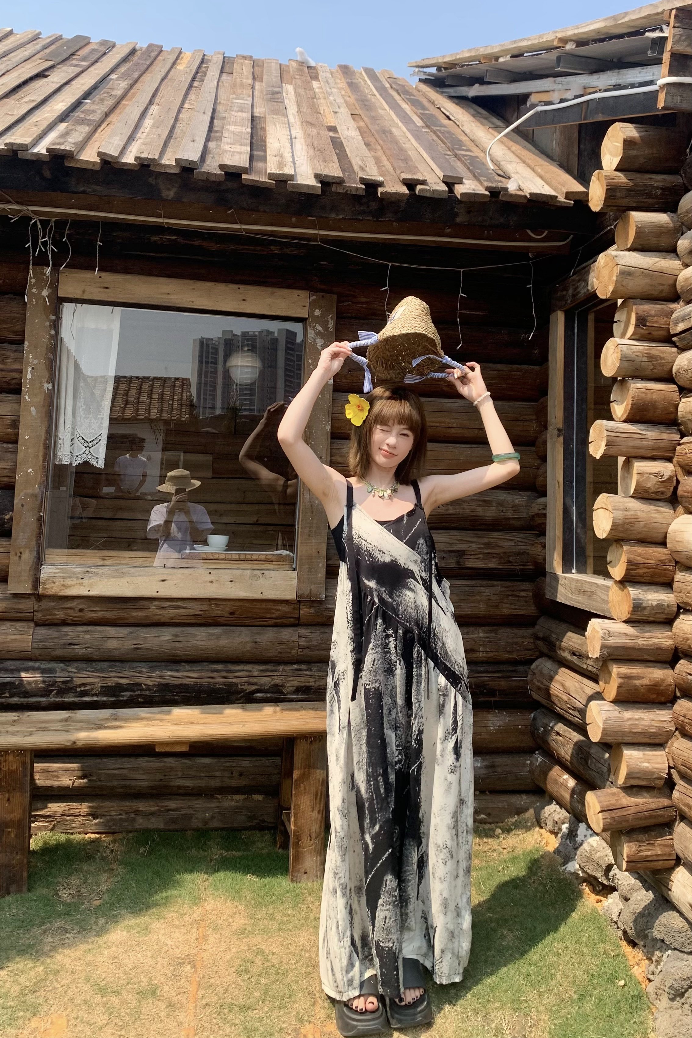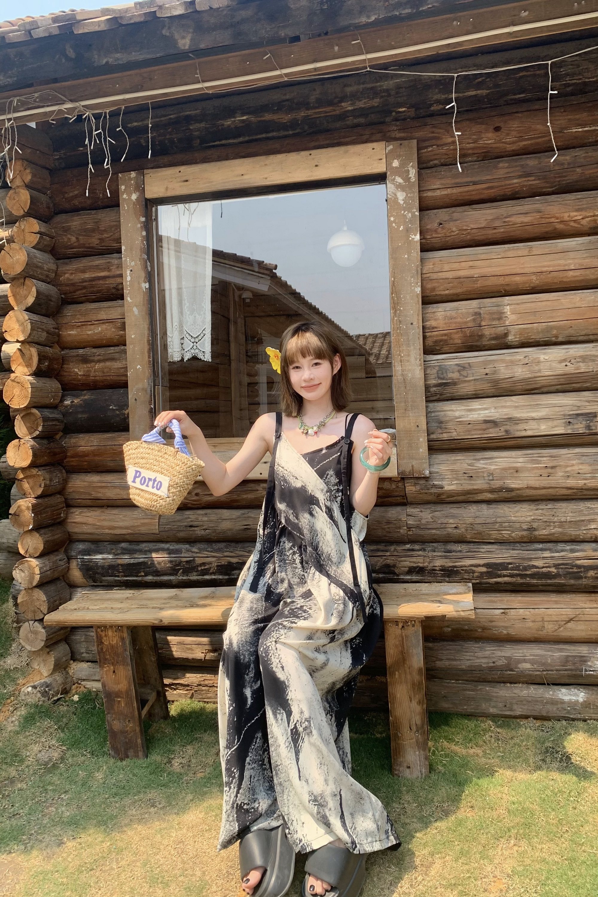 【ボトムス】夏新作 アート×ヴィンテージ 水墨画柄 ゆる感サロペット ワイドシルエット オールインワン【SHシリーズ】