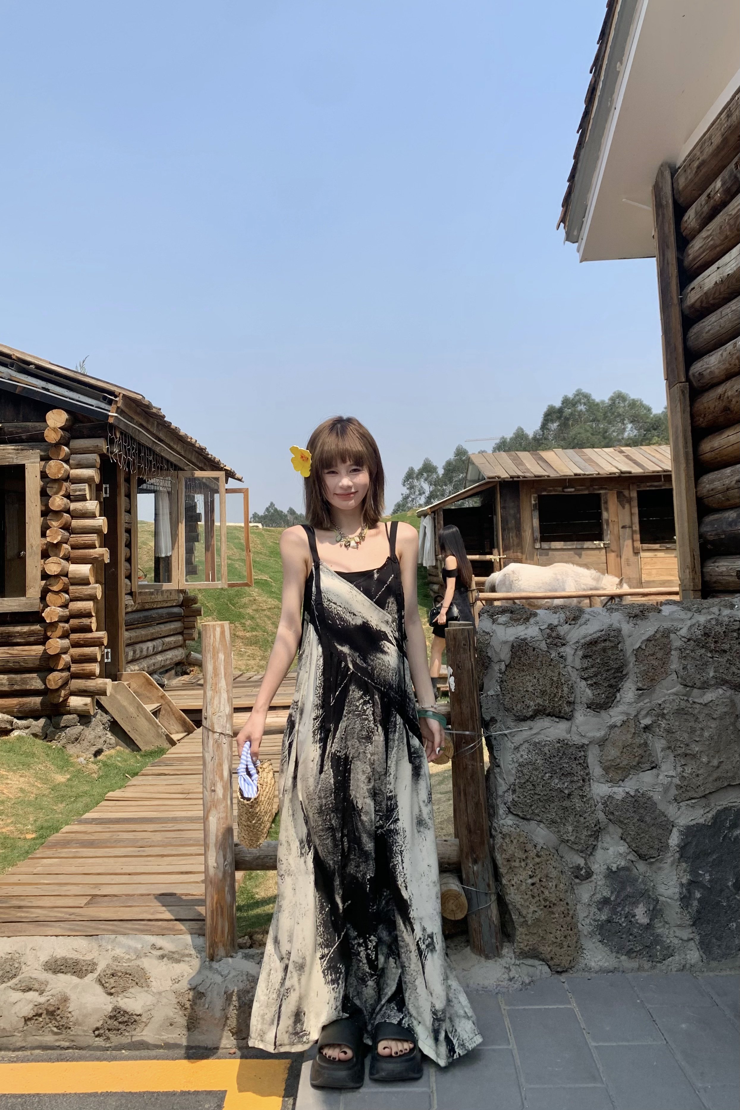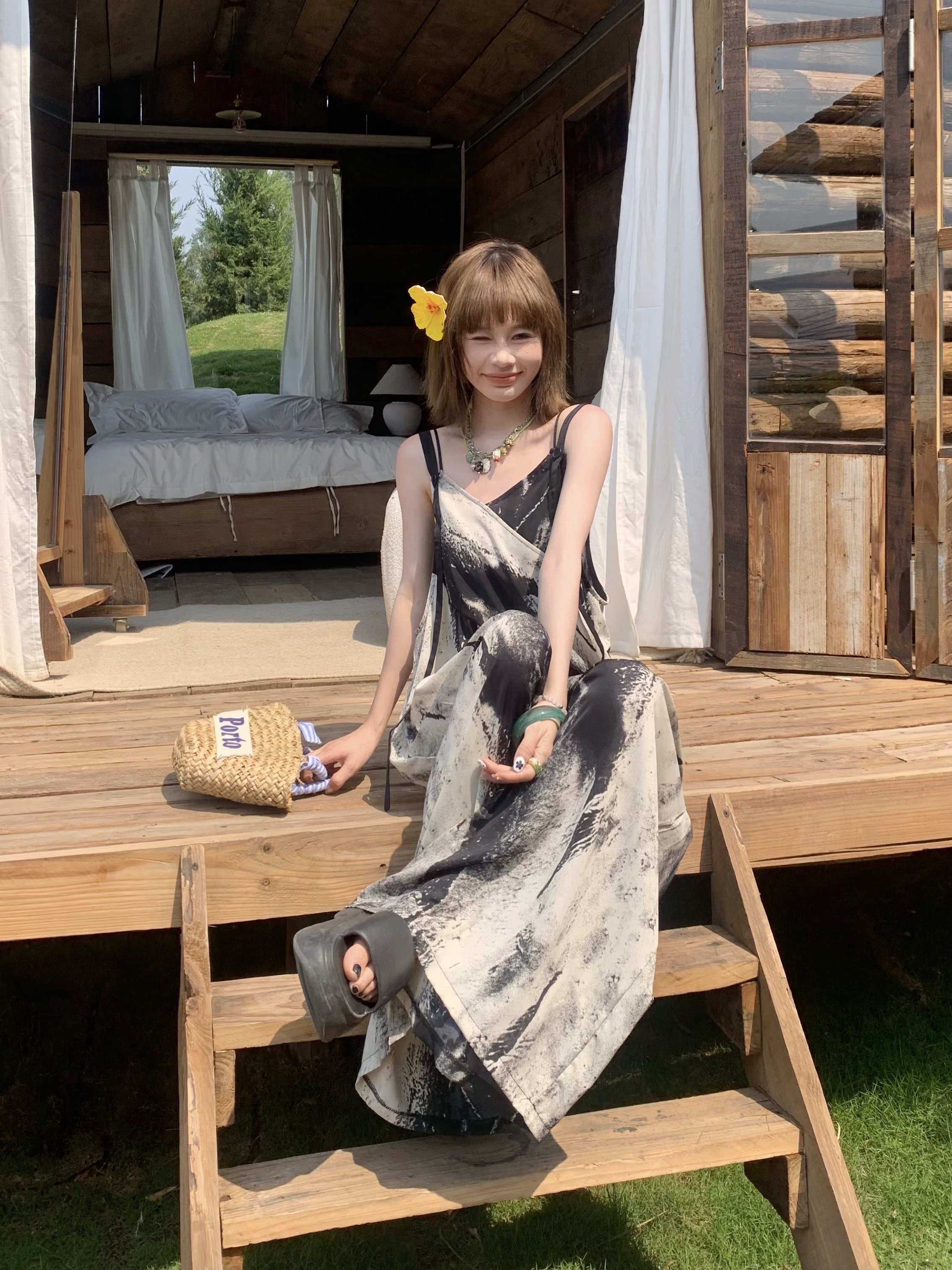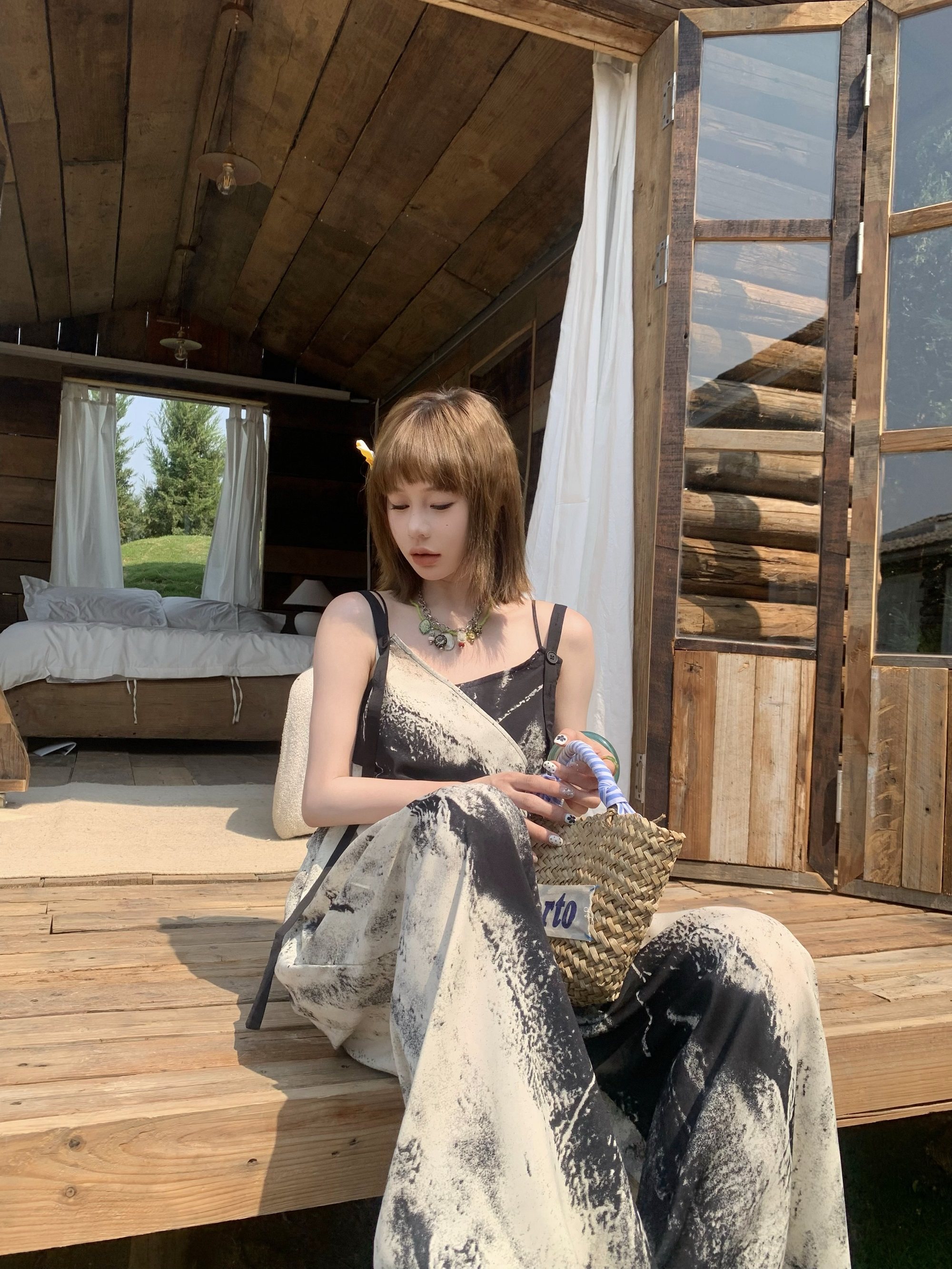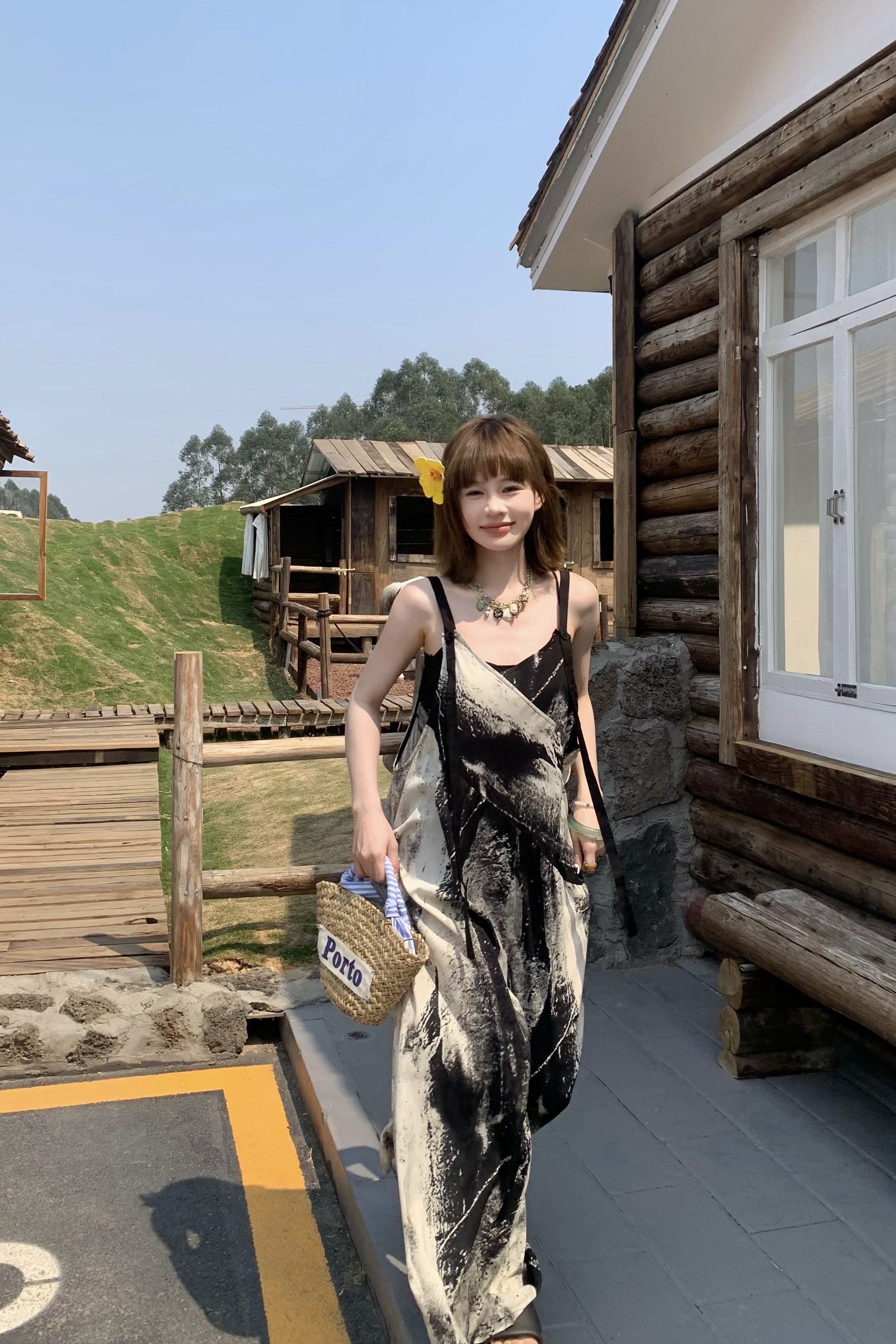 【商品名】【ボトムス】夏新作 アート×ヴィンテージ 水墨画柄 ゆる感サロペット ワイドシルエット オールインワン【SHシリーズ】