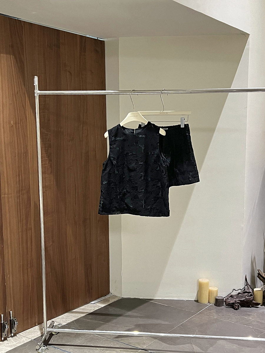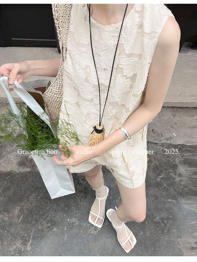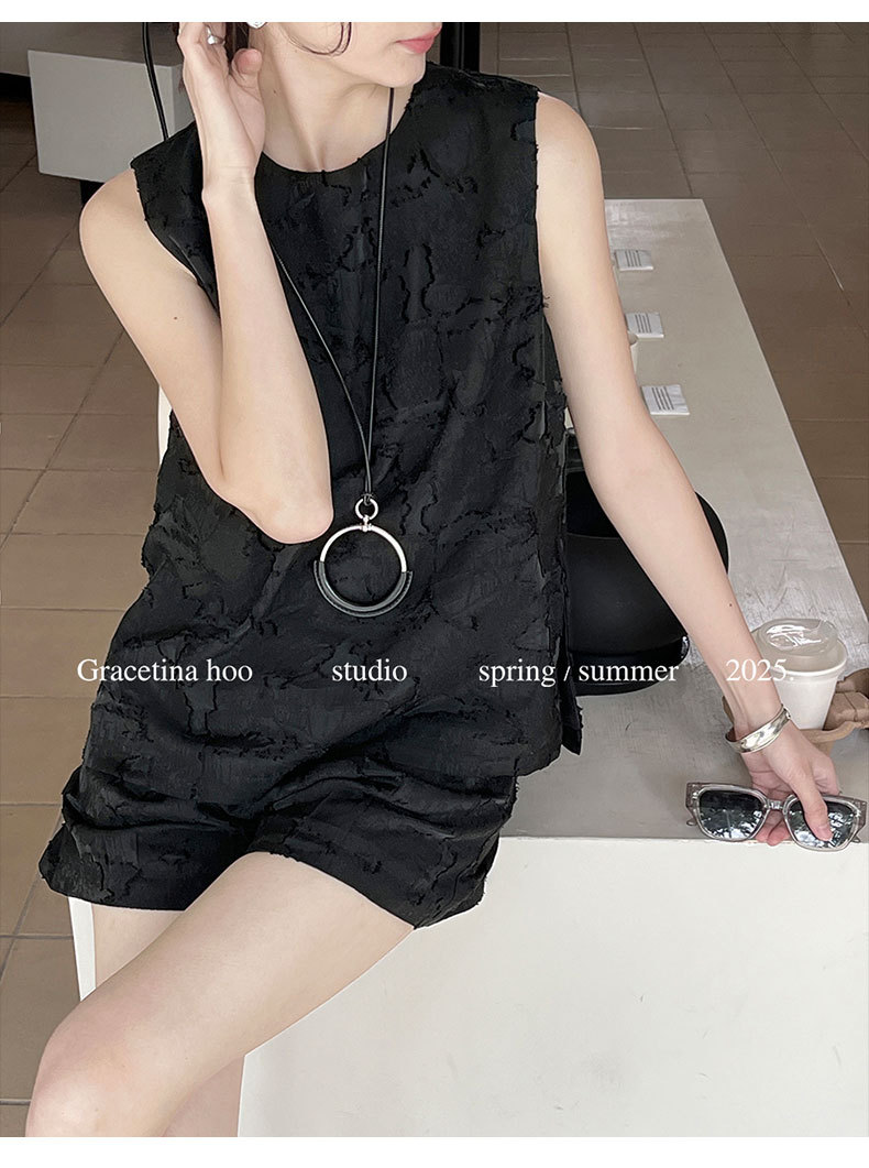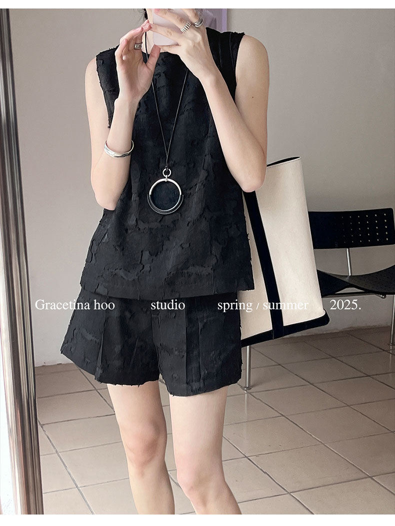 【商品名】【ボトムス】夏 ジャカード おしゃれな ノースリーブ シャツ + ショートパンツ 2点上下セット 【JZシリーズ】
