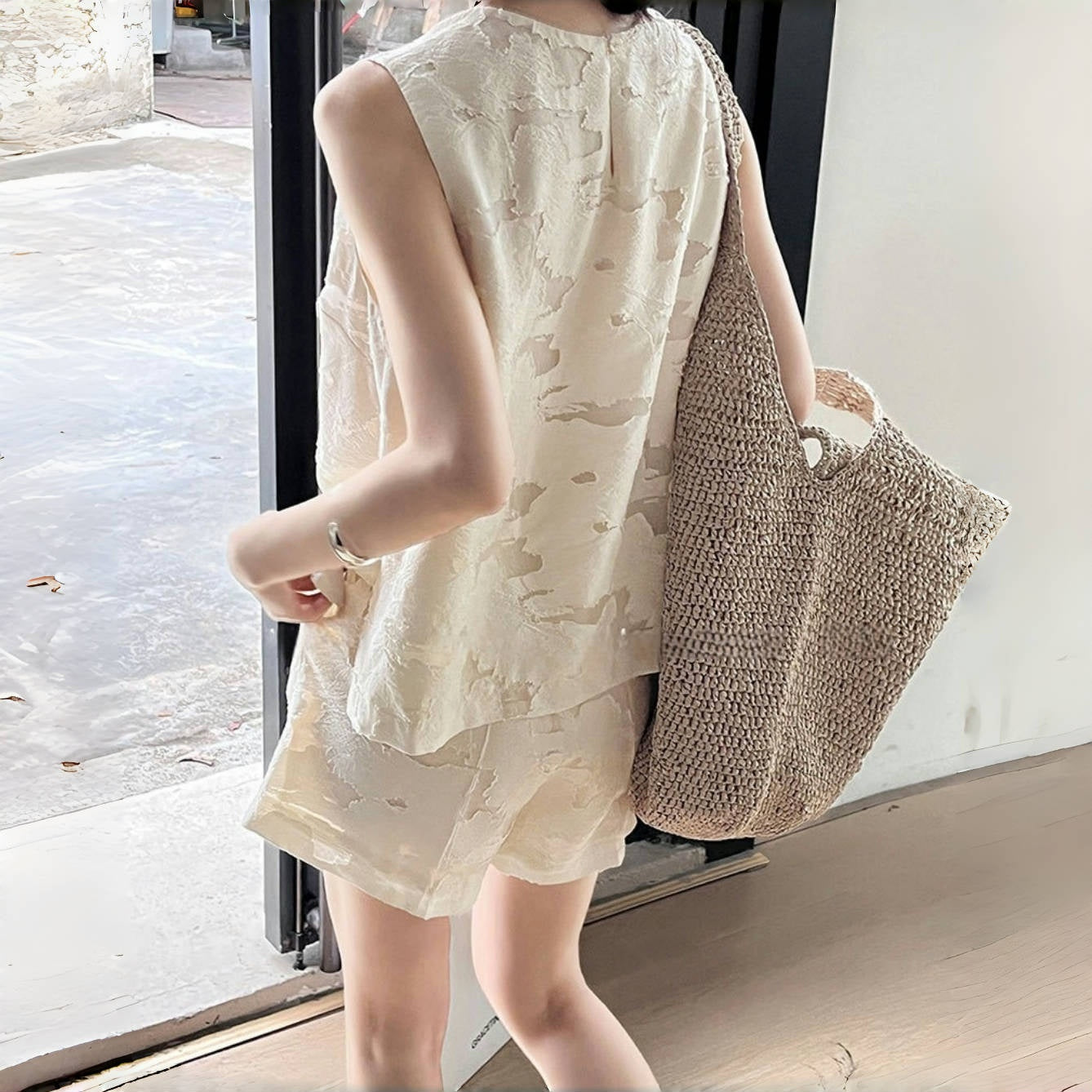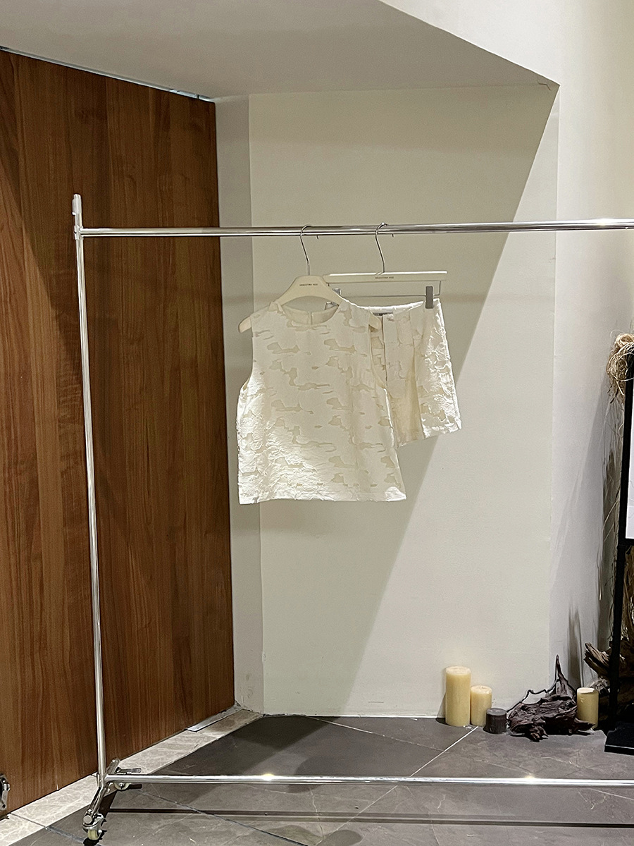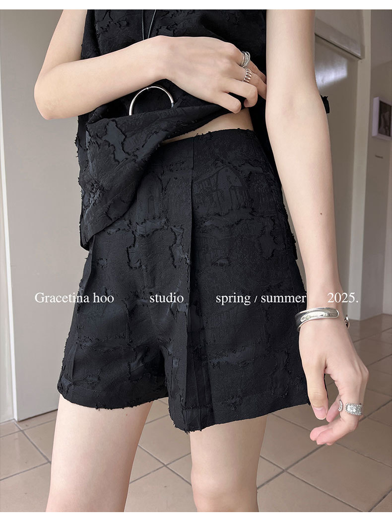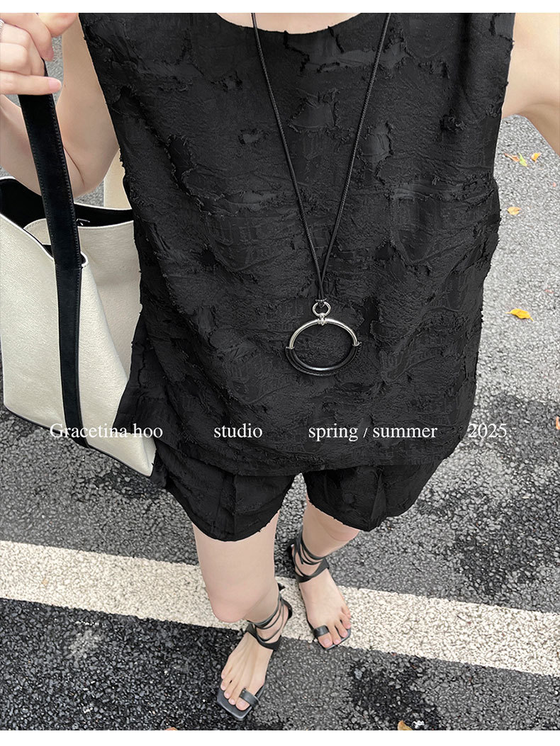 【商品名】【ボトムス】夏 ジャカード おしゃれな ノースリーブ シャツ + ショートパンツ 2点上下セット 【JZシリーズ】