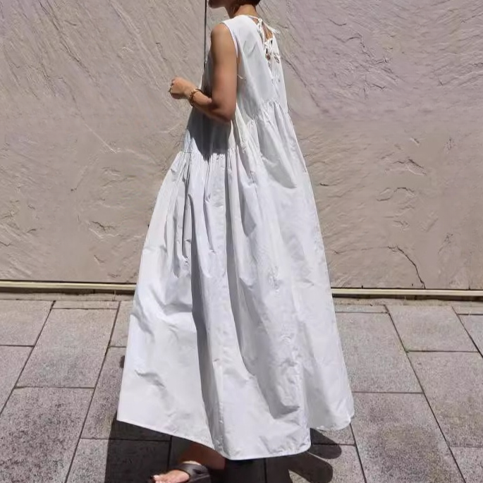 【商品名】【ワンピース】夏 フランス風 ロマンチック 体型カバー ロング ノースリーブ ワンピース 【JZシリーズ】