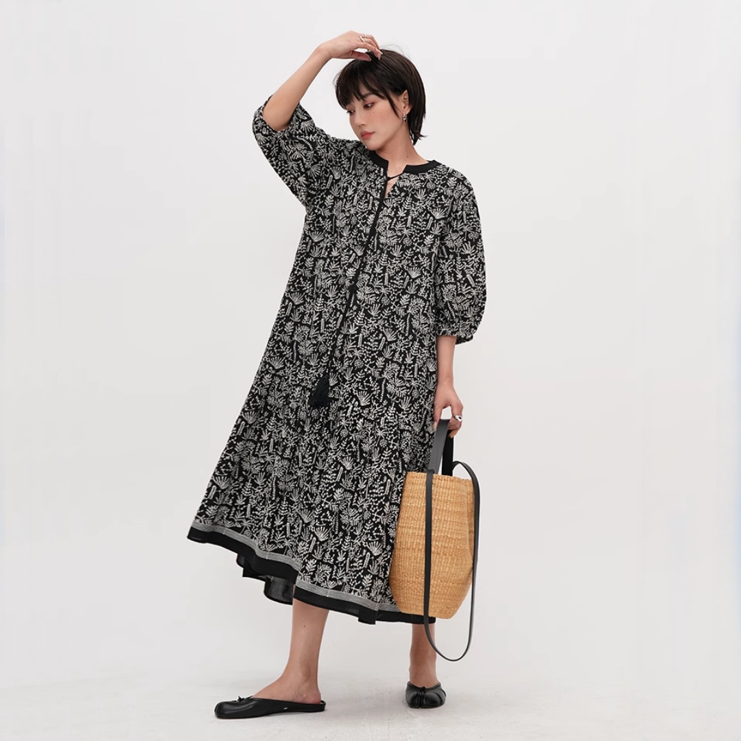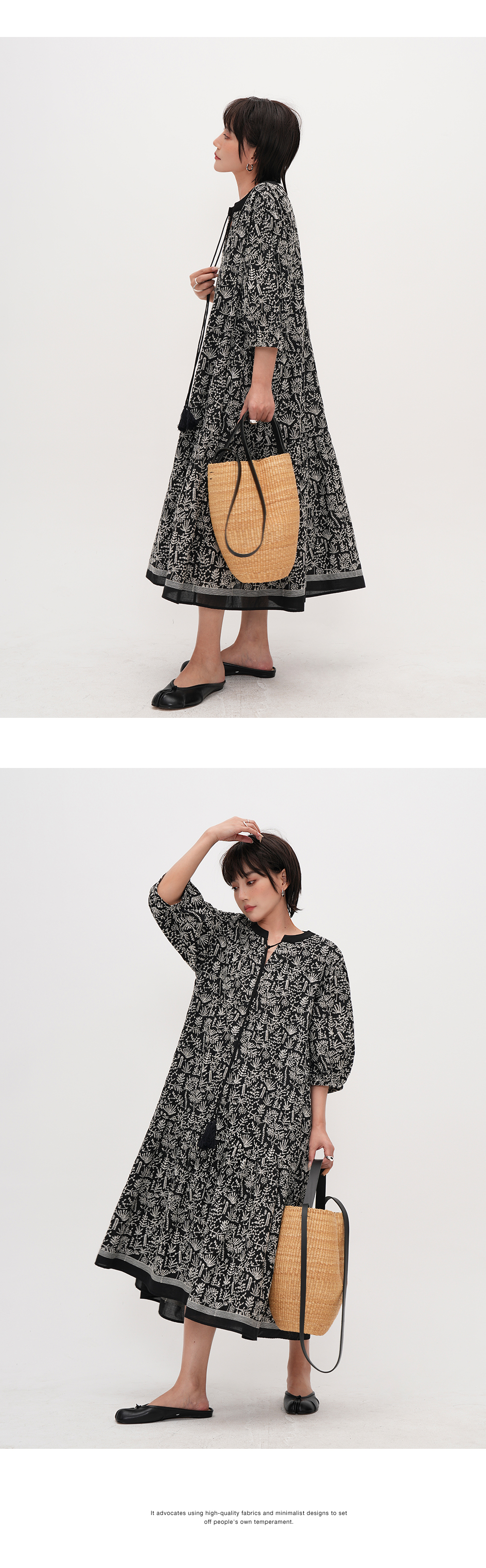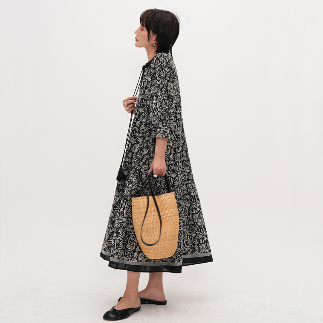【ワンピース】フレンチレトロ 切替デザイン 大ポケット 長袖 ワンピース 秋新作 ゆったり 【JZシリーズ】