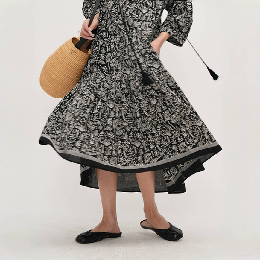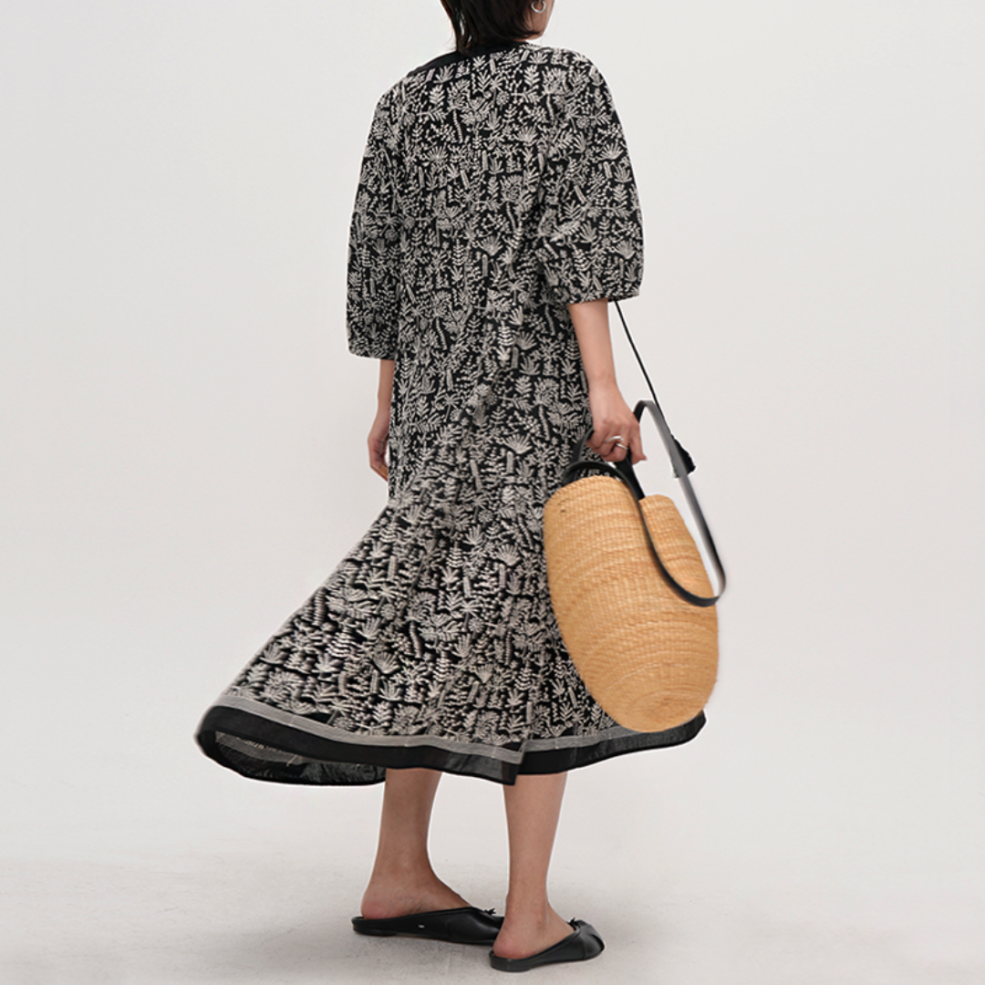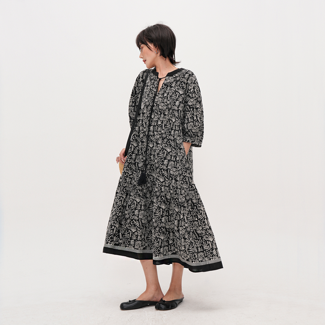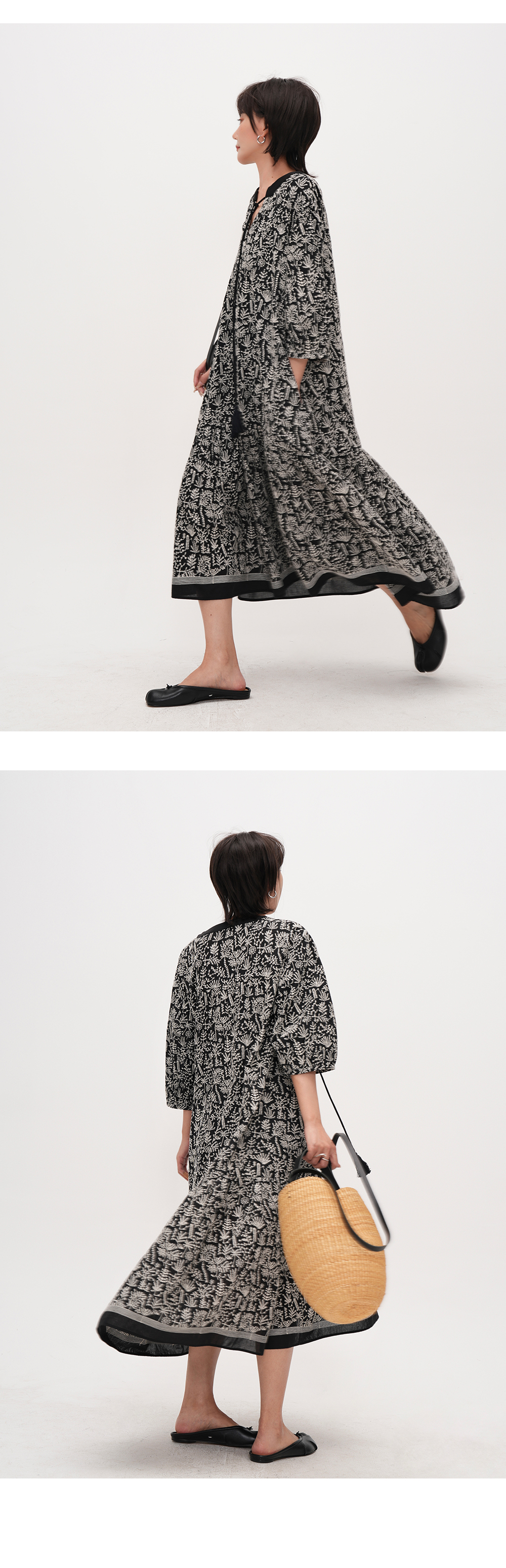 【ワンピース】フレンチレトロ 切替デザイン 大ポケット 長袖 ワンピース 秋新作 ゆったり 【JZシリーズ】