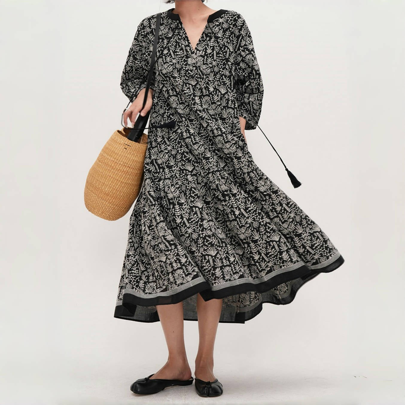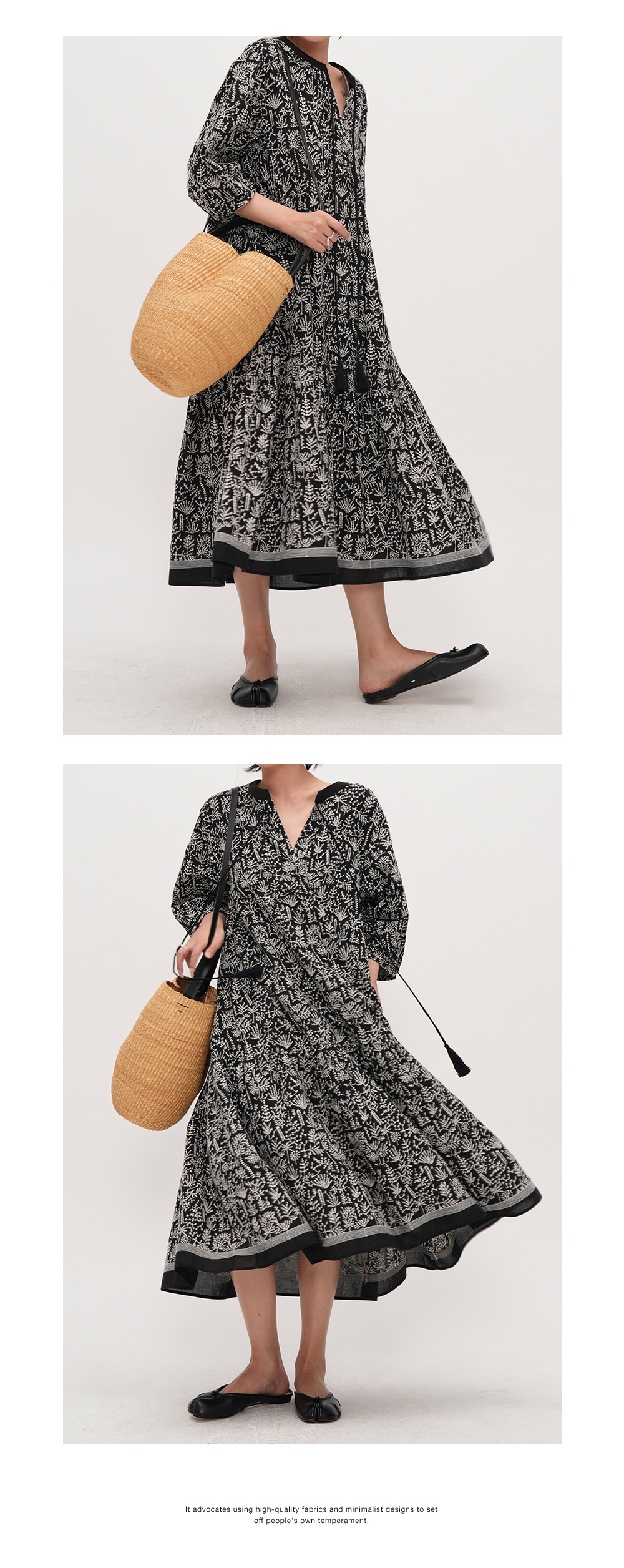 【ワンピース】細見え 日系 Vネック 無地 長袖ワンピース 切替デザイン ゆったり 気質ロング【JZシリーズ】【AHシリーズ】