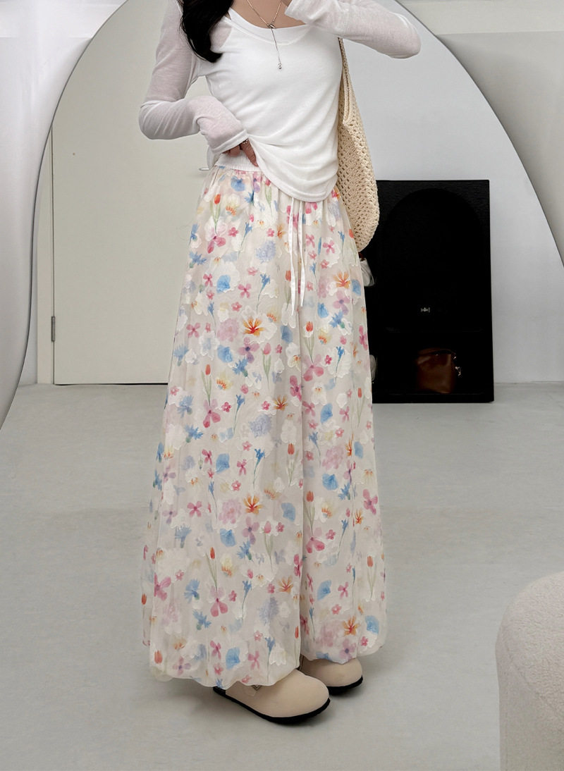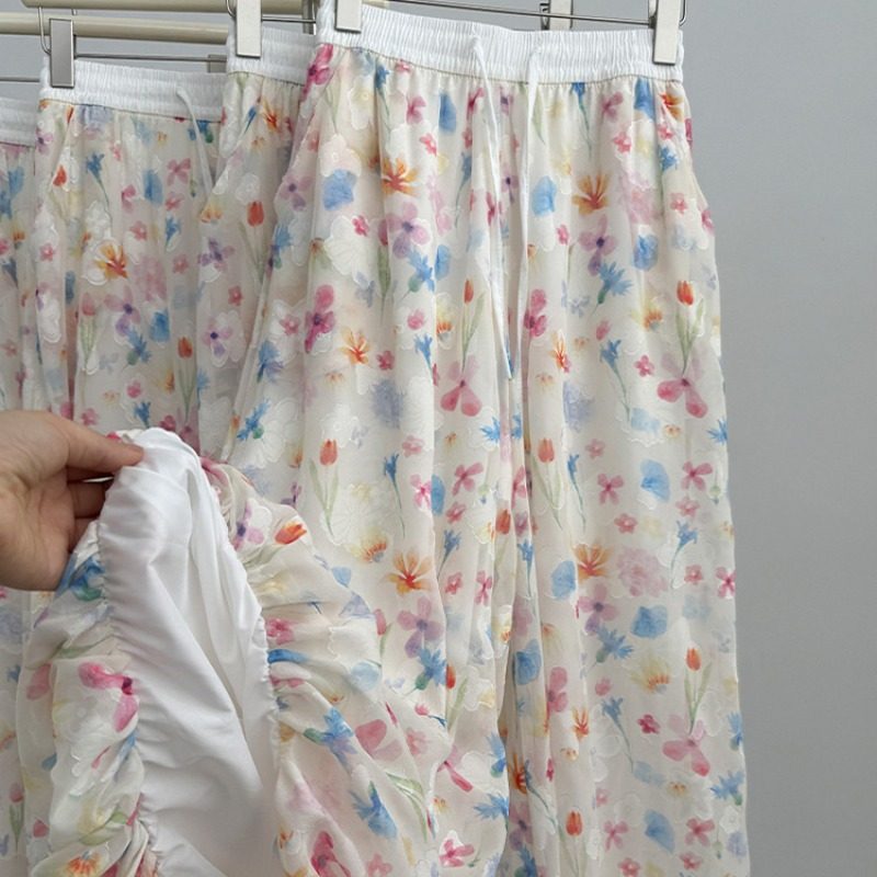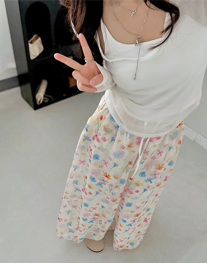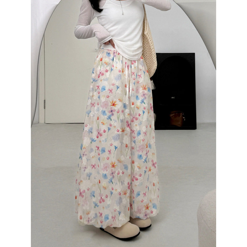 【ボトムス】夏 花柄 ハイウエスト ウエストゴム入り ワイドパンツ 【SHシリーズ】