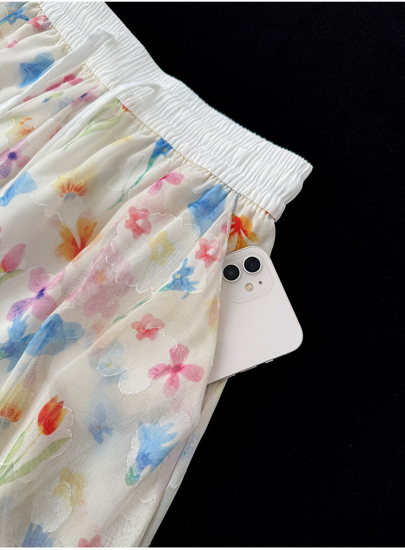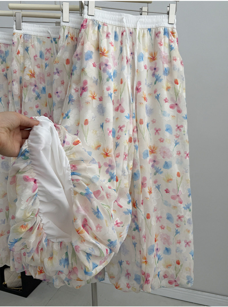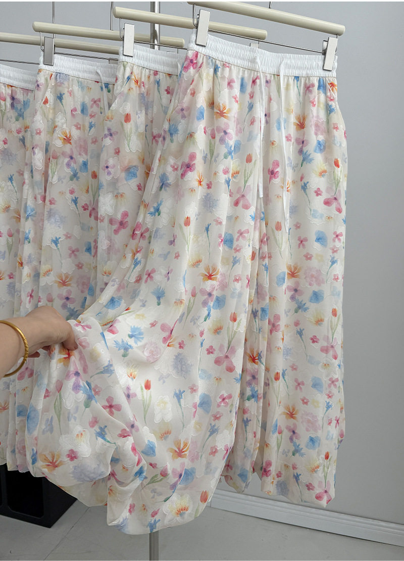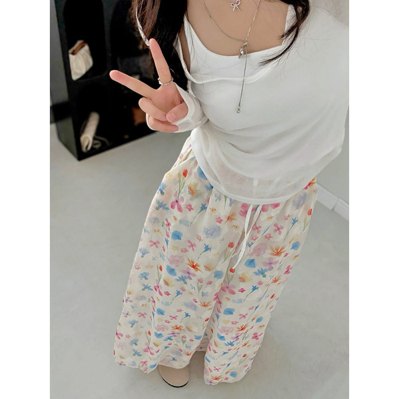 【ボトムス】夏 花柄 ハイウエスト ウエストゴム入り ワイドパンツ 【SHシリーズ】