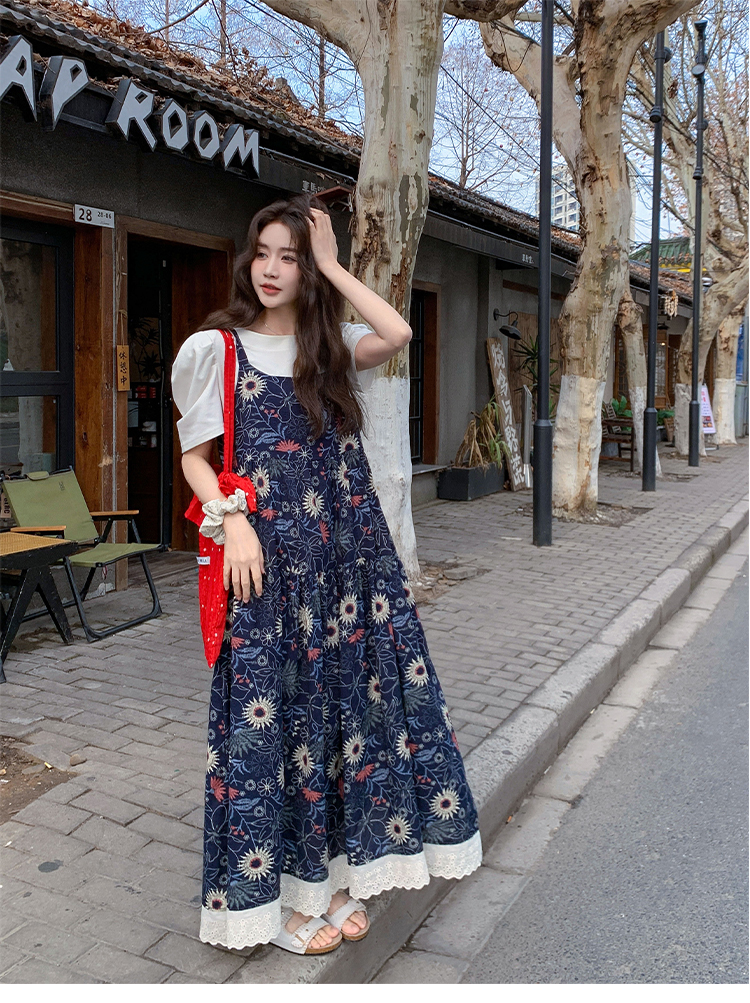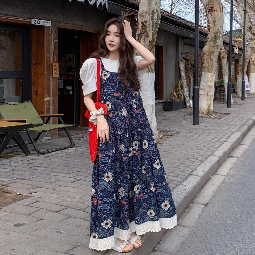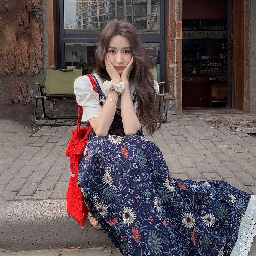 【ボトムス】レトロ 秋冬新作 ゆったり体型カバー 大きめフレア ロング フラワー 裏起毛スカート【SHシリーズ】
