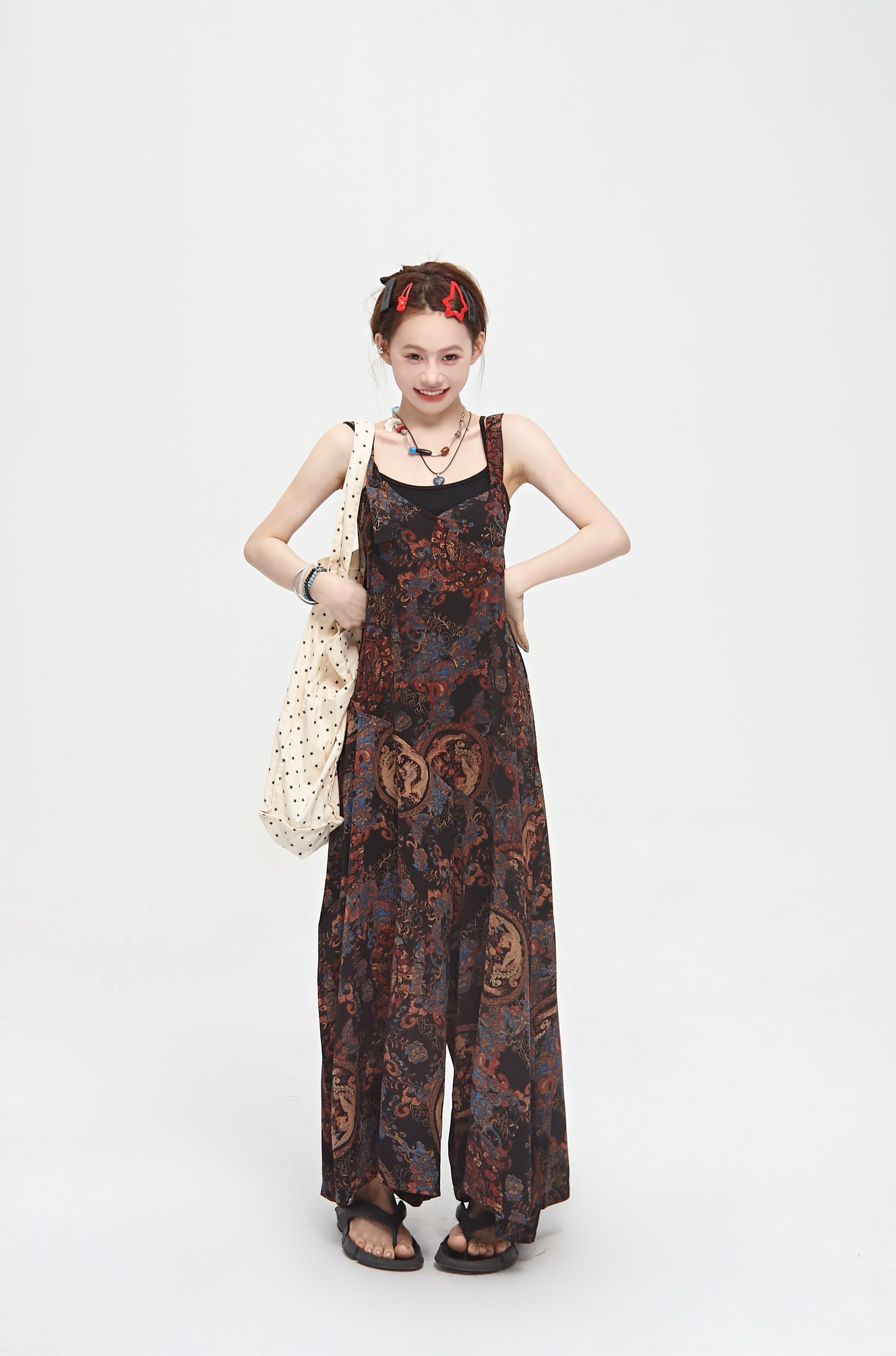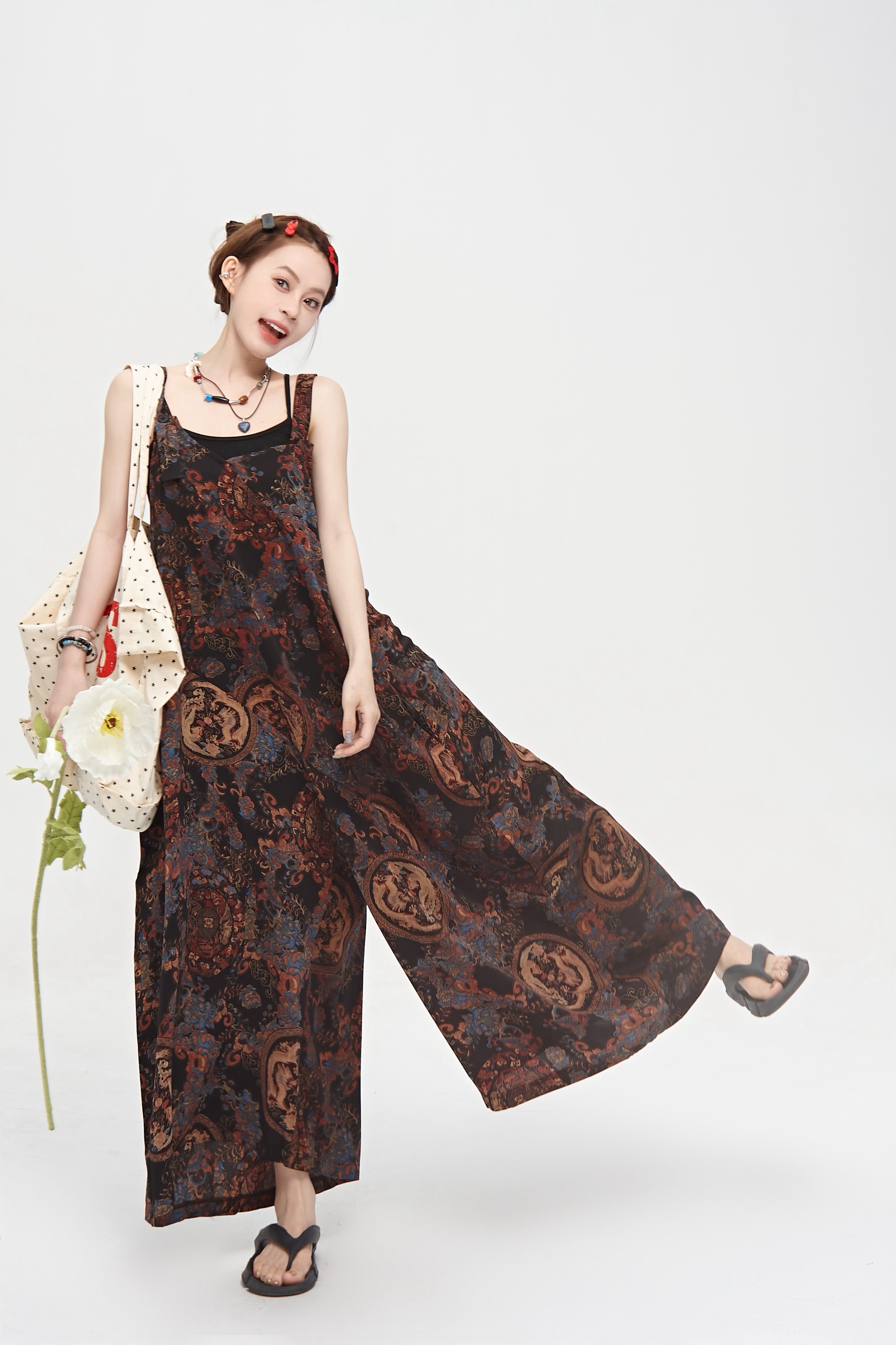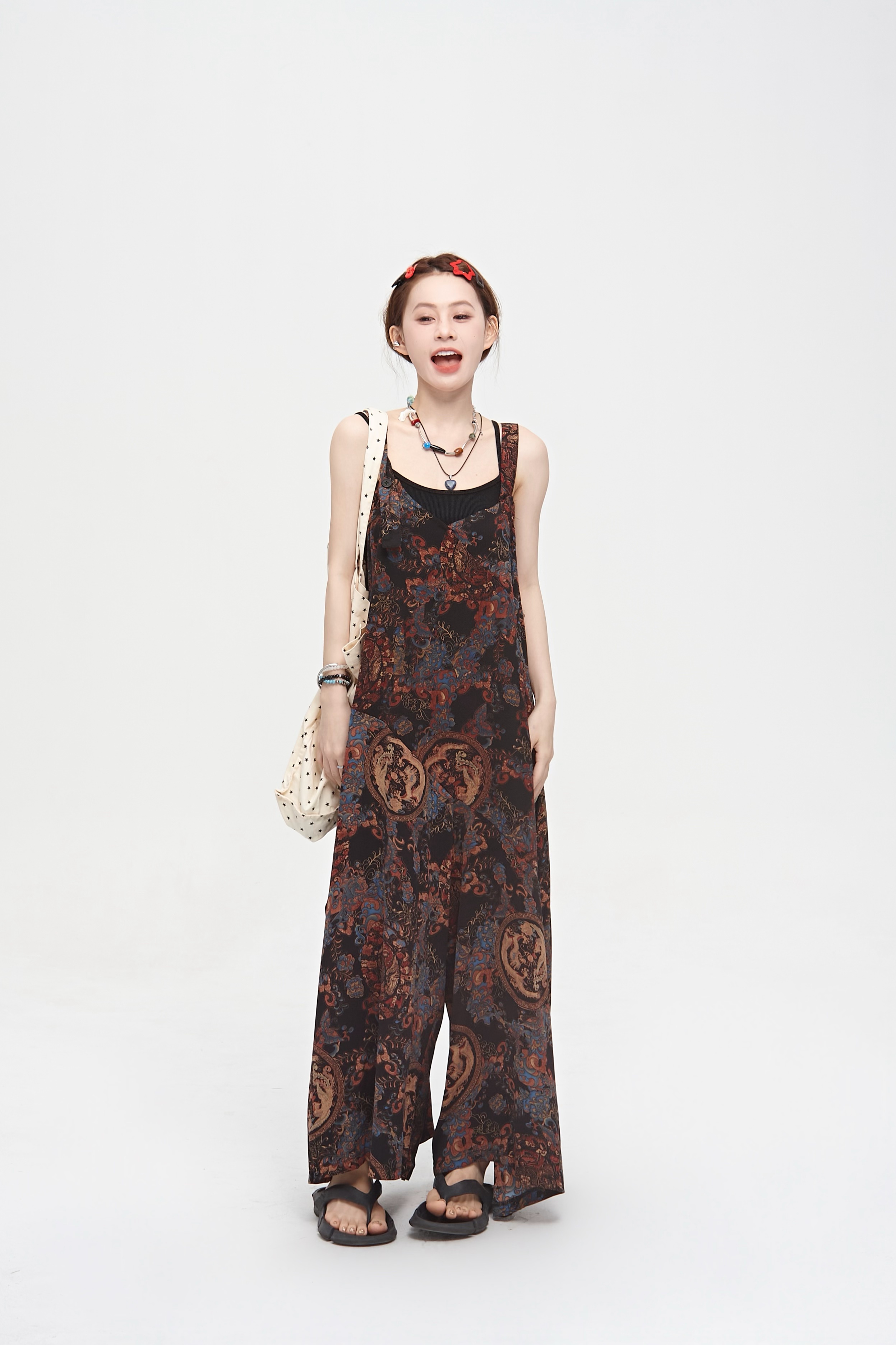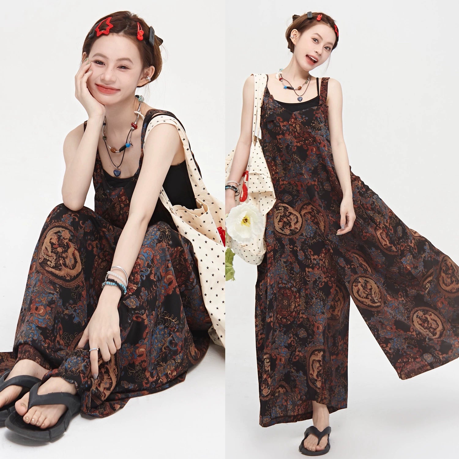 【商品名】【ボトムス】ゆったりルーズ感 Vネックサロペット 夏新作 ガーリッシュ宮廷風 ワイドパンツオールインワン【SHシリーズ】