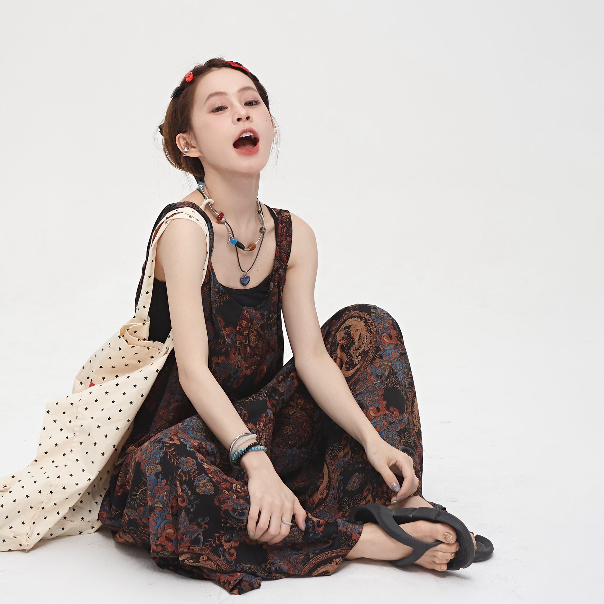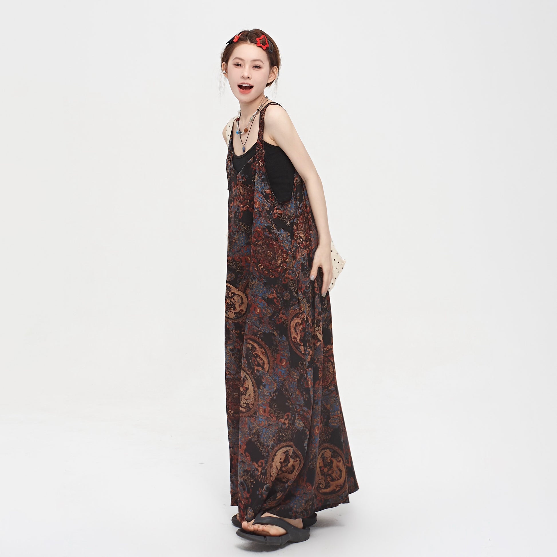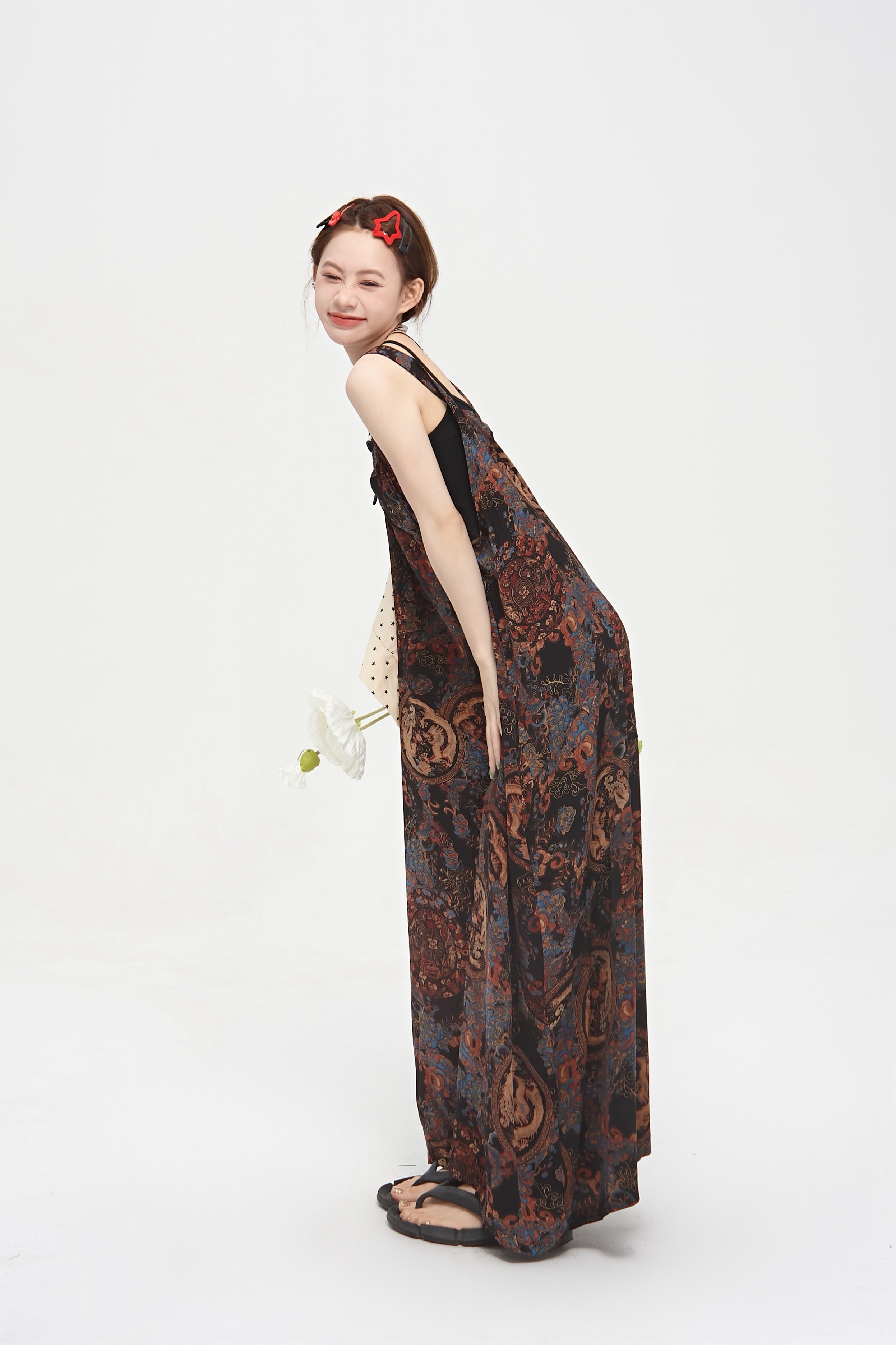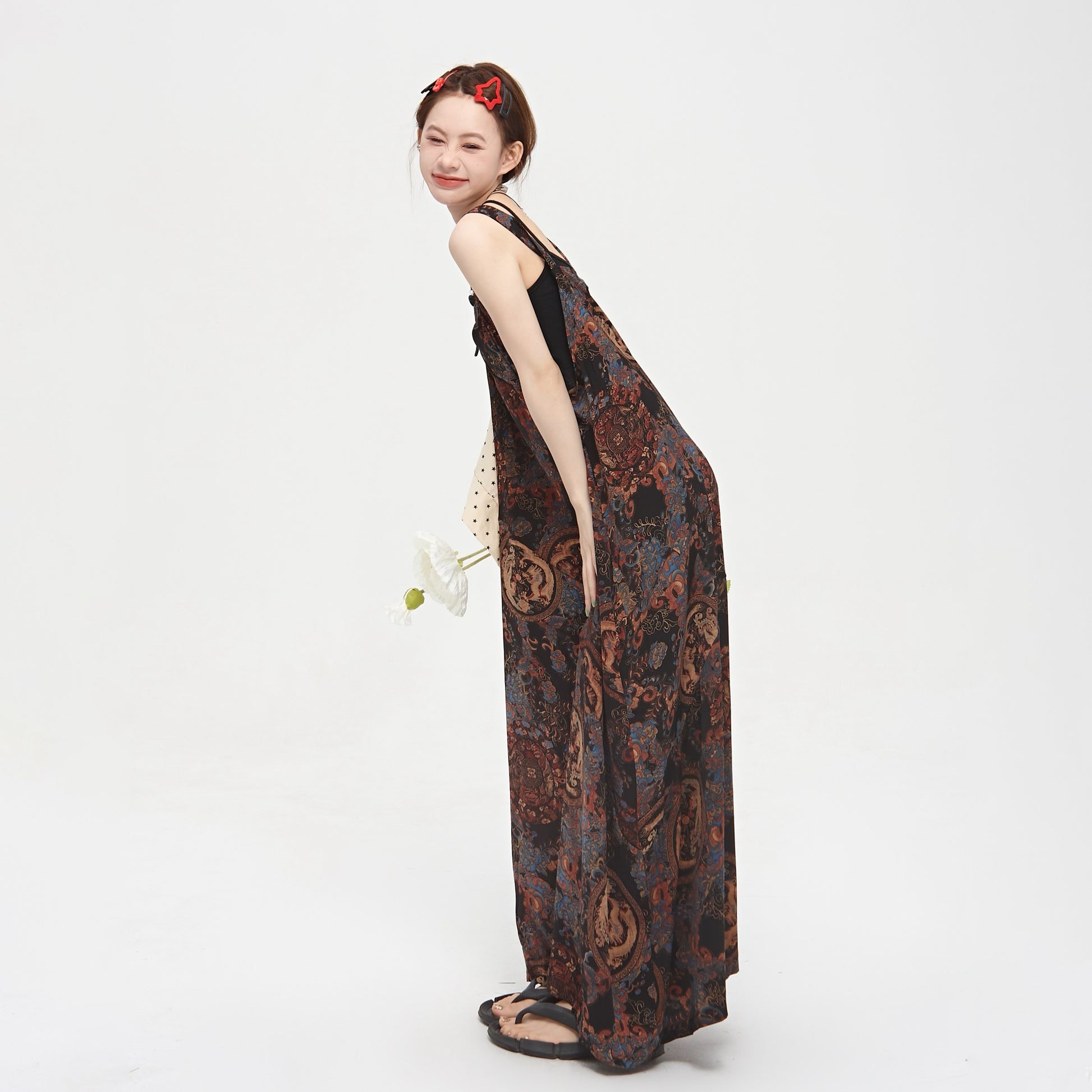 【商品名】【ボトムス】ゆったりルーズ感 Vネックサロペット 夏新作 ガーリッシュ宮廷風 ワイドパンツオールインワン【SHシリーズ】