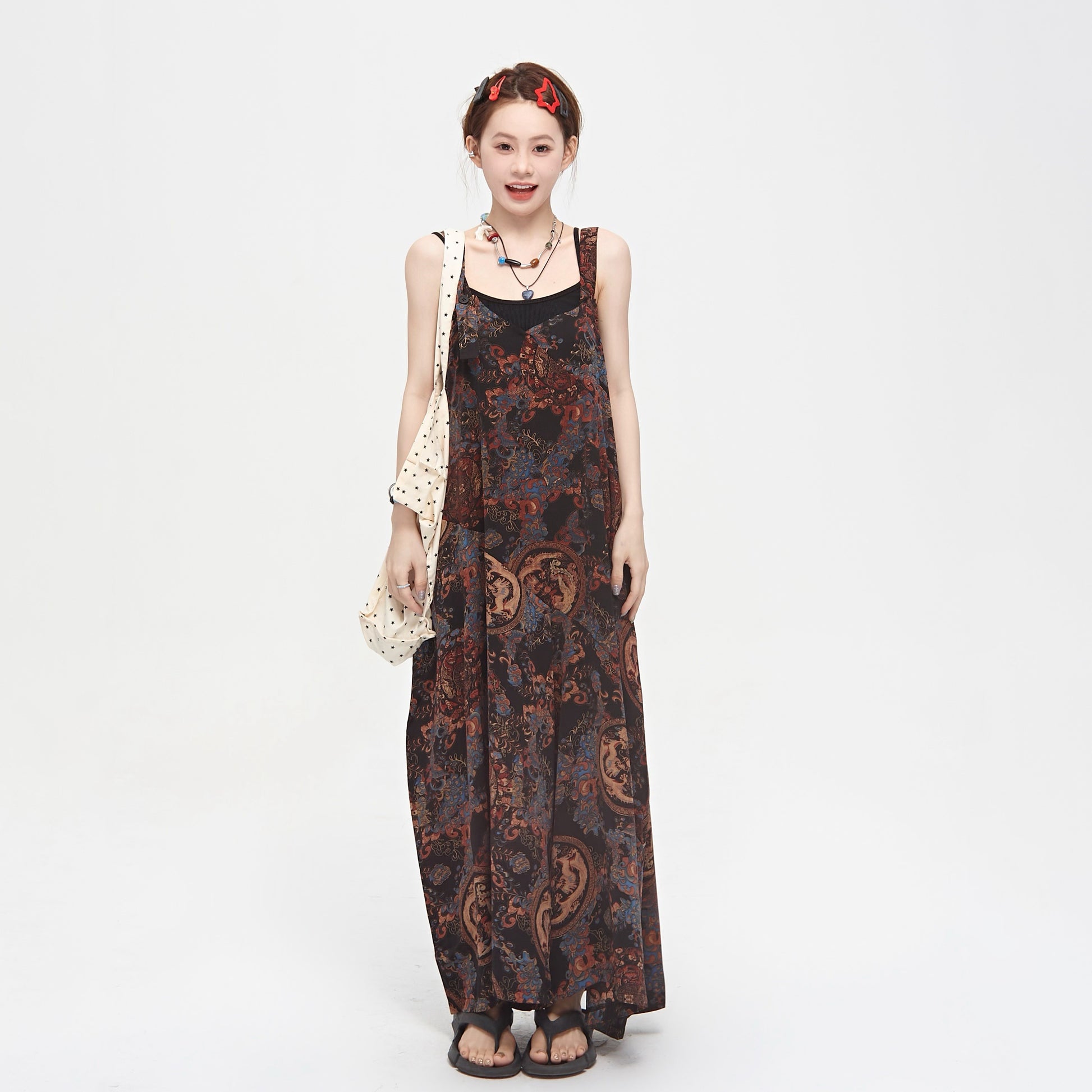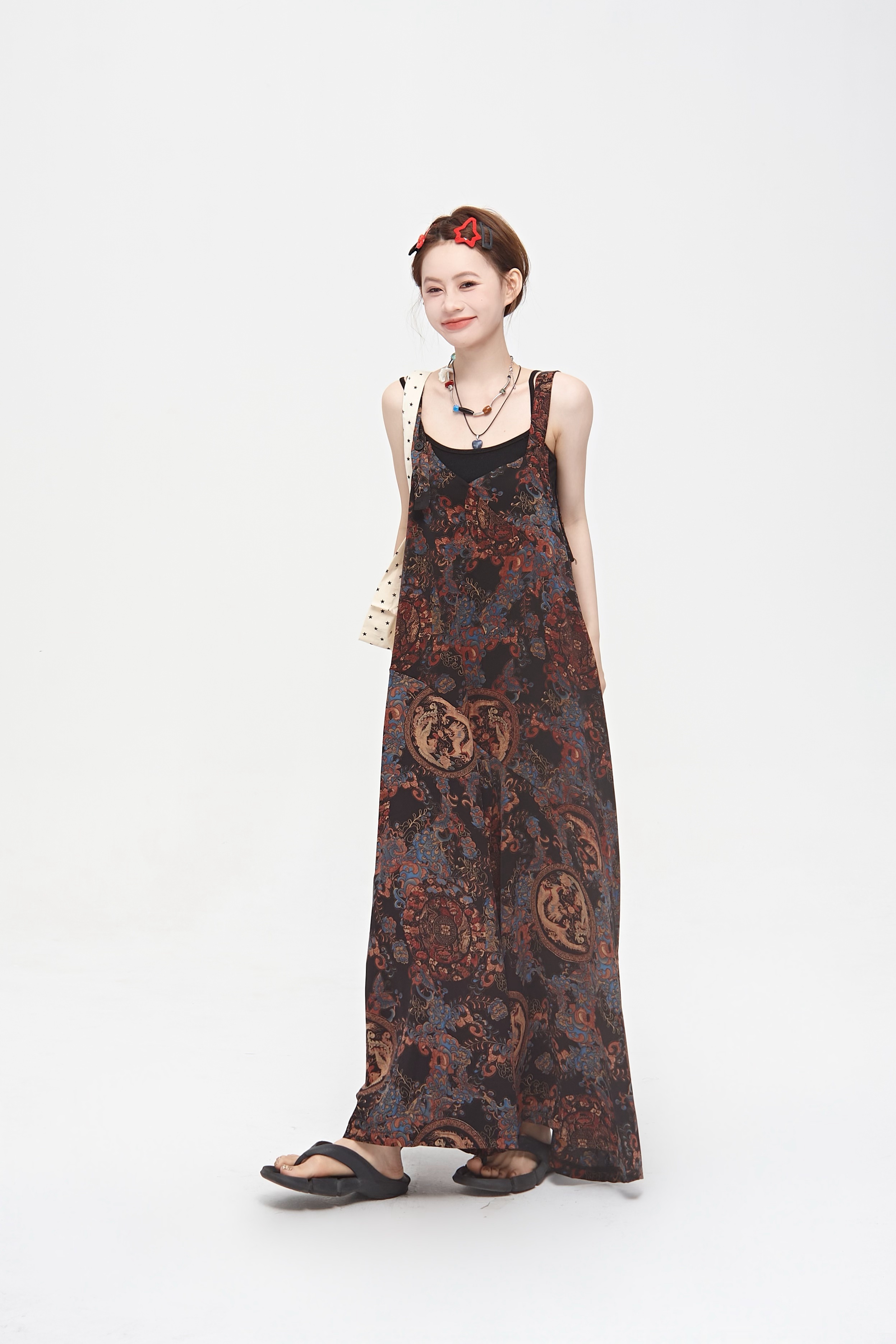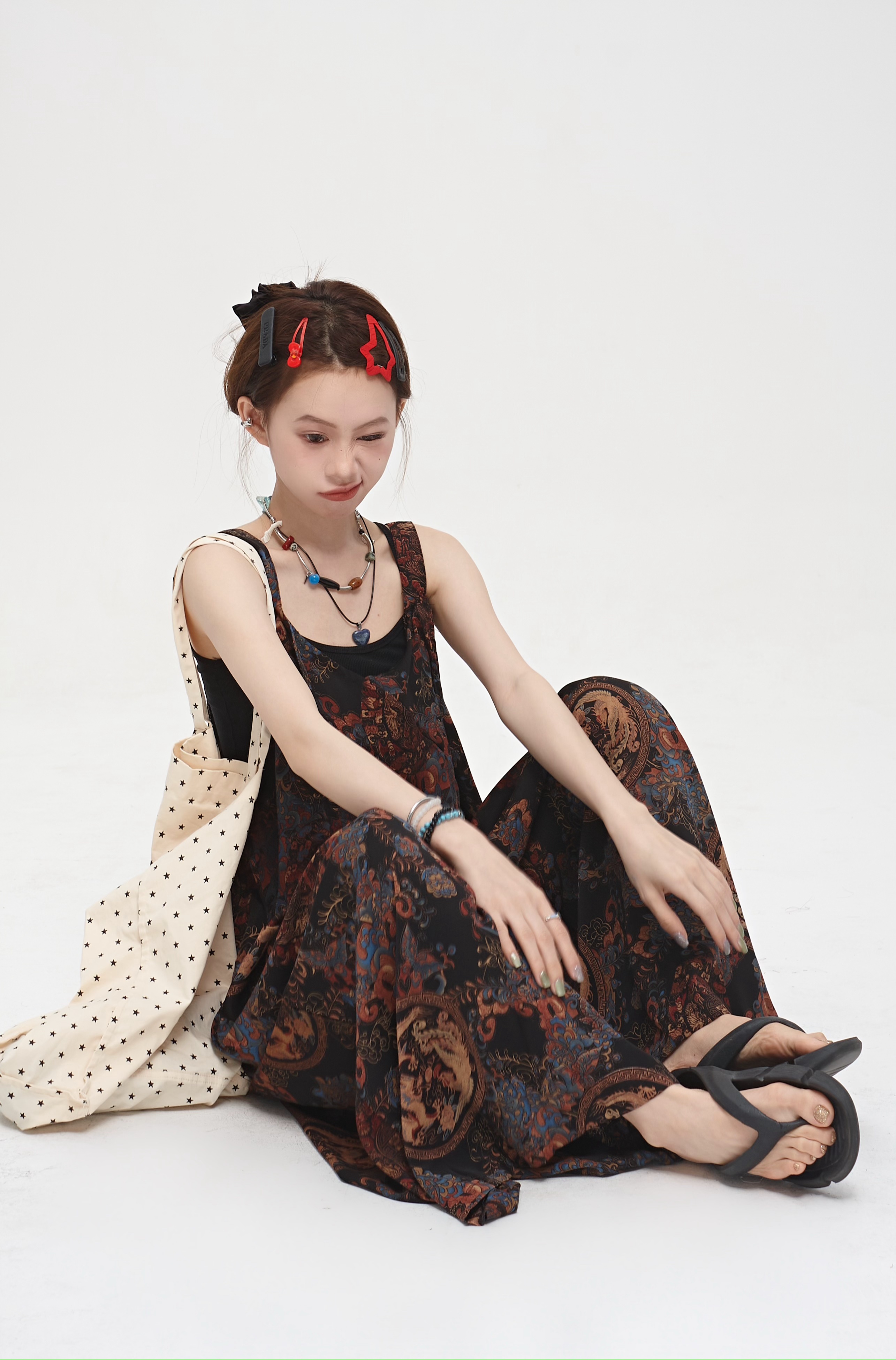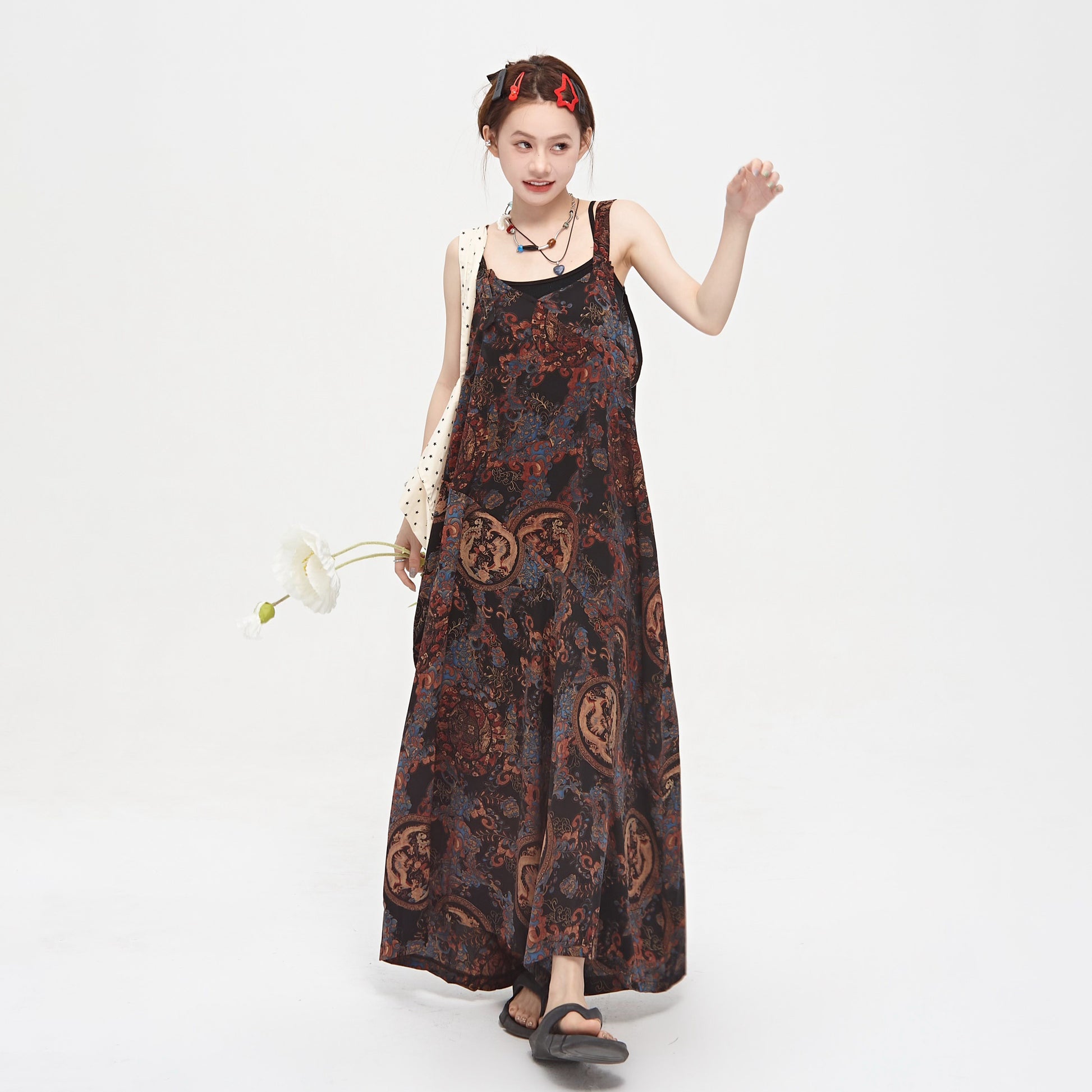 【商品名】【ボトムス】ゆったりルーズ感 Vネックサロペット 夏新作 ガーリッシュ宮廷風 ワイドパンツオールインワン【SHシリーズ】