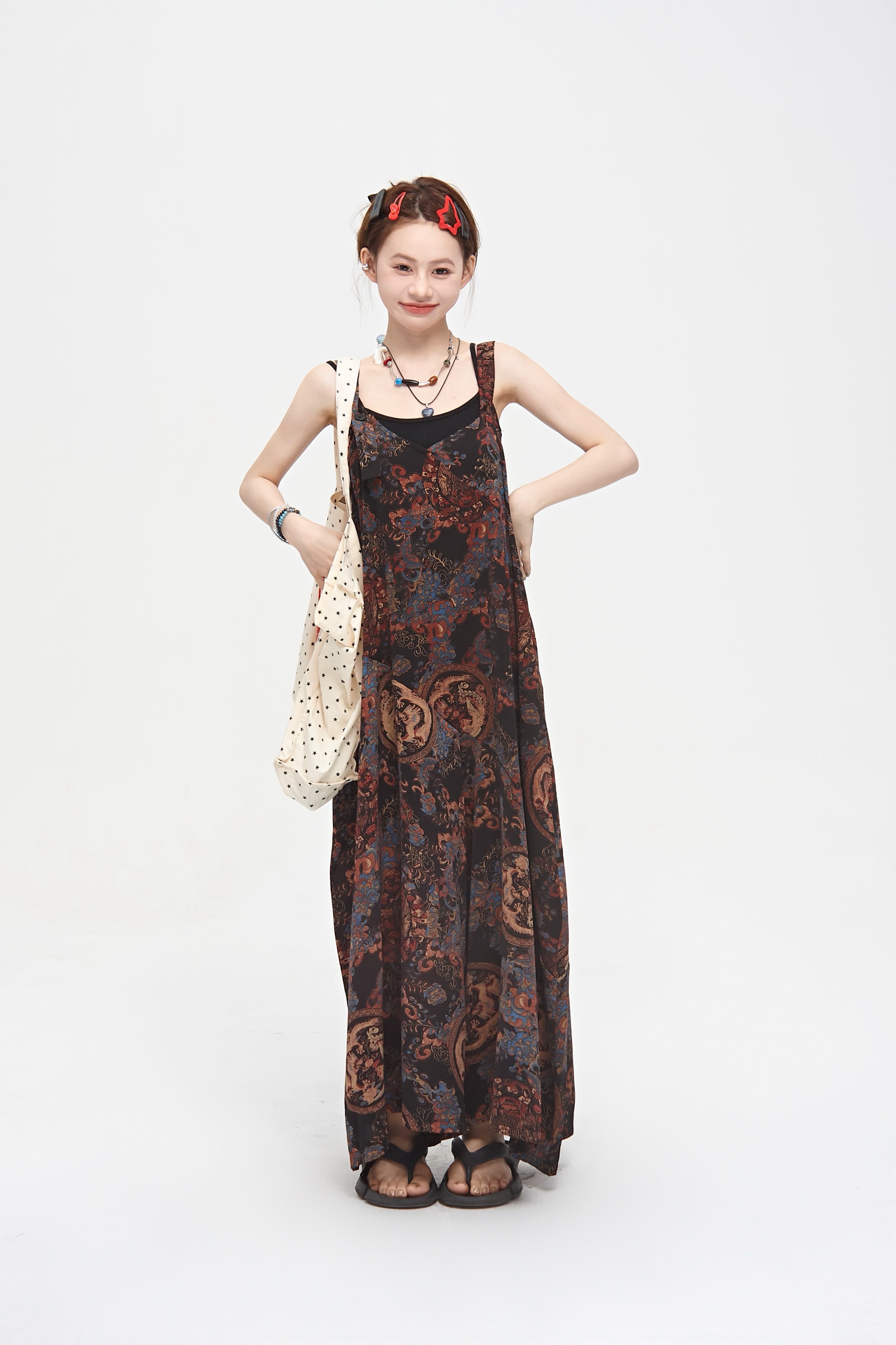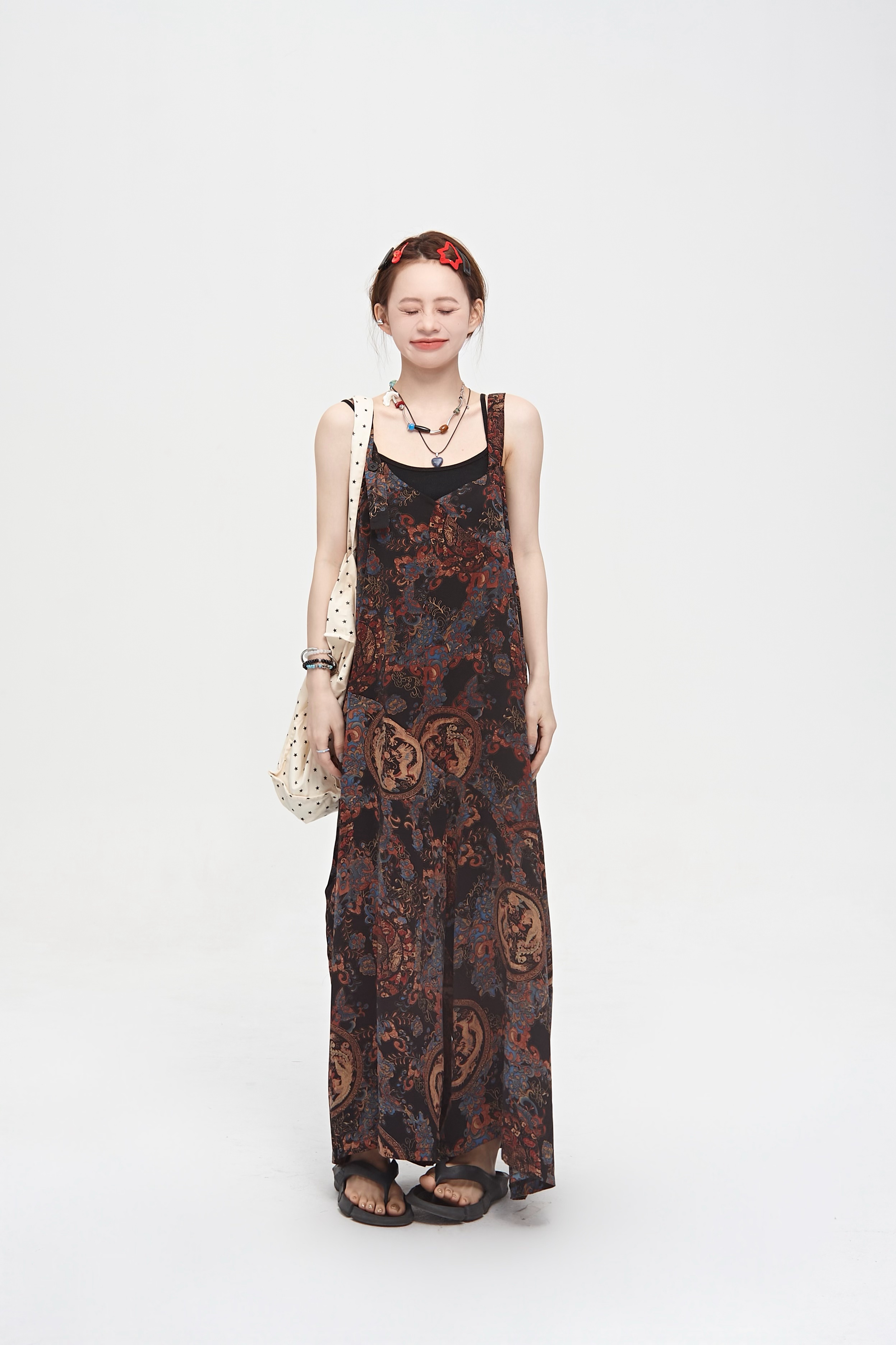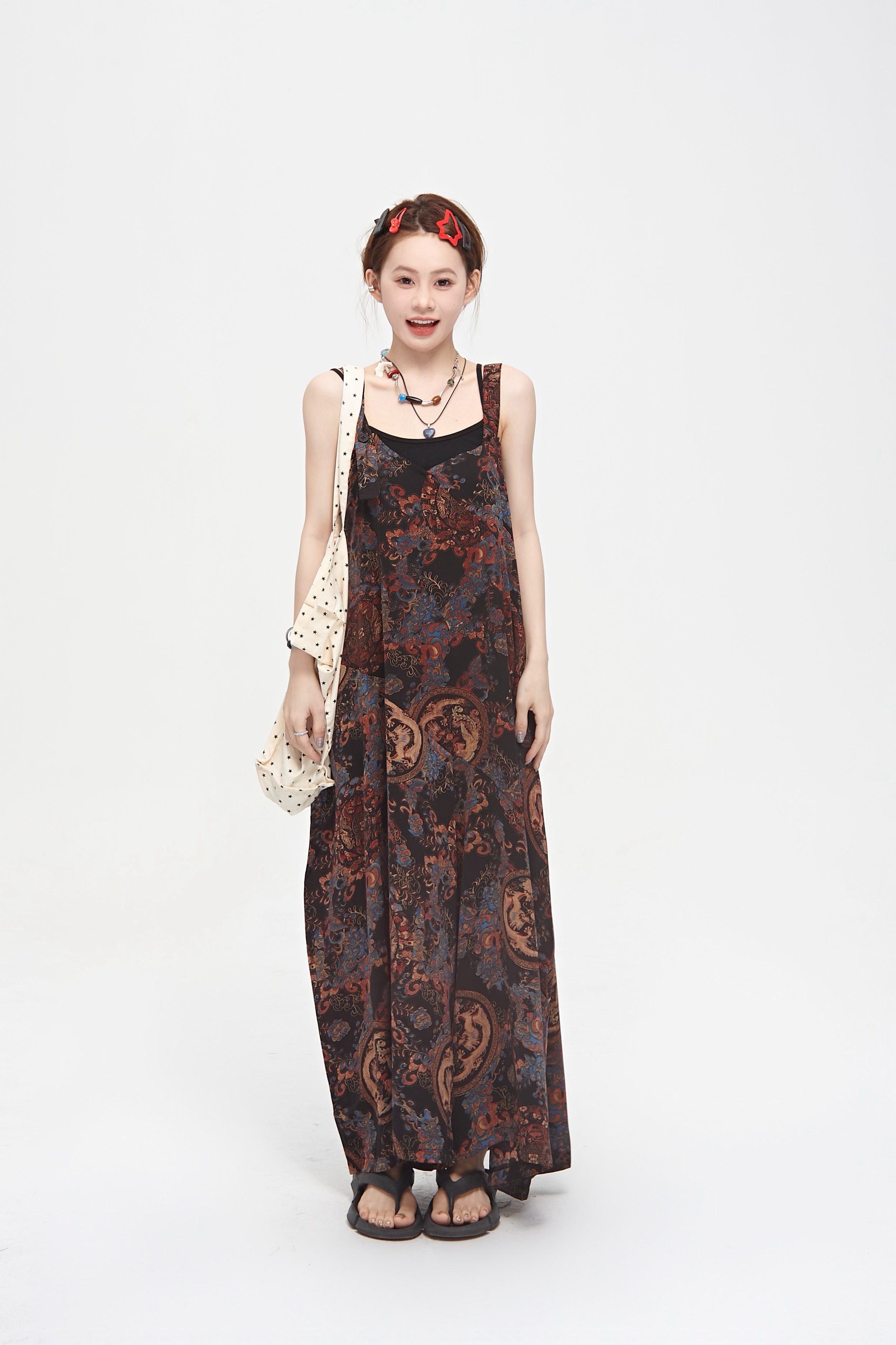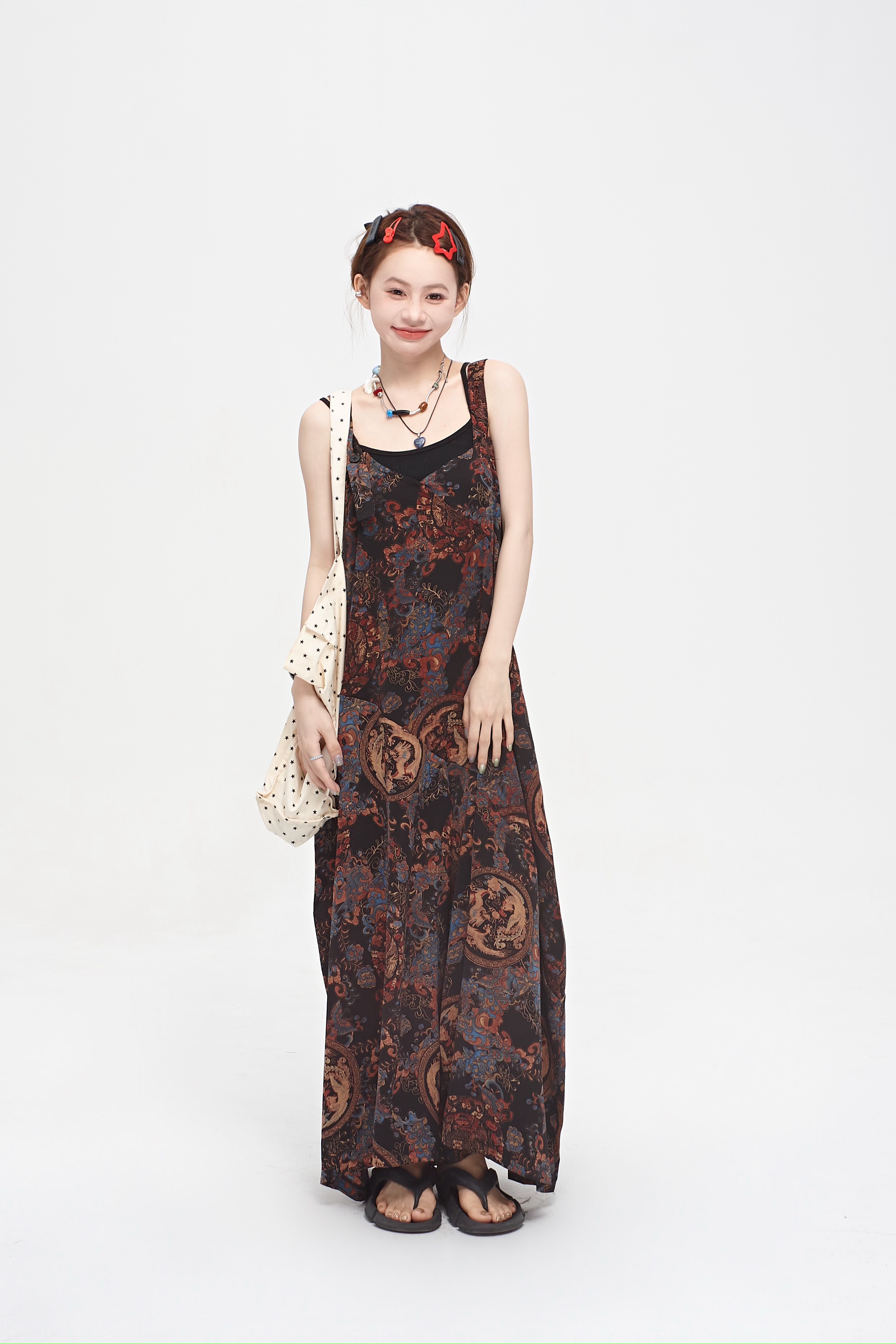 【商品名】【ボトムス】ゆったりルーズ感 Vネックサロペット 夏新作 ガーリッシュ宮廷風 ワイドパンツオールインワン【SHシリーズ】