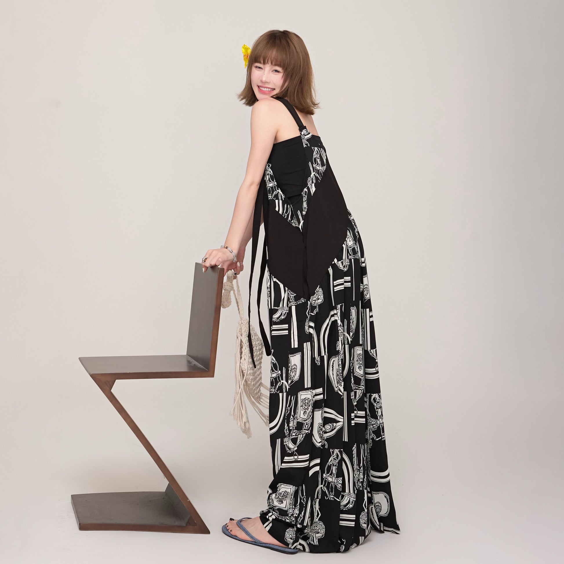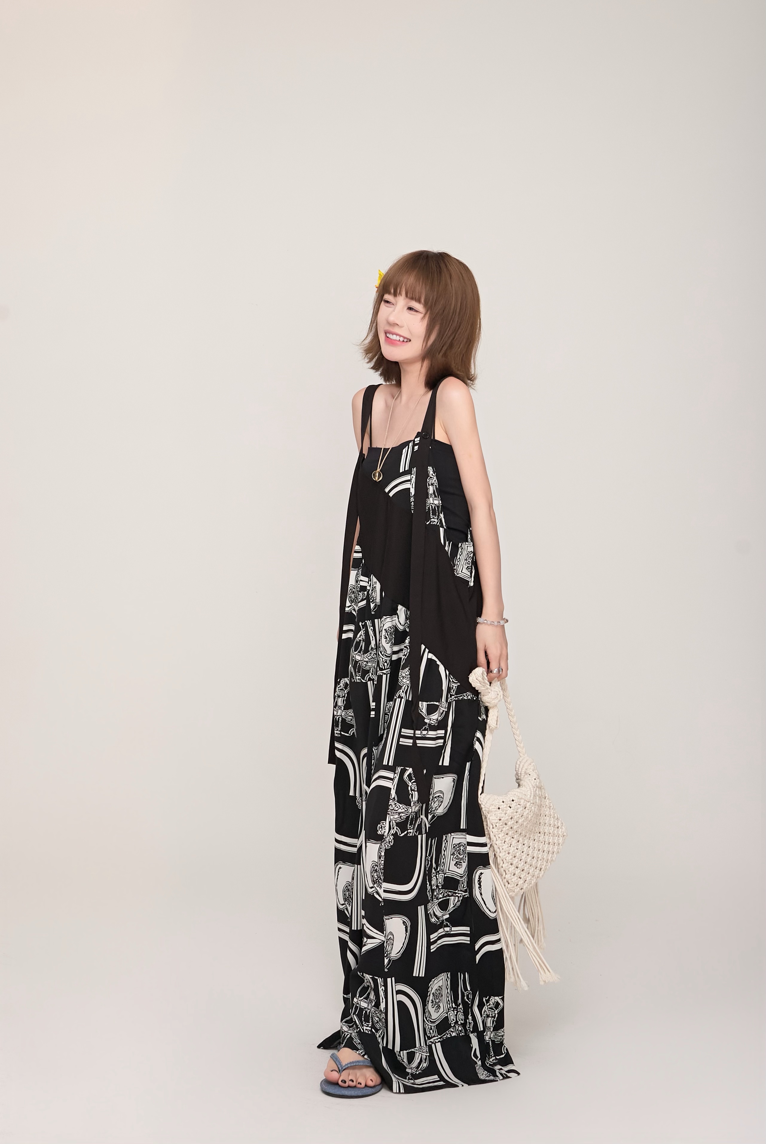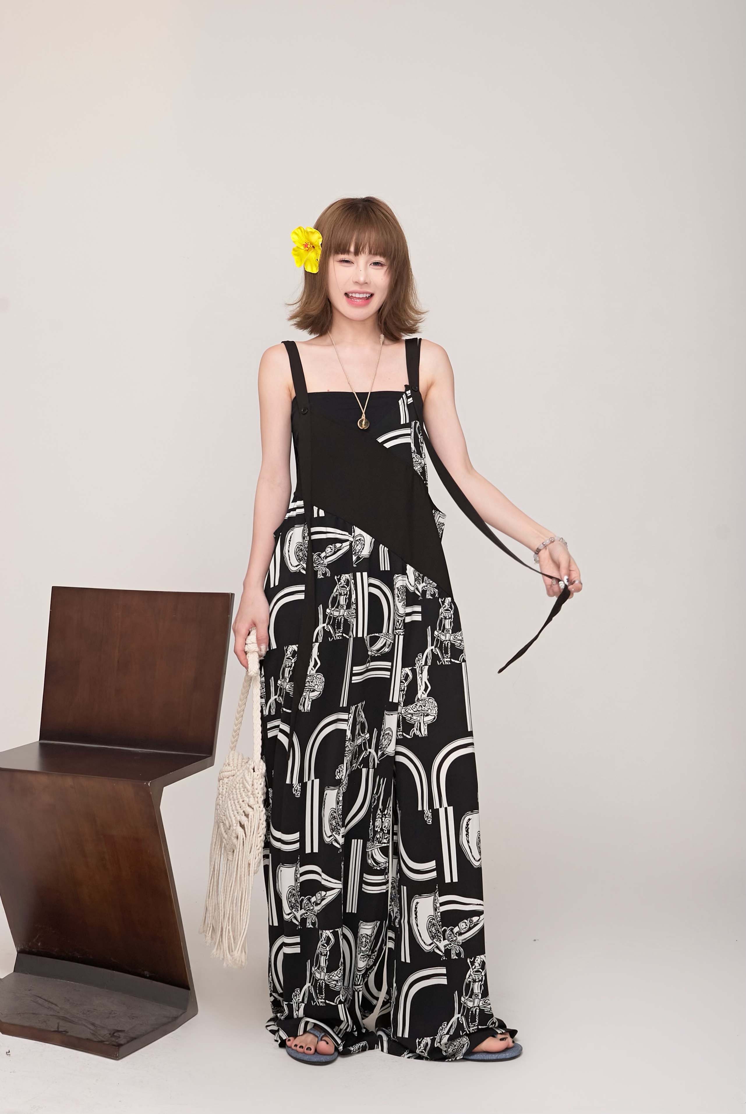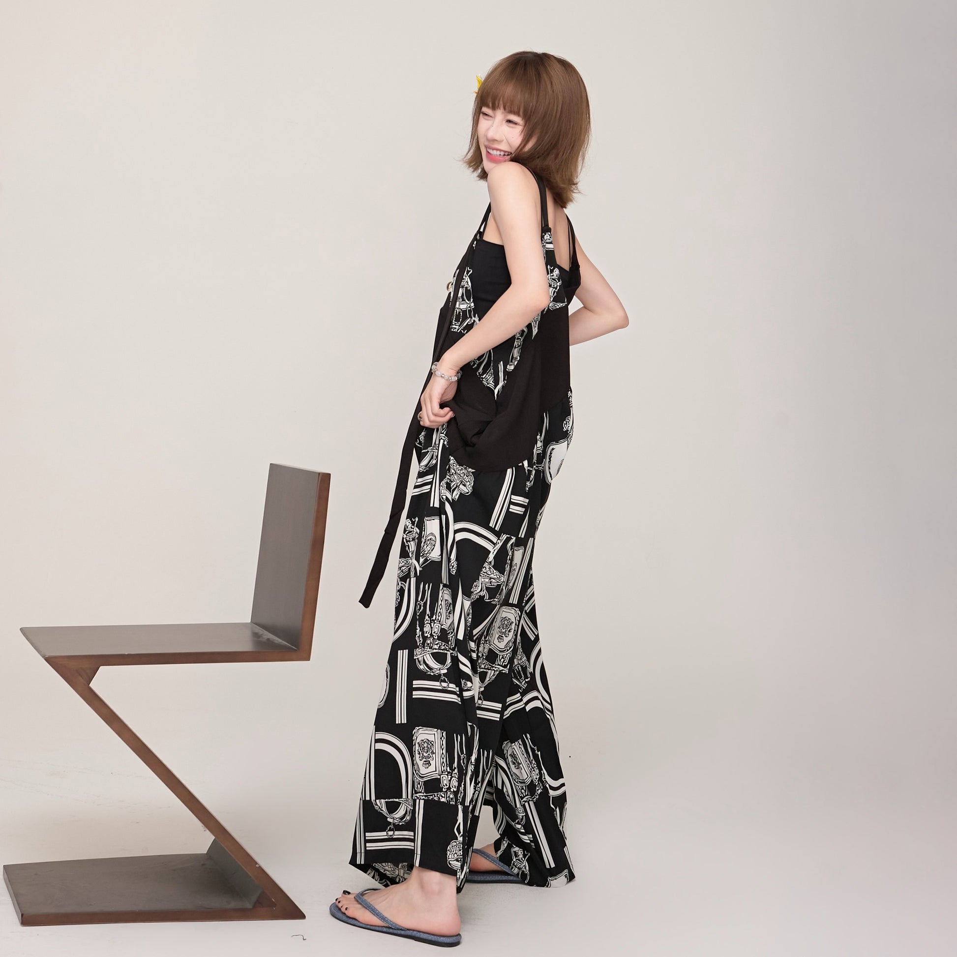 【商品名】【ボトムス】ミュージックムード漂う Vネックサロペット ゆったりオーバーサイズ 春夏新作 ワイドパンツオールインワン【SHシリーズ】