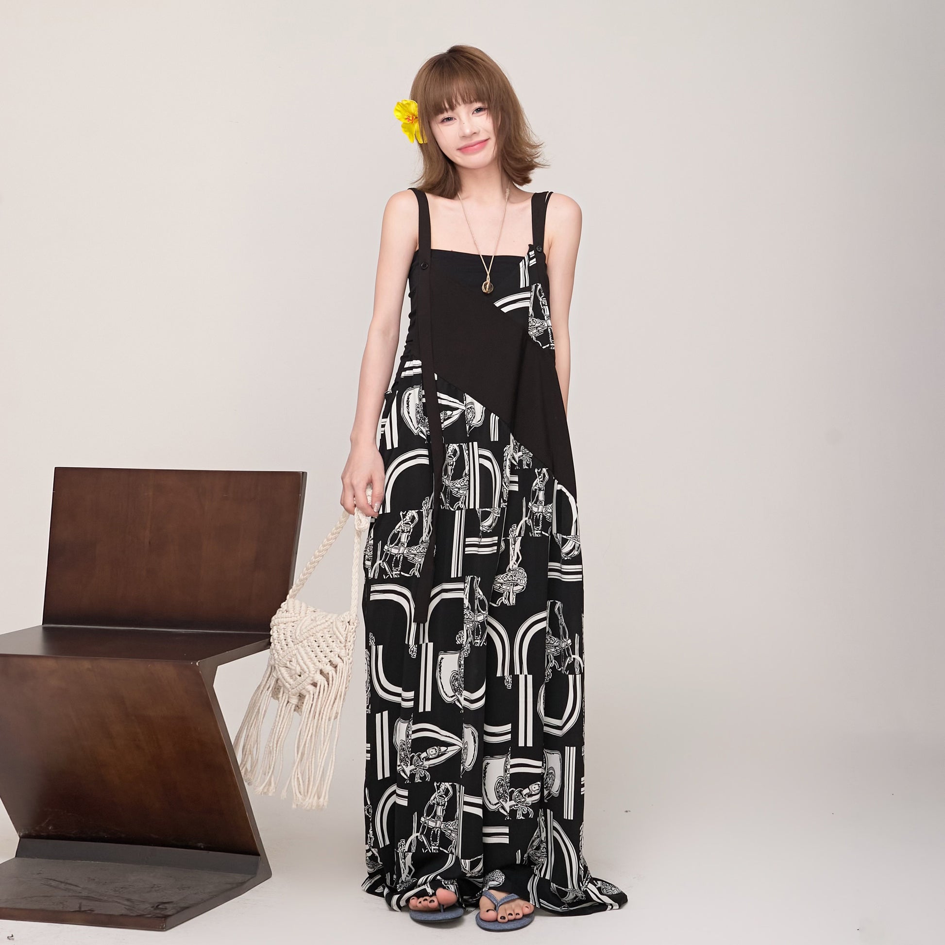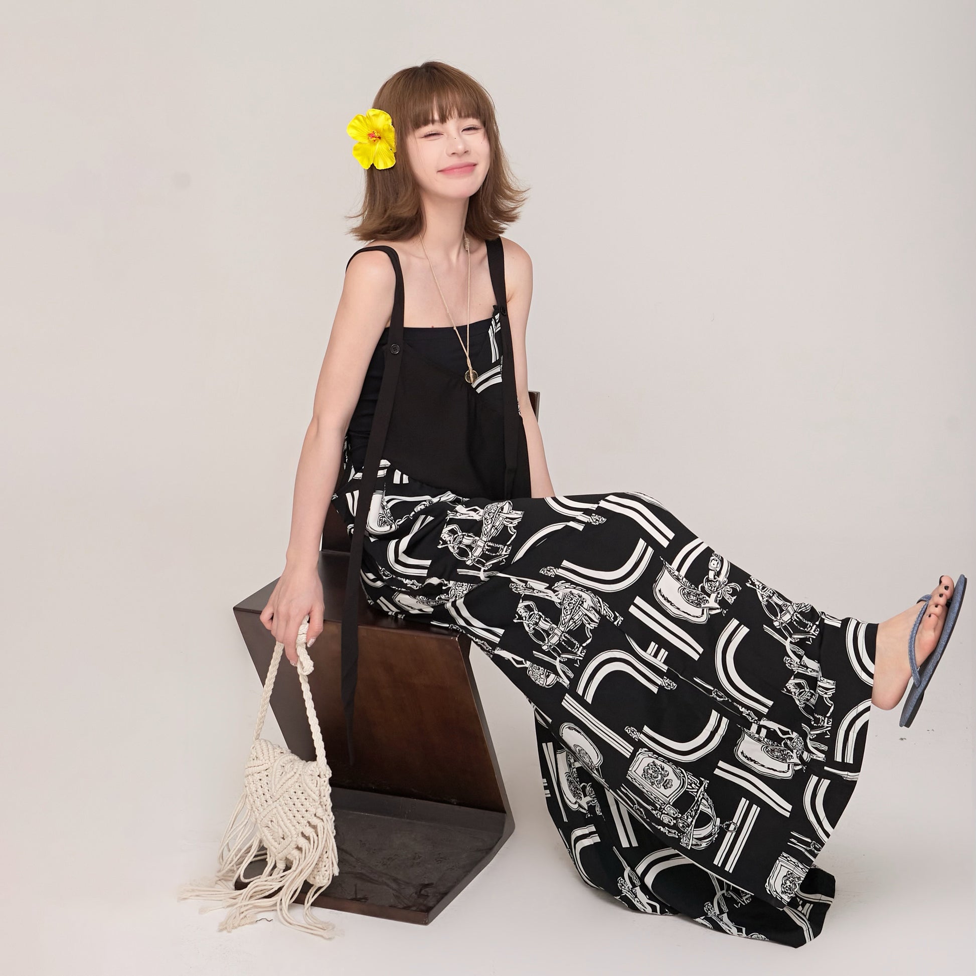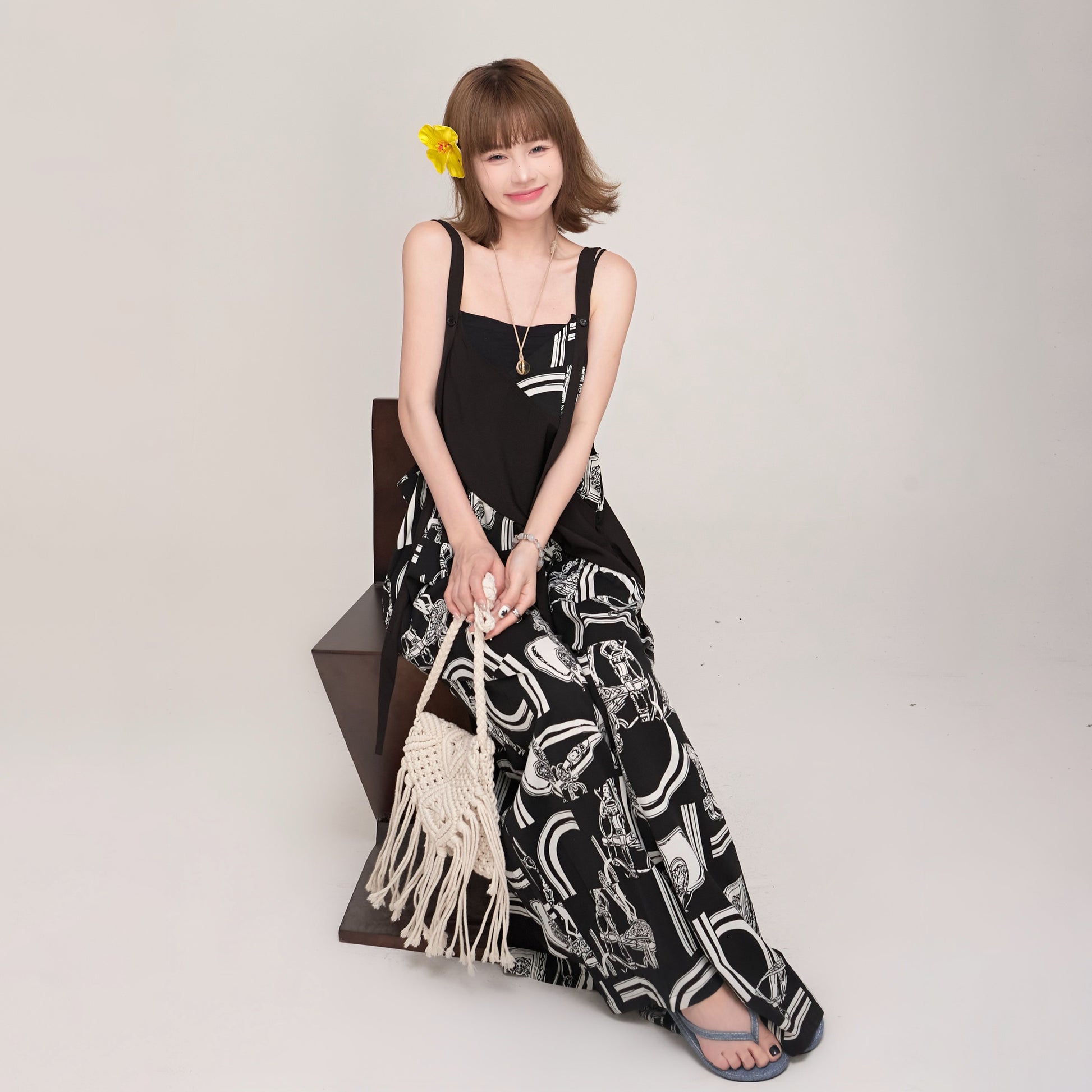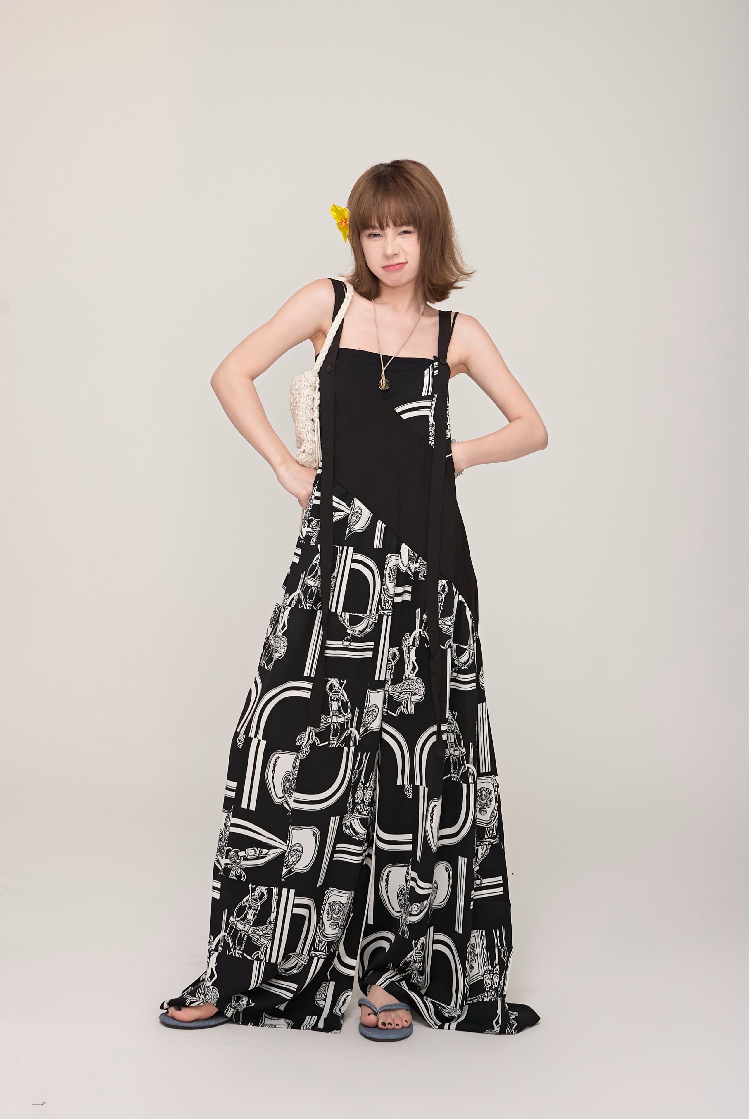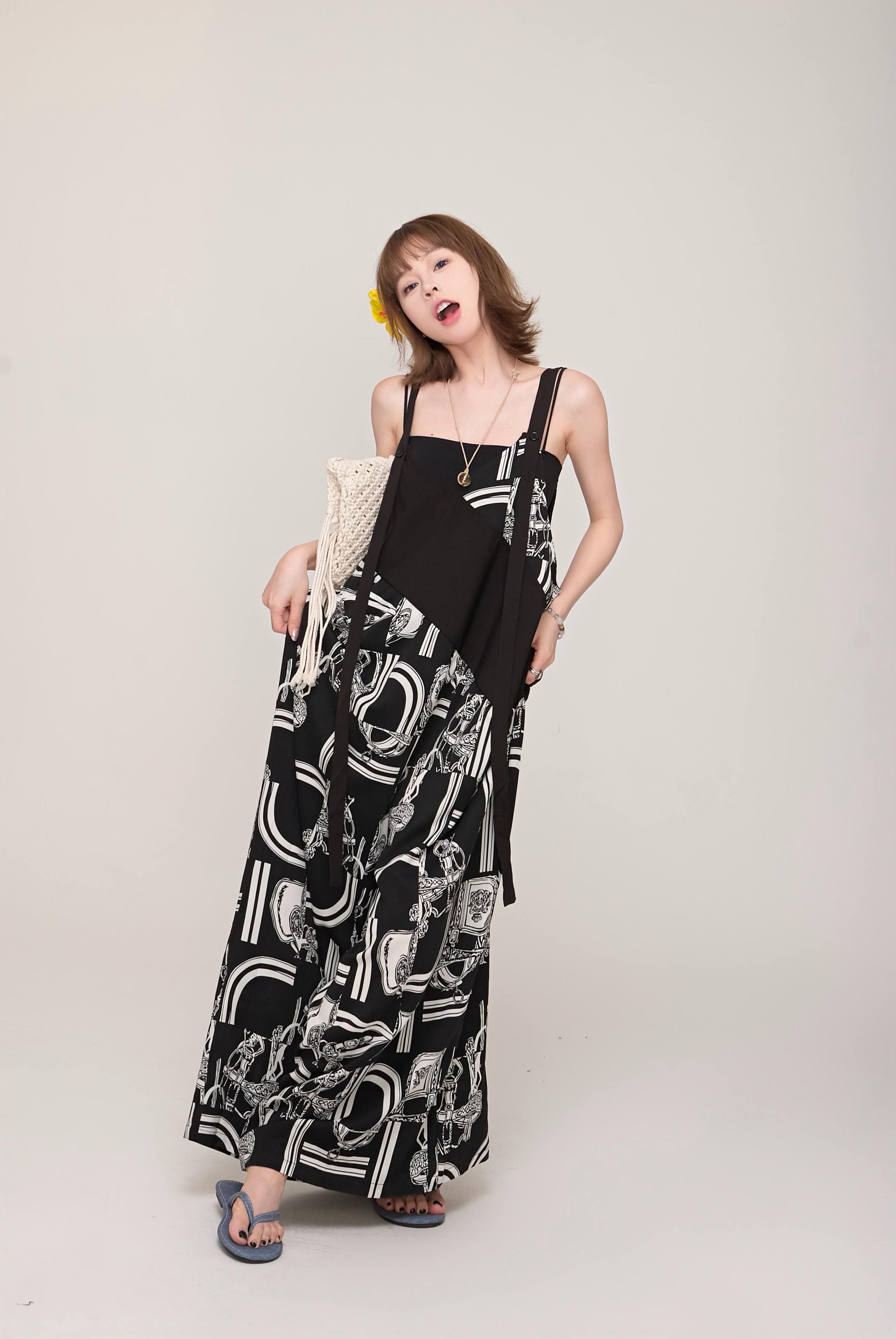 【商品名】【ボトムス】ミュージックムード漂う Vネックサロペット ゆったりオーバーサイズ 春夏新作 ワイドパンツオールインワン【SHシリーズ】
