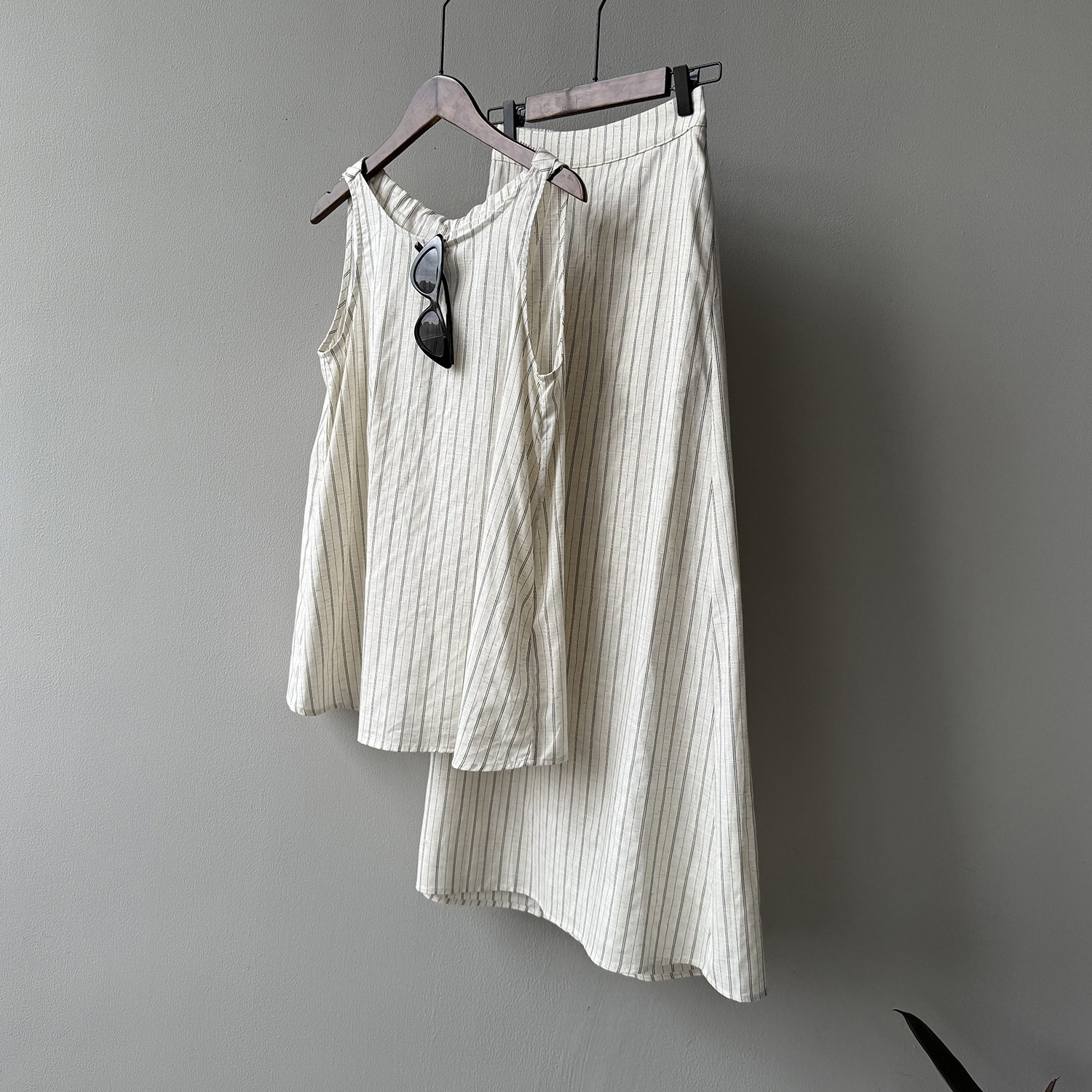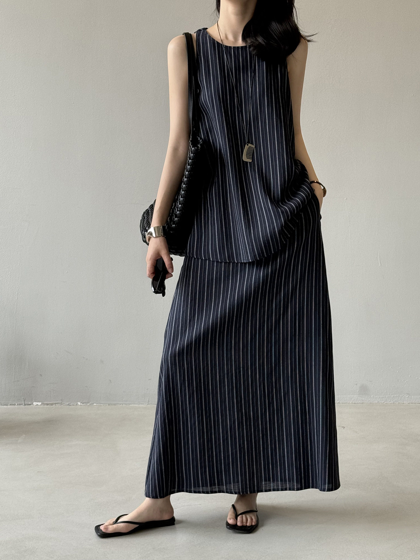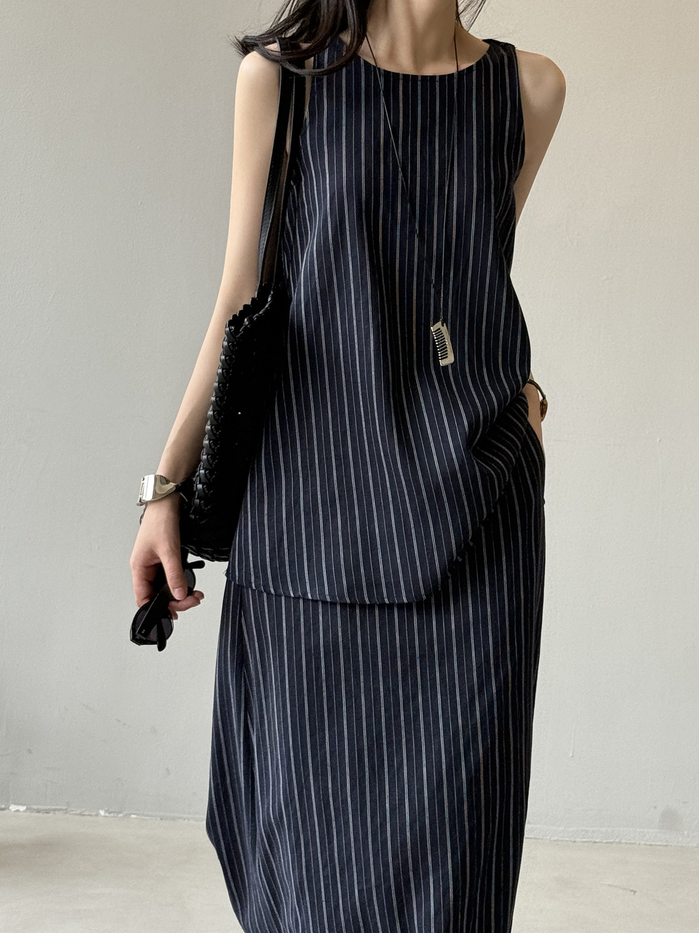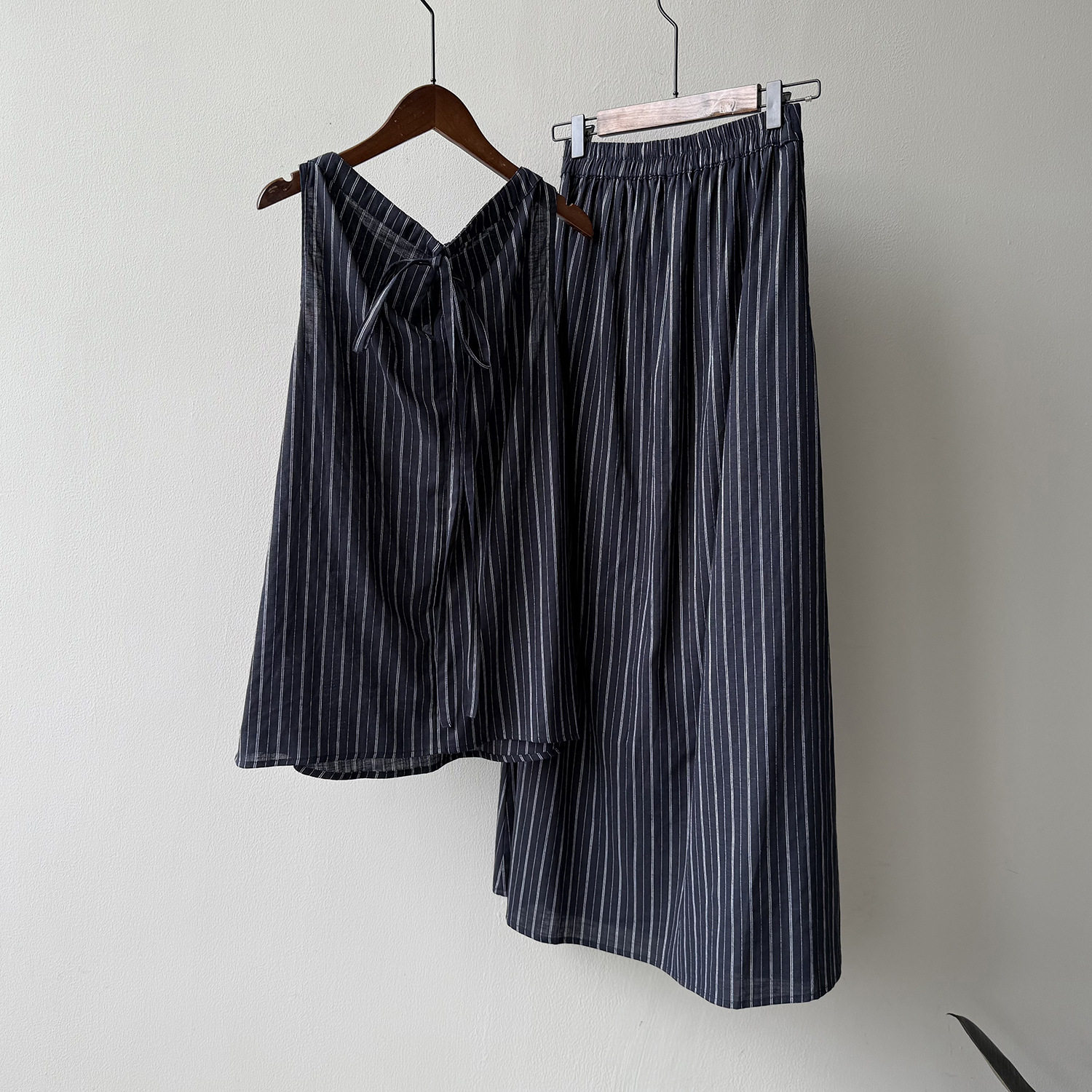 2点セット!【セットアップ】夏新作 テンセルリネン ストライプ柄 タンクトップ+上品 スカート 上下セット【JZシリーズ】