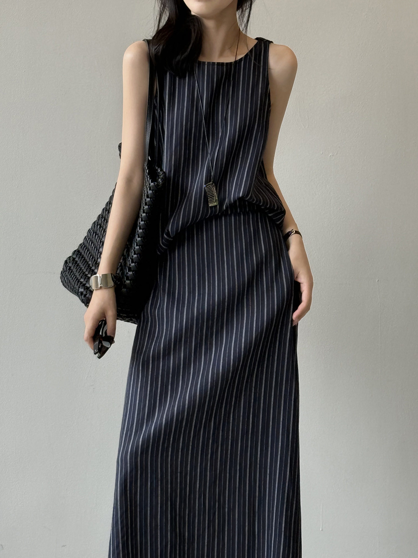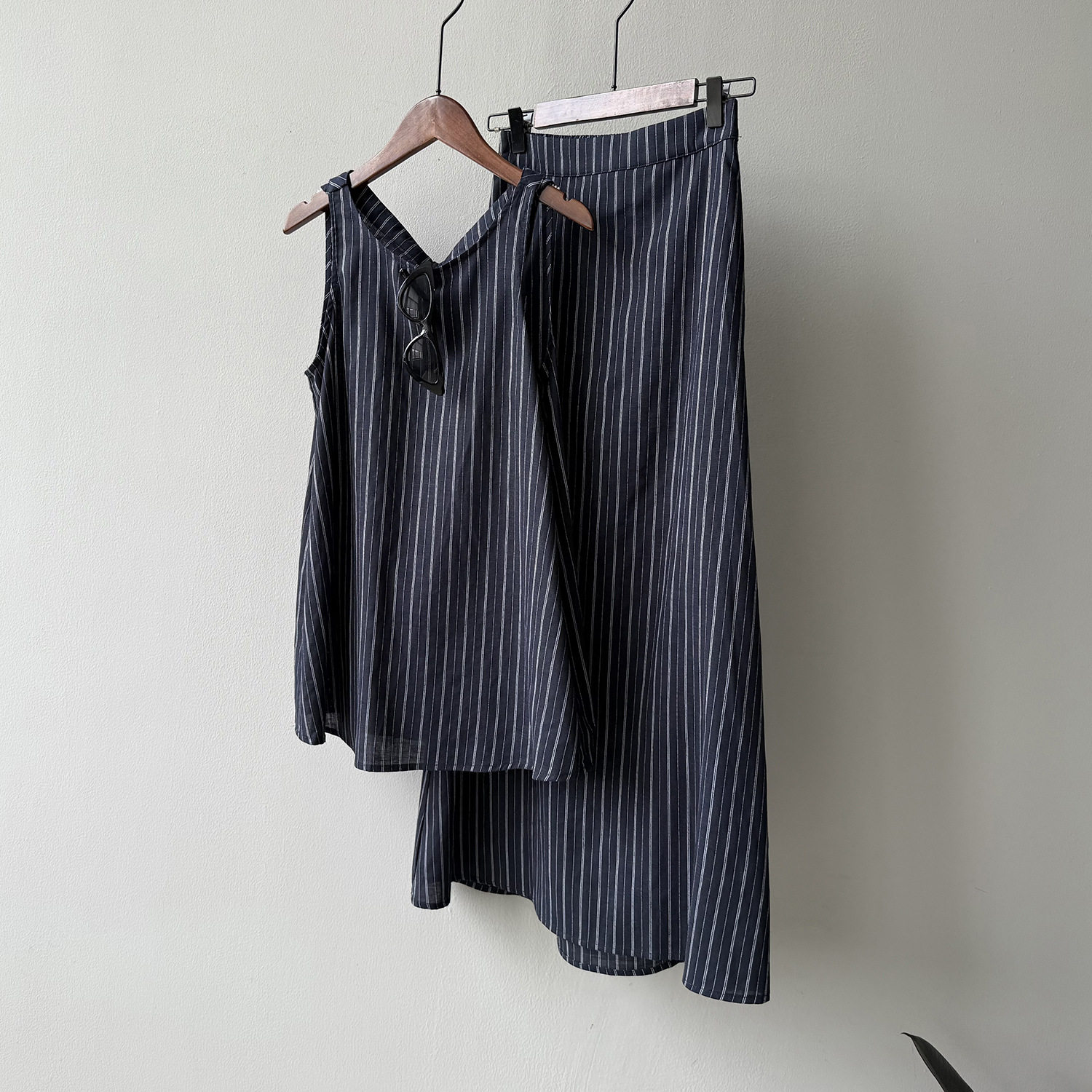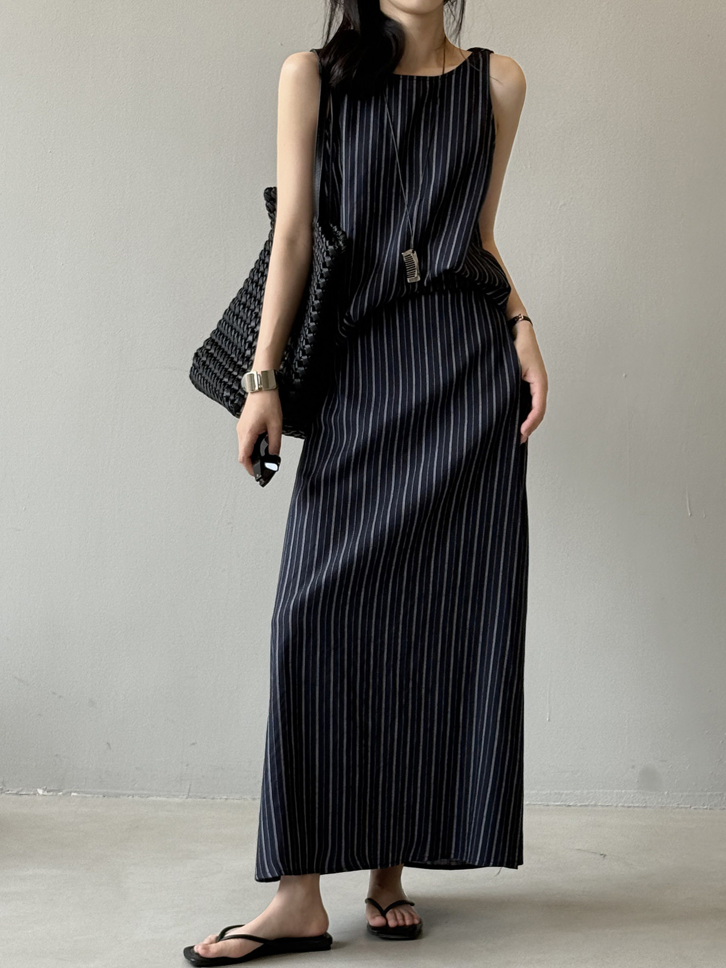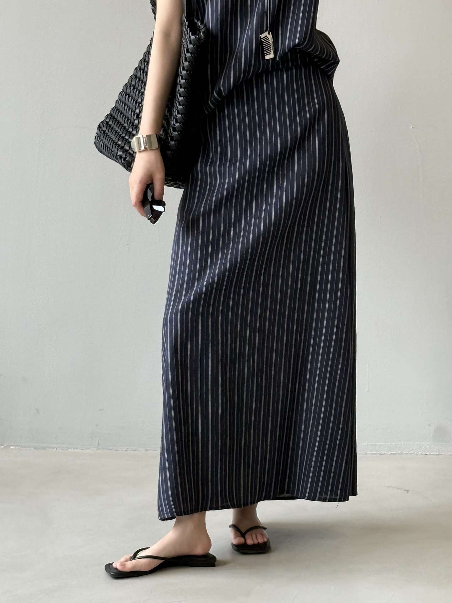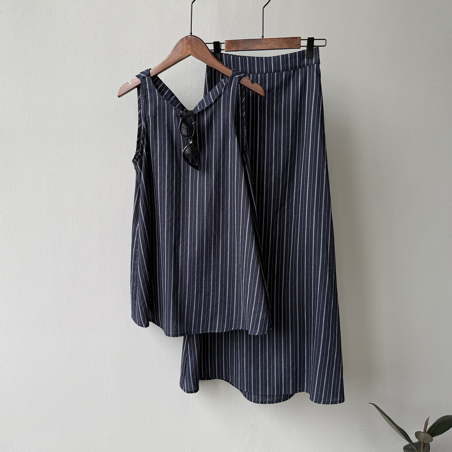 2点セット!【セットアップ】夏新作 テンセルリネン ストライプ柄 タンクトップ+上品 スカート 上下セット【JZシリーズ】