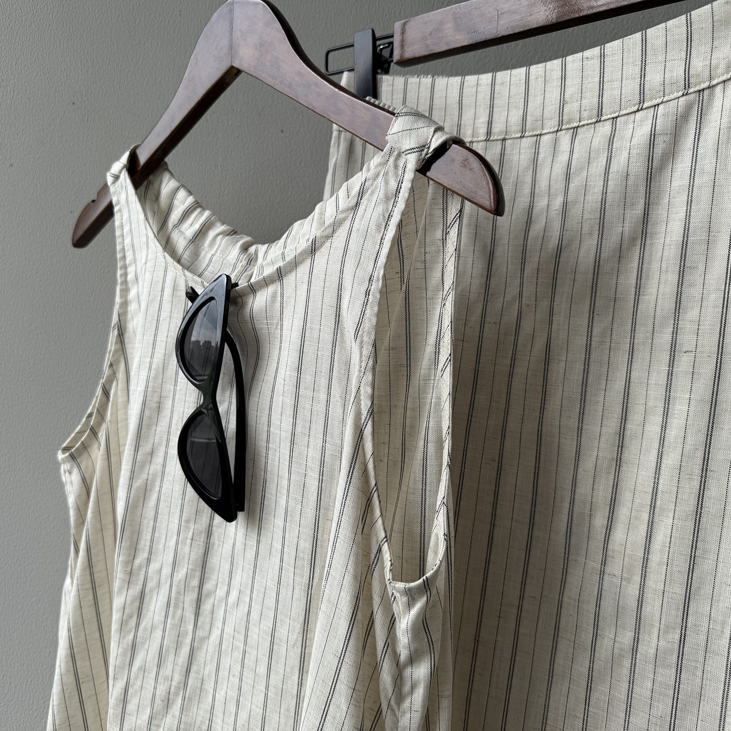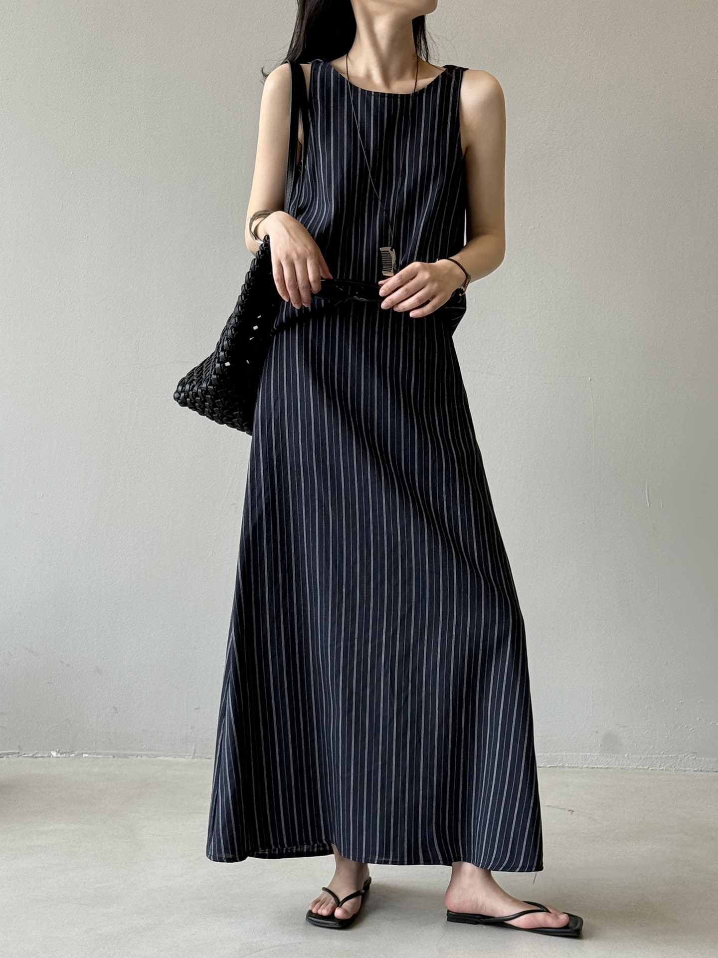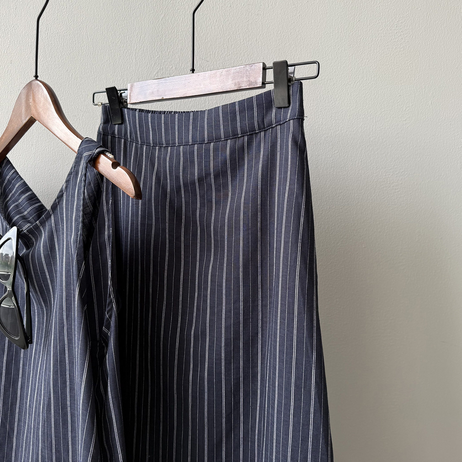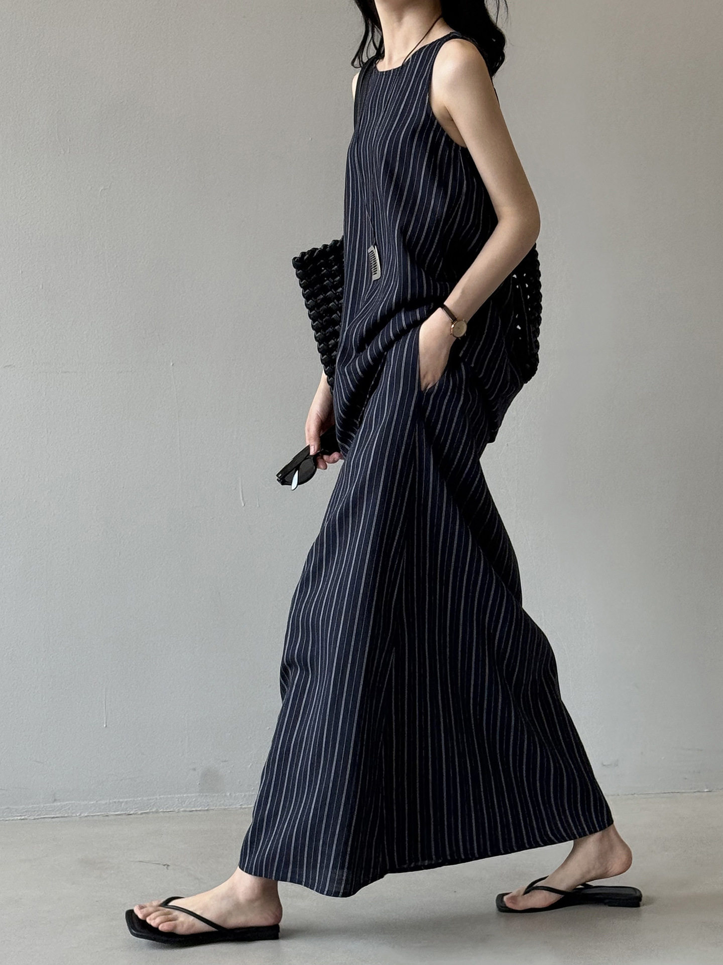 2点セット!【セットアップ】夏新作 テンセルリネン ストライプ柄 タンクトップ+上品 スカート 上下セット【JZシリーズ】