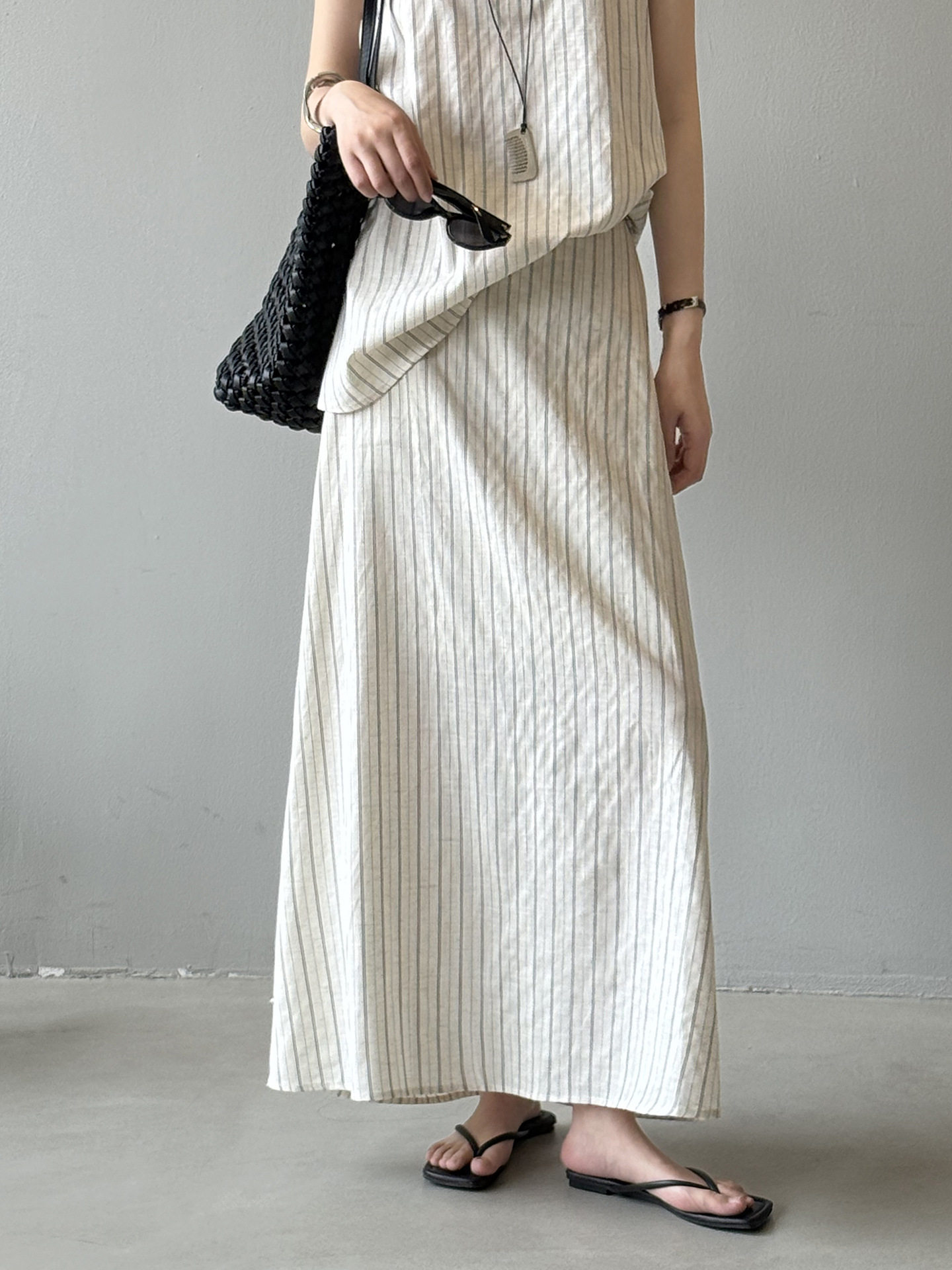 【商品名】2点セット!【ボトムス】夏新作 テンセルリネン ストライプ柄 タンクトップ+上品 スカート 上下セット【JZシリーズ】