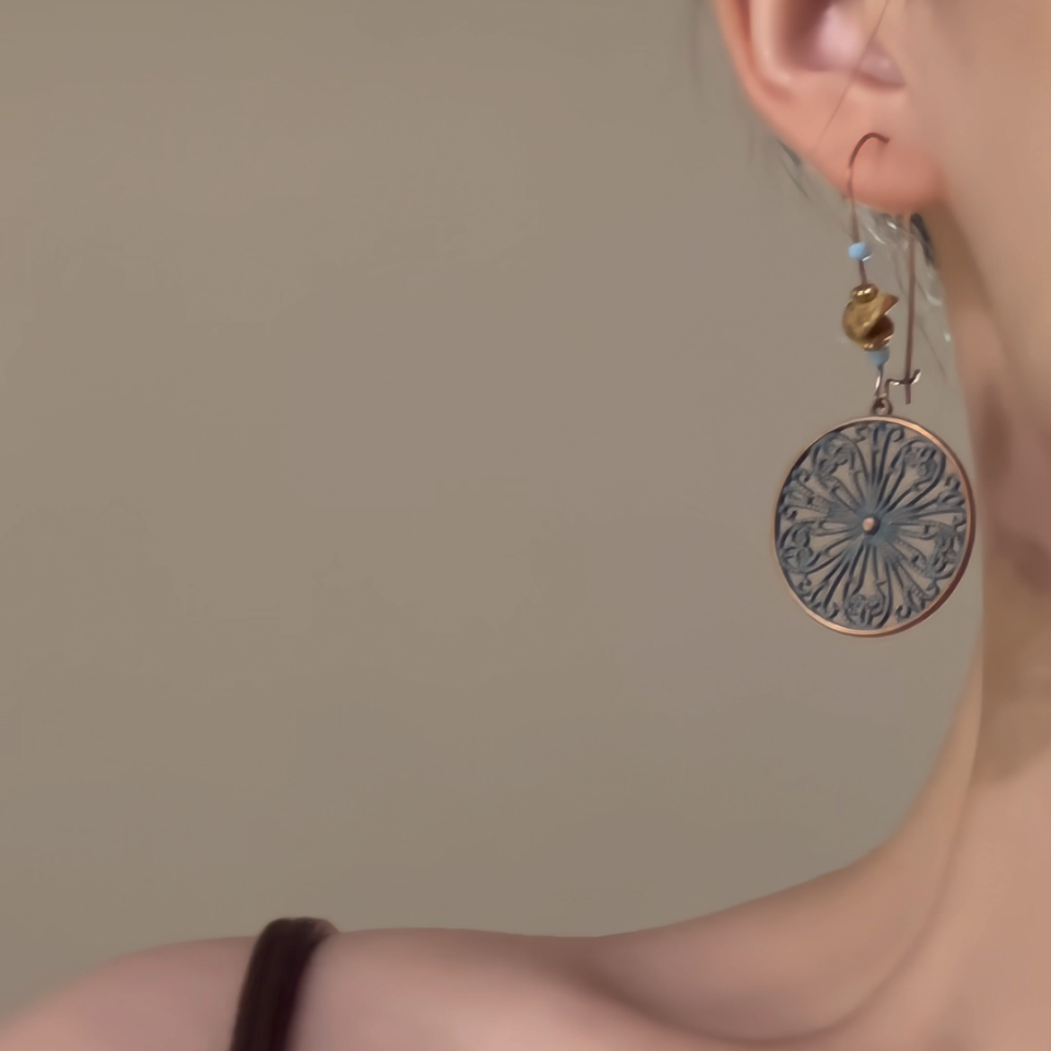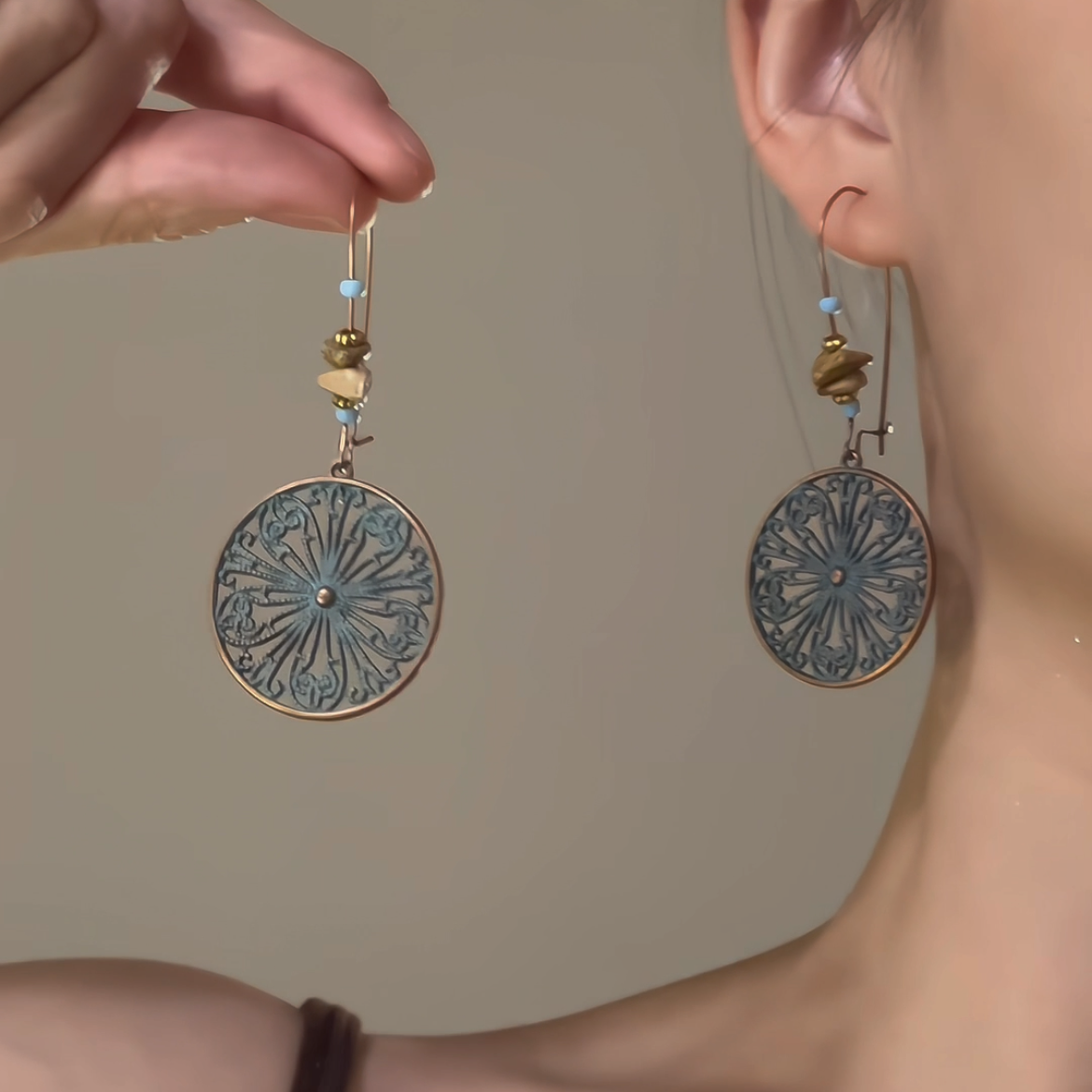 【商品名】【グッズ】夏新作 新中式デザイン 古風エスニックスタイル 青銅グリーンピアス 個性派イヤリング