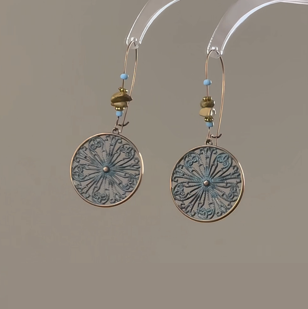 【🎁 B2G1|先行スタート!】【グッズ】夏新作 新中式デザイン 古風エスニックスタイル 青銅グリーンピアス 個性派イヤリング