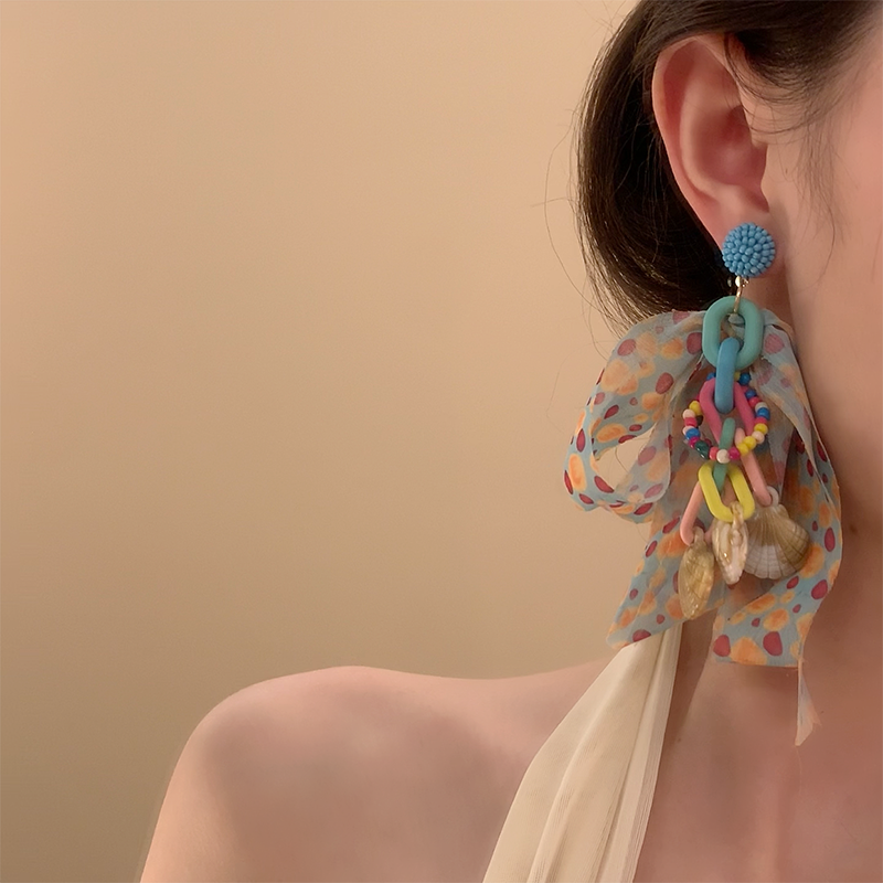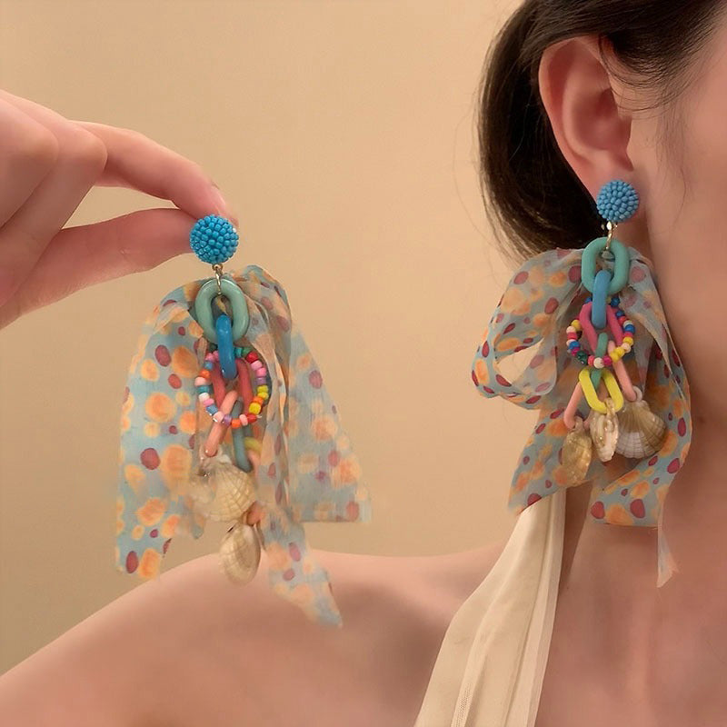 【商品名】【グッズ】夏新作 個性派 ビーズ刺繍ピアス 海辺リゾート風 ユニークデザイン イヤリング