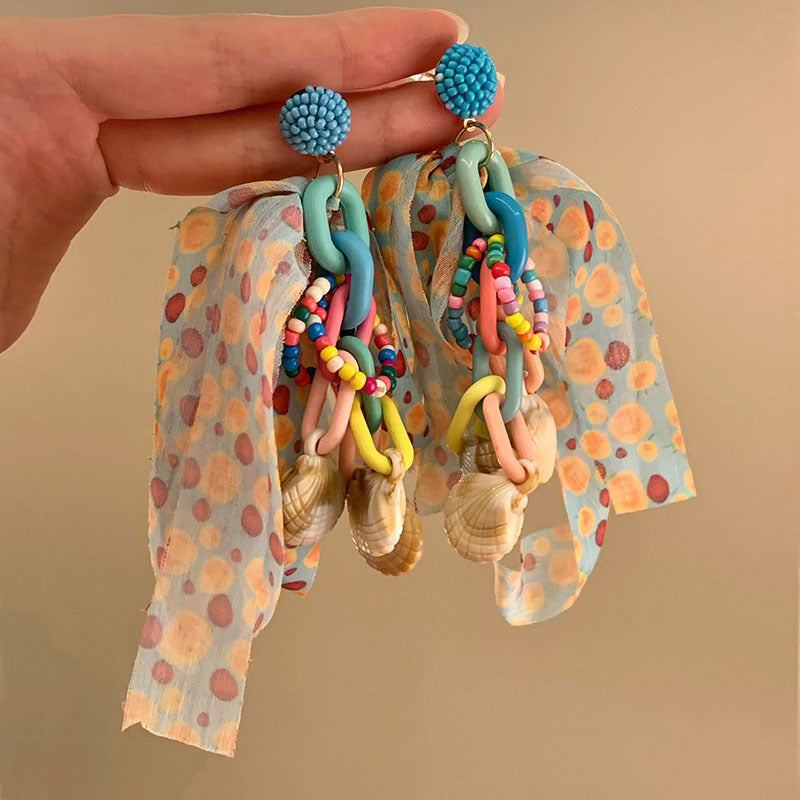 【🎁 B2G1|先行スタート!】【グッズ】夏新作 個性派 ビーズ刺繍ピアス 海辺リゾート風 ユニークデザイン イヤリング