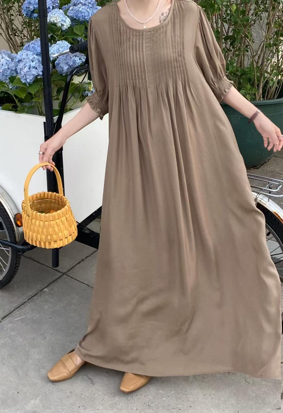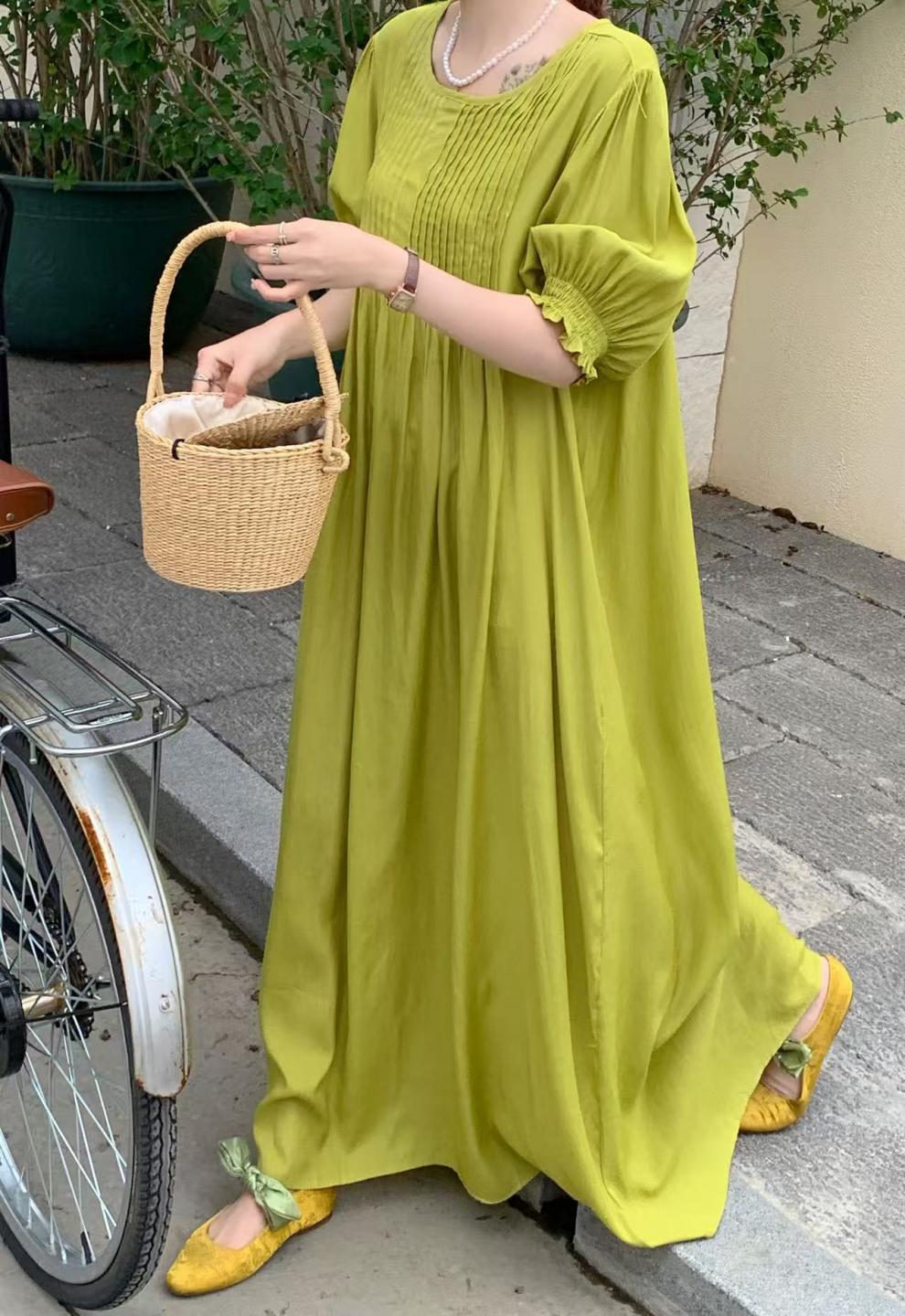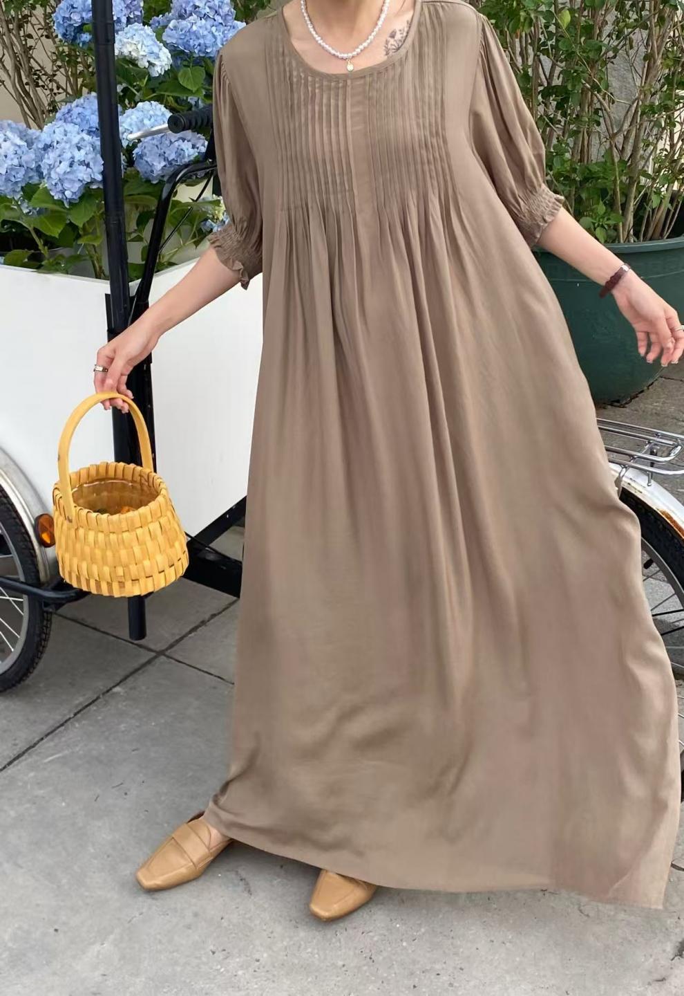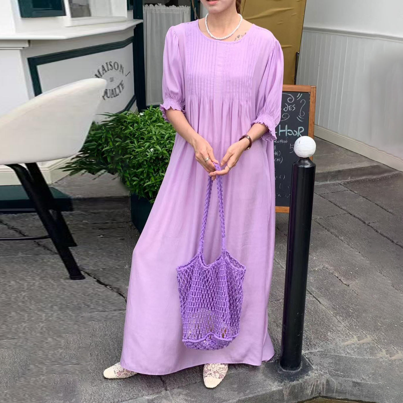 【ワンピース】10色展開 韓国風 レトロ&アートテイスト ゆったり大きいサイズ 無地 半袖ワンピース