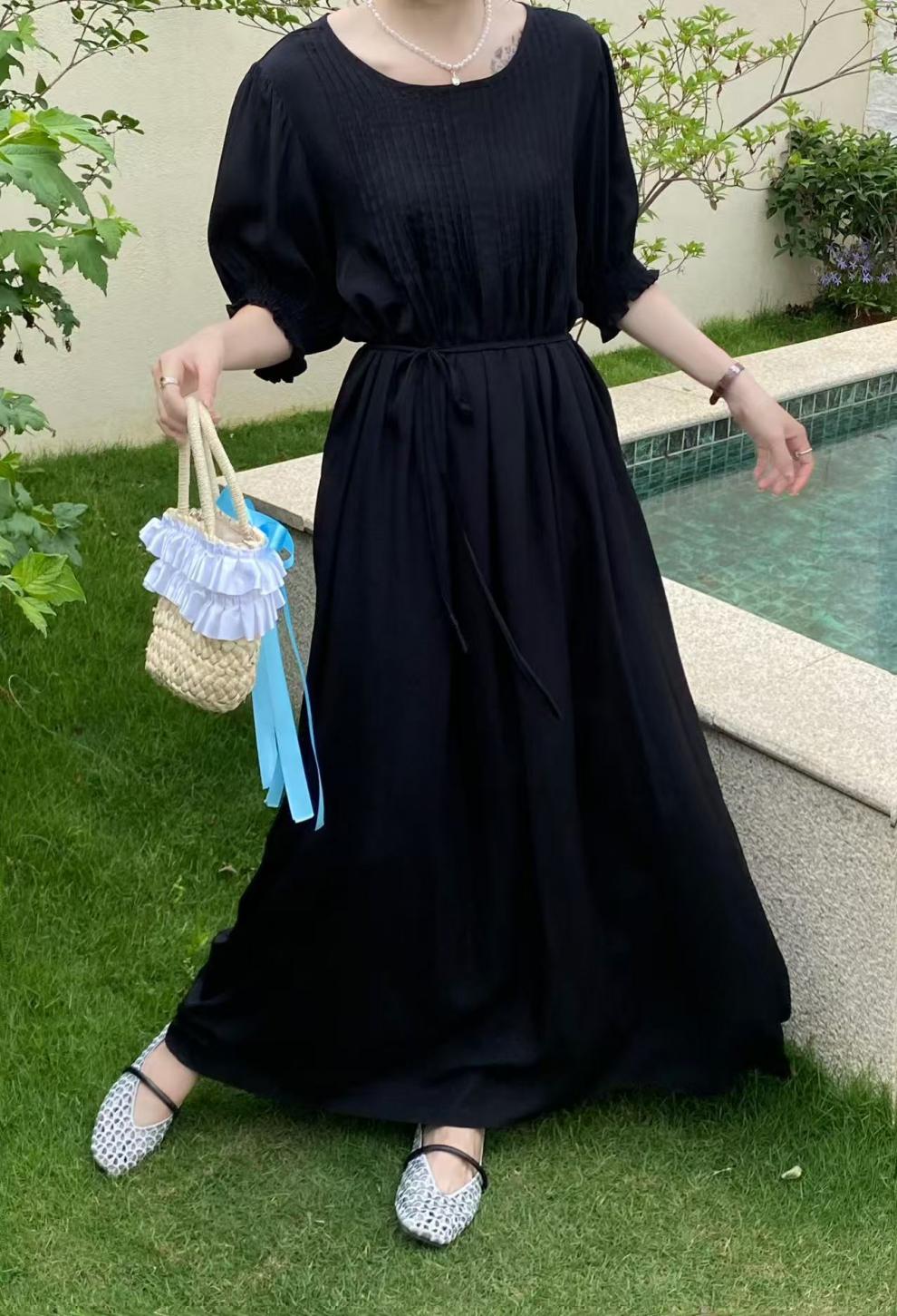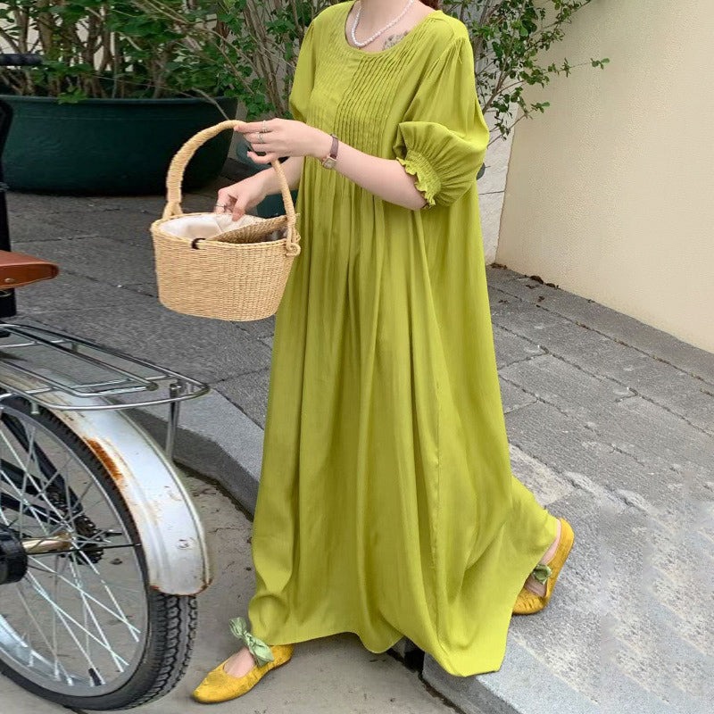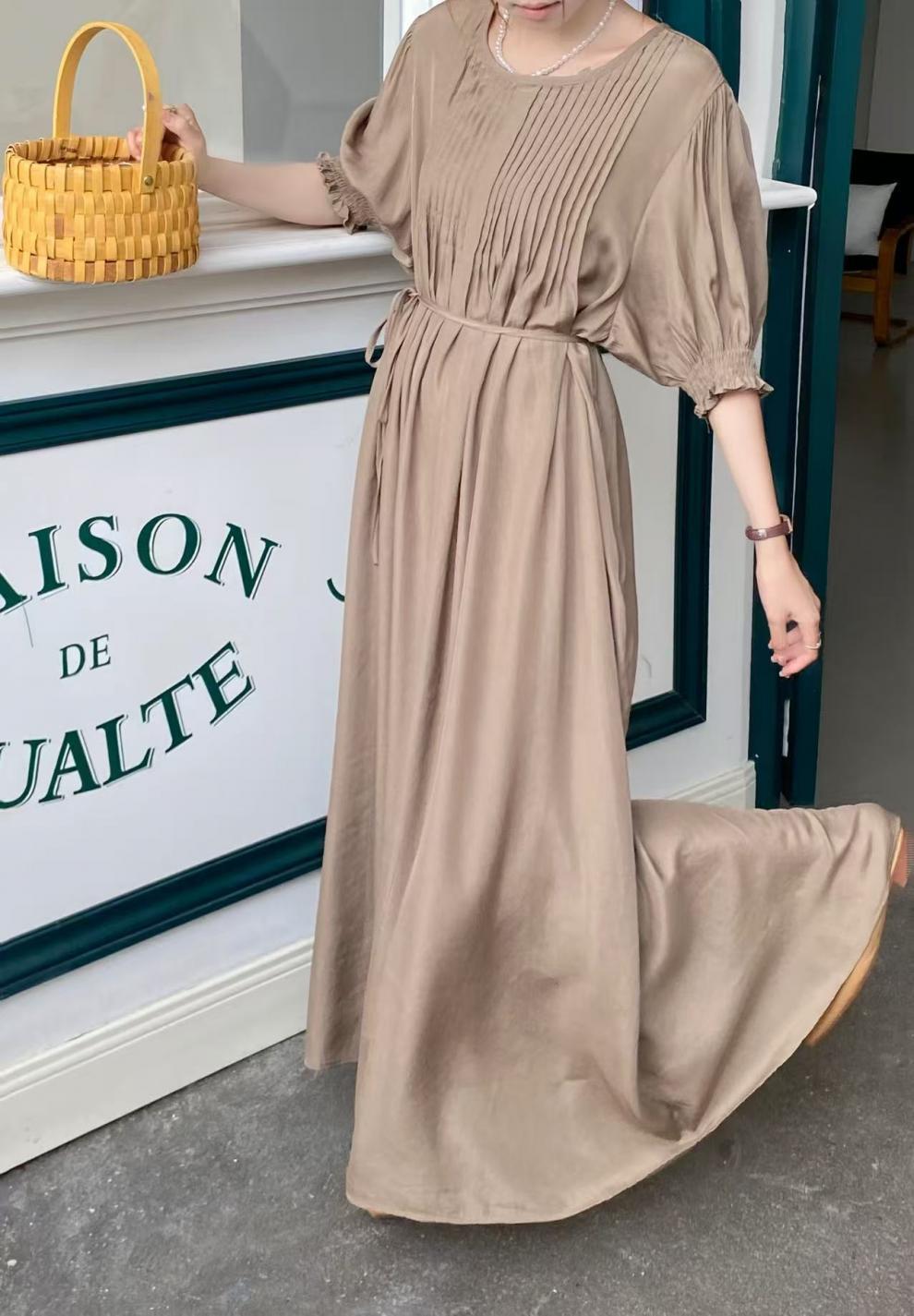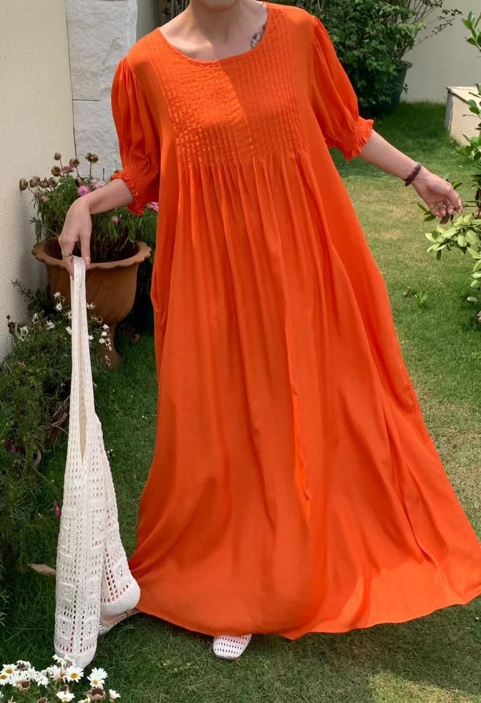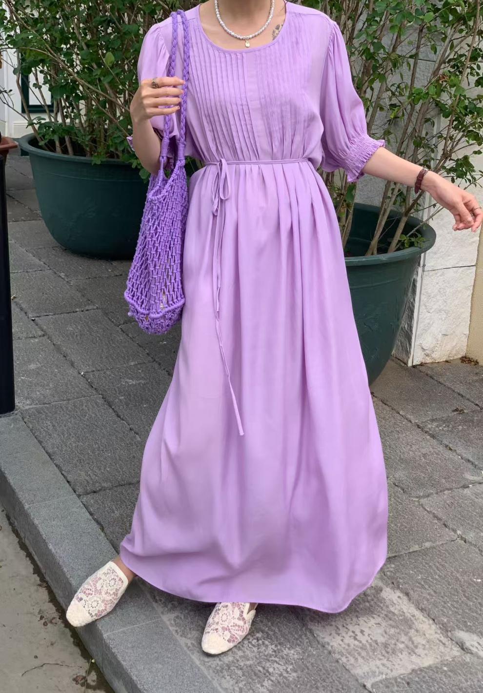 【ワンピース】10色展開 韓国風 レトロ&アートテイスト ゆったり大きいサイズ 無地 半袖ワンピース