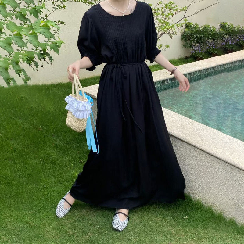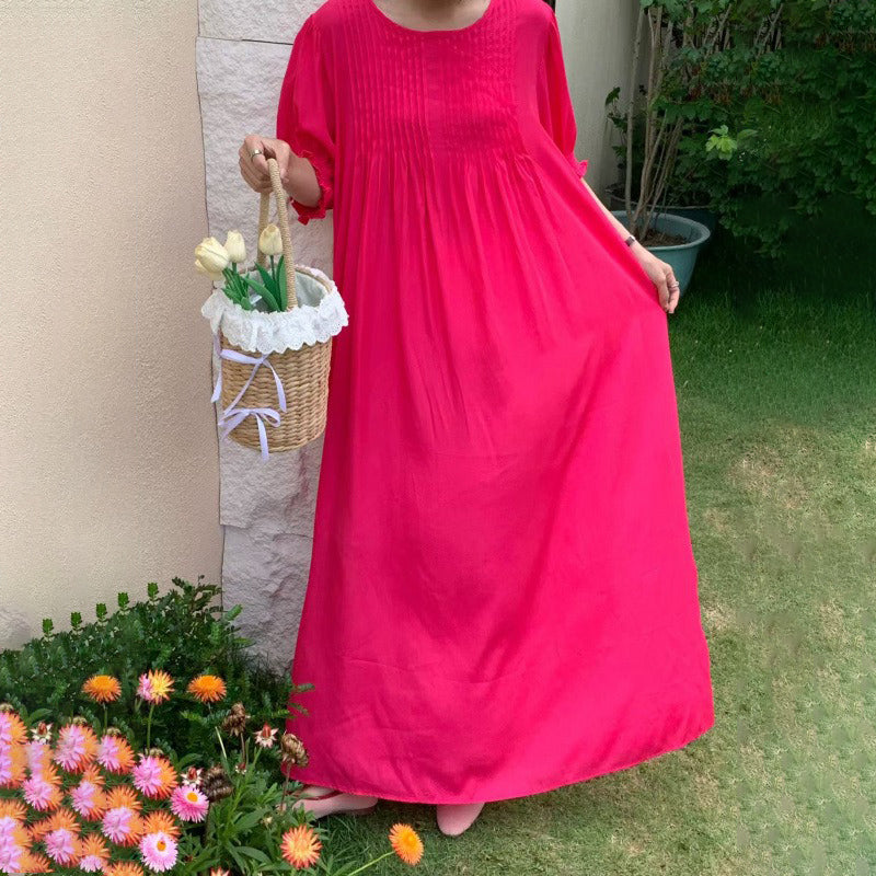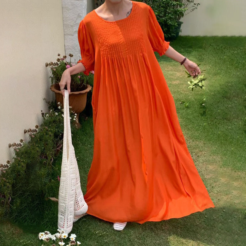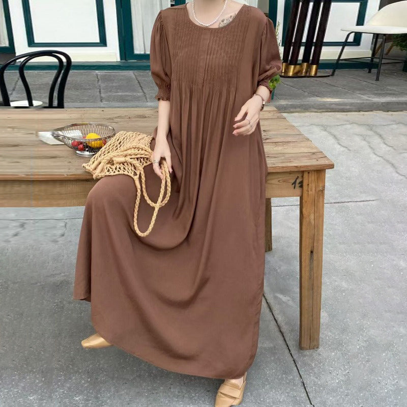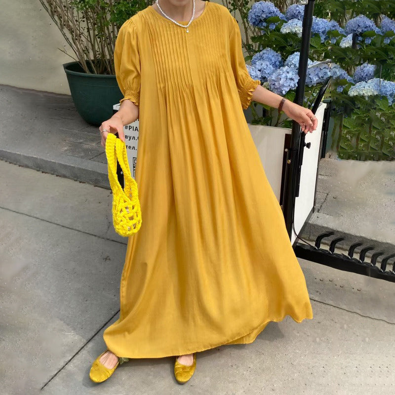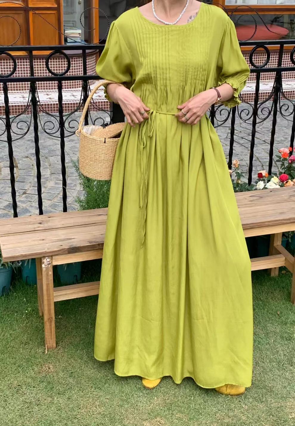 【ワンピース】10色展開 韓国風 レトロ&アートテイスト ゆったり大きいサイズ 無地 半袖ワンピース