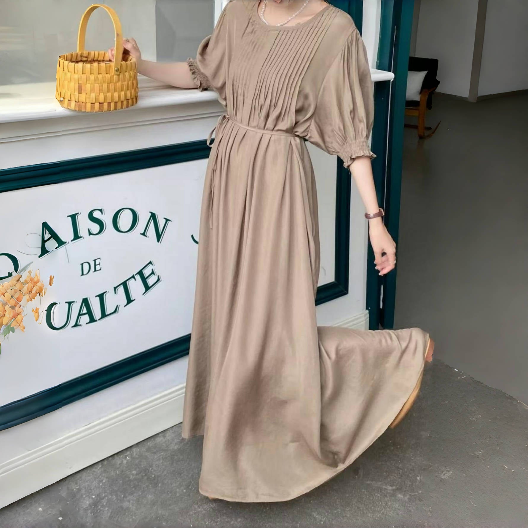 【商品名】【ワンピース】10色展開 韓国風 レトロ&アートテイスト ゆったり大きいサイズ 無地 半袖ワンピース