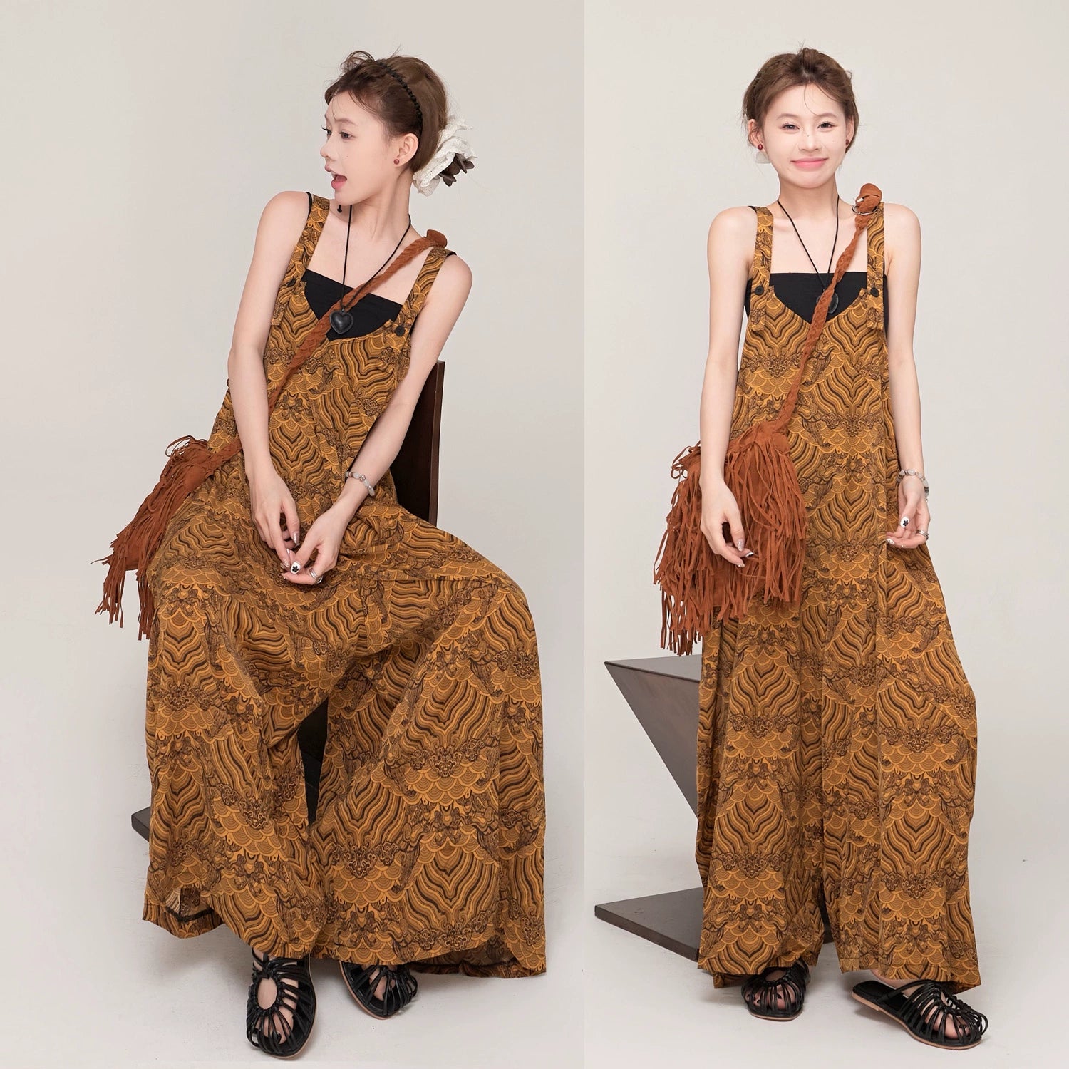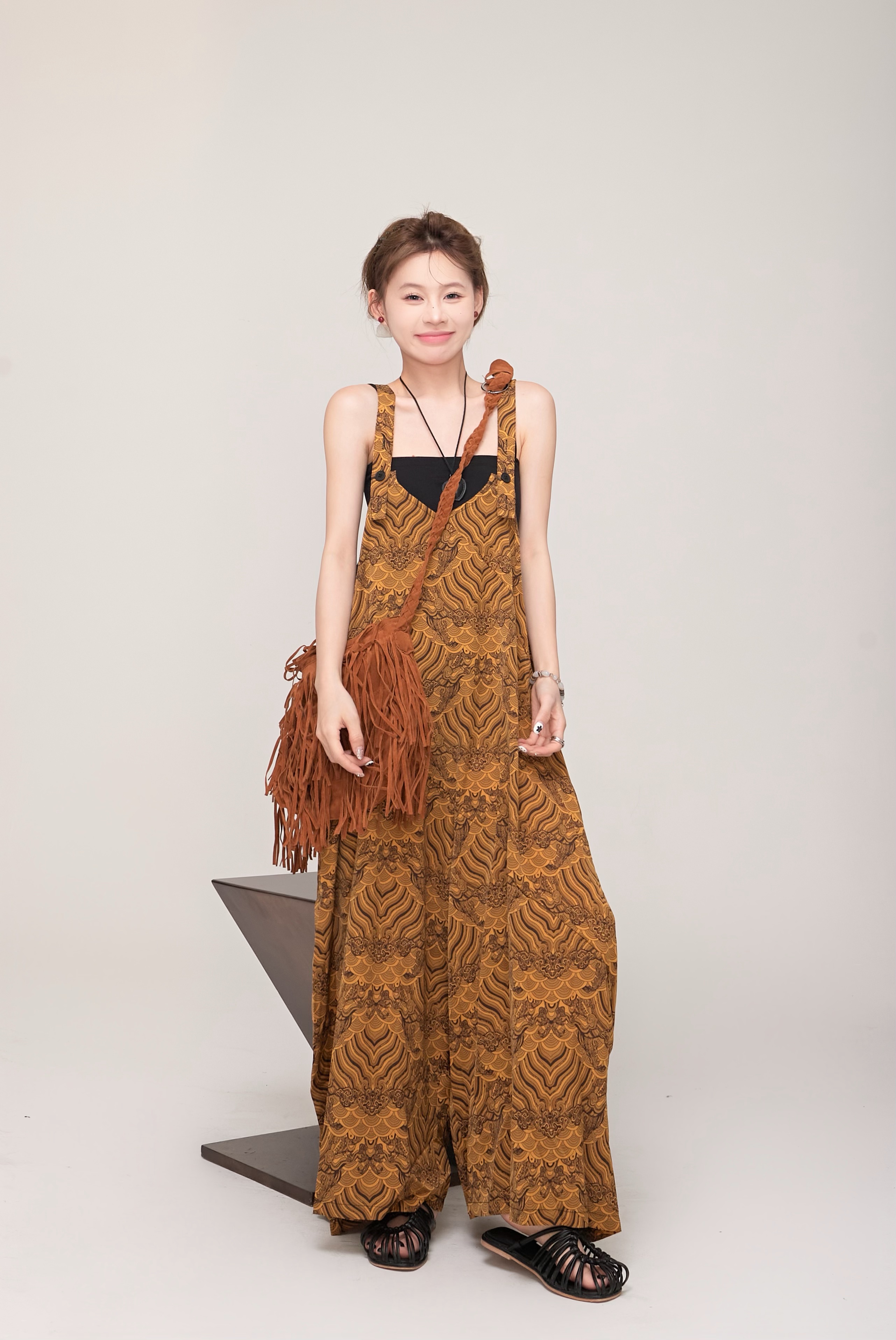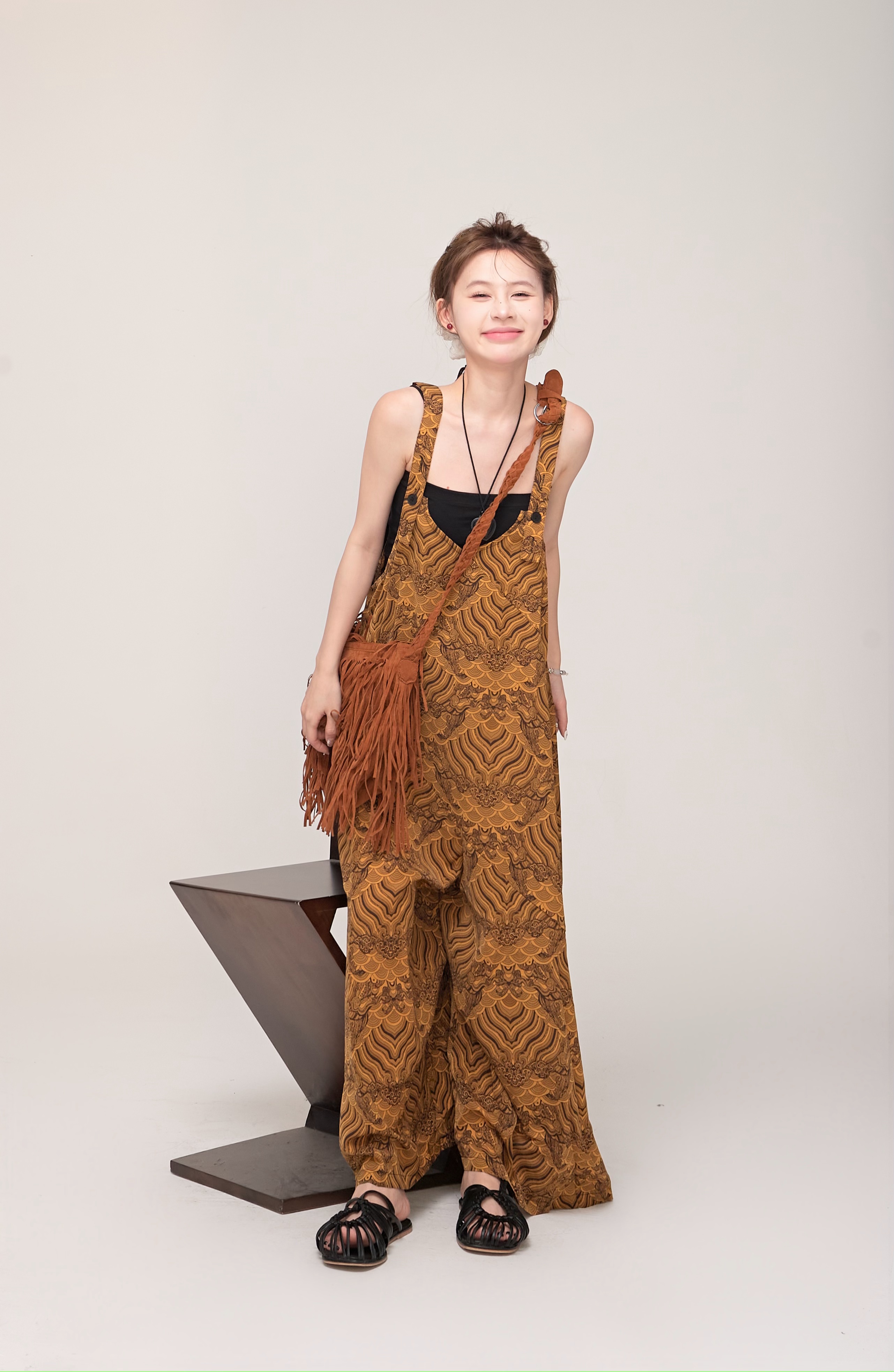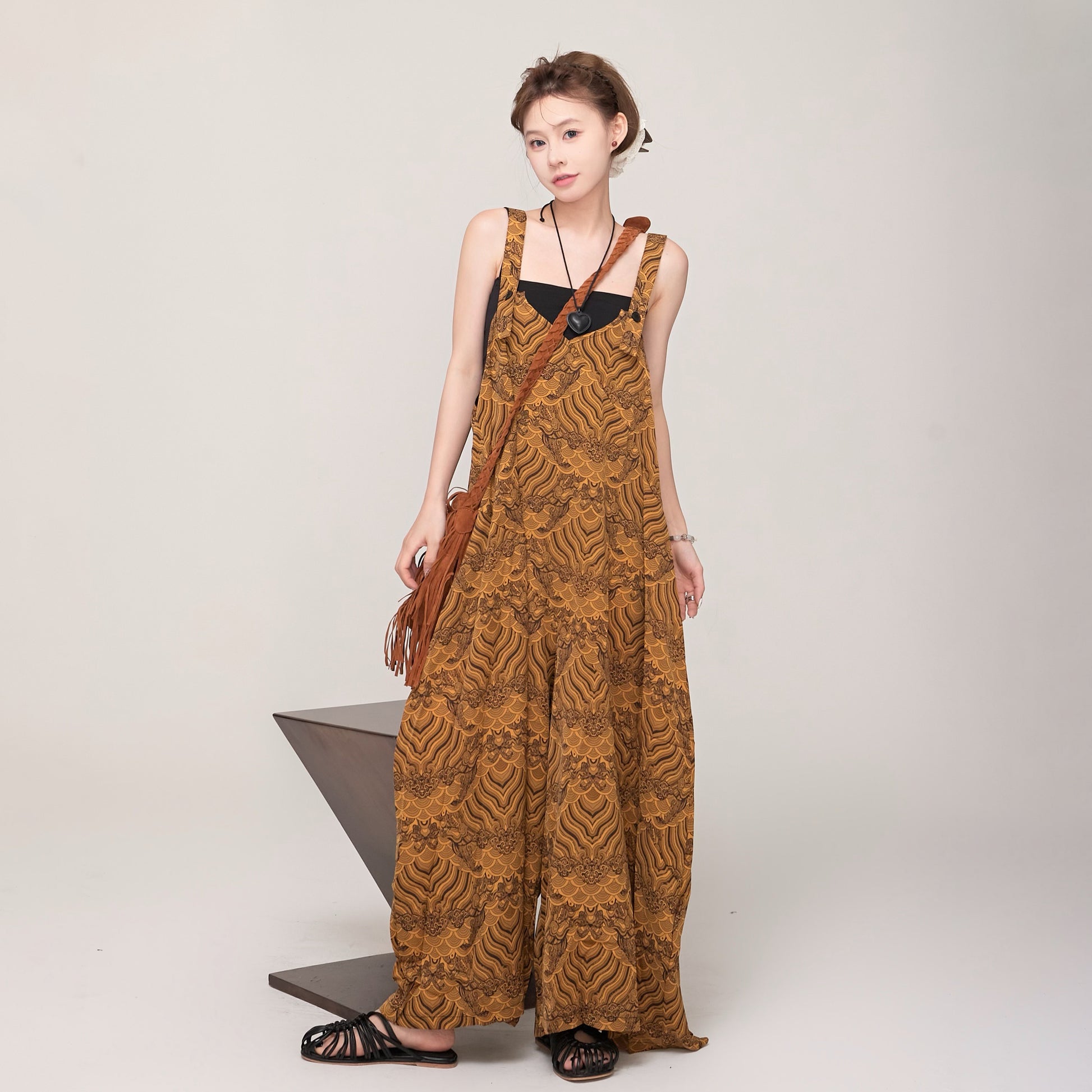 【ボトムス】夏新作 レトロ感 Vネック ゆるシルエット カジュアル オールインワン【SHシリーズ】
