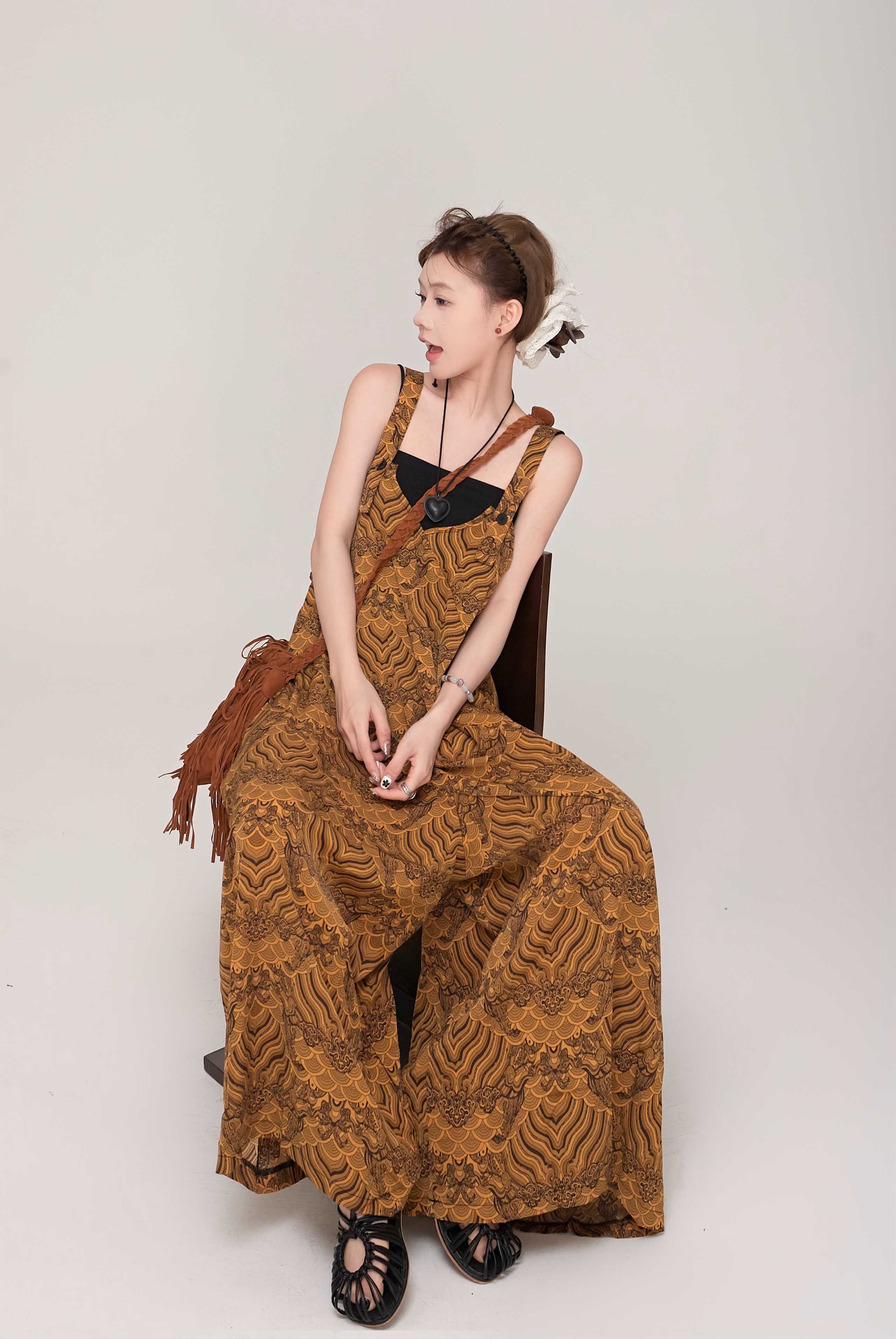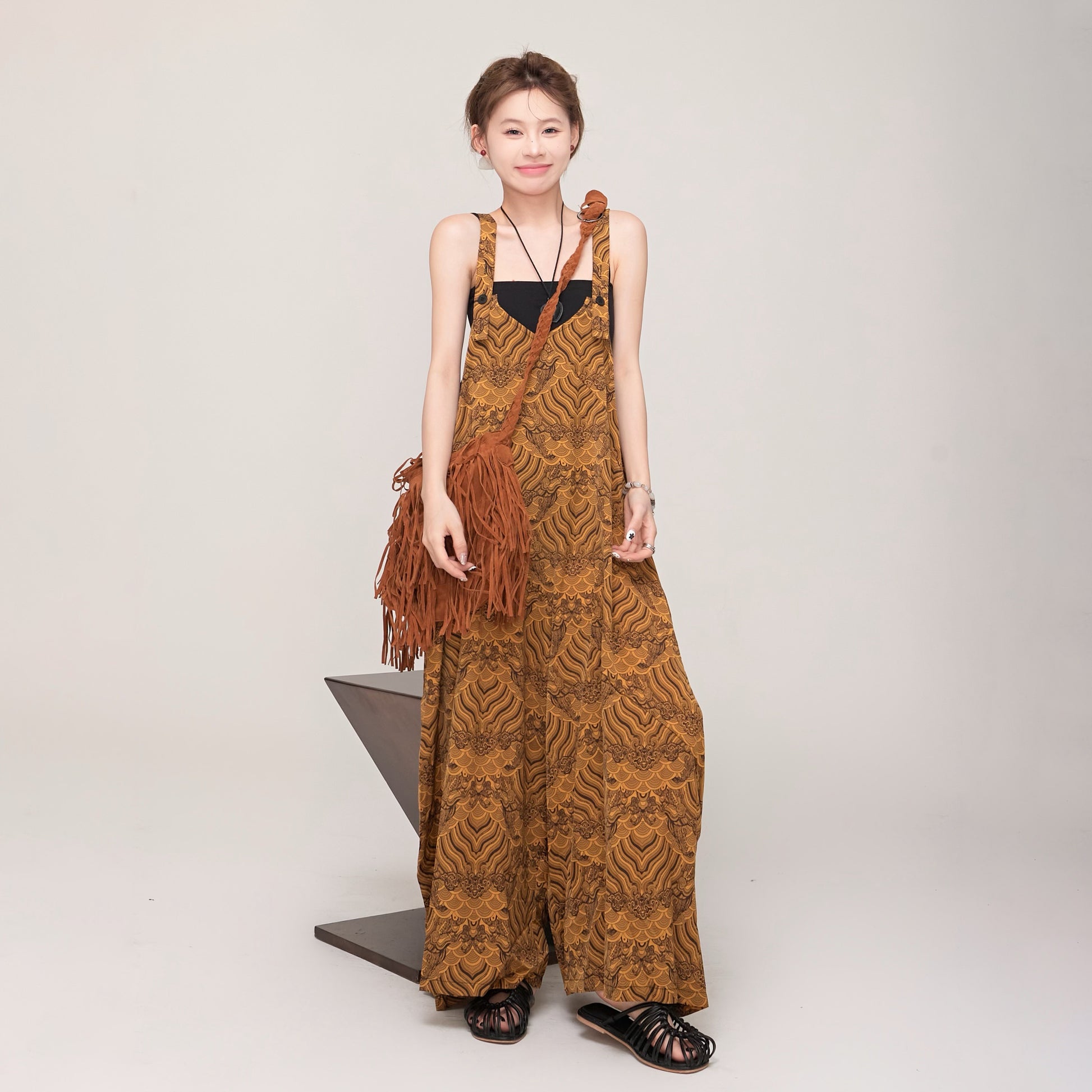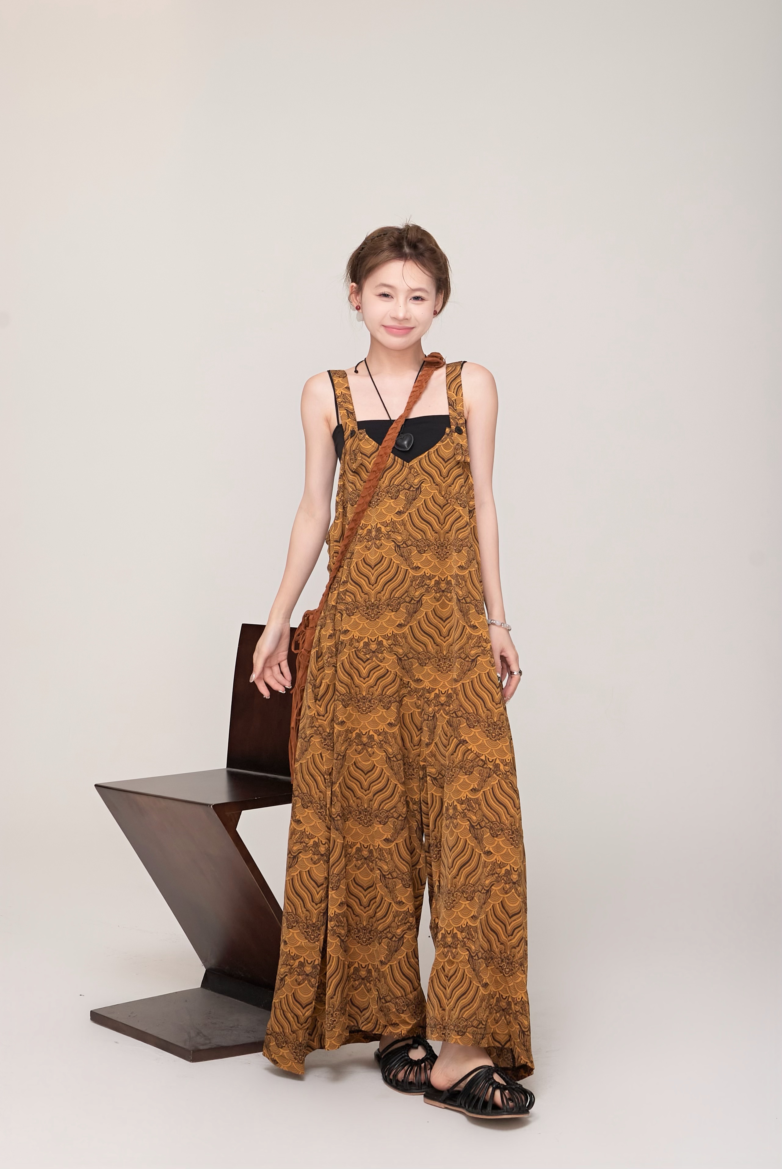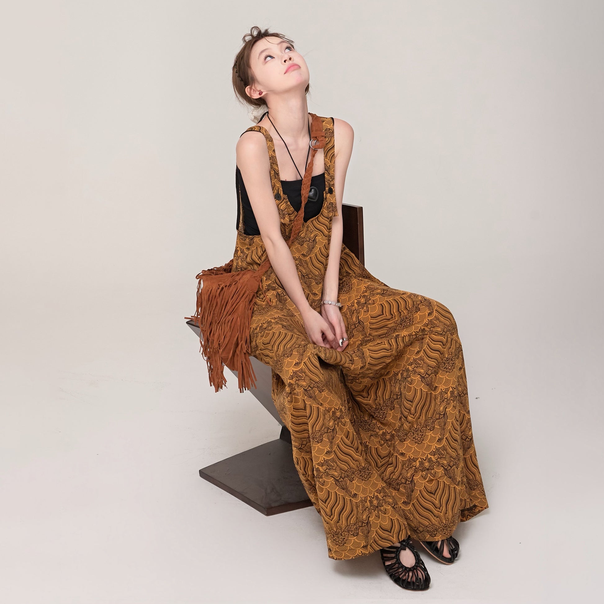 【ボトムス】夏新作 レトロ感 Vネック ゆるシルエット カジュアル オールインワン【SHシリーズ】