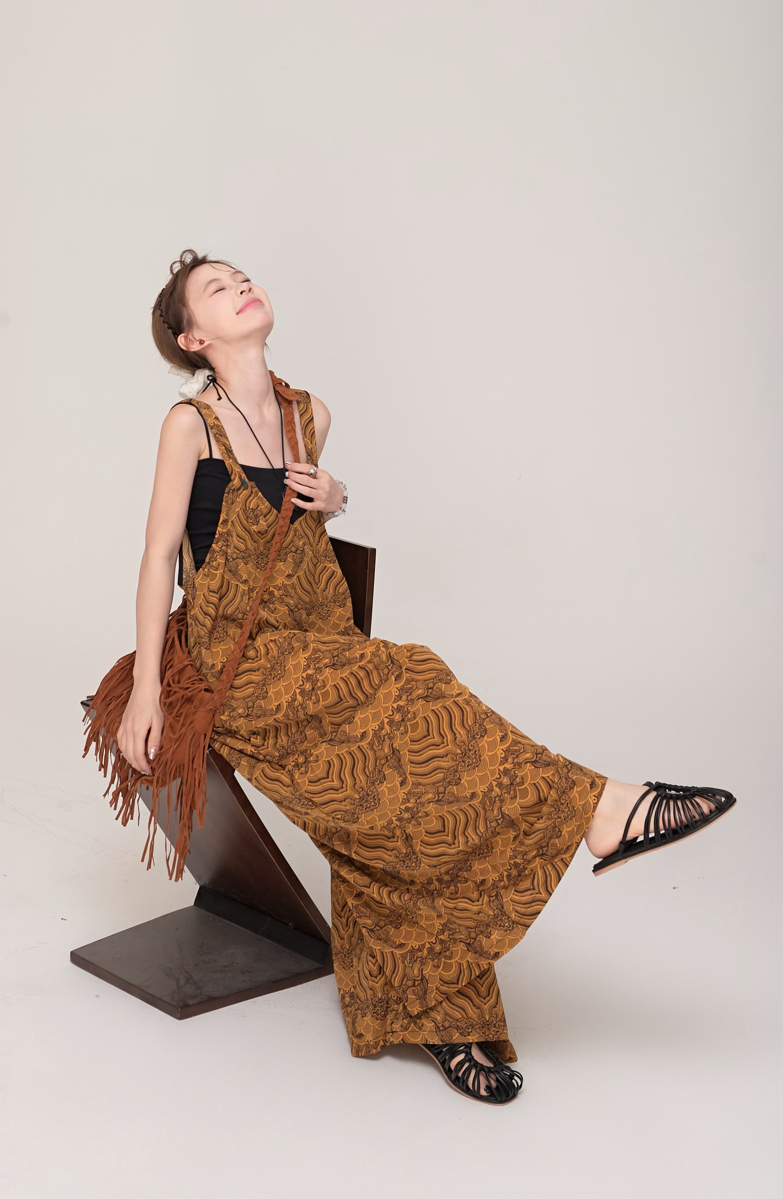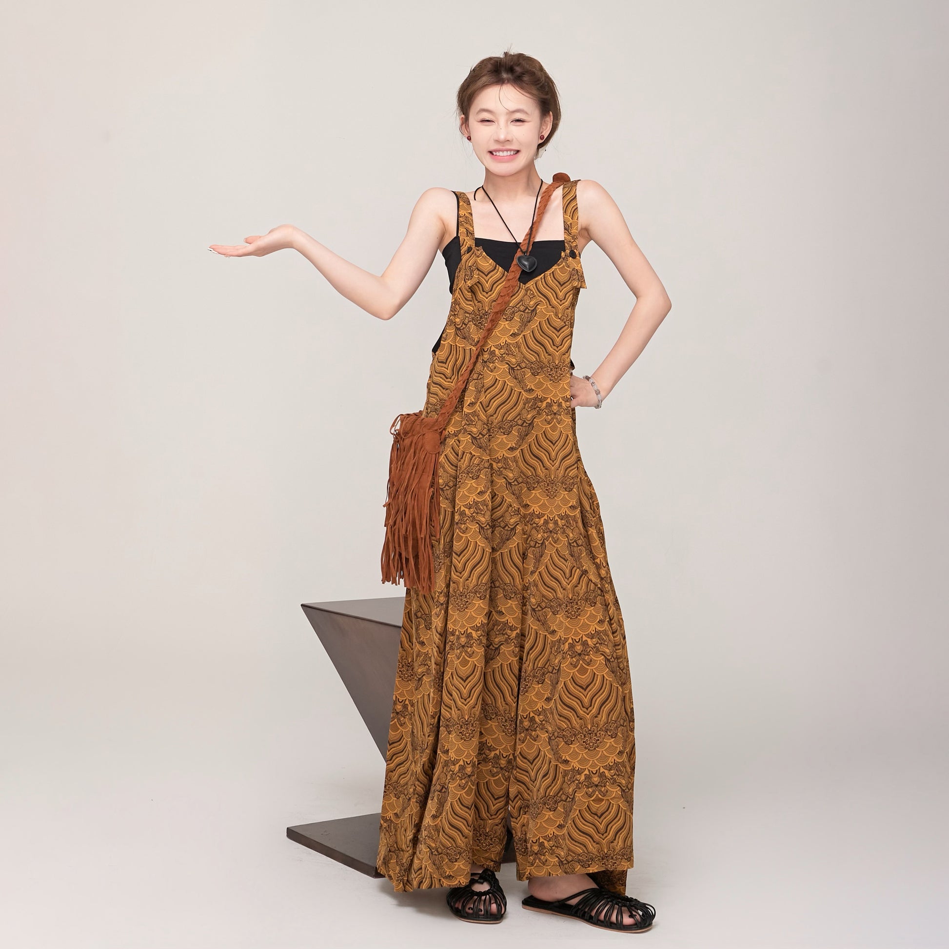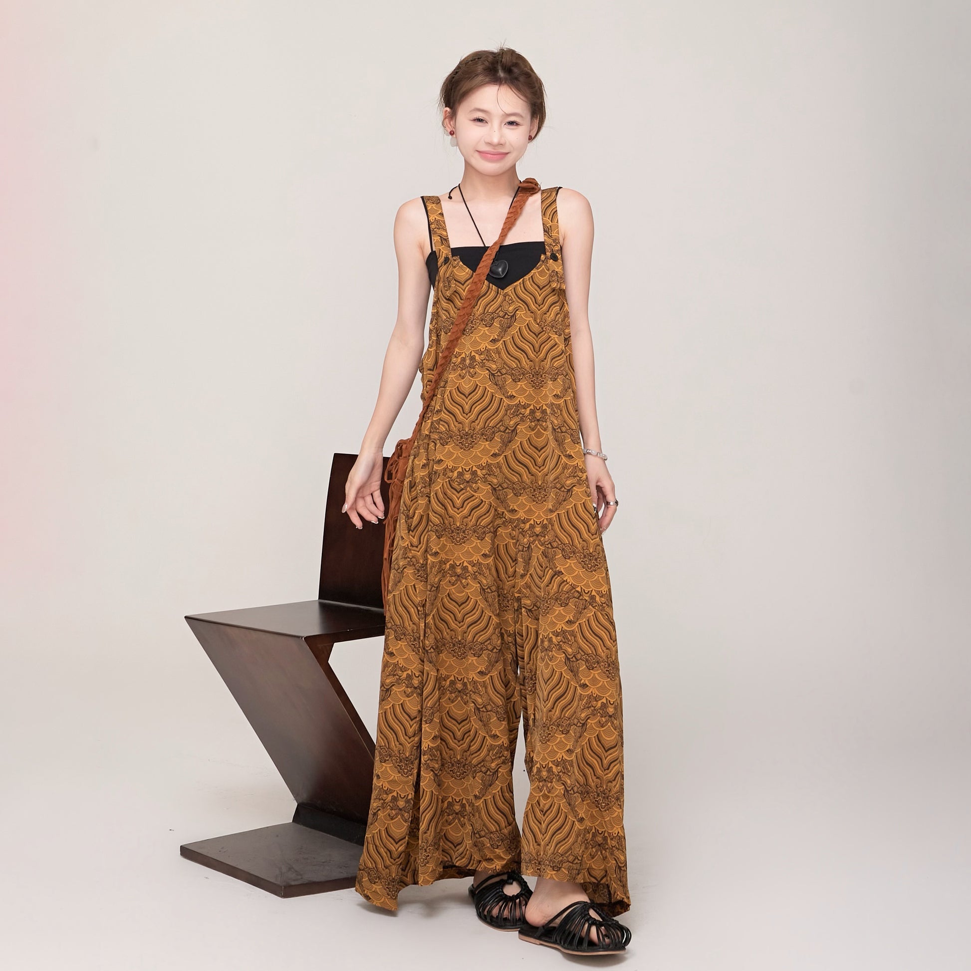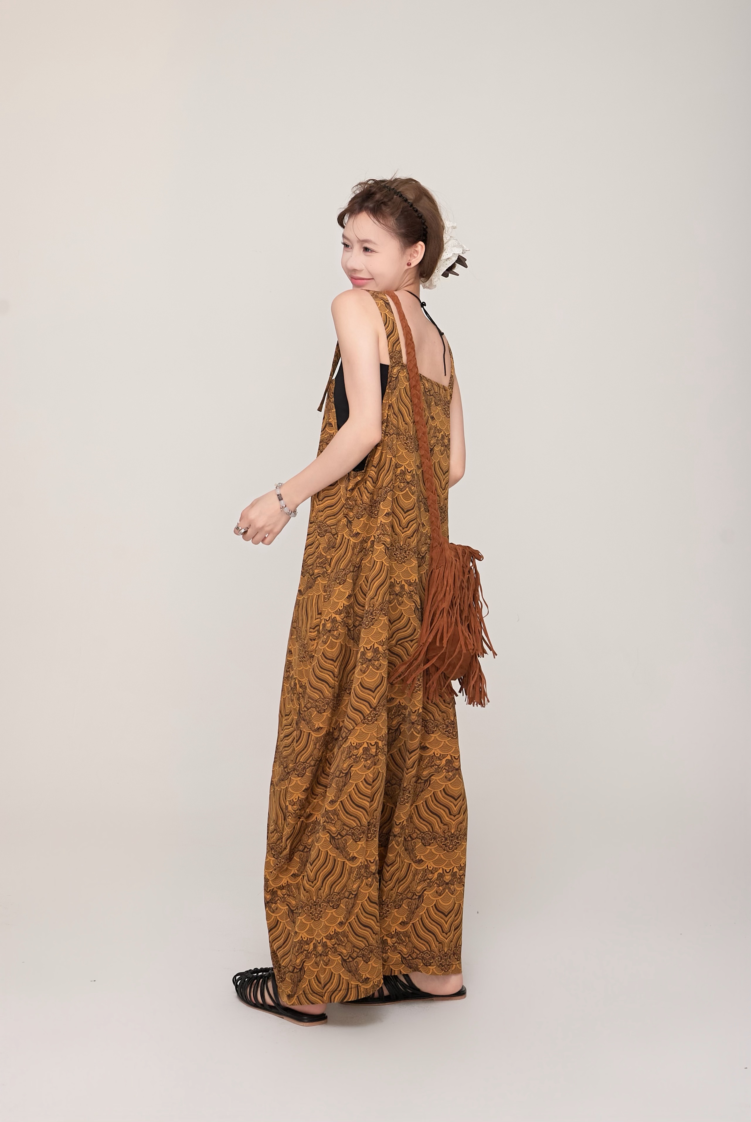 【ボトムス】夏新作 レトロ感 Vネック ゆるシルエット カジュアル オールインワン【SHシリーズ】