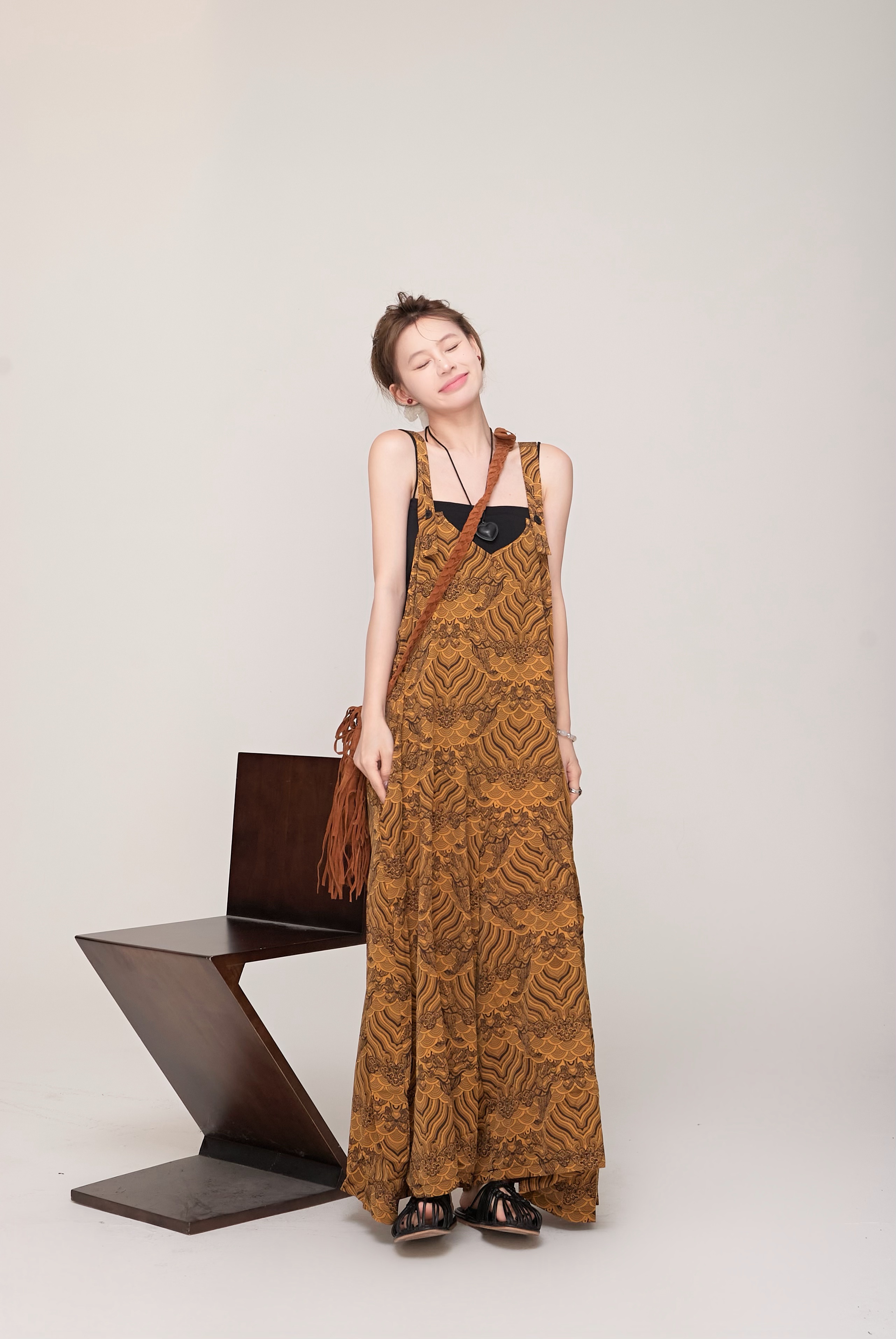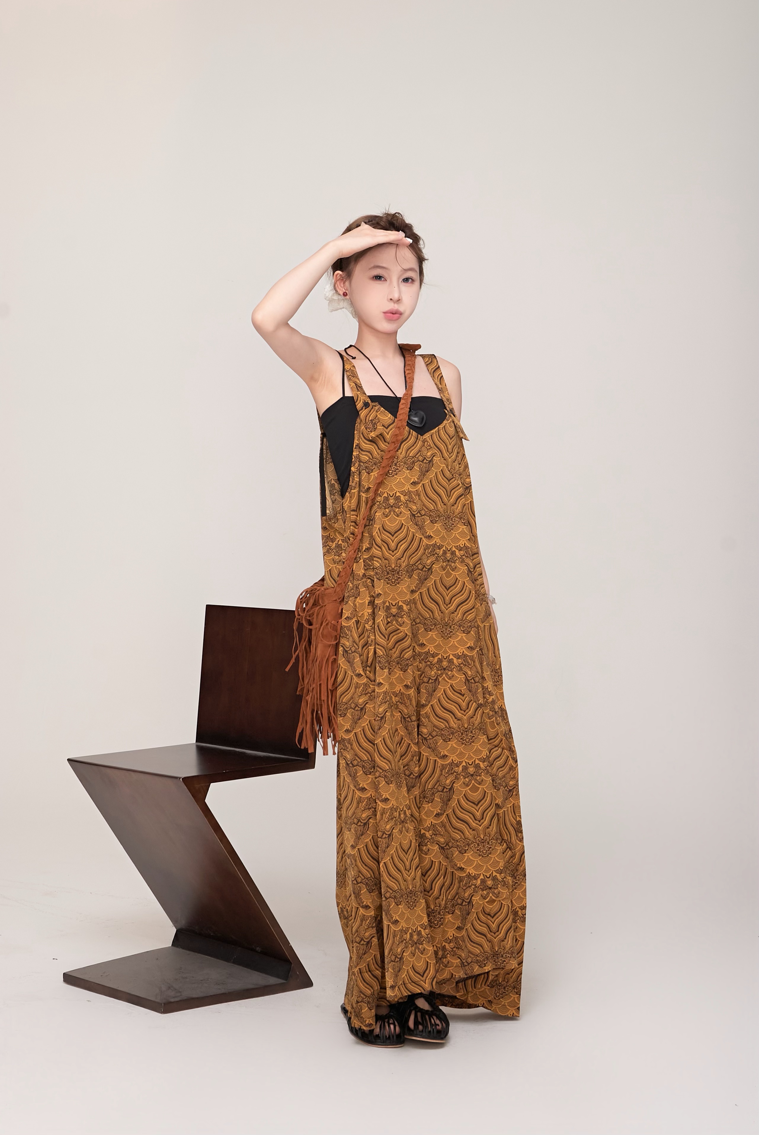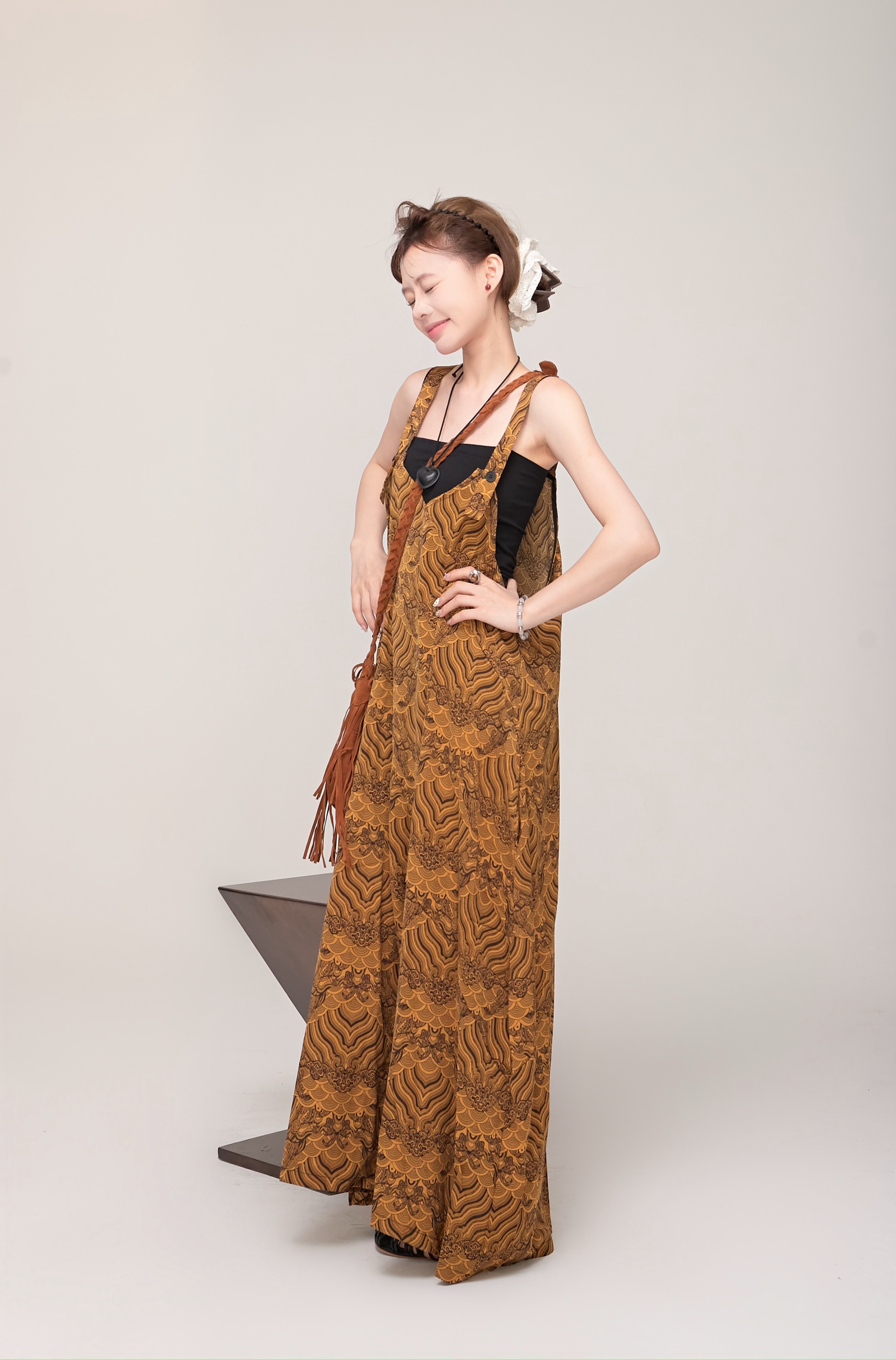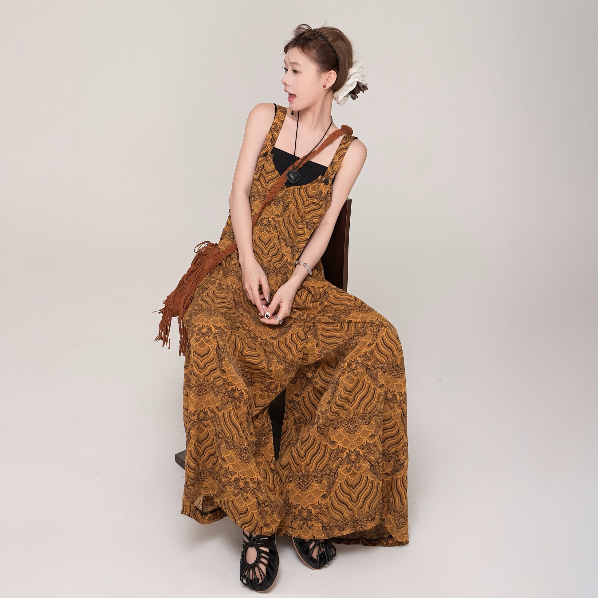 【ボトムス】夏新作 レトロ感 Vネック ゆるシルエット カジュアル オールインワン【SHシリーズ】