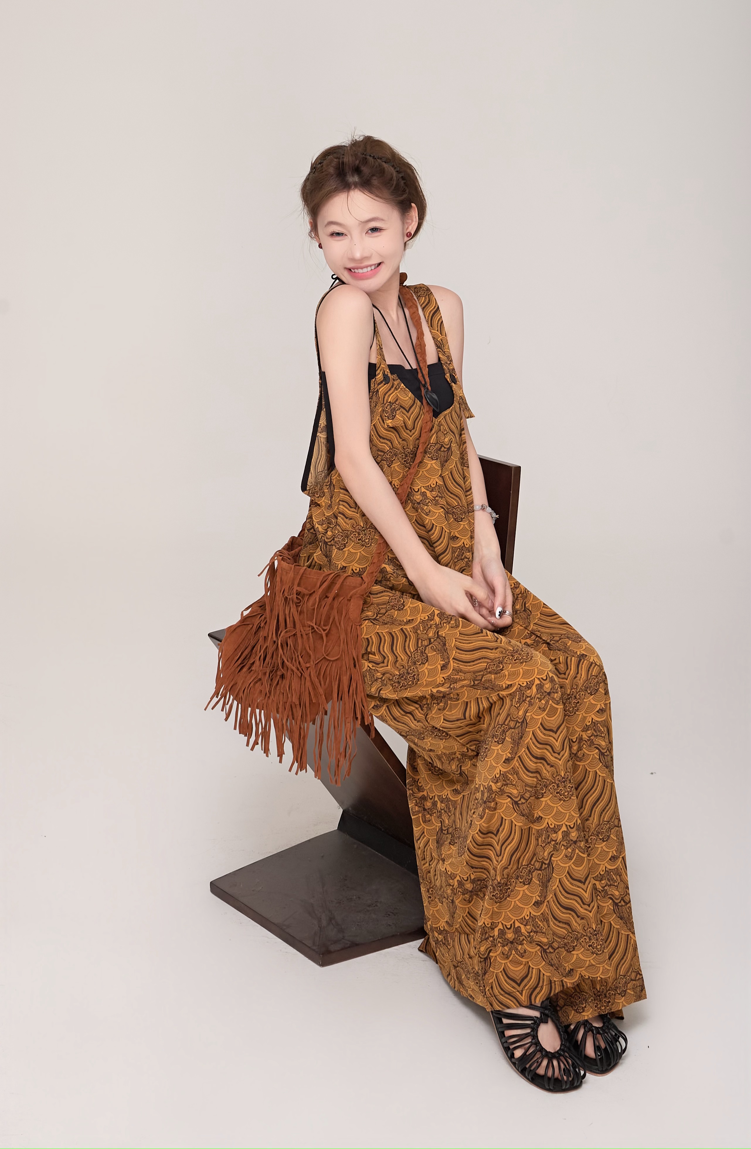 【商品名】【ボトムス】夏新作 レトロ感 Vネック ゆるシルエット カジュアル オールインワン【SHシリーズ】