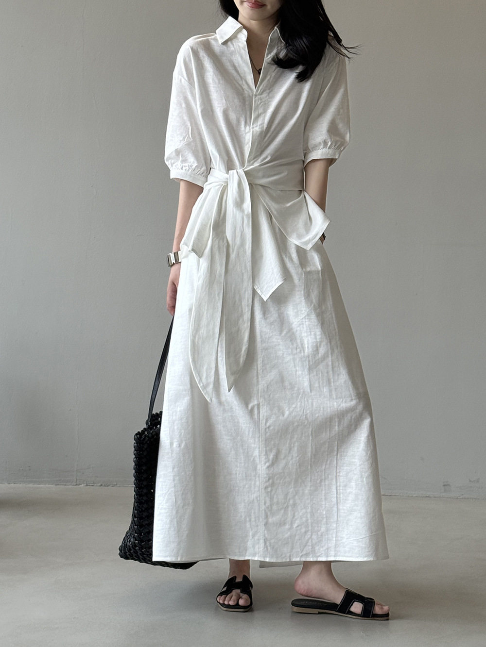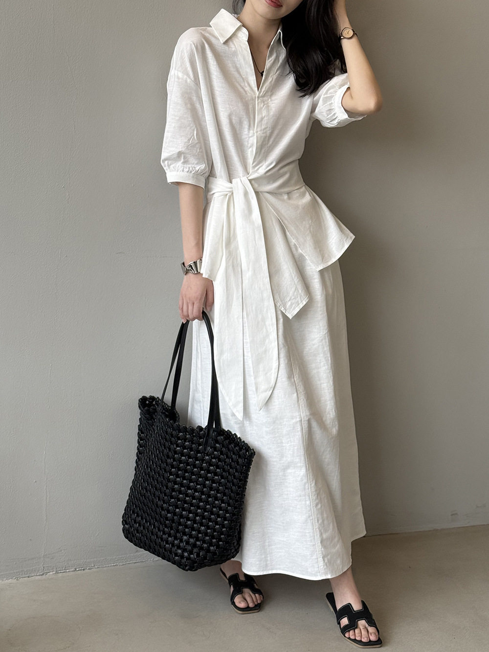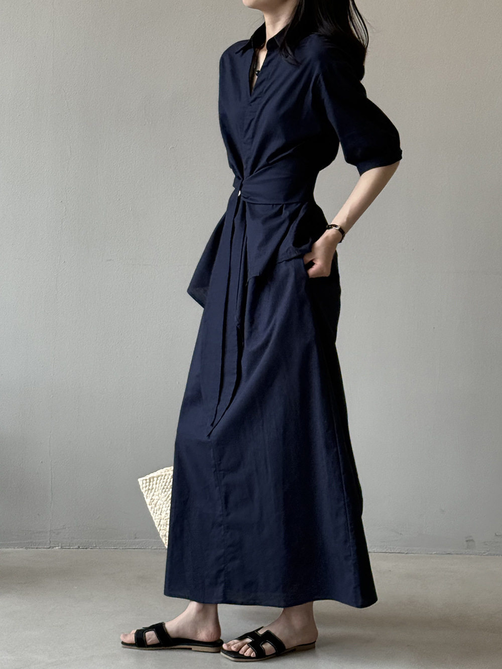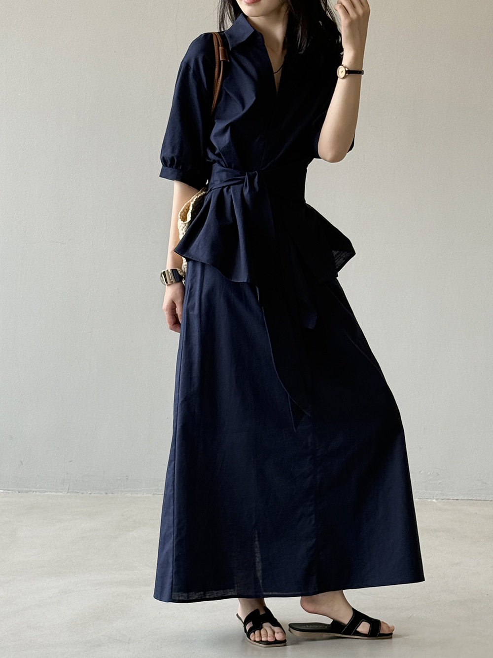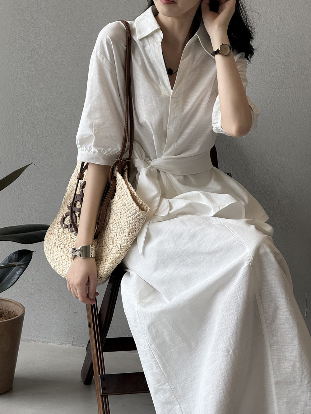 【セットアップ】フレンチエレガンス 麻素材ウエストリボンシャツ+ミモレ丈スカート 上下セット【JZシリーズ】