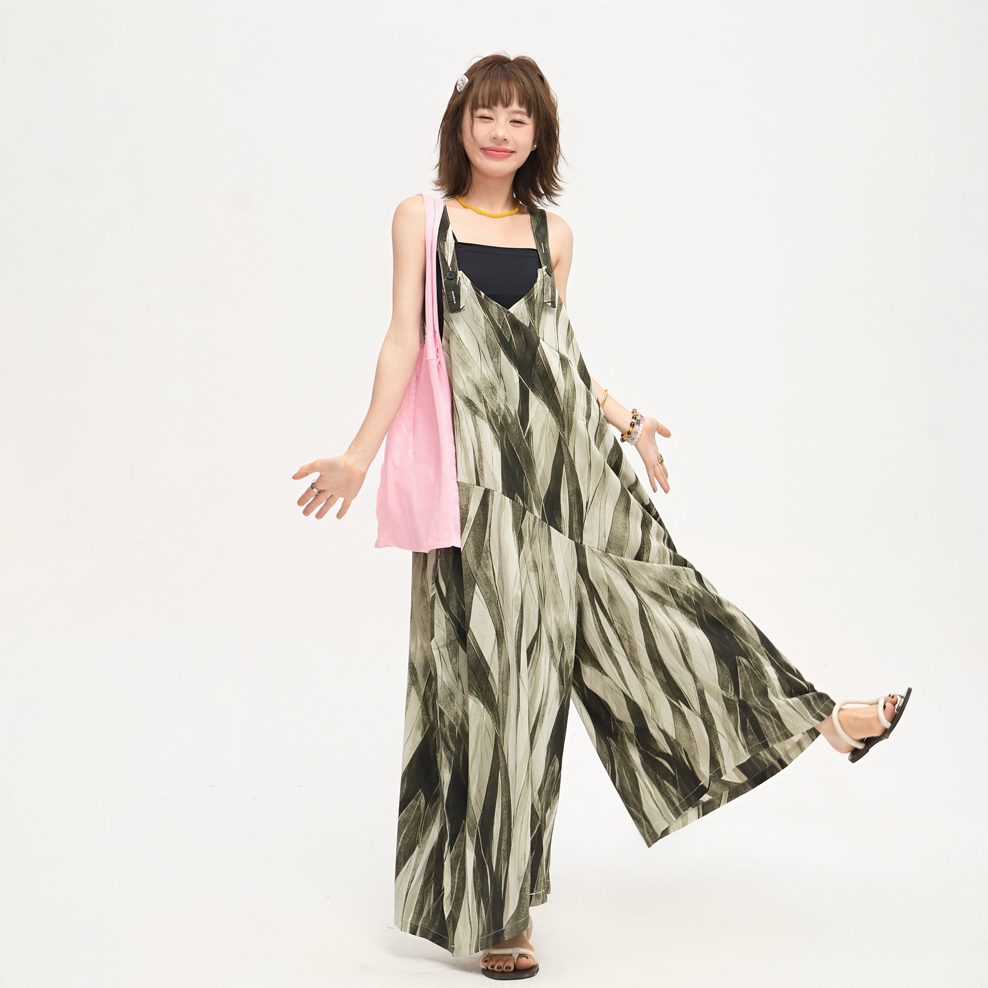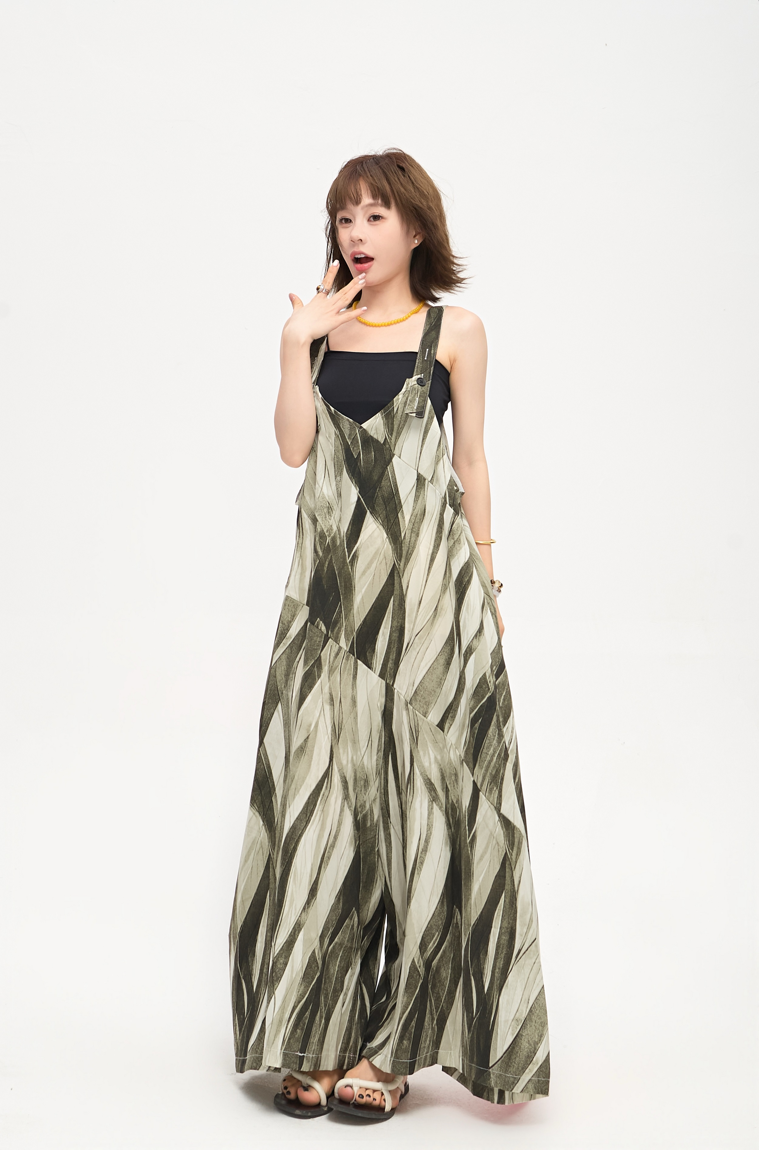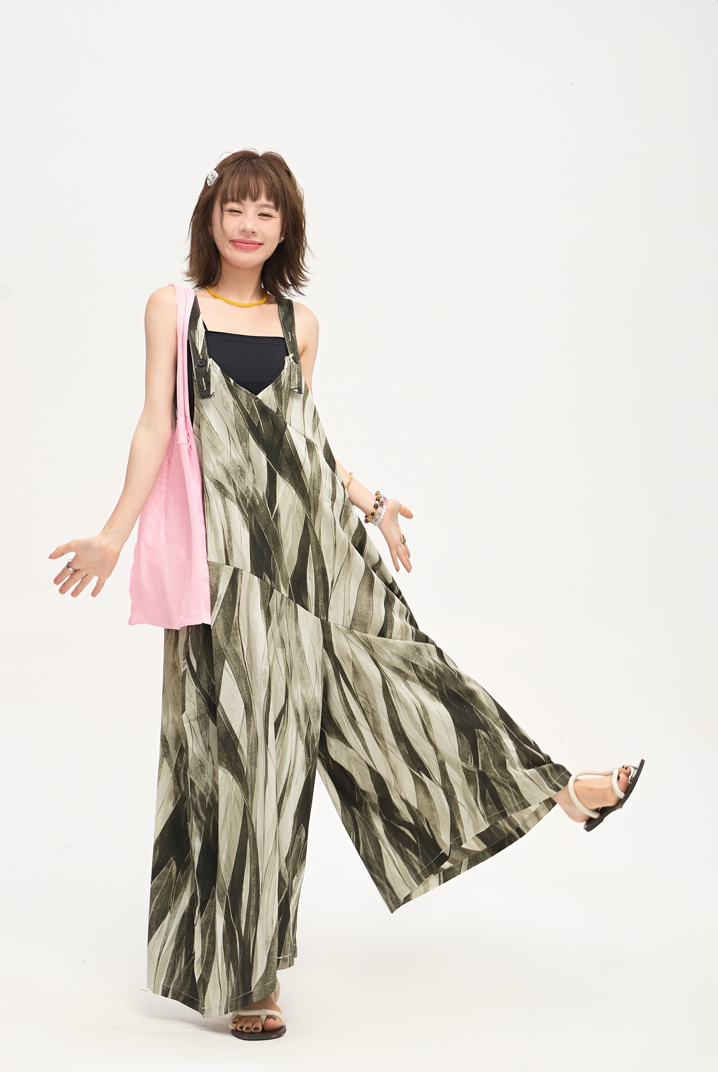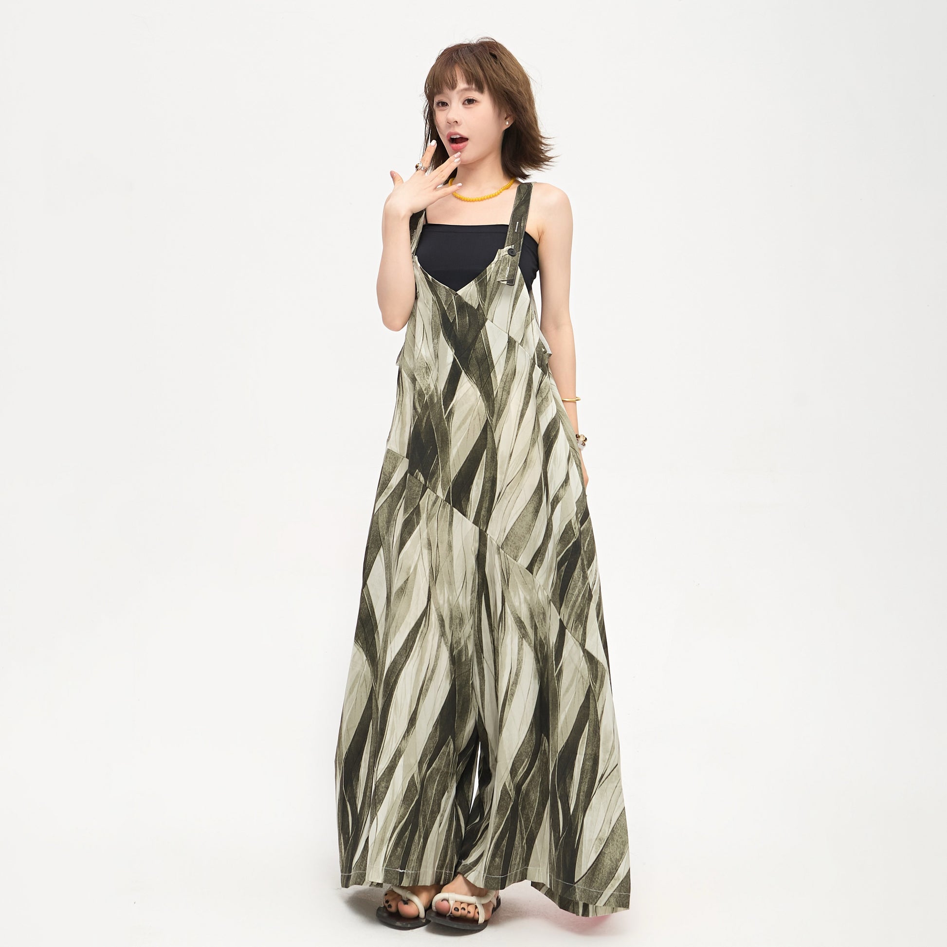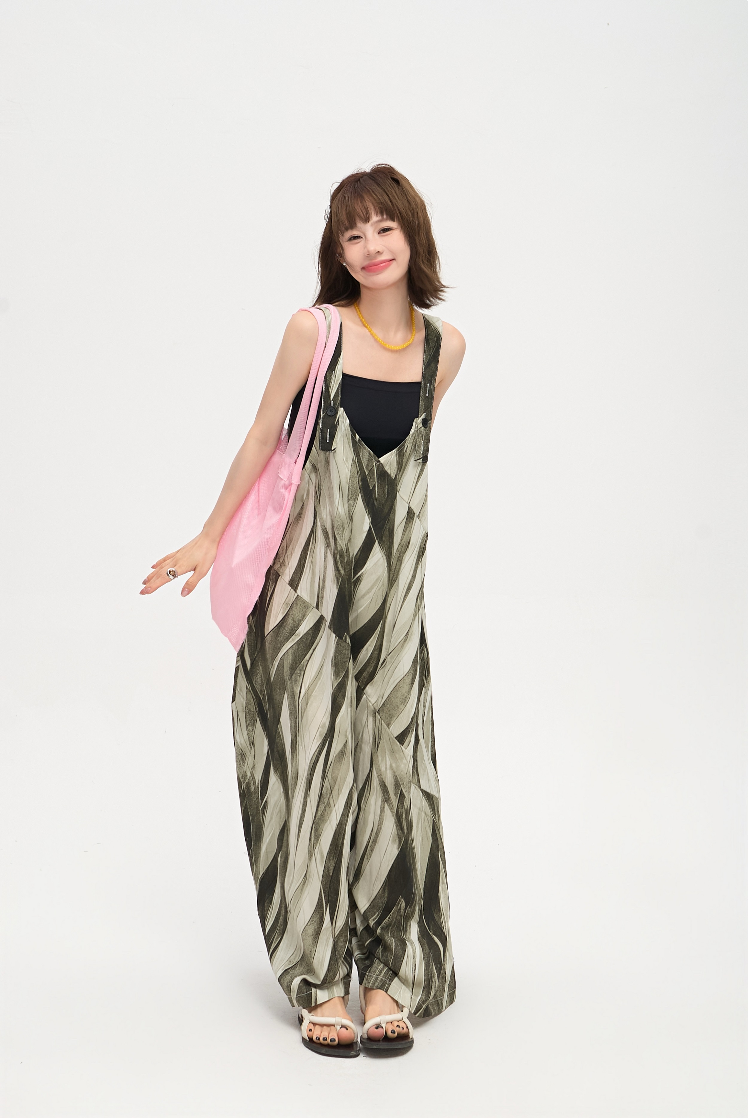【ボトムス】ゆったりカジュアル オーバーサイズ 夏新作 Vネックストライプオールインワン【SHシリーズ】