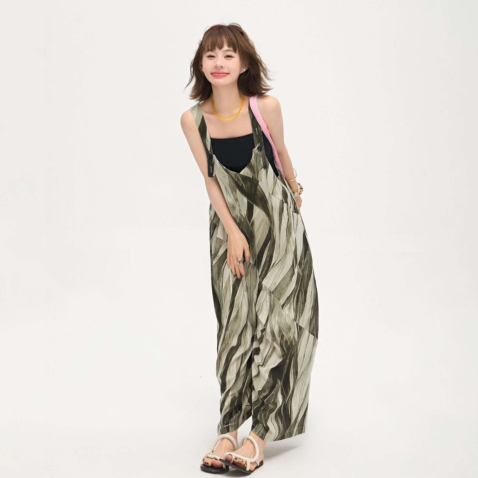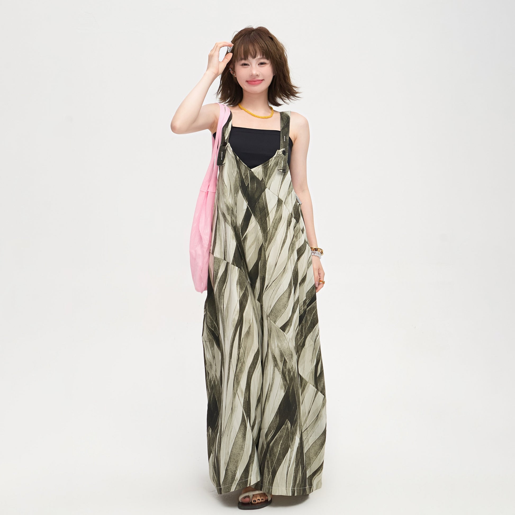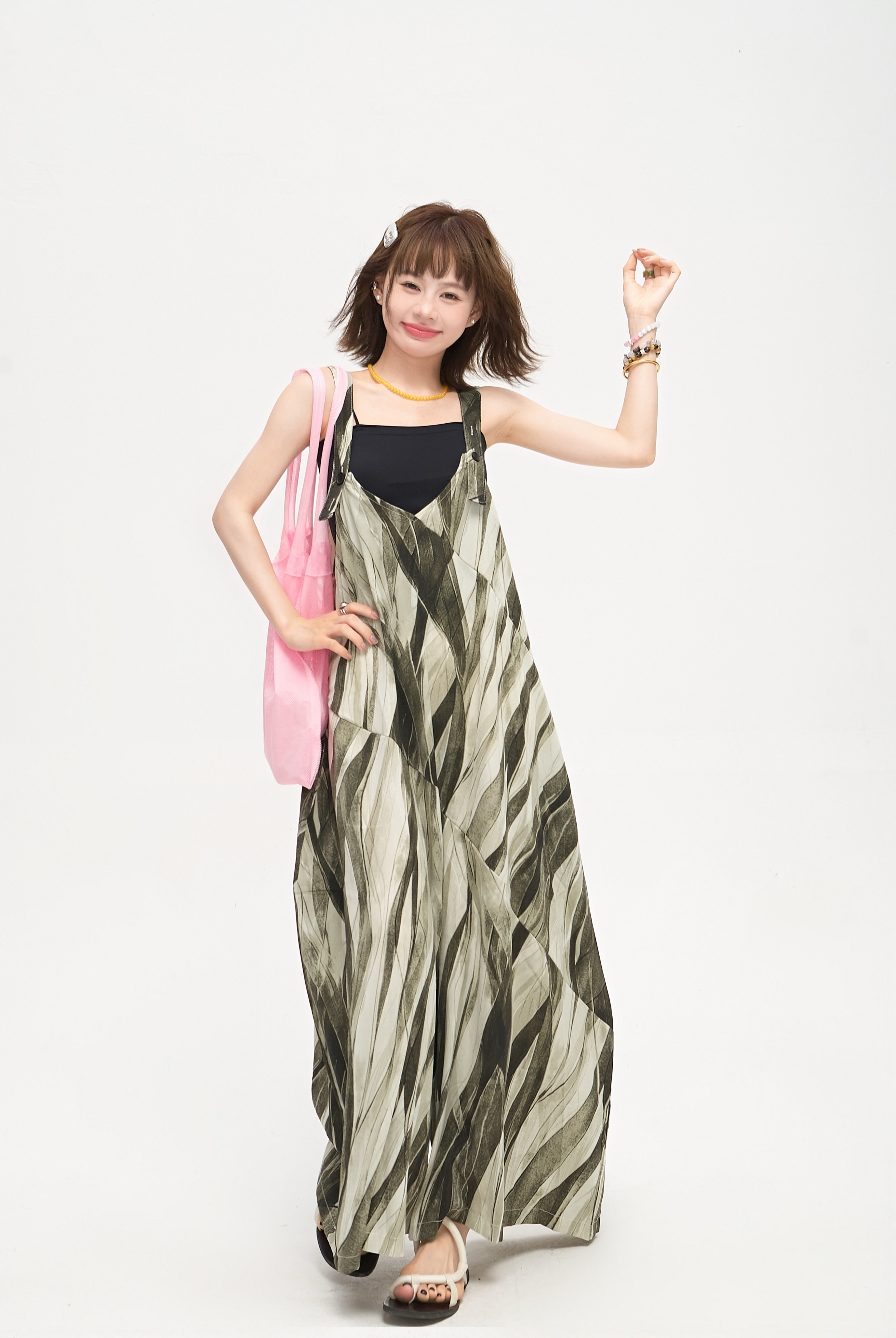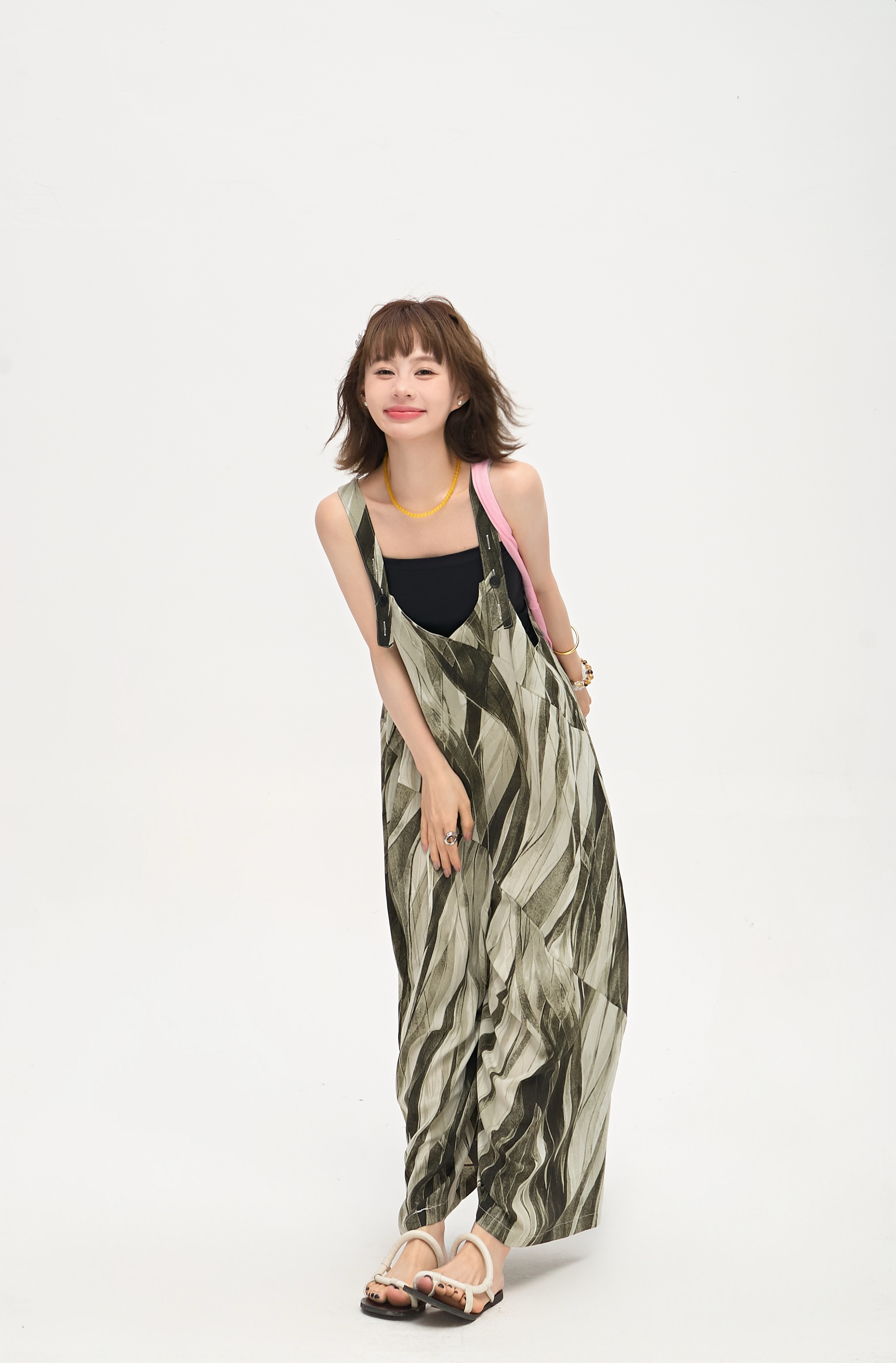 【ボトムス】ゆったりカジュアル オーバーサイズ 夏新作 Vネックストライプオールインワン【SHシリーズ】