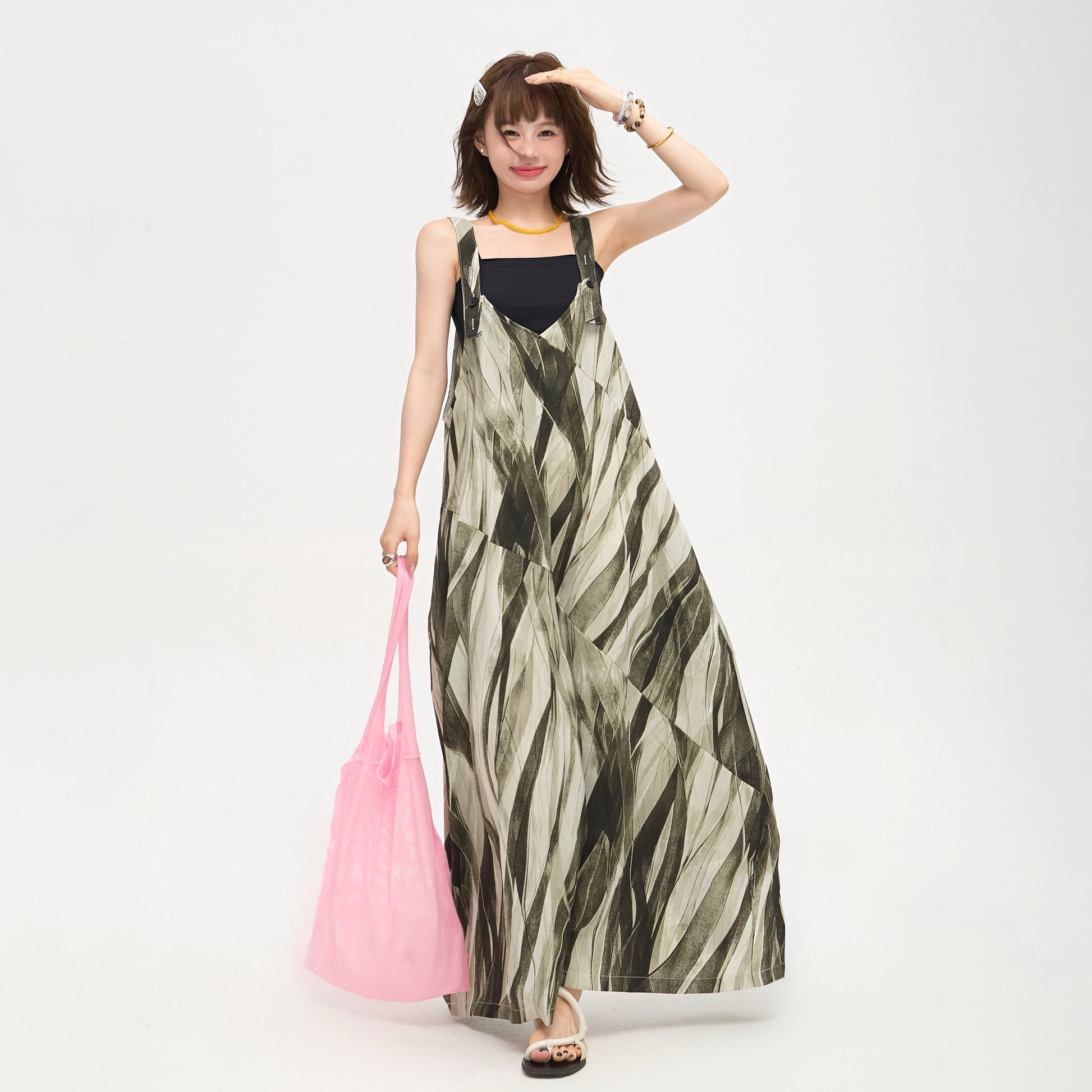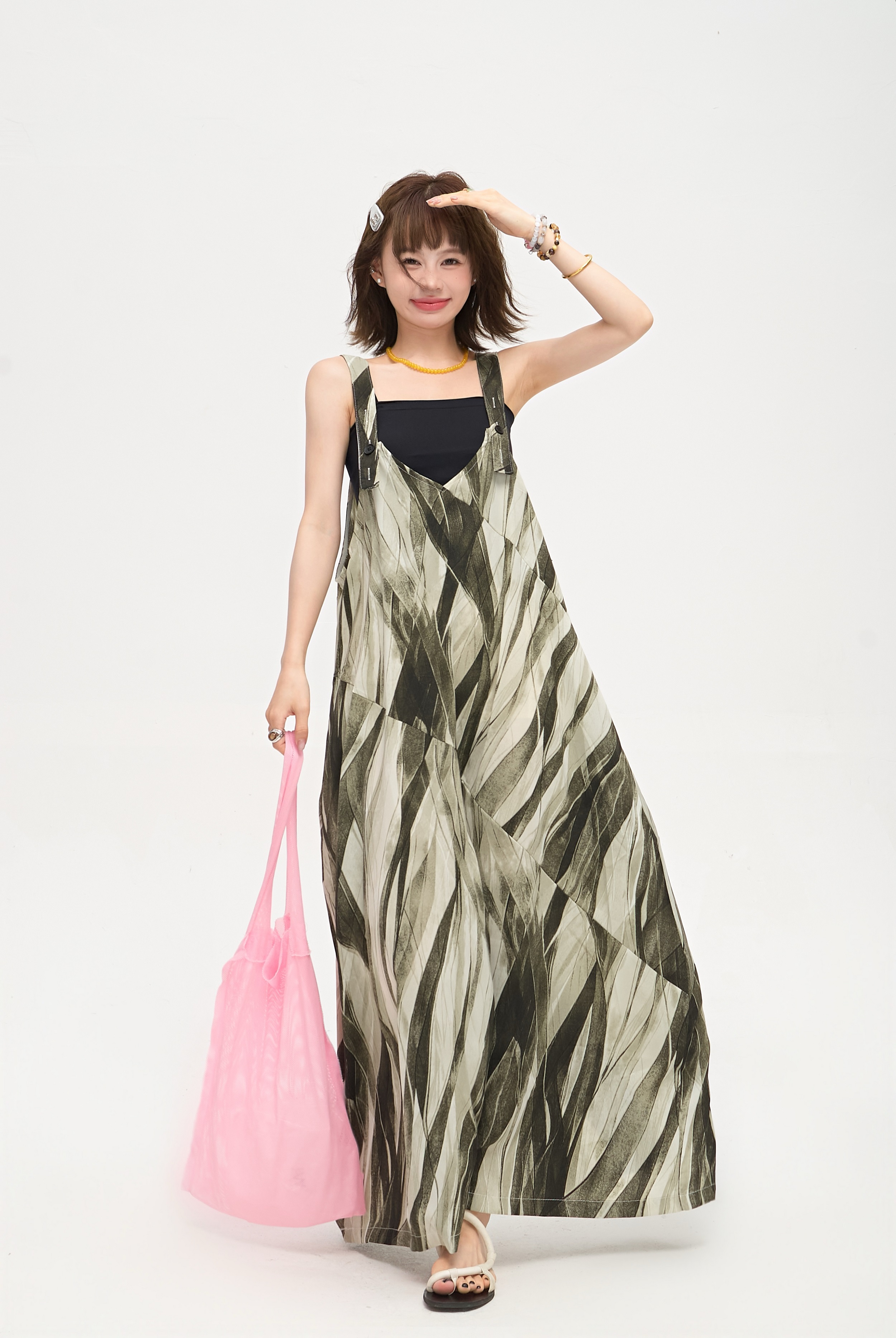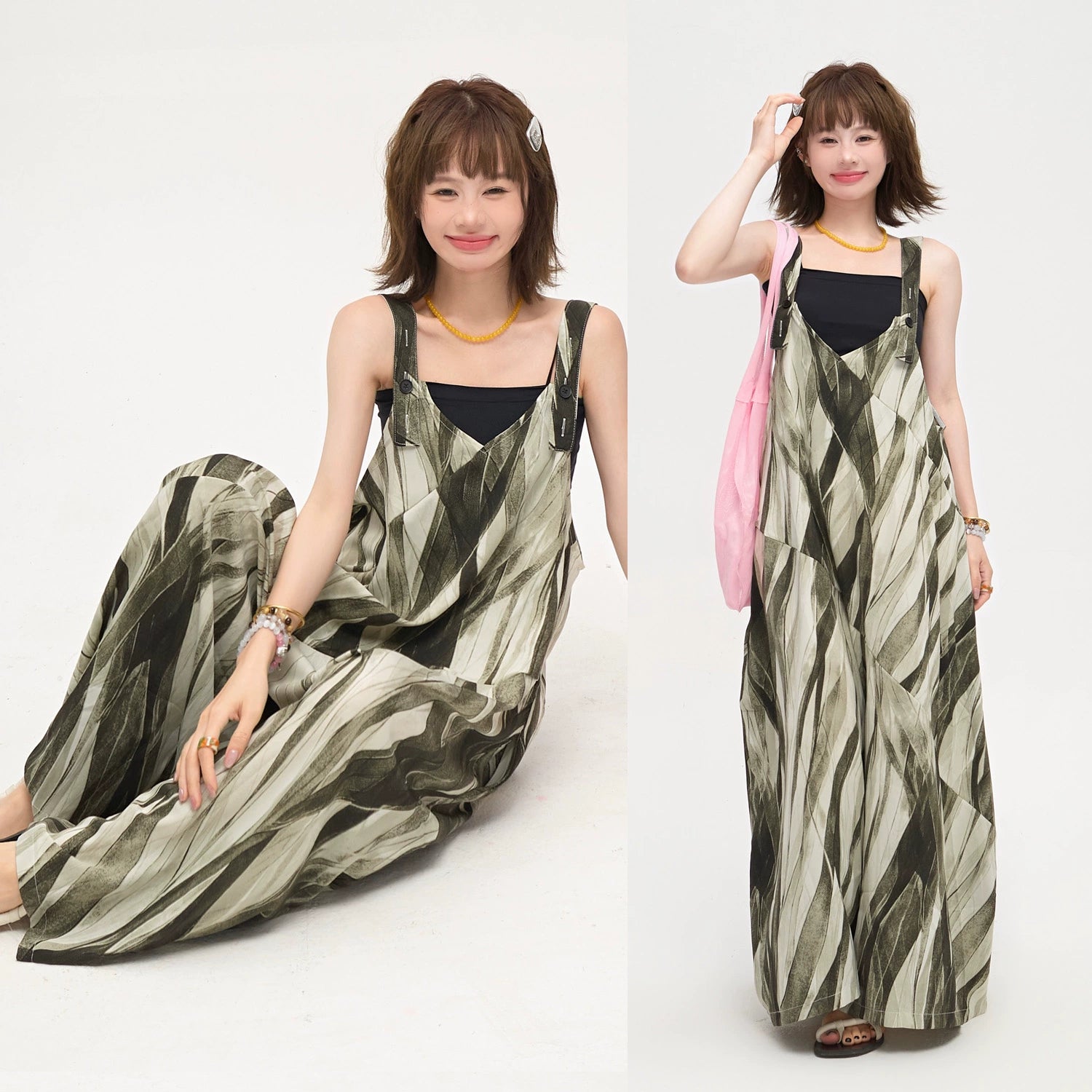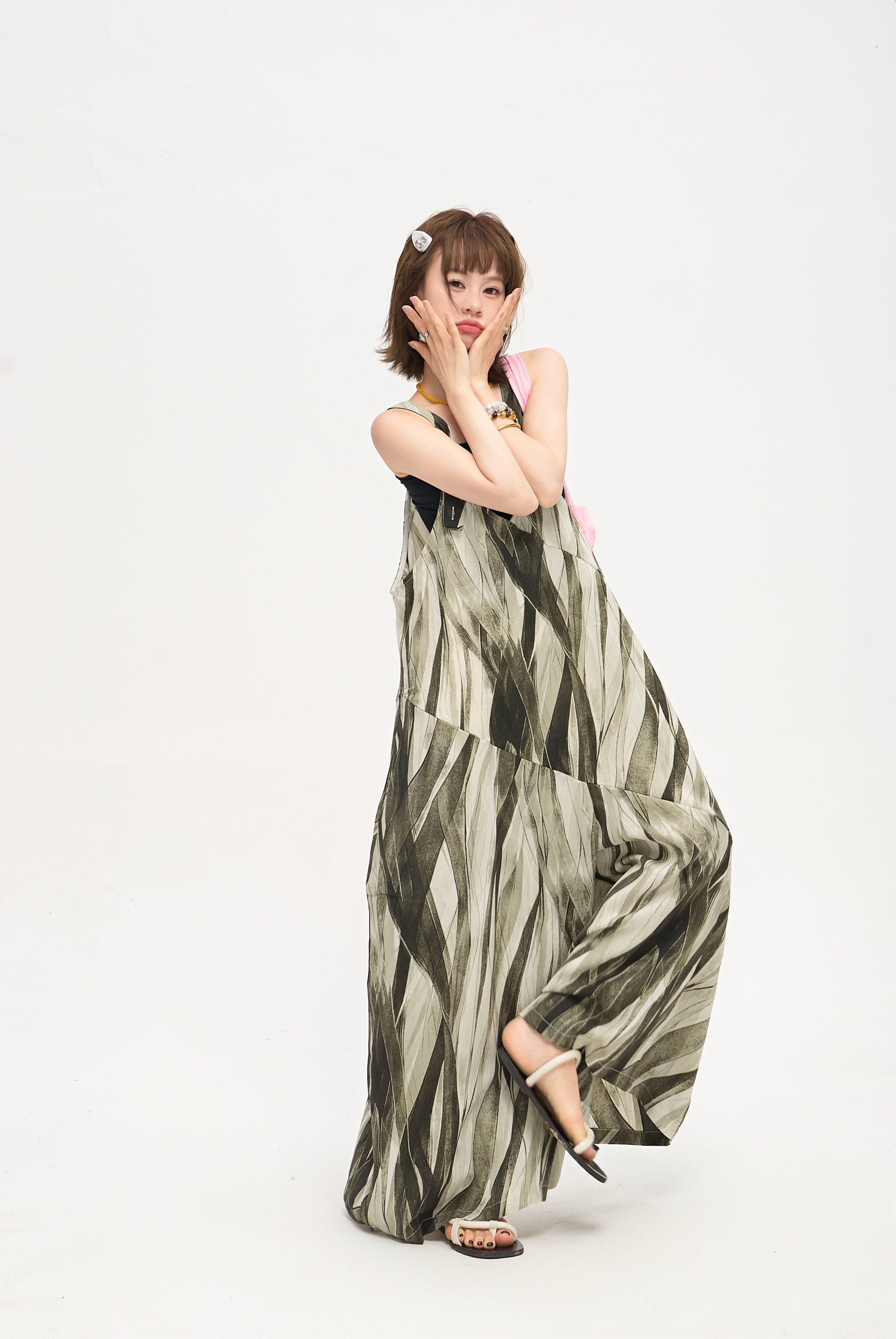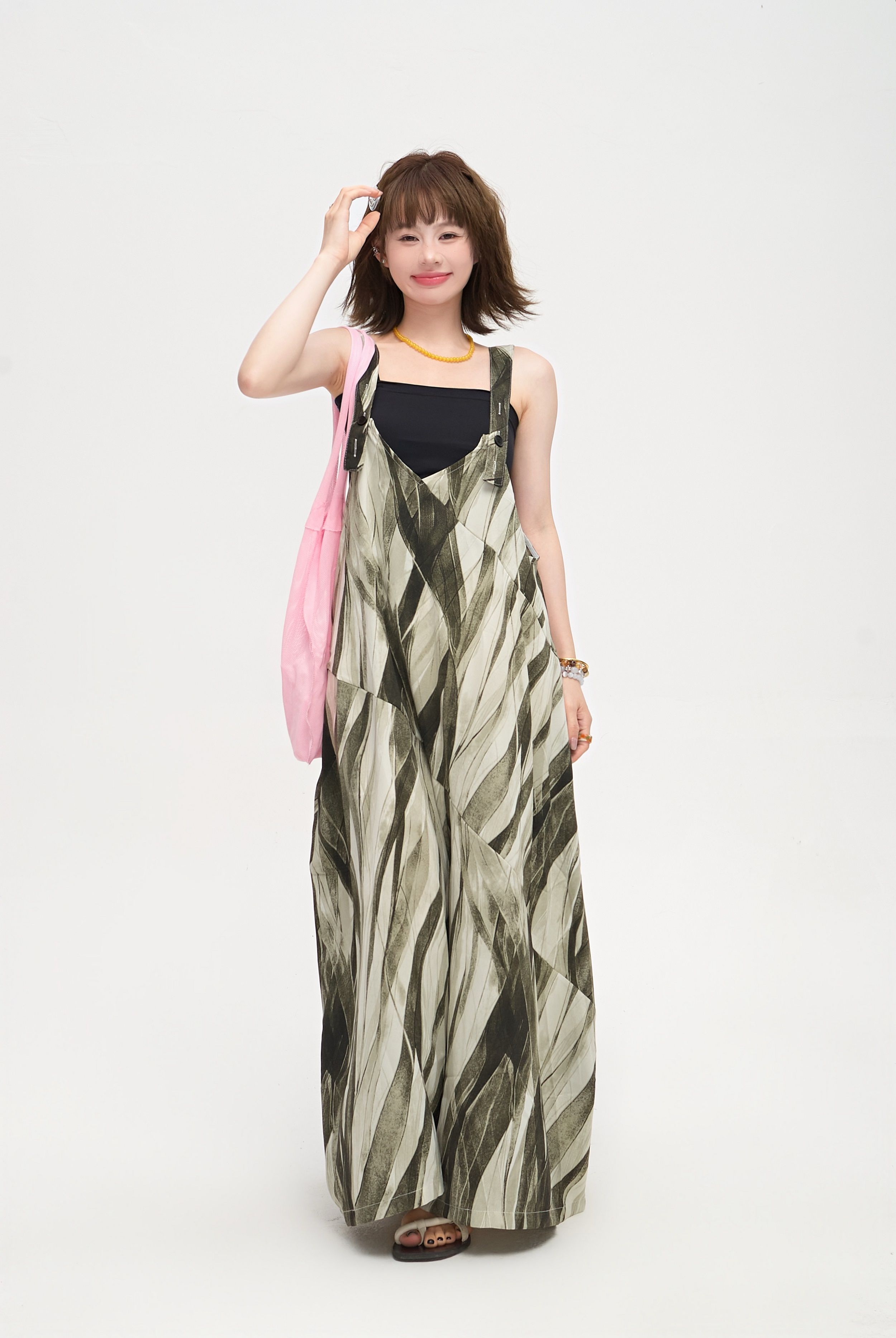 【ボトムス】ゆったりカジュアル オーバーサイズ 夏新作 Vネックストライプオールインワン【SHシリーズ】
