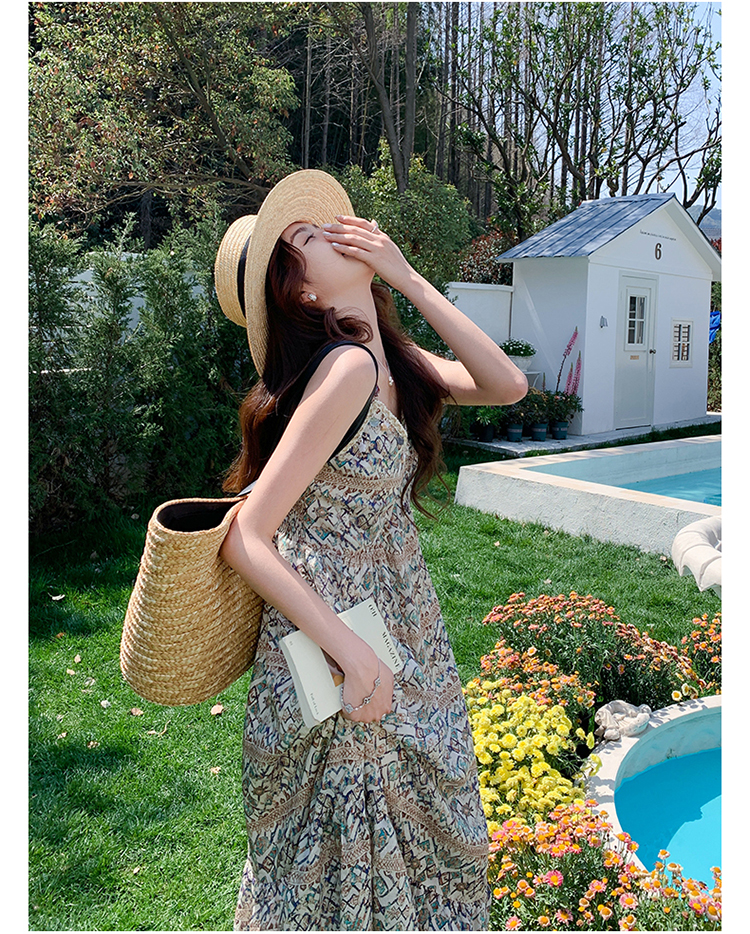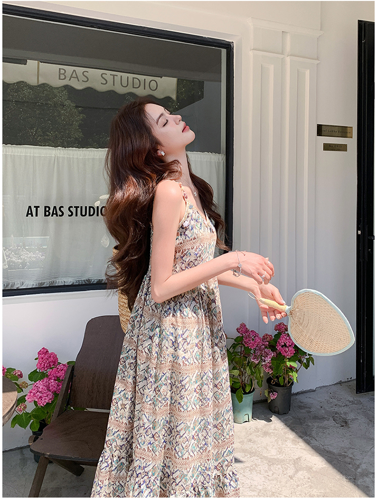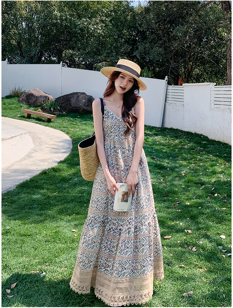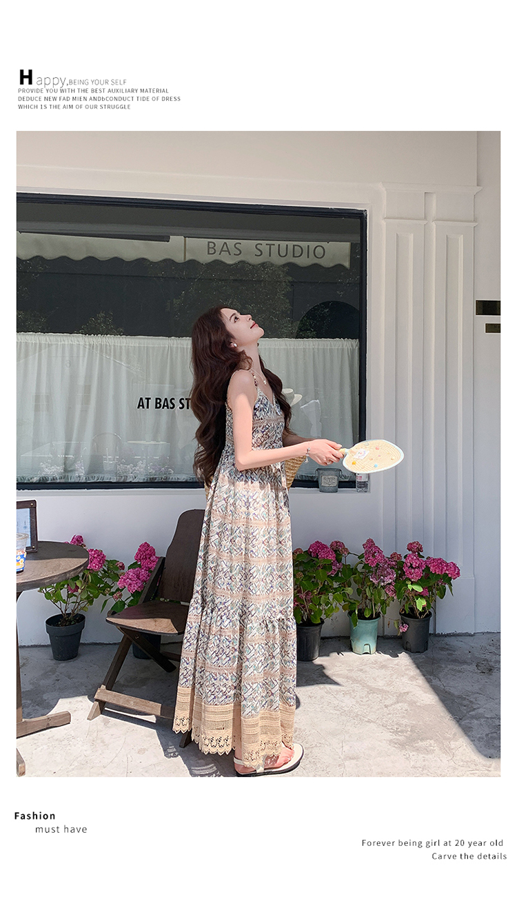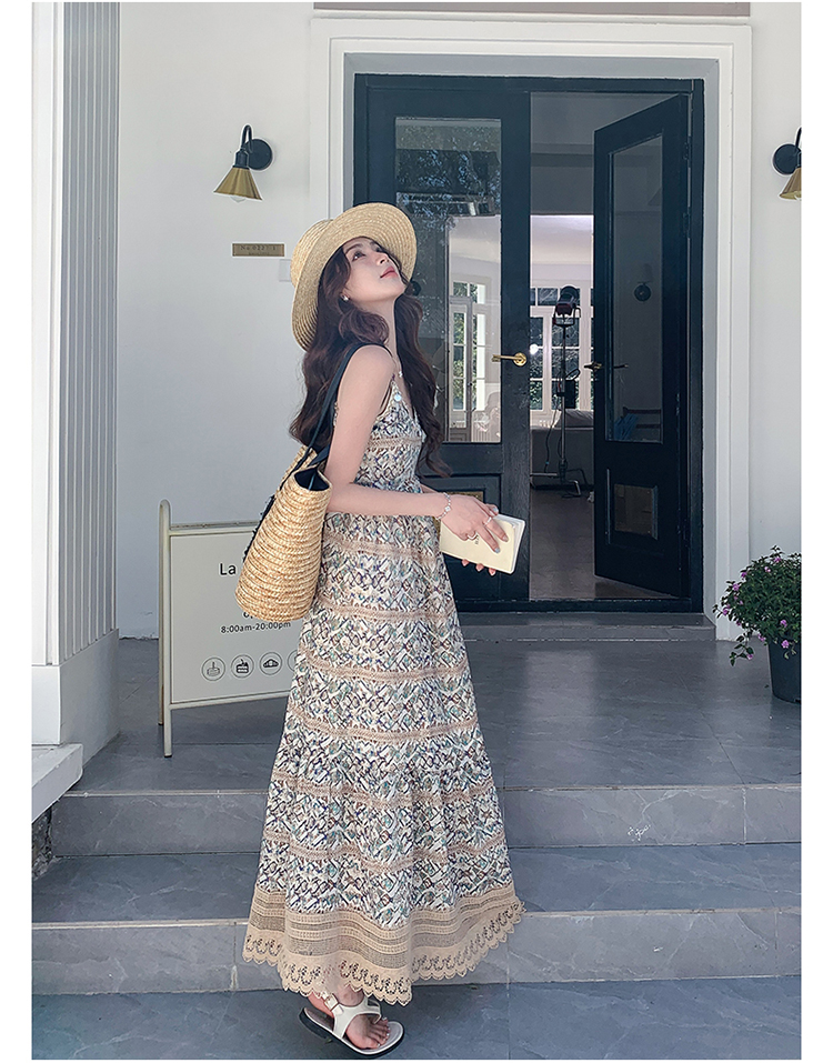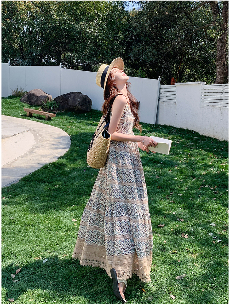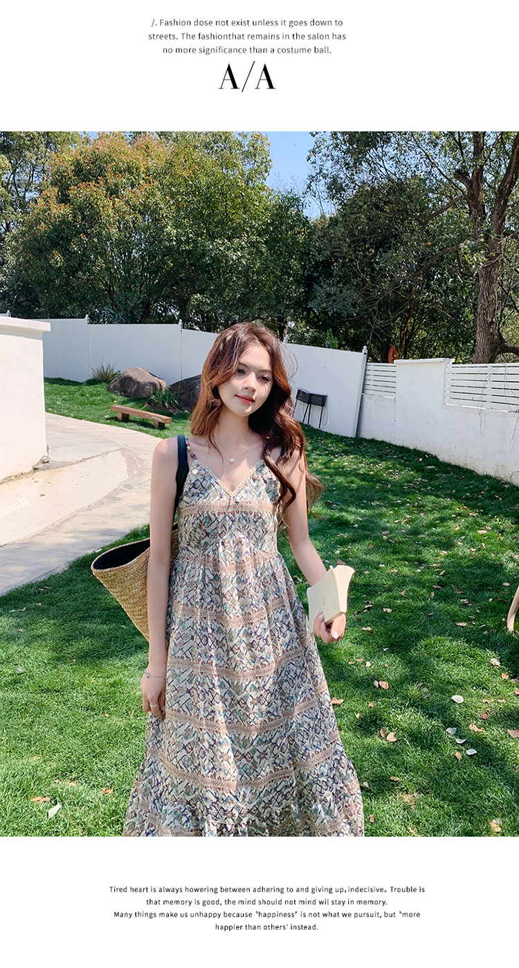 【ワンピース】バカンス映え ボヘミアン ノースリーブワンピース 花柄ロング丈 夏新作 リゾートスタイル【SHシリーズ】