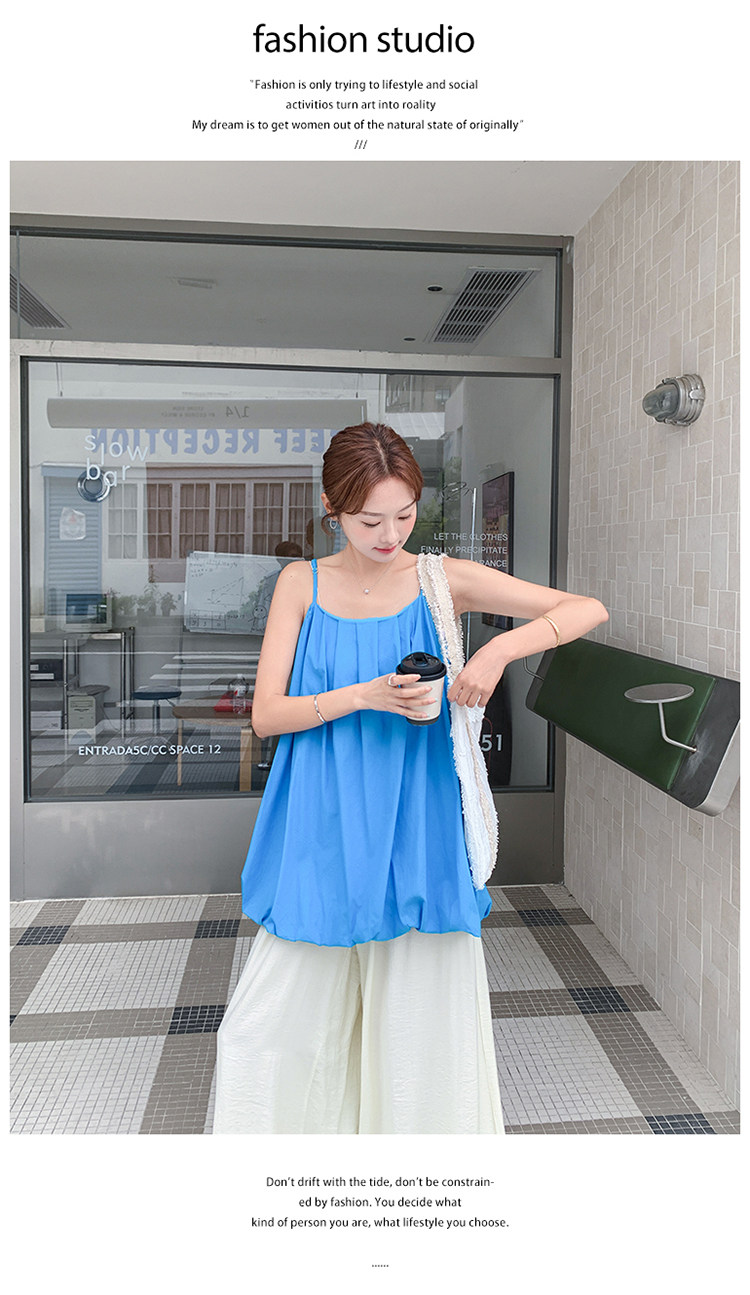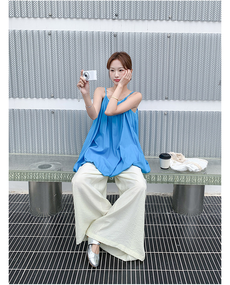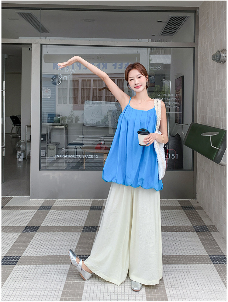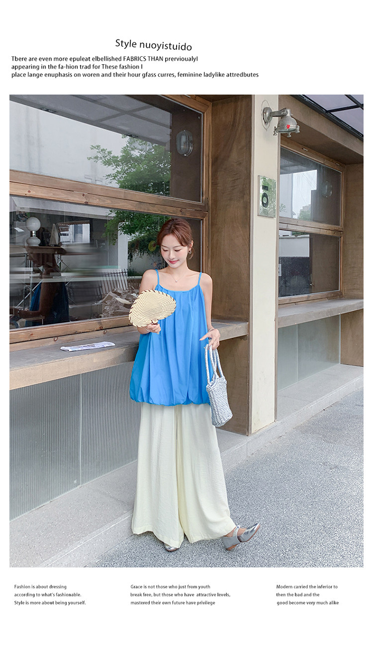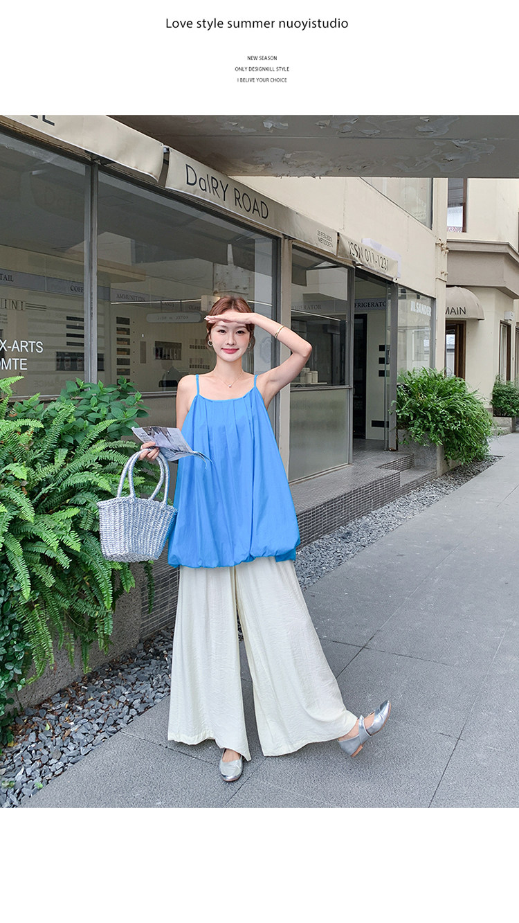 【商品名】【ボトムス】夏のカジュアルコーデ タンクトップ + リラックス ワイドパンツ 上下セットアップ