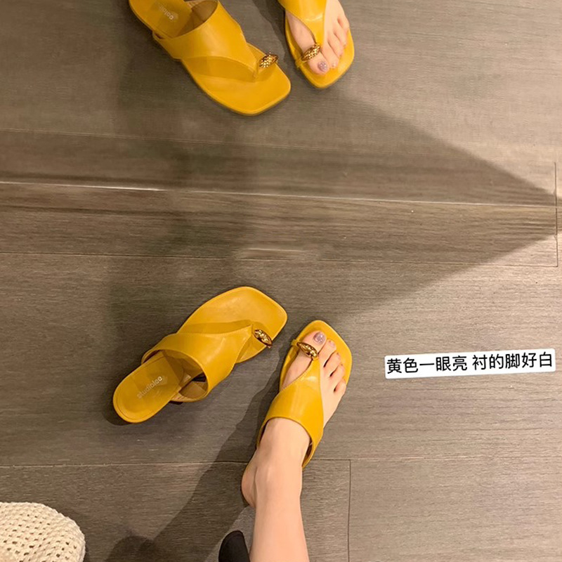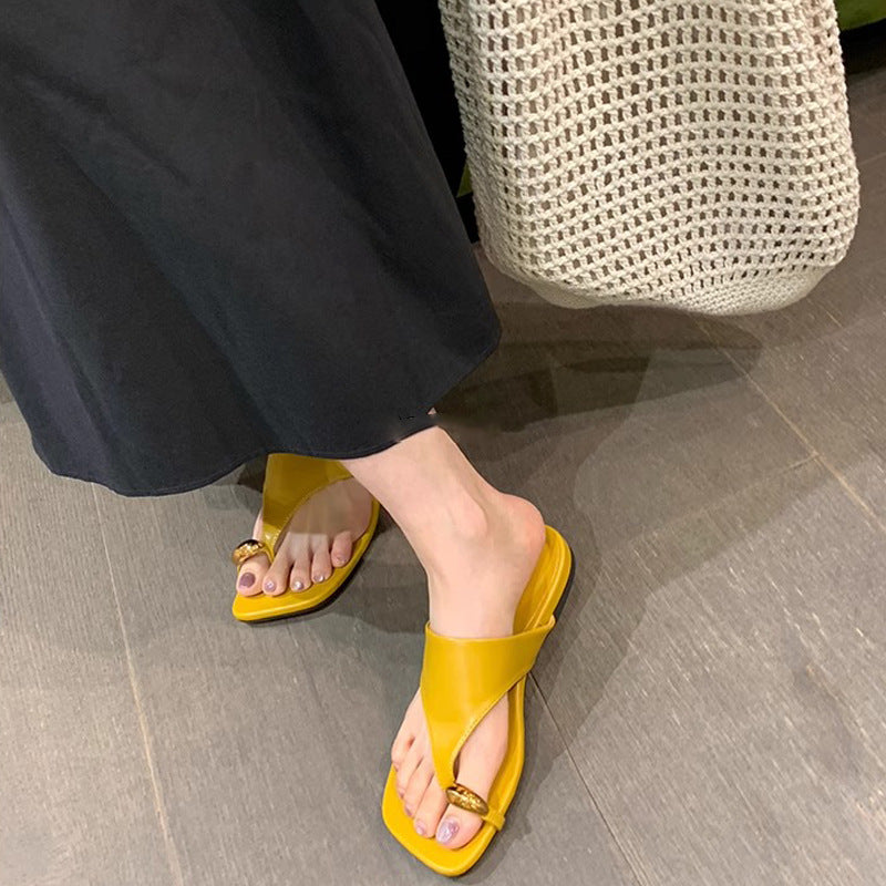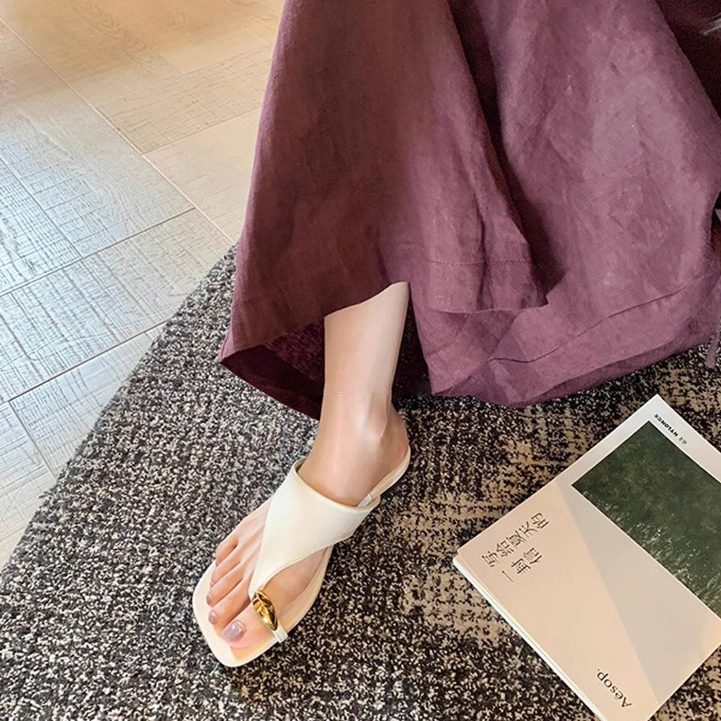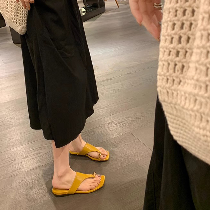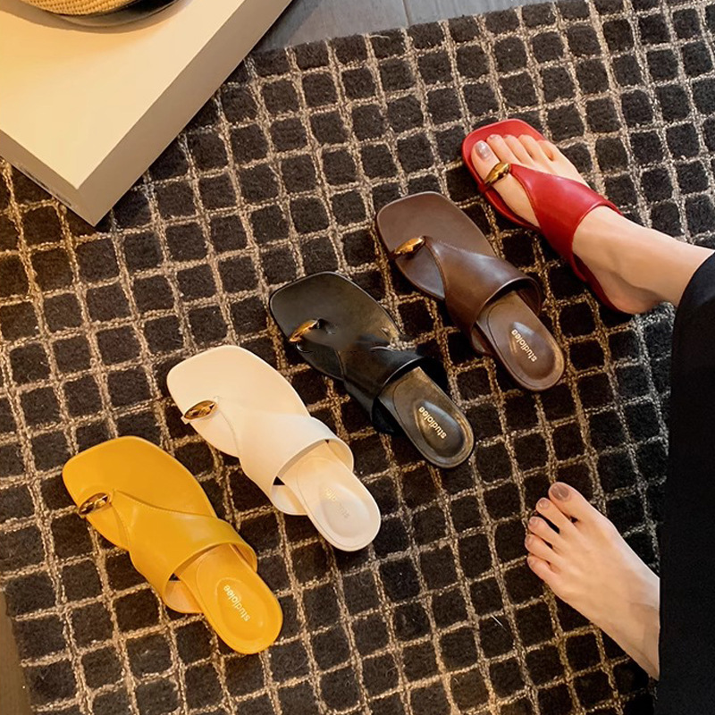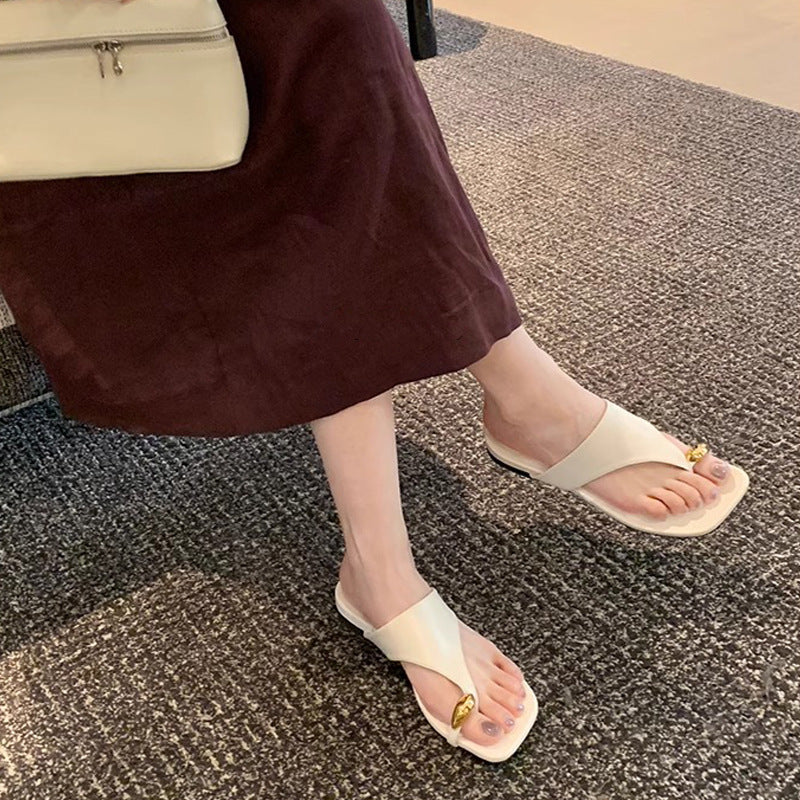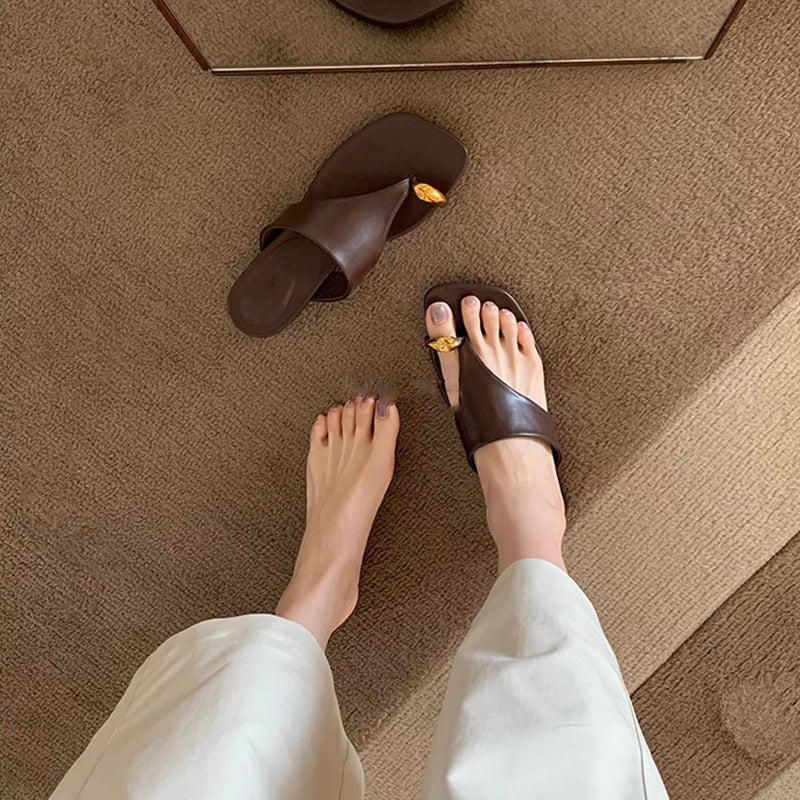 📈 注文殺到中【シューズ】おしゃれな メタルトゥカバー付き スクエアトウ フラットサンダル